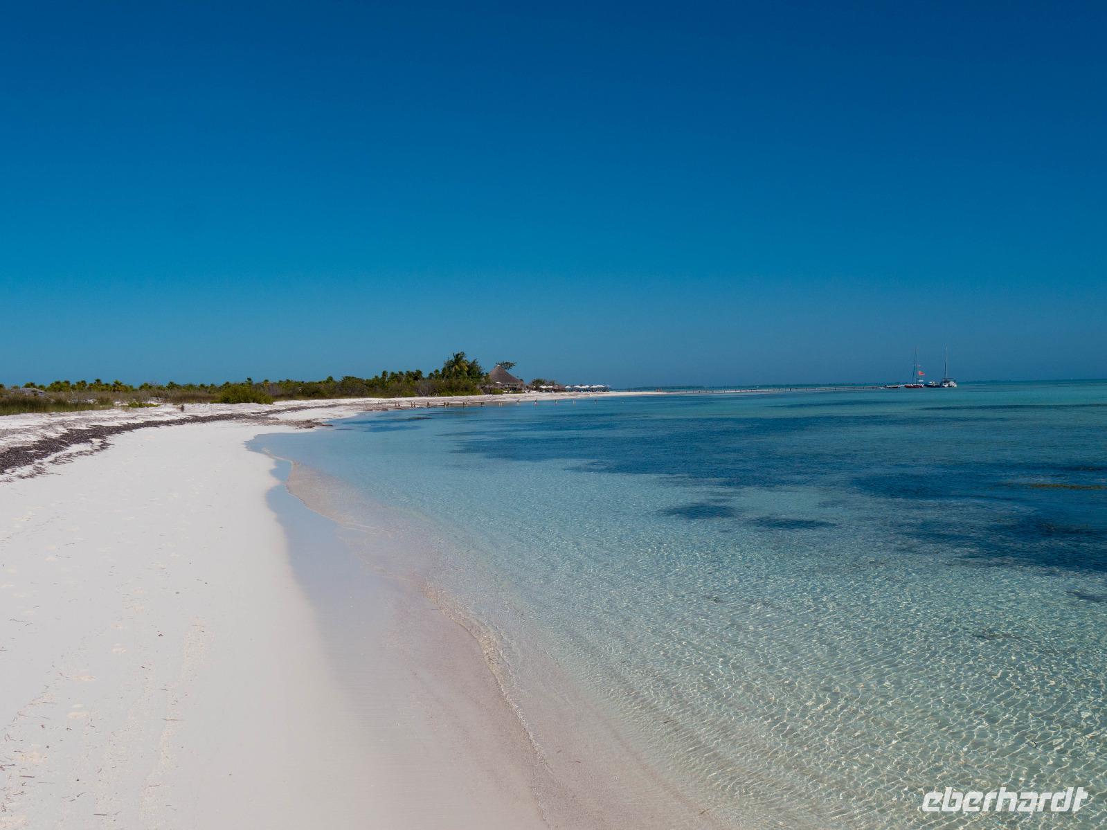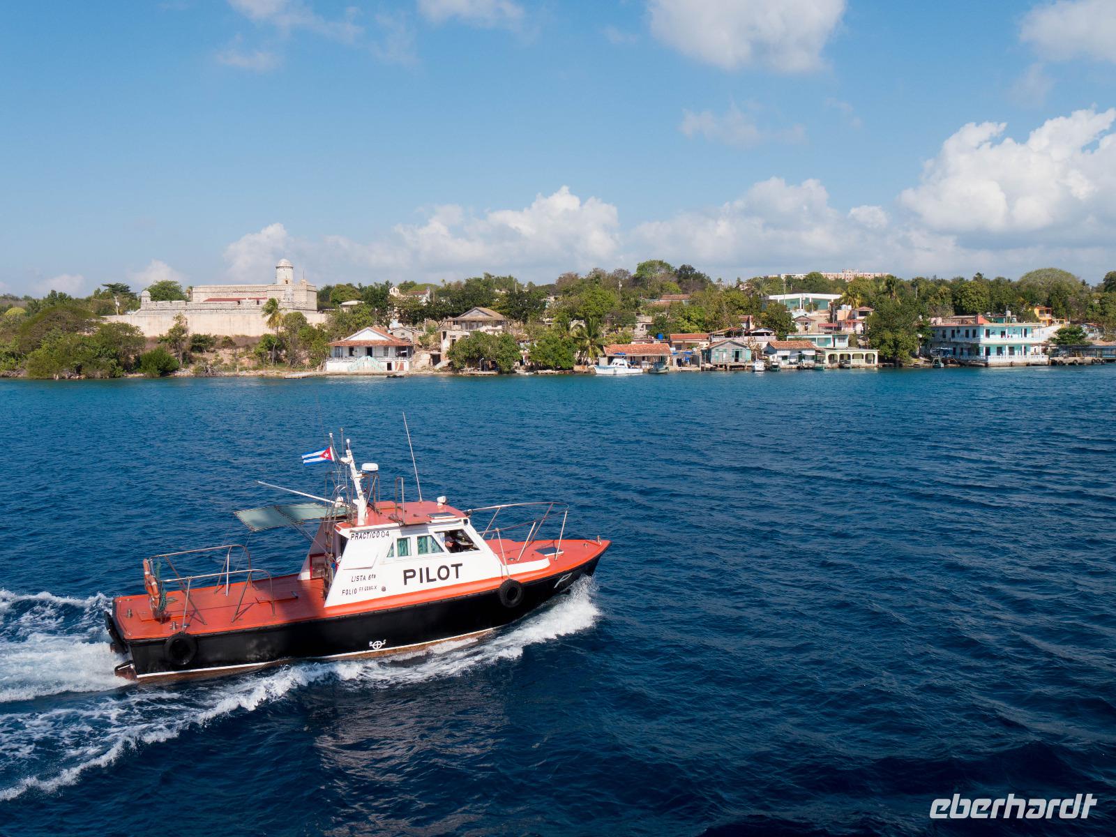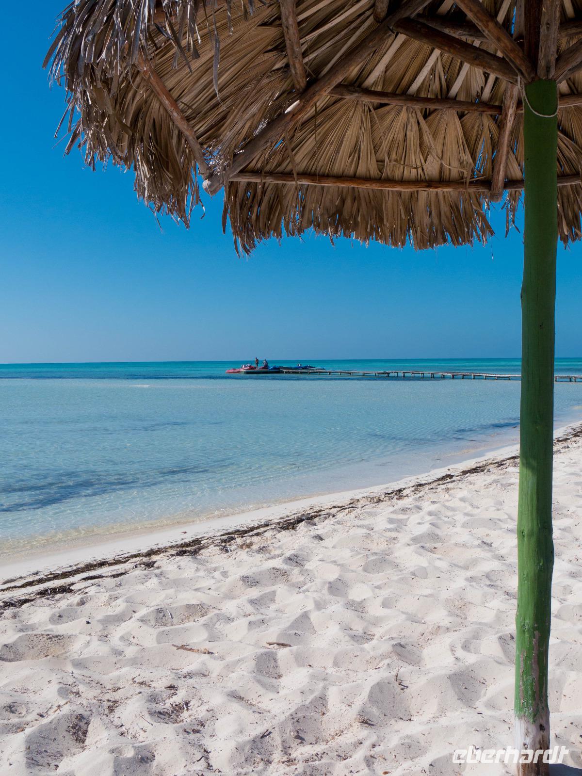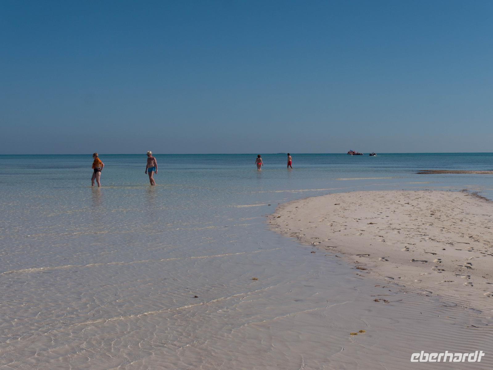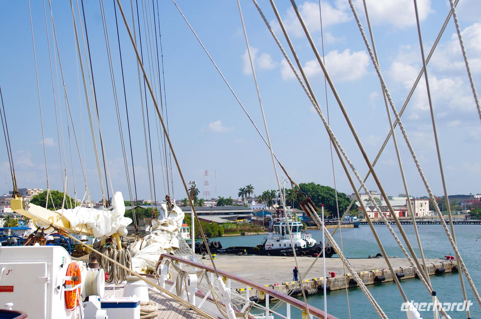 Kurz vor 8 Uhr kommt der Lotse an Bord und bald darauf wird der Anker gesetzt. Mit den Tenderbooten setzen wir nach Cayo Largo über. Hier erwartet uns ein wahrer Karibik-Traum: Palmen, scheeweißer Sandstrand, türkisblaues Wasser. Wir genießen die Sonne und den Strand in vollen Zügen. Zur Abwechslung setzen wir mit dem Zodiac noch kurz auf die Hauptinsel über, wo wir eine kleine romantische Marina, eine gemütliche Bar und eine Schildkrötenfarm vorfinden. Die freiwilligen Helfer des Schutzzentrums sammeln die Eier während der Brutsaison ein und sorgen somit für den Fortbestand der Tiere. Nach diesem entspannten Strandtag stimmen wir uns bei einem kleinen Eberhardt-Umtrunk auf den Abend an Bord ein. Hotelmanager Arnold plaudert etwas aus dem Nähkästchen und so erfahren wir viel über das Leben der Crew an Bord. Wir können uns auf dieser Reise ausgesprochen glücklich schätzen, denn angeblich gab es in den letzten 4 Jahren auf dieser Reiseroute nur 2 Mal solch ruhige See wie jetzt. Wir liegen also auch über Nacht vor Anker, um uns morgen zu neuen Ufern auf zu machen.