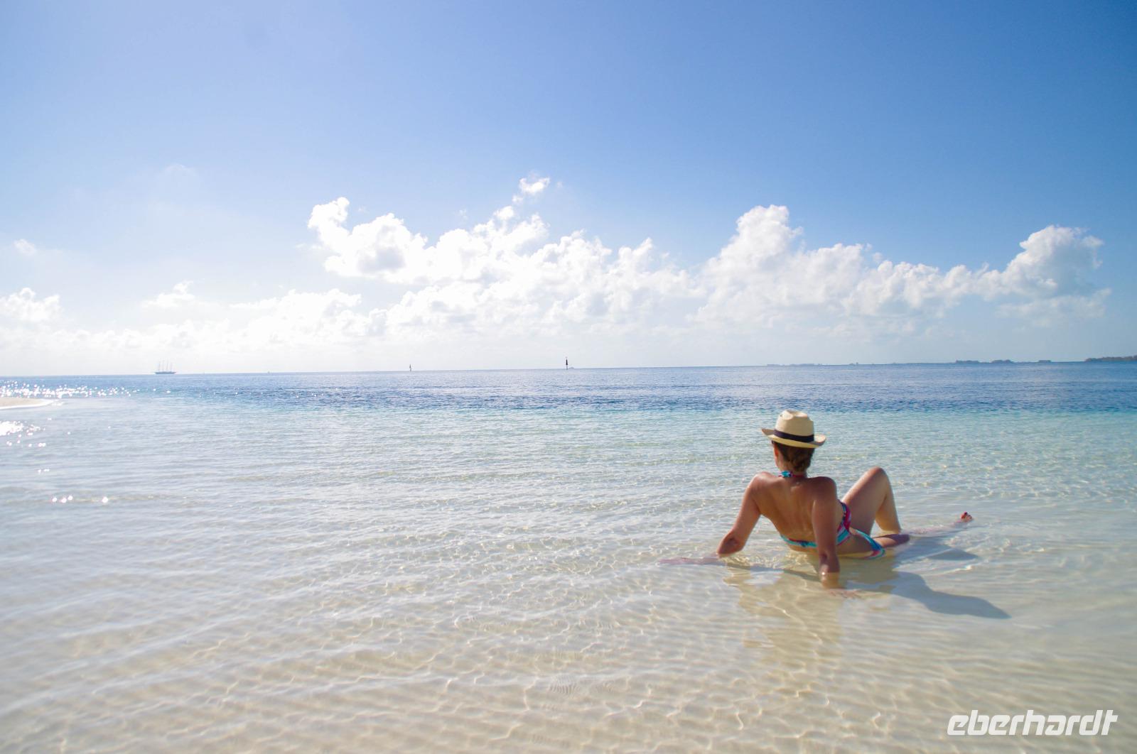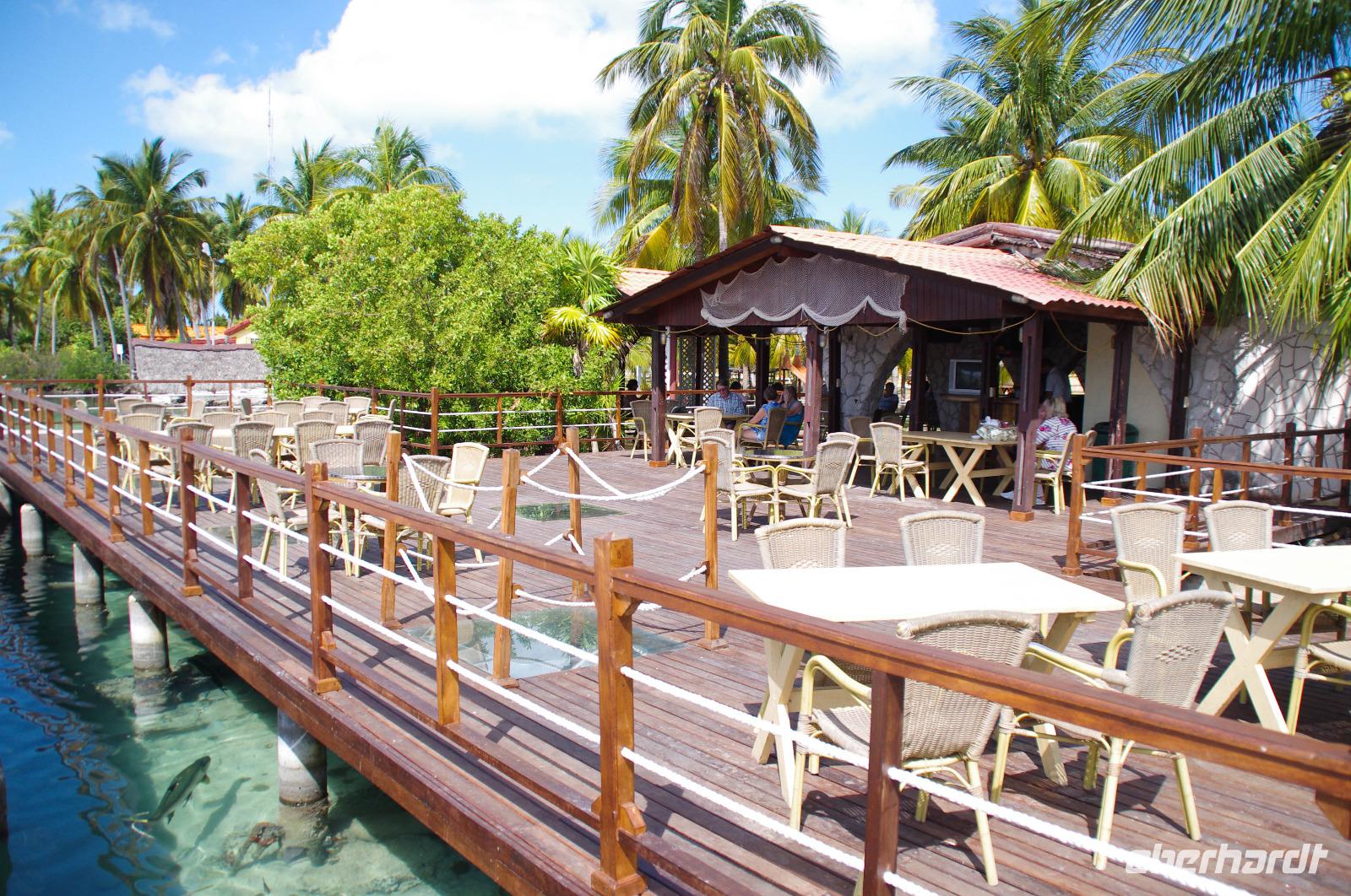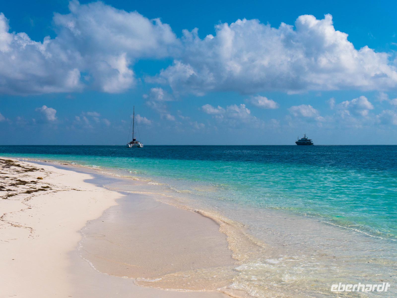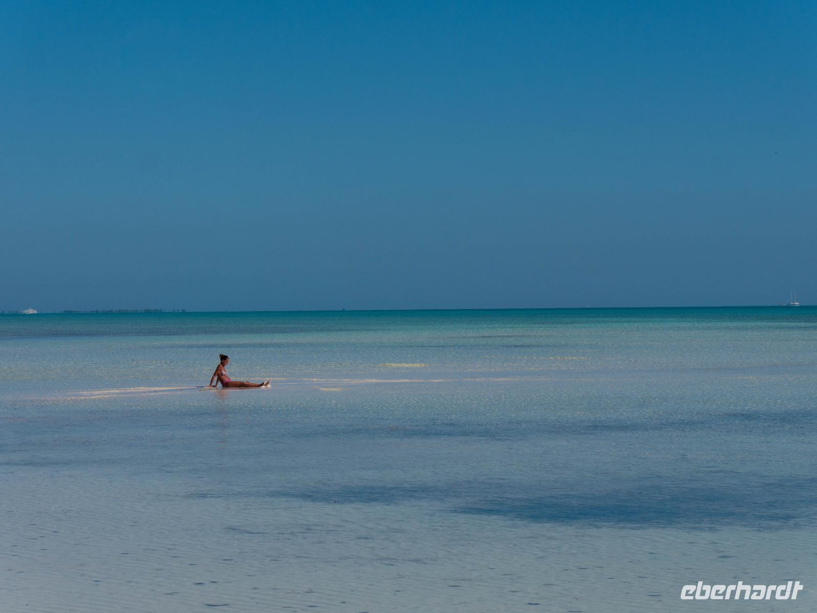 Kurz vor 8 Uhr kommt der Lotse an Bord und bald darauf wird der Anker gesetzt. Mit den Tenderbooten setzen wir nach Cayo Largo über. Hier erwartet uns ein wahrer Karibik-Traum: Palmen, scheeweißer Sandstrand, türkisblaues Wasser. Wir genießen die Sonne und den Strand in vollen Zügen. Zur Abwechslung setzen wir mit dem Zodiac noch kurz auf die Hauptinsel über, wo wir eine kleine romantische Marina, eine gemütliche Bar und eine Schildkrötenfarm vorfinden. Die freiwilligen Helfer des Schutzzentrums sammeln die Eier während der Brutsaison ein und sorgen somit für den Fortbestand der Tiere. Nach diesem entspannten Strandtag stimmen wir uns bei einem kleinen Eberhardt-Umtrunk auf den Abend an Bord ein. Hotelmanager Arnold plaudert etwas aus dem Nähkästchen und so erfahren wir viel über das Leben der Crew an Bord. Wir können uns auf dieser Reise ausgesprochen glücklich schätzen, denn angeblich gab es in den letzten 4 Jahren auf dieser Reiseroute nur 2 Mal solch ruhige See wie jetzt. Wir liegen also auch über Nacht vor Anker, um uns morgen zu neuen Ufern auf zu machen.