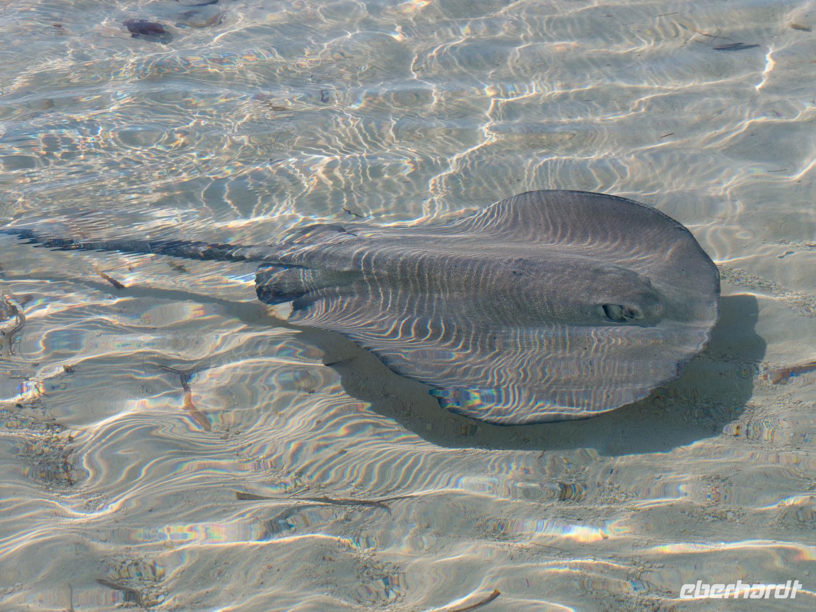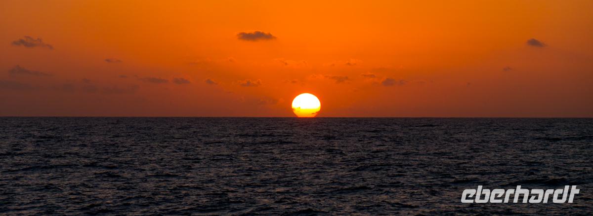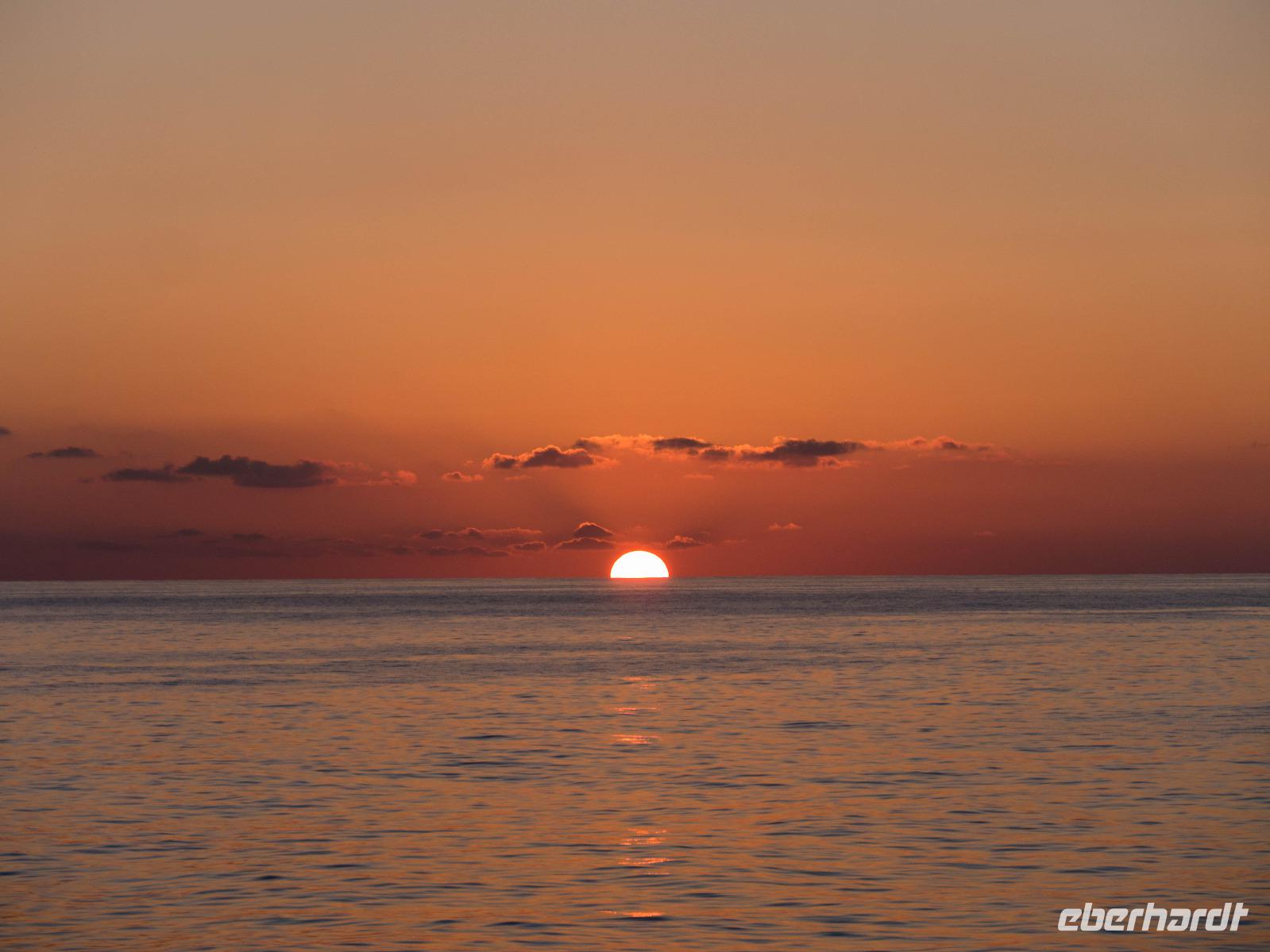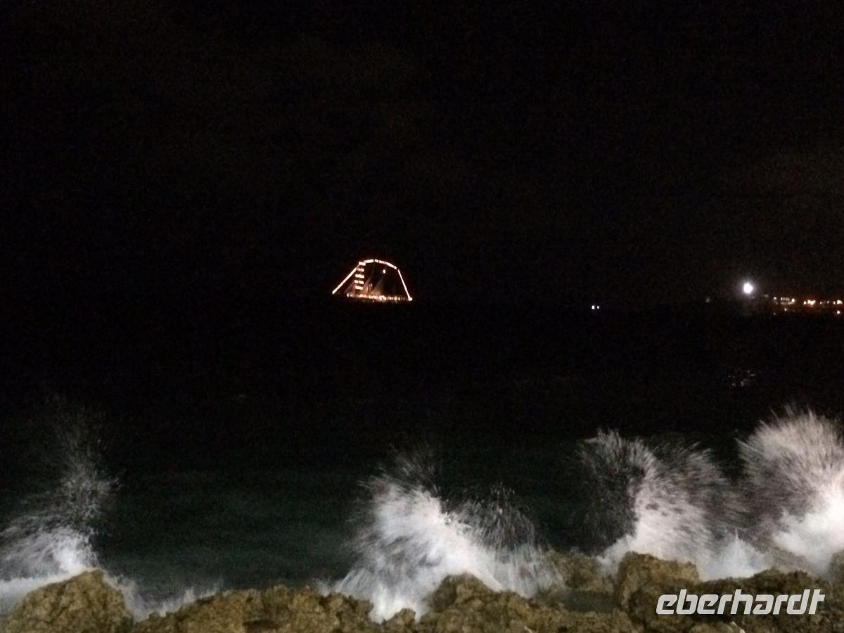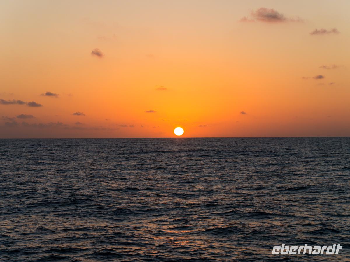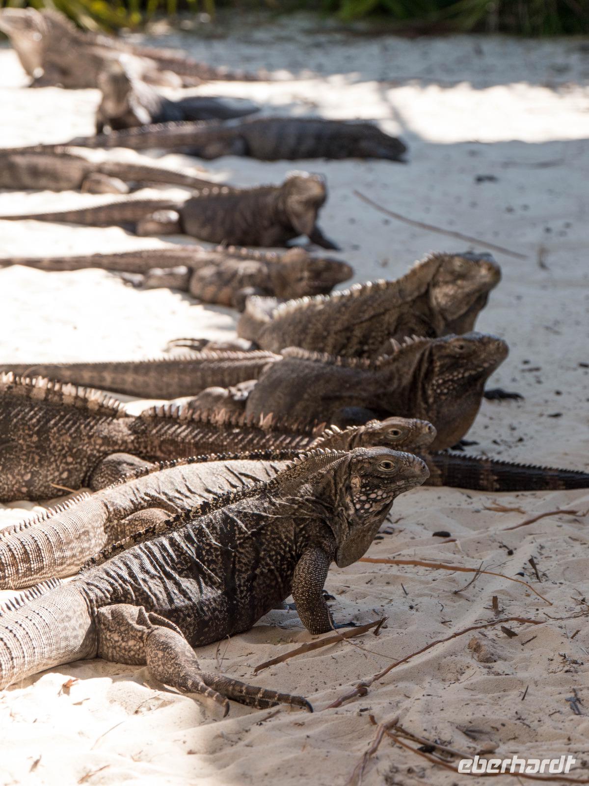 Kurz vor 8 Uhr kommt der Lotse an Bord und bald darauf wird der Anker gesetzt. Mit den Tenderbooten setzen wir nach Cayo Largo über. Hier erwartet uns ein wahrer Karibik-Traum: Palmen, scheeweißer Sandstrand, türkisblaues Wasser. Wir genießen die Sonne und den Strand in vollen Zügen. Zur Abwechslung setzen wir mit dem Zodiac noch kurz auf die Hauptinsel über, wo wir eine kleine romantische Marina, eine gemütliche Bar und eine Schildkrötenfarm vorfinden. Die freiwilligen Helfer des Schutzzentrums sammeln die Eier während der Brutsaison ein und sorgen somit für den Fortbestand der Tiere. Nach diesem entspannten Strandtag stimmen wir uns bei einem kleinen Eberhardt-Umtrunk auf den Abend an Bord ein. Hotelmanager Arnold plaudert etwas aus dem Nähkästchen und so erfahren wir viel über das Leben der Crew an Bord. Wir können uns auf dieser Reise ausgesprochen glücklich schätzen, denn angeblich gab es in den letzten 4 Jahren auf dieser Reiseroute nur 2 Mal solch ruhige See wie jetzt. Wir liegen also auch über Nacht vor Anker, um uns morgen zu neuen Ufern auf zu machen.