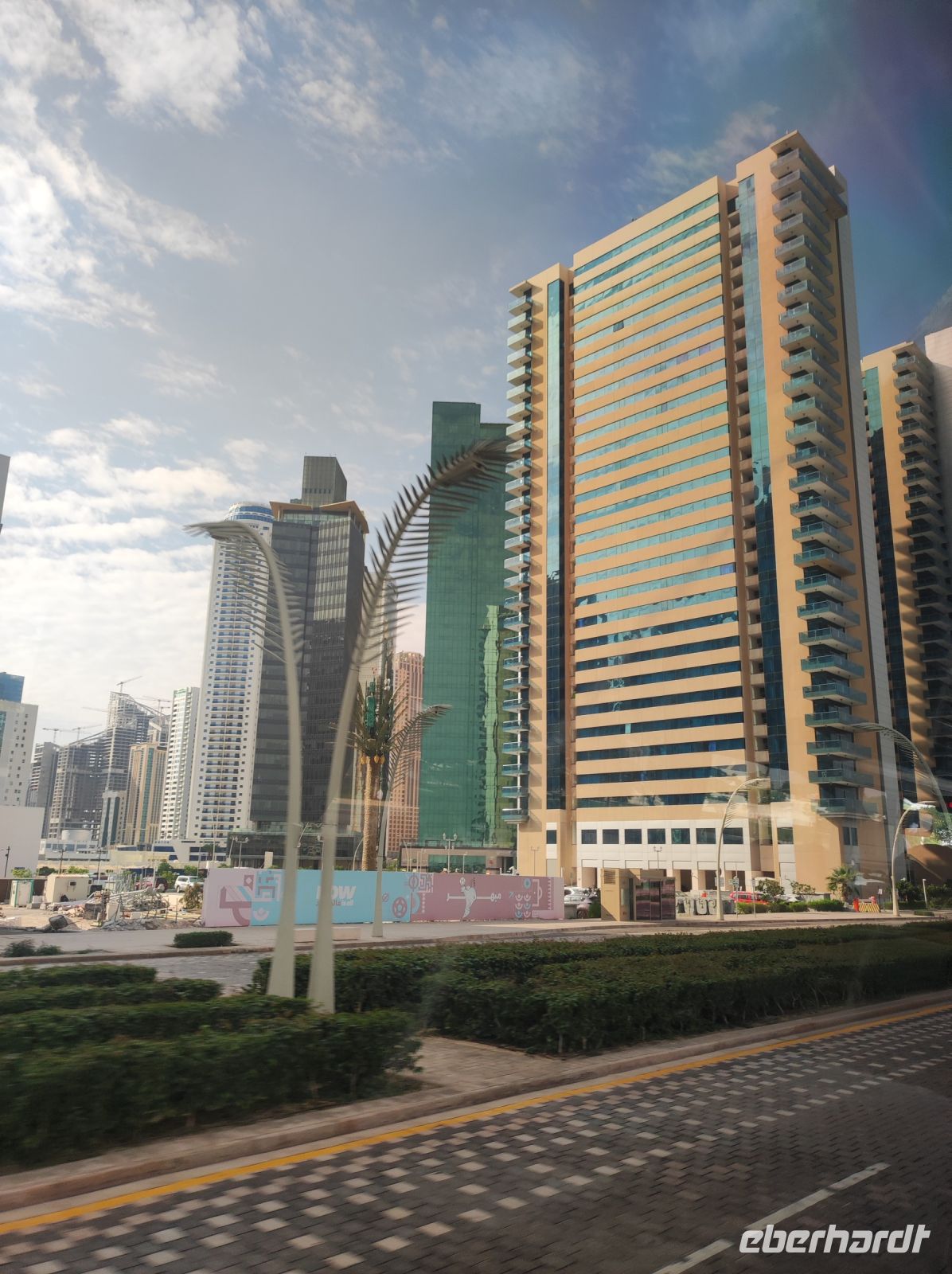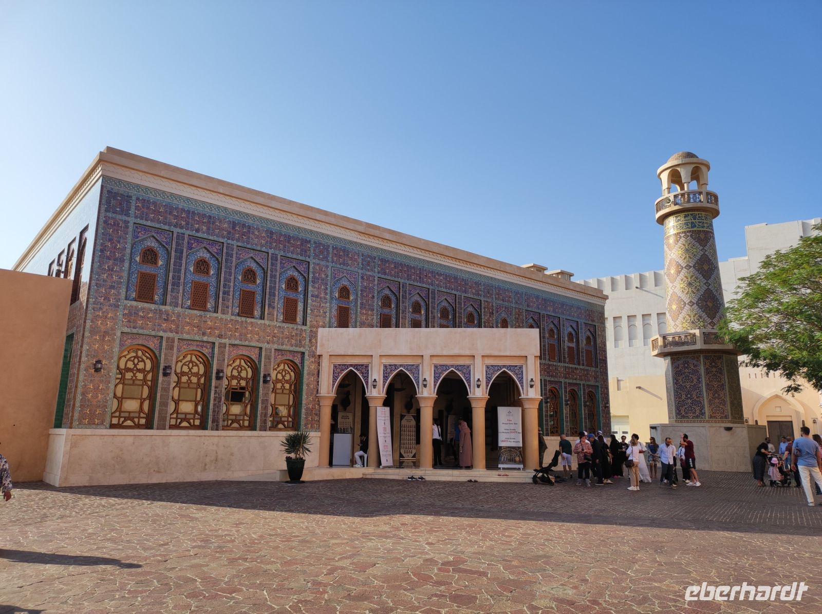 Im Anschluss besuchten wir das „Katara Cultural Village“, ein traditionell nah gehaltenes Viertel in Doha und jeder hatte Zeit für eine kleine Mittagspause. Gemeinsam besuchten wir dann die „Blaue Moschee“ und unser Reiseleiter machte mit uns einen kleinen Stadtrundgang. Unser nächster Programmpunkt war ein Fotostopp im „Qanat Quartier“ einem Bezirk, welcher ein Nachbau von den Gassen und Kanälen von Venedig ist. Sogar eine Rialtobrücke wurde gebaut, einfach außergewöhnlich! Als Letztes machten wir noch einen Fotostopp vor den „Katara Towers“, einem u-förmigen Hochhauskomplex, welcher 2 sich kreuzende Säbel, das Staatssymbol Katars darstellen soll.