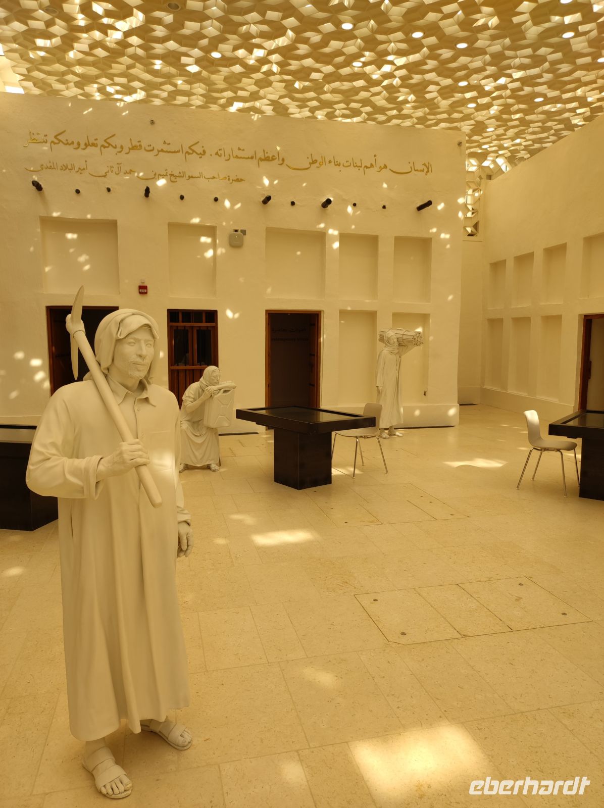 Weiter ging es dann zum nur wenige Fahrminuten entfernten Nationalmuseum von Katar, das von Außen wie eine Wüstenrose aussehende Gebäude zeigte uns mit hochmodernen Ausstellungen und Themenwelten die Geschichte des kleinen Golfstaates.