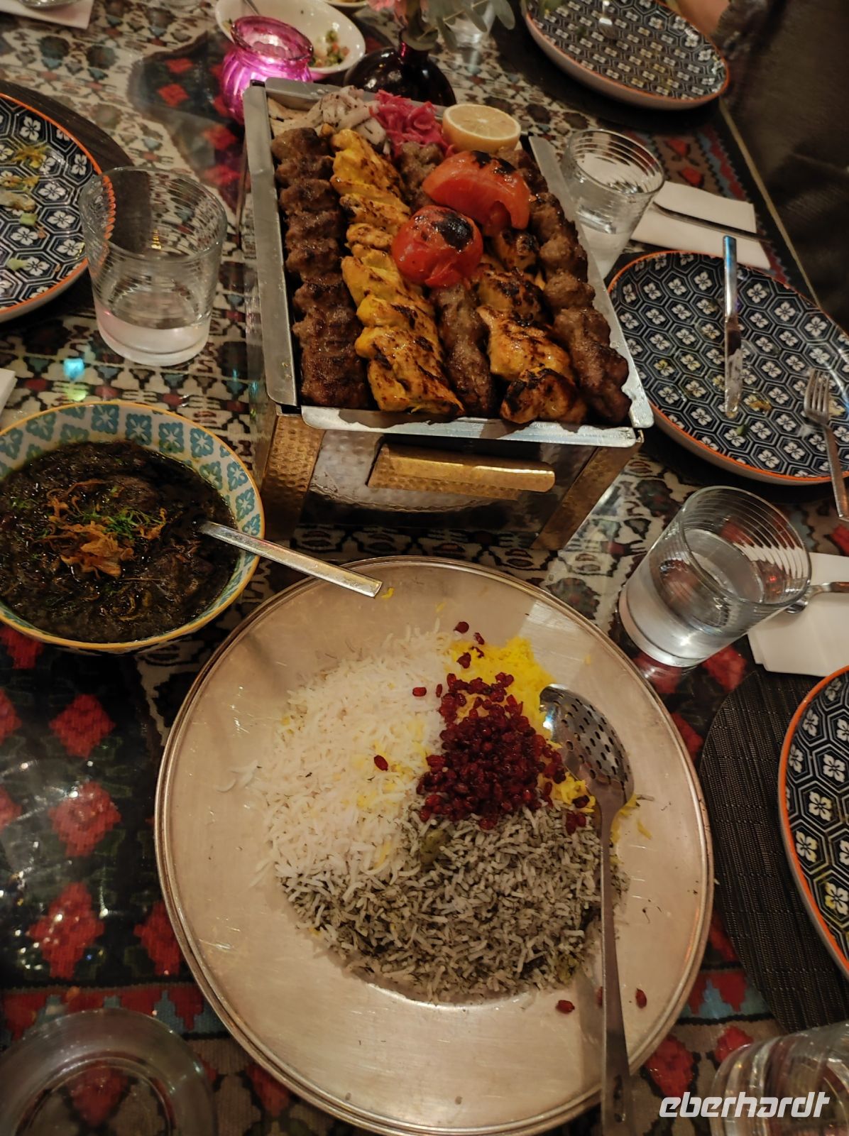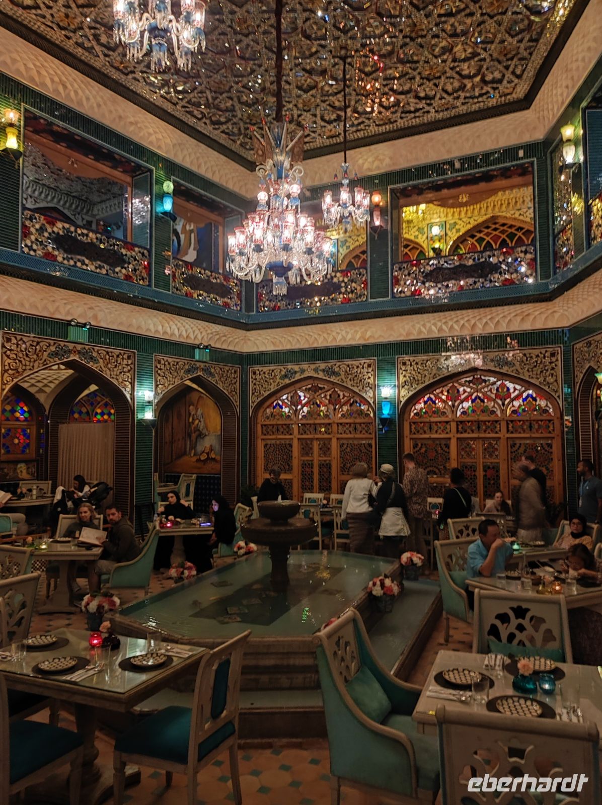 Wir fuhren zurück zu unserem Hotel an der „Corniche“ von Doha und jeder hatte noch mal Zeit sich etwas frisch zu machen. Später ging es dann zum „Souq Waqif“, wir schlenderten über den Kamel-, Falken-, Pferde- und Vogel-Souq und streiften durch die Labyrinthartig angelegten Gassen. Unser Restaurant am heutigen Abend, das „Parisa“ befand sich auf der Haupstraße des Souqs. Wir genossen persische Küche in einem besonders schicken und prunkvollen Ambiente.