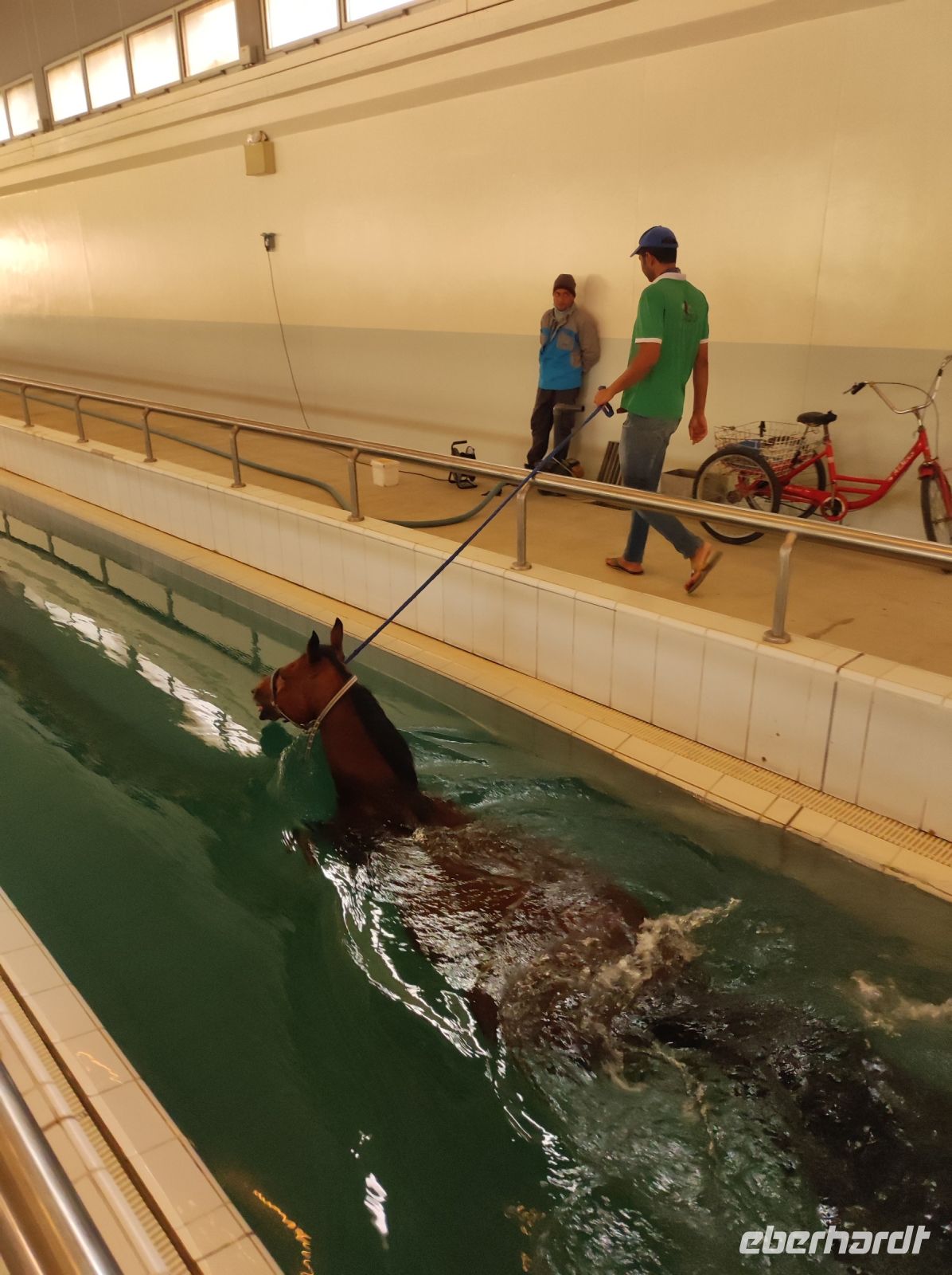 Heute ging es mit dem Bus in einen Außenbezirk der Stadt, in die „Education City“. Wie es der Name schon liegt in diesem Viertel der Schwerpunkt auf Bildung, etliche Universitäten und Schulen haben befinden sich hier. Zuerst besuchten wir das Elite-Reitsportzentrum „Al Shaqab“, hier werden etliche der so bekannten Araber-Pferde gezüchtet und für Wettkämpfe trainiert. Aber auch andere Pferderassen kann man hier antreffen, auf dem Gelände befindet sich eine riesige klimatisierte Indoor-Reithalle mit Tribüne und etliche Hippodrome und andere Wettkampfanlagen. Wir besichtigten den sogenannten Wellnessbereich der Pferde, hier gab es Laufbänder, Pools und sogar einen Jacuzzi für die Pferde. Wir besichtigten auch die „königlichen Ställe“, hier werden die unbezahlbaren Araber-Pferde der Scheichs und Emire der arabischen Welt gehalten und versorgt.