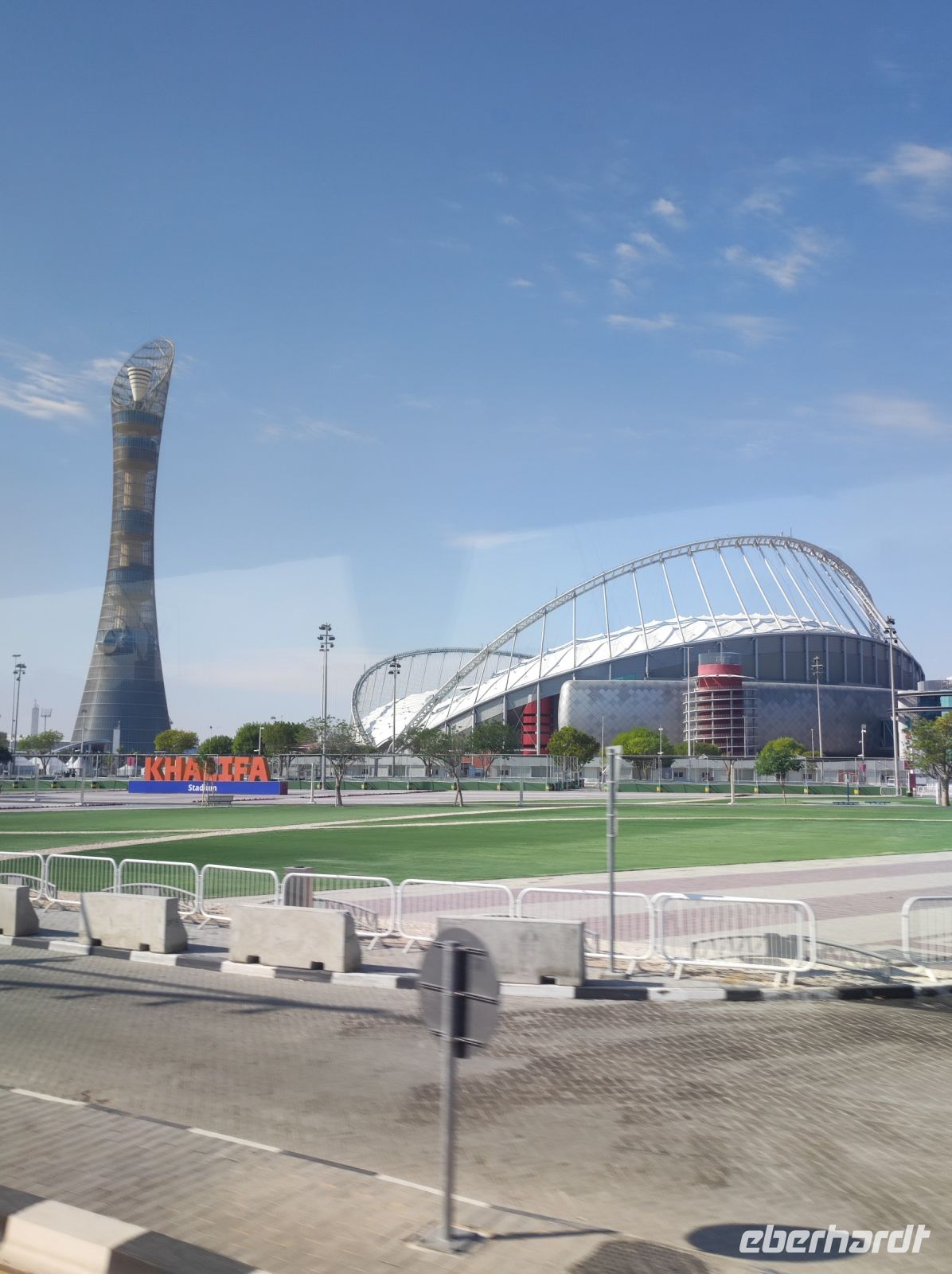 Nach der Tour über die Anlage setzten wir unser Programm fort und steuerten die nur wenige Minuten entfernte Nationalbibliothek an. Nach einer kleinen Führung hatte jederzeit die Bibliothek auf eigene Faust zu erkunden. Eines der wichtigsten und bekanntesten Exponate ist die Karte, wo man als Erstes jemals Katar, als „Catara“ erwähnte und ist somit der älteste Verweis auf Katar. Der Komplex und auch die Bücherregale sind sehr offen gestaltet und wieder einmal eine architektonische Meisterleistung, wie man es inzwischen nicht anders erwarten kann von Katar! Unsere Mittagspause verbrachte jeder selbstständig in der „The Villagio Mall“, ein Einkaufszentrum im Stil der berühmten italienischen Stadt Venedig. Auf unseren Weg zurück in das Hotel machten wir noch mal eine kleine Orientierungsfahrt durch die „Aspire Zone“, einem Viertel mit diversen sportlichen Einrichtungen, Parks und auch dem Final-Stadium der WM 2022.