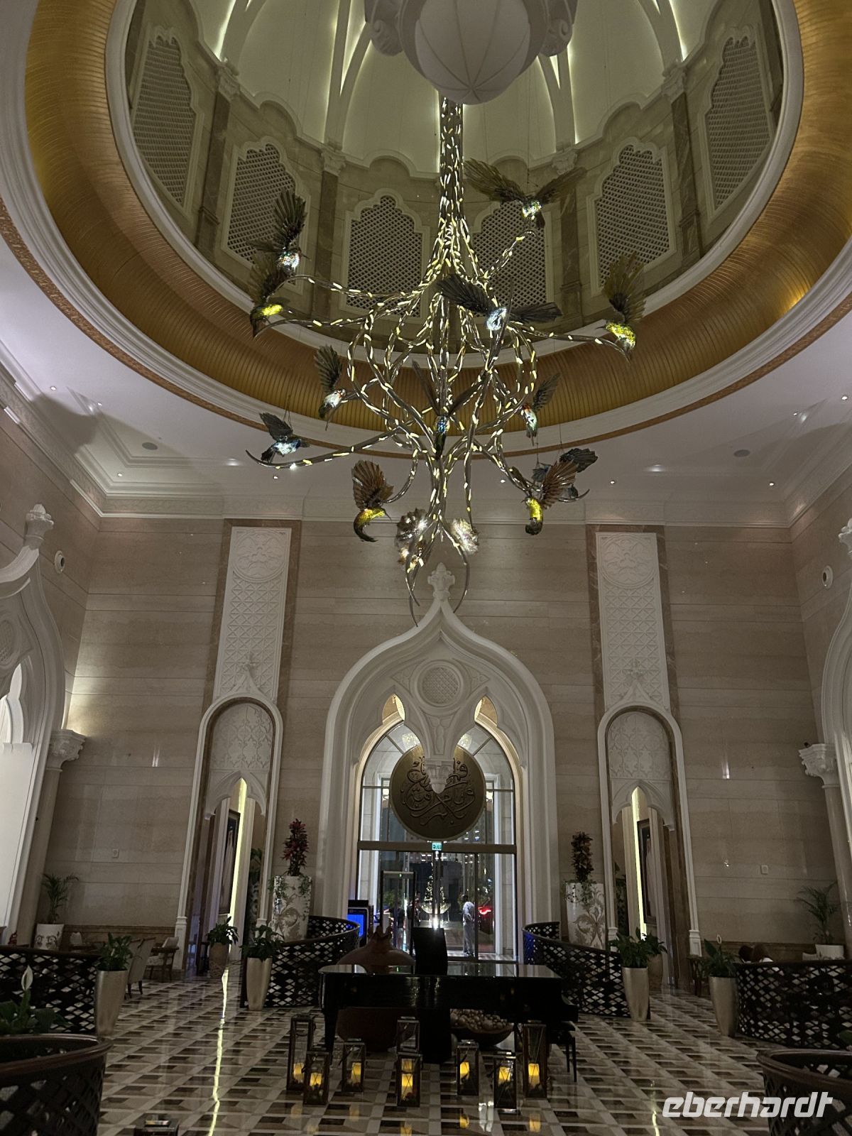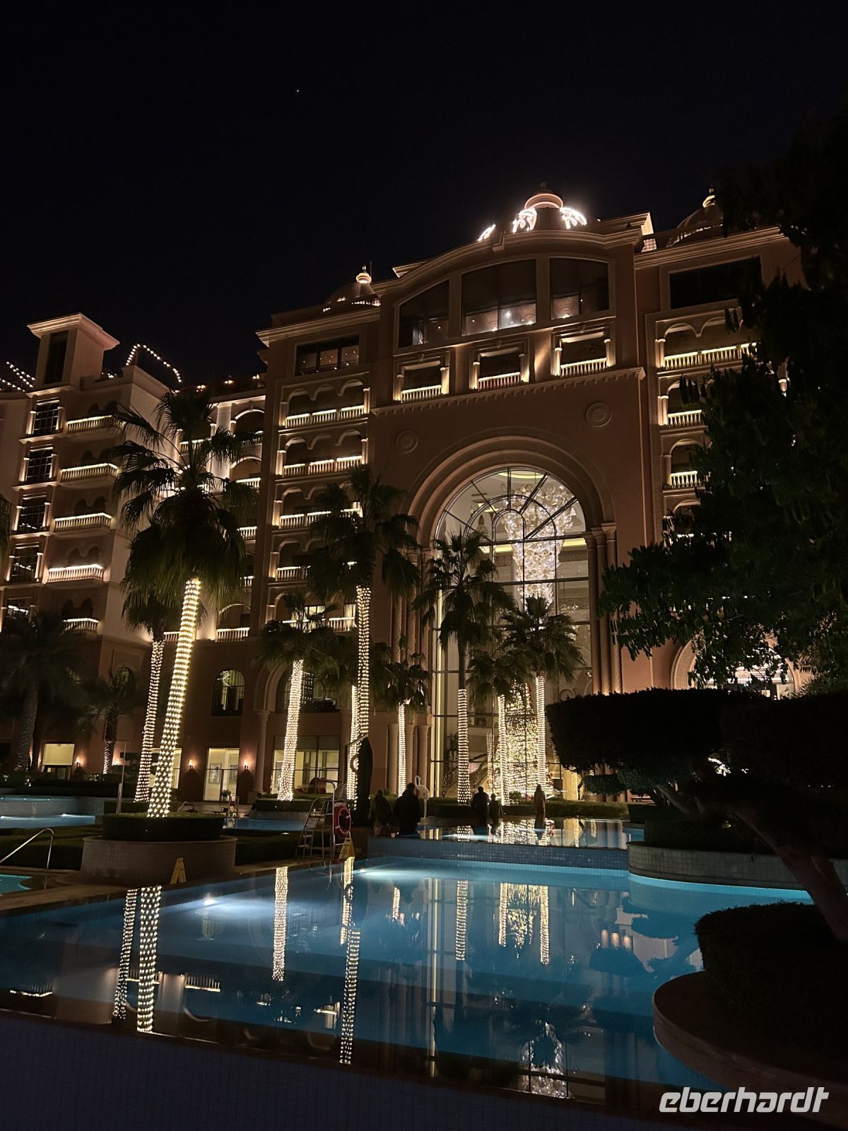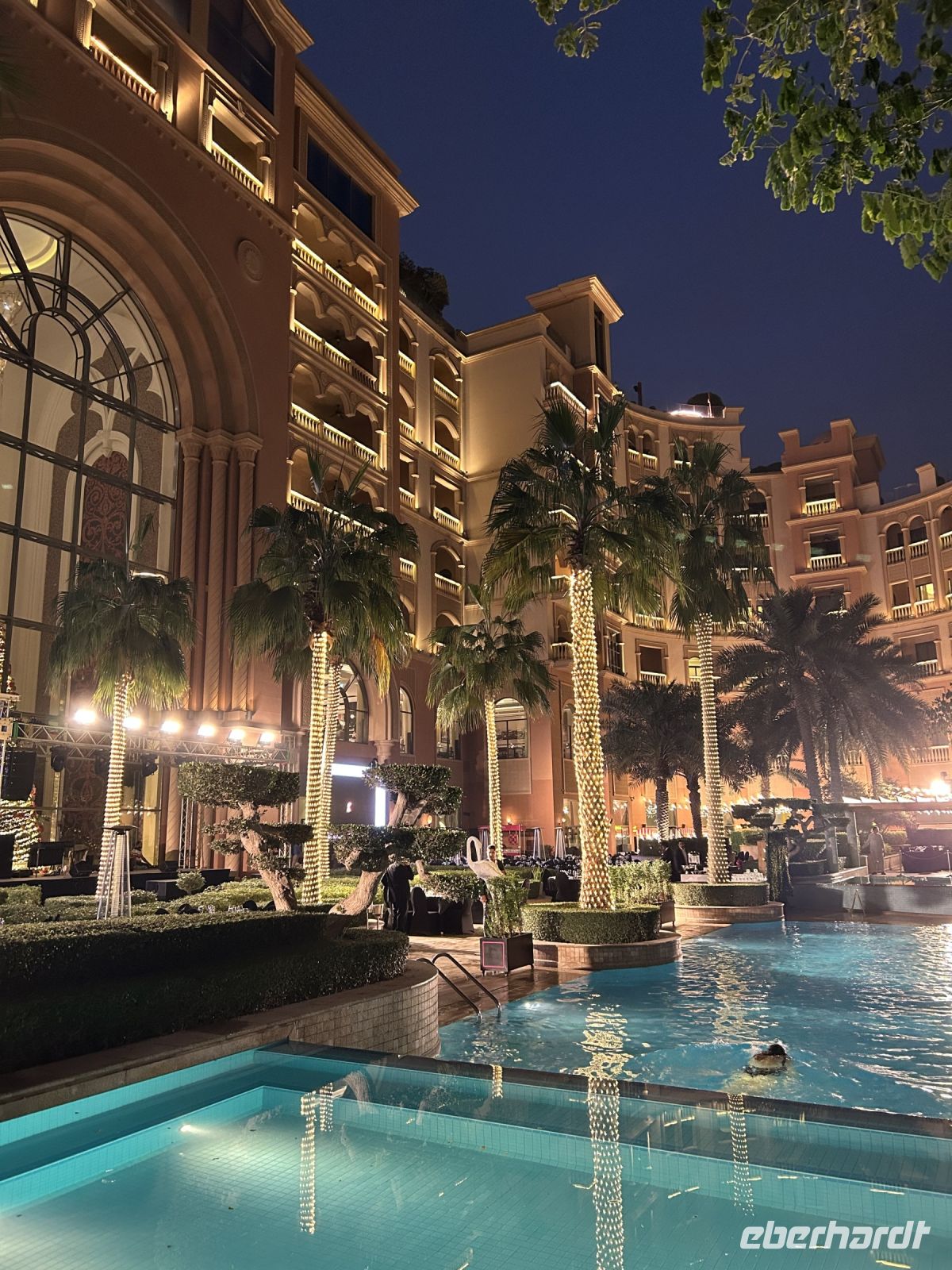 Den ersten Tag des neues Jahres beginnen wir entspannt mit einem Langschläfer-Frühstuck. Bis zu unserem heutigen Ausflugsbeginn am späten Nachmittag sind individuelle Unternehmungen möglich. Einige stürzen sich nochmals ins Großstadtgetümmel und probieren die hochmoderne und durch KI gesteuerte Metro aus, andere spazieren durch das Qanat Quartier in der nahe des Hotels und fühlen sich beim Überqueren der Rialtobrücke wie beim Flanieren in der Lagunenstadt Venedig. Und dann gibt es ja noch die große Pool-Anlage und den privaten Hotelstrand, die zum Entspannen einladen. Wer kann schon behaupten, am Neujahrstag am Strand zu liegen…