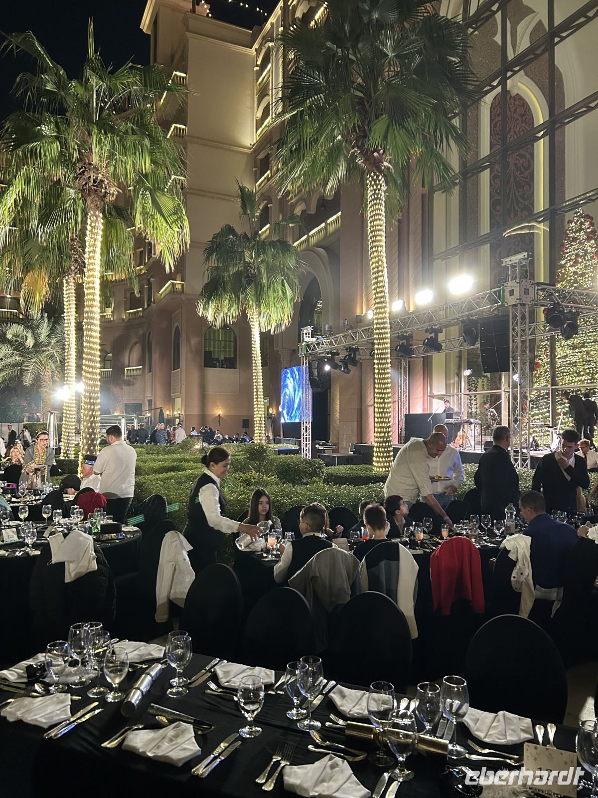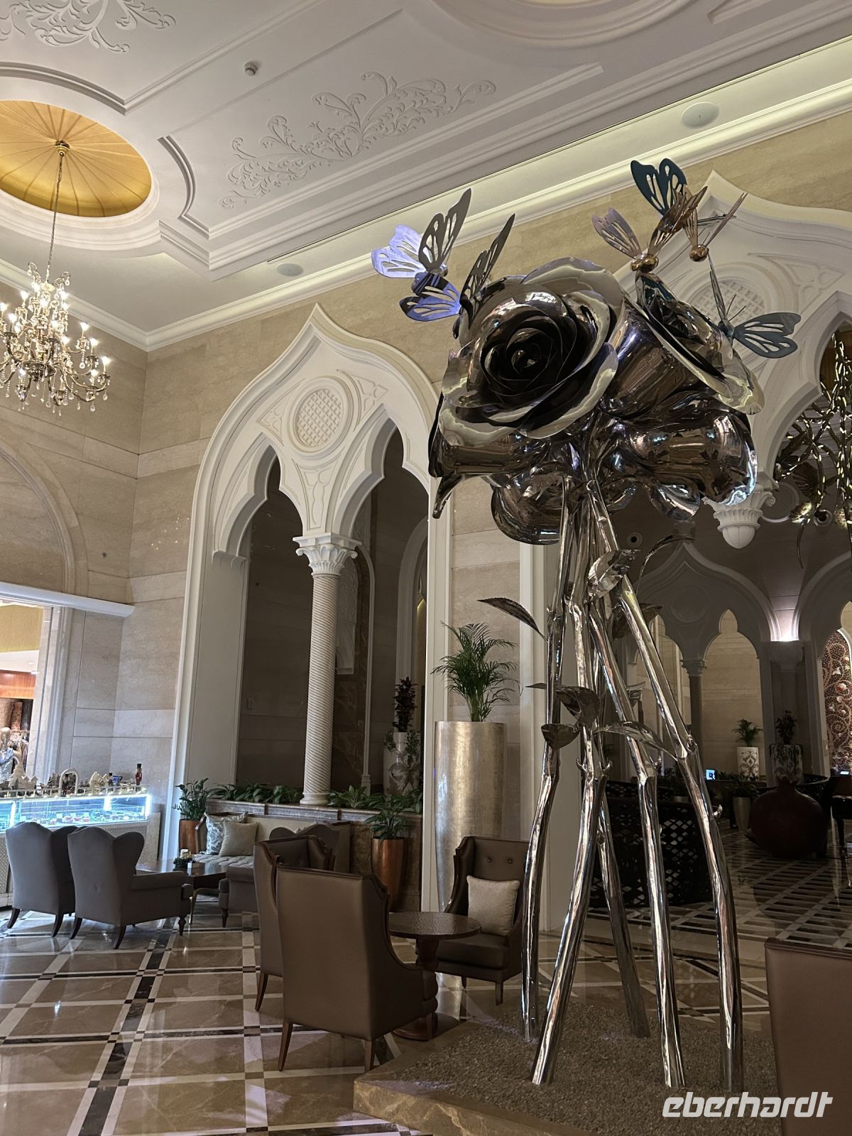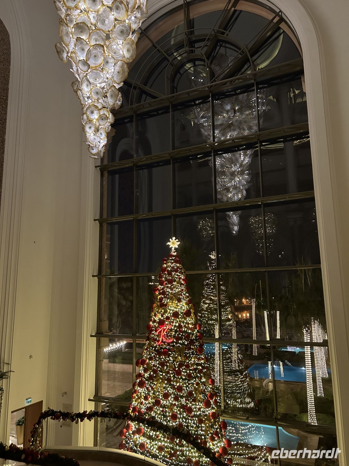 Den ersten Tag des neues Jahres beginnen wir entspannt mit einem Langschläfer-Frühstuck. Bis zu unserem heutigen Ausflugsbeginn am späten Nachmittag sind individuelle Unternehmungen möglich. Einige stürzen sich nochmals ins Großstadtgetümmel und probieren die hochmoderne und durch KI gesteuerte Metro aus, andere spazieren durch das Qanat Quartier in der nahe des Hotels und fühlen sich beim Überqueren der Rialtobrücke wie beim Flanieren in der Lagunenstadt Venedig. Und dann gibt es ja noch die große Pool-Anlage und den privaten Hotelstrand, die zum Entspannen einladen. Wer kann schon behaupten, am Neujahrstag am Strand zu liegen…