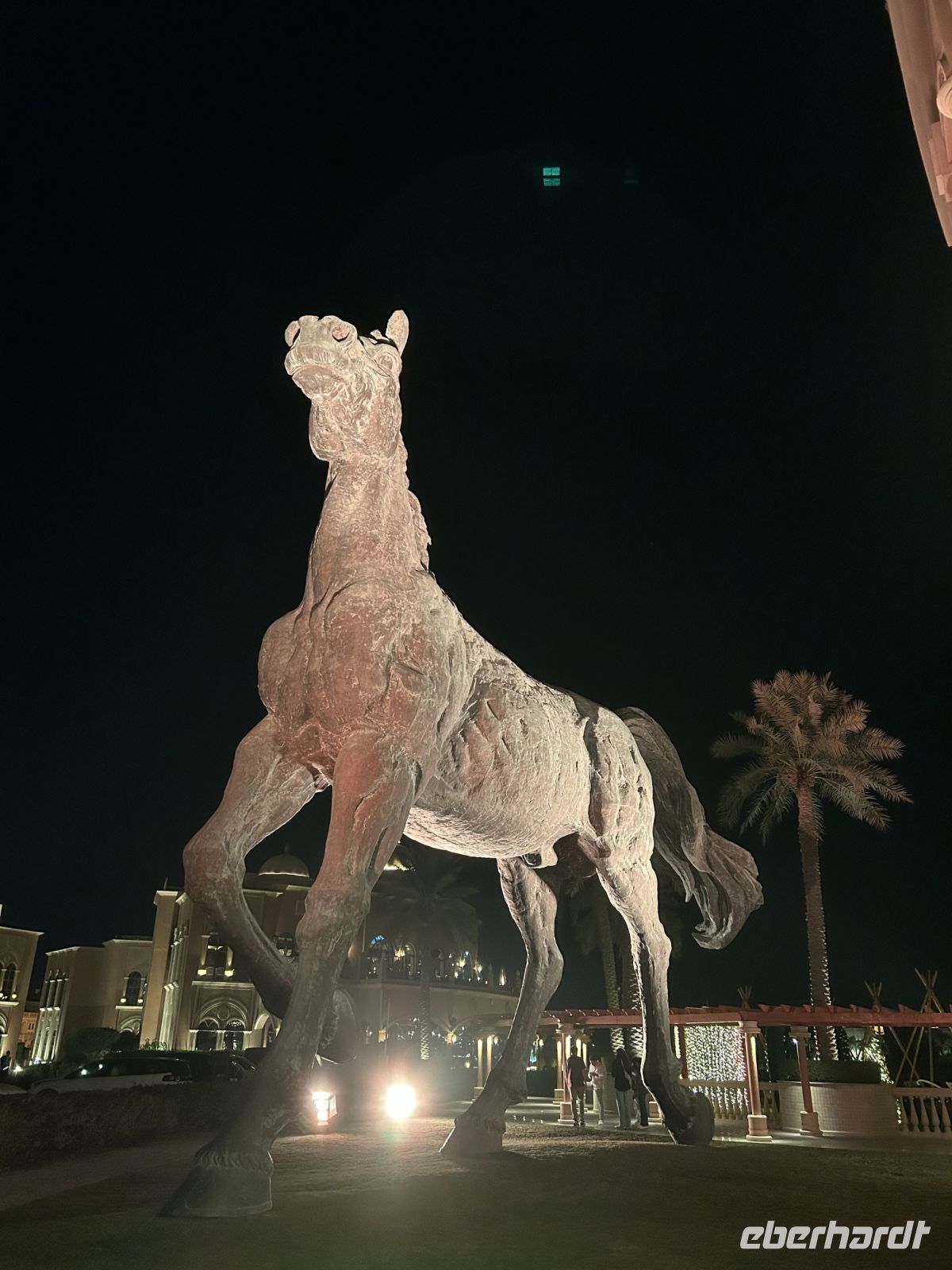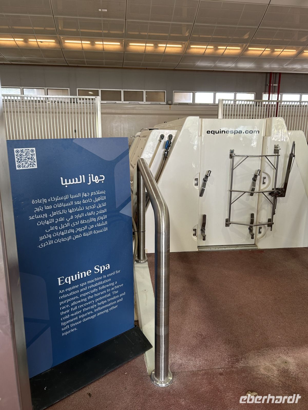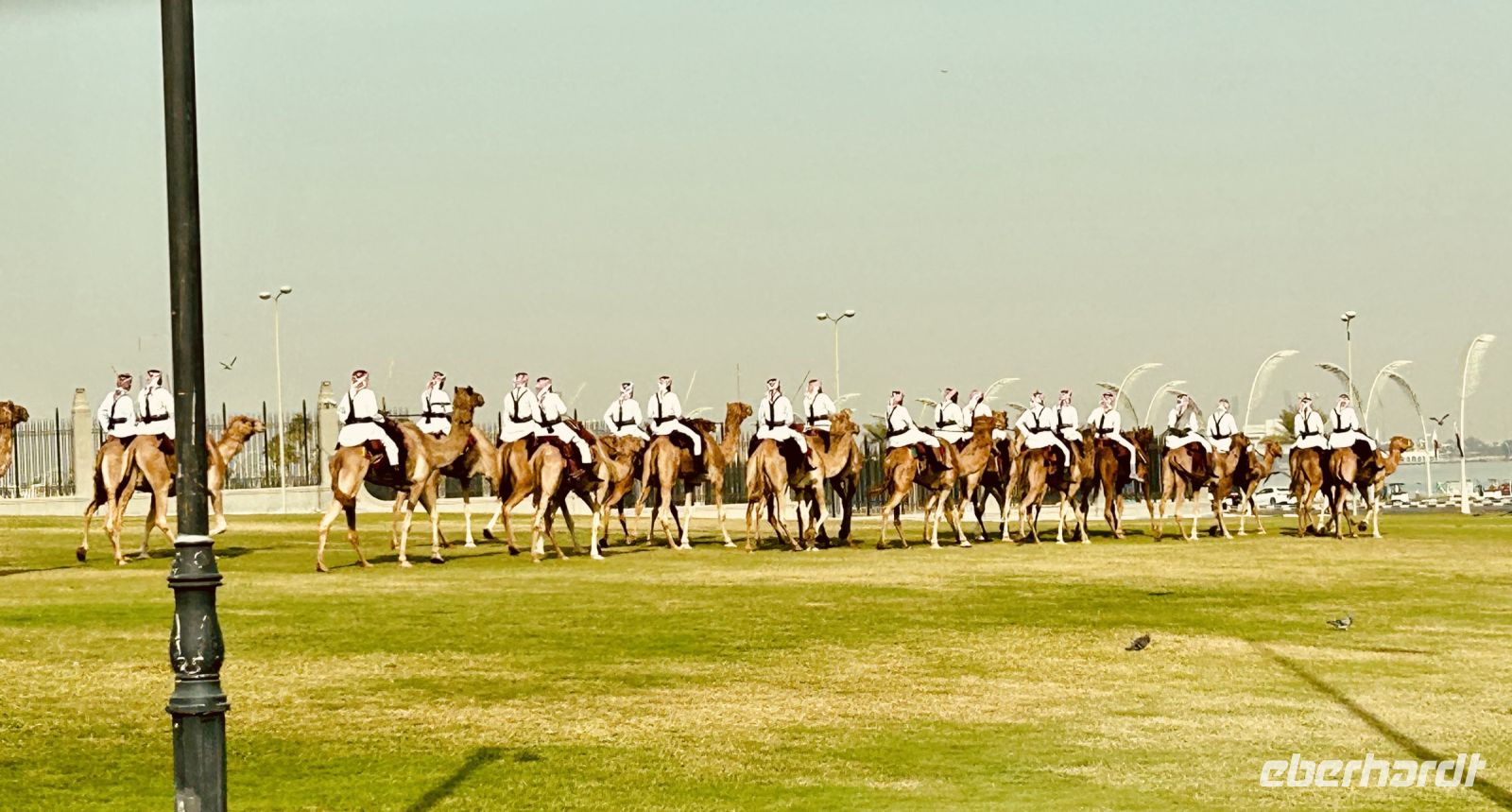 Wie gut es den stolzen Araber-Pferden hier in Katar geht, erleben wir im Al Shaqab Reitsportzentrum in der Education City. Nachdem wir die gigantische Reithalle (indoor und outdoor) von den Logenplätzen besichtigt haben, besuchen wir die edlen Tiere in ihren luxuriösen Stallungen. Besonders die Stallungen der königlichen Pferde sind außergewöhnlich: penibel sauber, mit Marmor ausgekleidet, klimatisiert. Alle hier betreuten Tiere genießen eine Rundum-Betreuung mit Laufbändern, Pool und Jacuzzi nach einem anstrengenden Training.