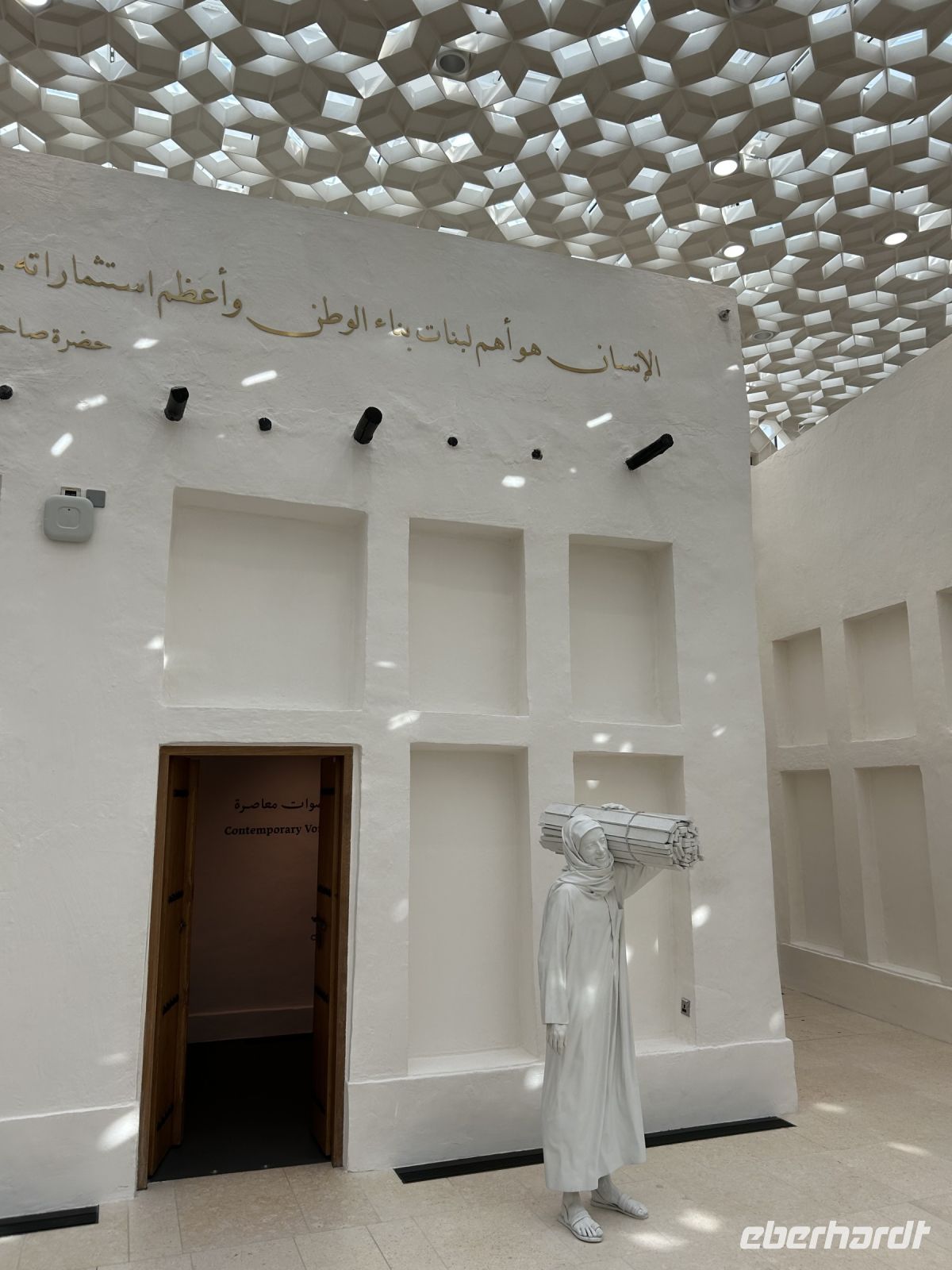 Im Nationalmuseum begeben wir uns auf eine visuelle Reise durch Katars Geschichte vom prähistorischen Zeitalter bis zur Moderne. Schon allein die Architektur beeindruckt uns sofort. Inspiriert von einer Wüstenrose erschuf der preisgekrönte Star-Architekt Jean Nouvel dieses Gesamtkunstwerk. Das interaktive Museum ist keinesfalls langweilig und gibt uns einen wunderschönen Einblick in die kurze, wechselvolle Geschichte Katars.