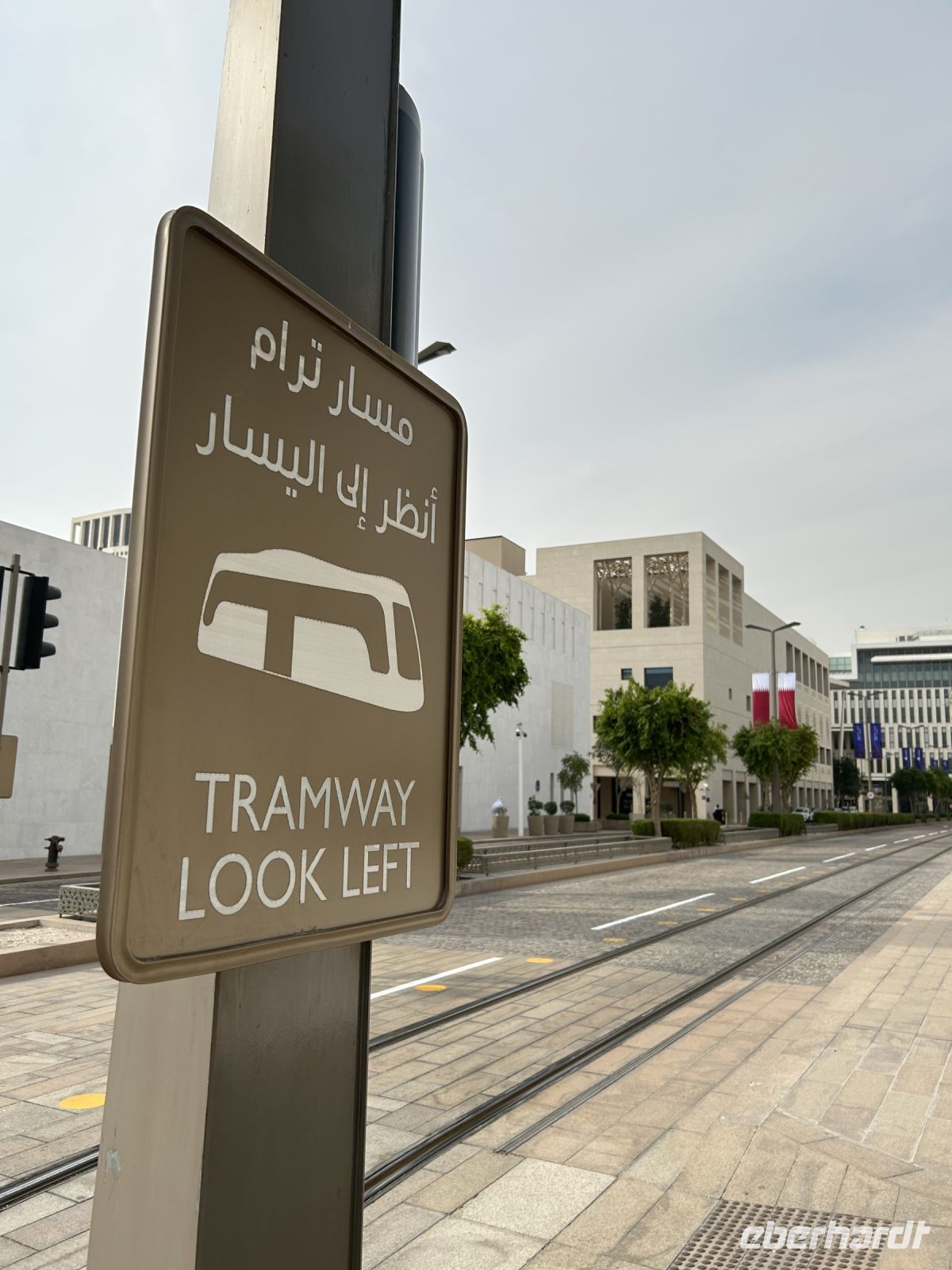 Wir befinden uns in neuen Stadtteil Msheireb Downtown - eine Smart City, die inmitten des kulturellen Bezirks Doha liegt. Hier findet man zahlreiche Wohn- und Geschäftshäuser, Museen und Geschäfte, die neu, aber in Anlehnung an die traditionelle Bauweise entstanden sind. Mit einer futuristischen Straßenbahn erkunden wir dieses Gebiet während einer kleinen Rundfahrt.
