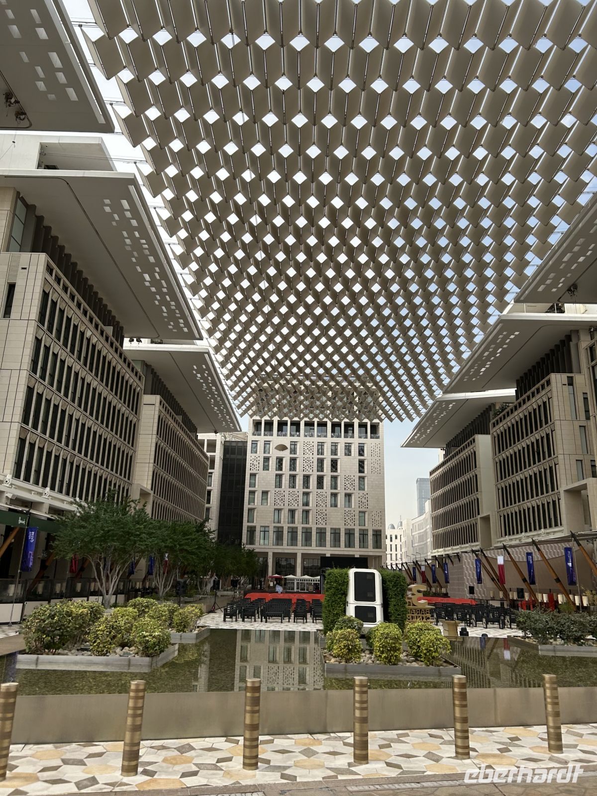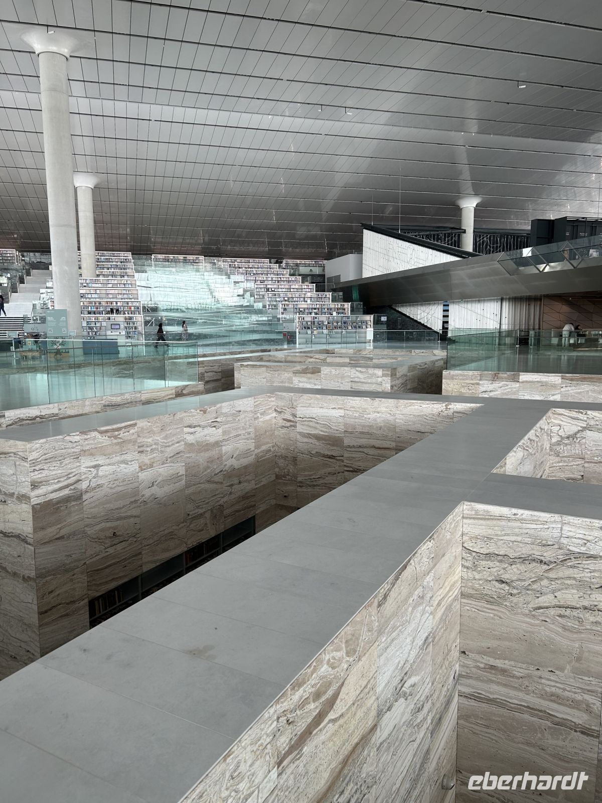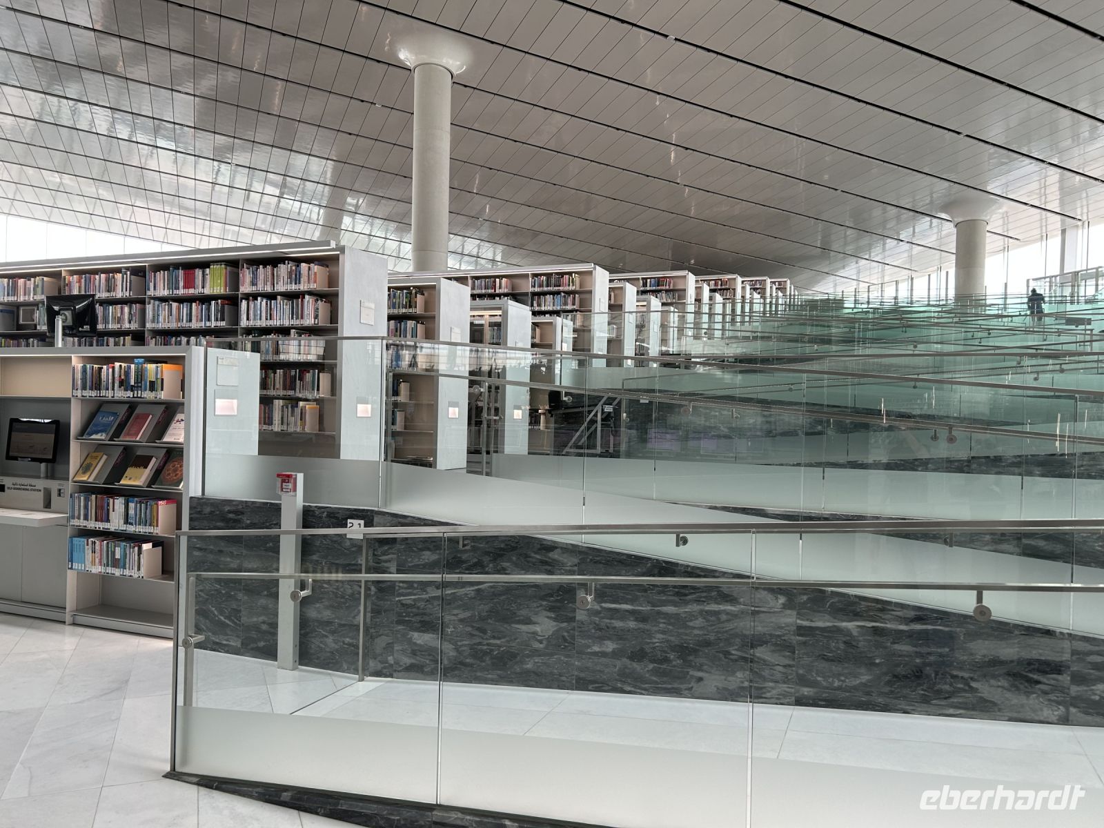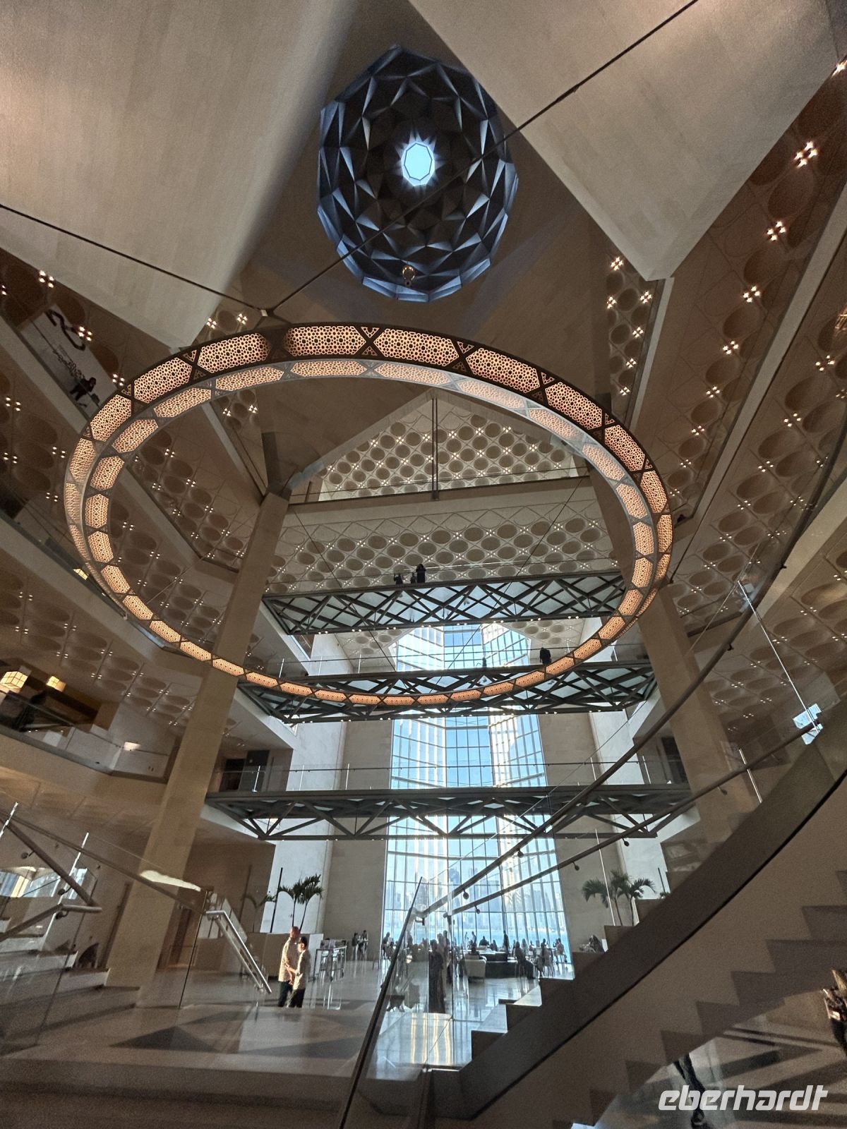 Anschließend statten wir der beeindruckenden Nationalbibliothek von Katar (Qatar National Library) einen Besuch ab. Auch hier beeindruckt zunächst das Äußere des von Rem Koolhaas entworfenen Gebäudes. Im Inneren sind Licht, Luft und Sichtbarkeit die Markenzeichen der innovativen Bibliothek. Die Bücherregale selbst sind ein wesentlicher Bestandteil der Architektur: Sie scheinen aus dem Boden emporzuwachsen und verdeutlichen den Wert, den Bücher in der Kultur Katars haben.