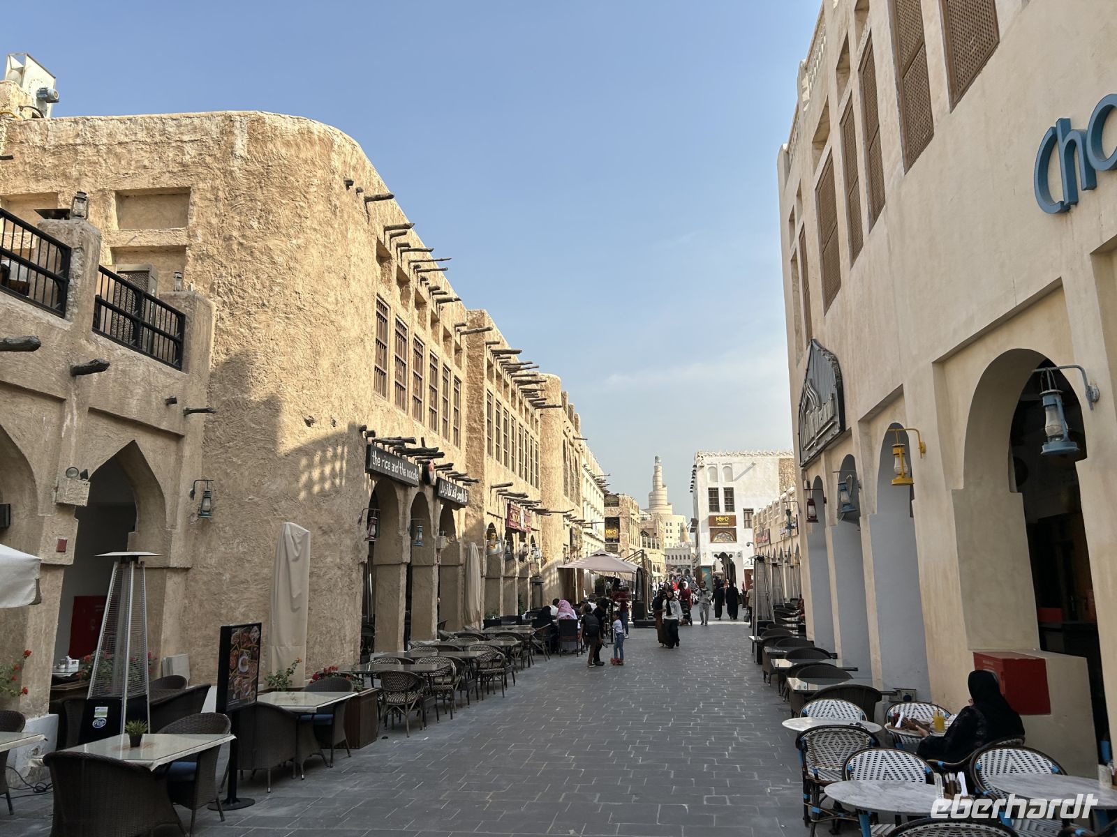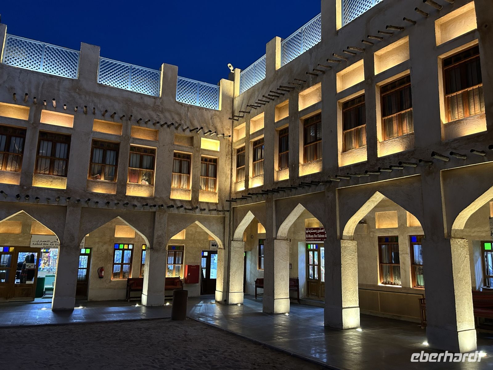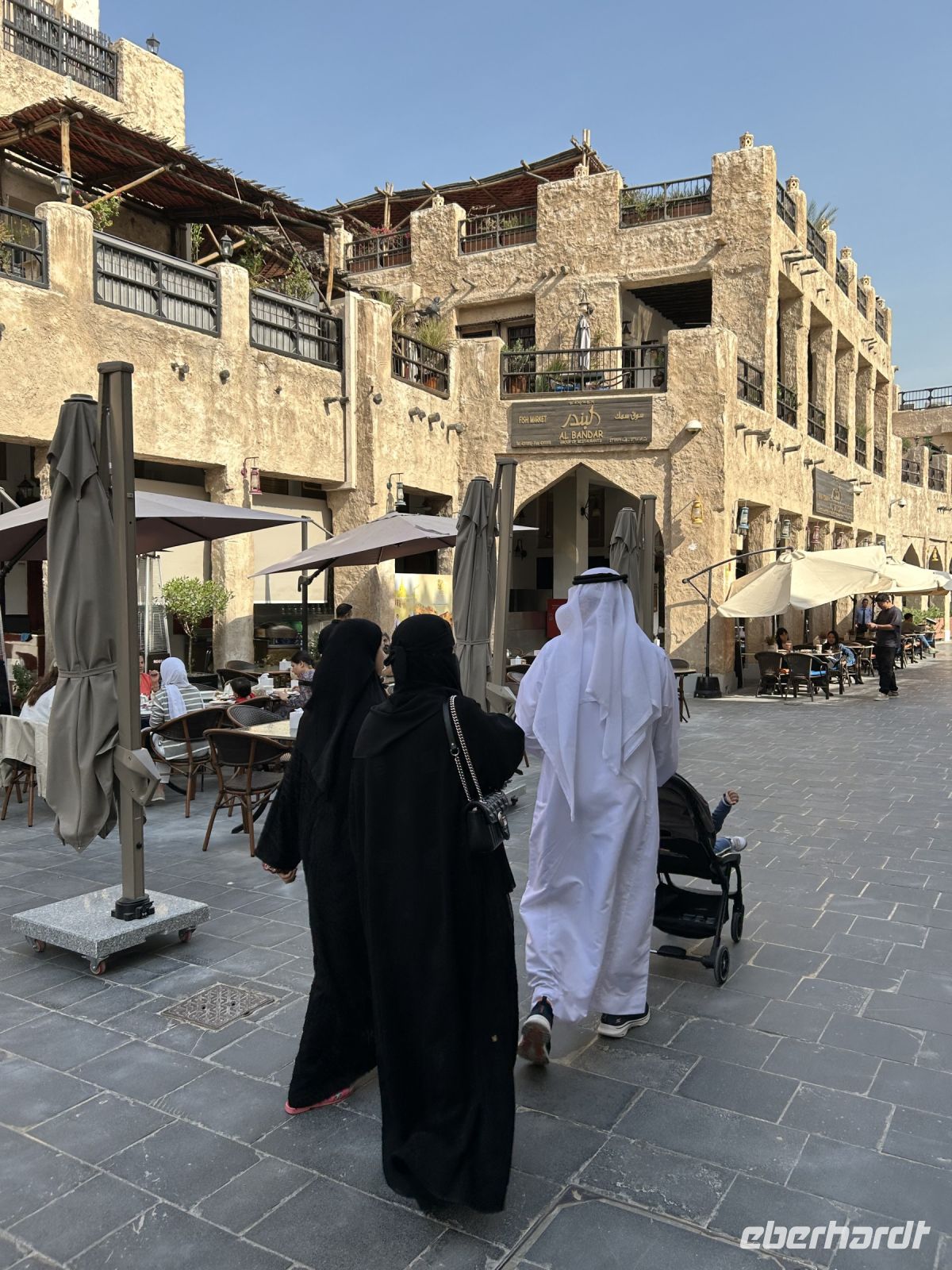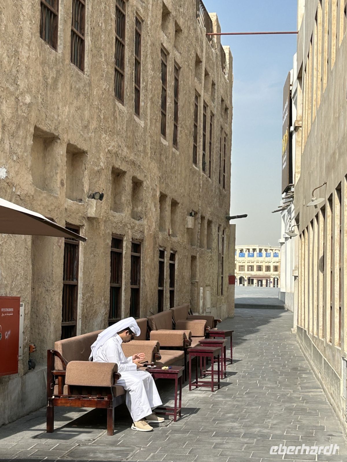 Im angrenzenden, traditionellen Souk Waqif suchen wir zunächst eine Wechselstube auf und bummeln etwas durch die Gassen. Am Abend, wenn das Leben hier erst richtig losgeht, werden wir nochmals da sein.