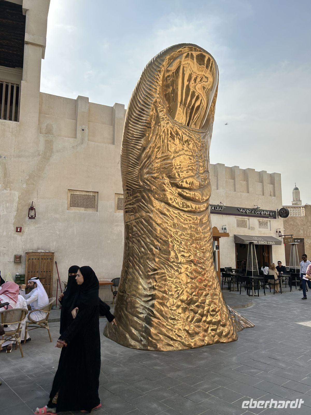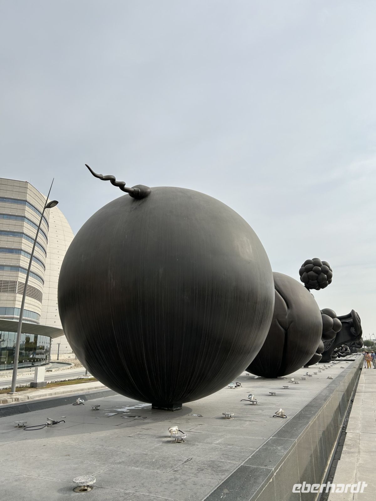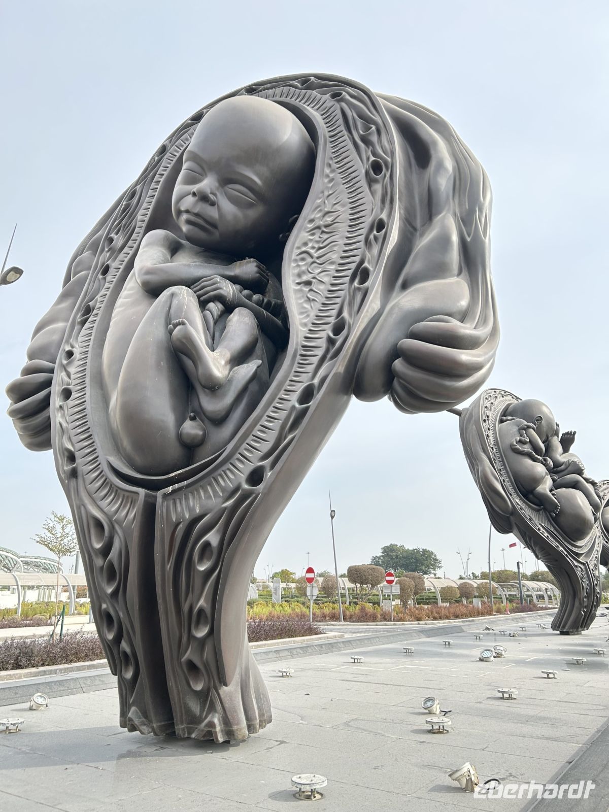 Auch am letzten Tag des Jahres haben wir ein interessantes Besichtigungsprogramm in Doha. Wir beginnen mit einem außergewöhnlichen Kunstwerk, welches man im öffentlichen Raum eines islamischen Landes kaum erwartet: „The Miraculous Journey“ ("die wundersame Reise") des britischen Künstlers Damien Hirst. 14 gigantische Bronze-Skulpturen bilden ein Gesamtkunstwerk, welches zeigen die Reise von der Befruchtung einer Eizelle bis zur Geburt eines Kindes - und dieses steht, wie passend, vor dem hochmodernen Frauen- und Kinderkrankenhaus Sidra Medicine Hospital.