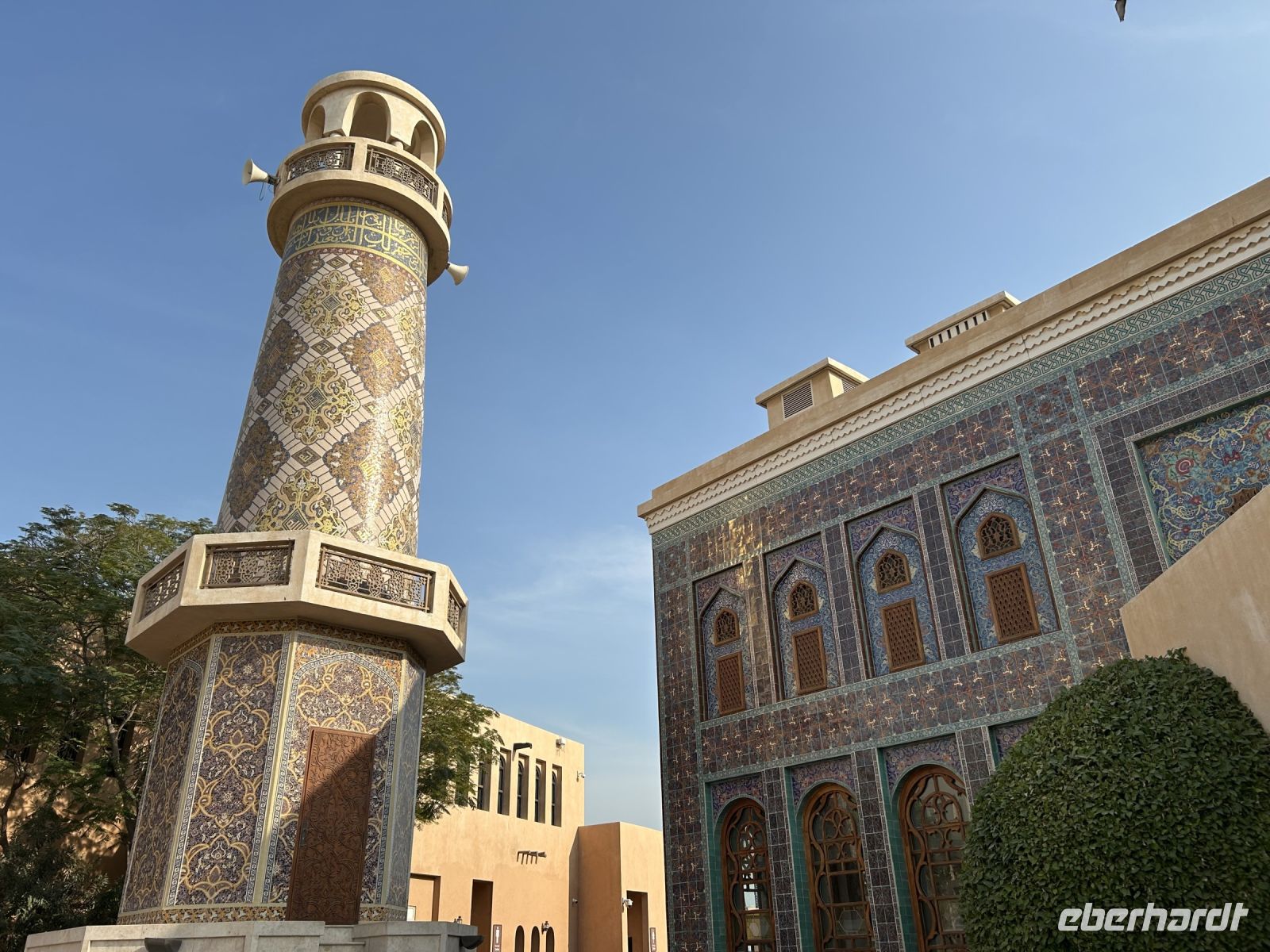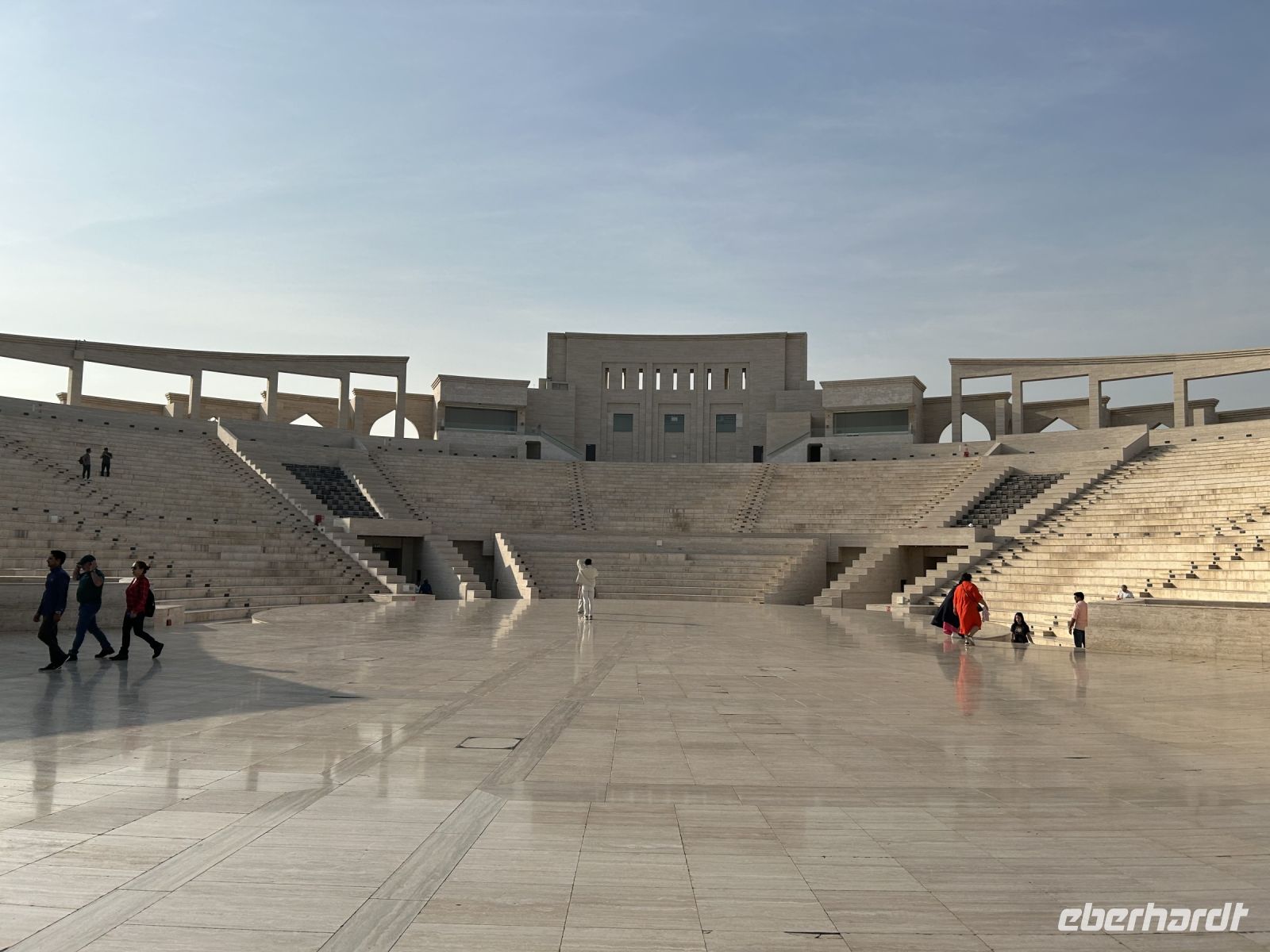 Dass das kleine Land Katar, gelegen an der Nahtstelle zwischen dem Nahen Osten und Asien, ein Schmelztiegel der Kulturen ist, können wir im Katara Kulturzentrum. Hier besuchen wir die Katara-Moschee und werden von Osman in den Islam eingeführt. Während unseres Spaziergangs sehen wir das Amphitheater, welches im klassisch-griechischen Stil in Verbindung mit islamischen Elementen erbaut wurde und Platz für mehrere tausend Besucher bietet.