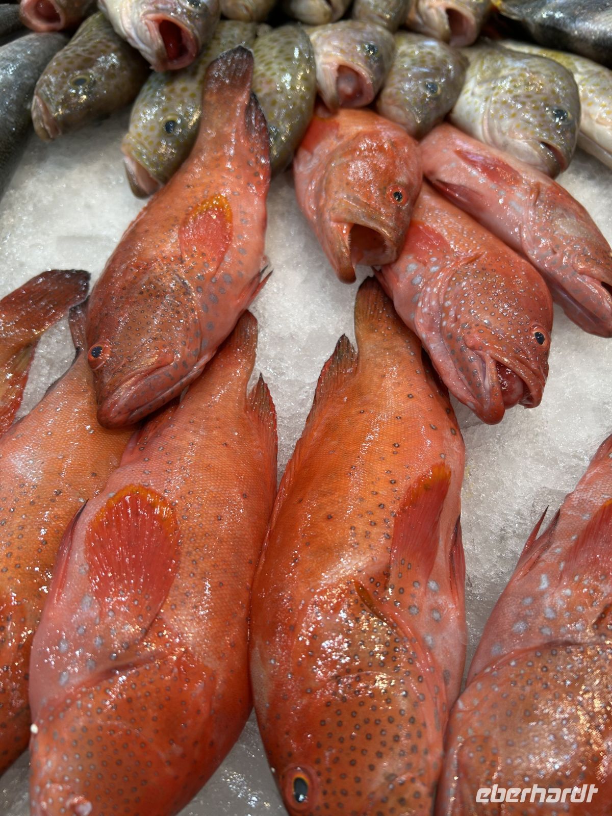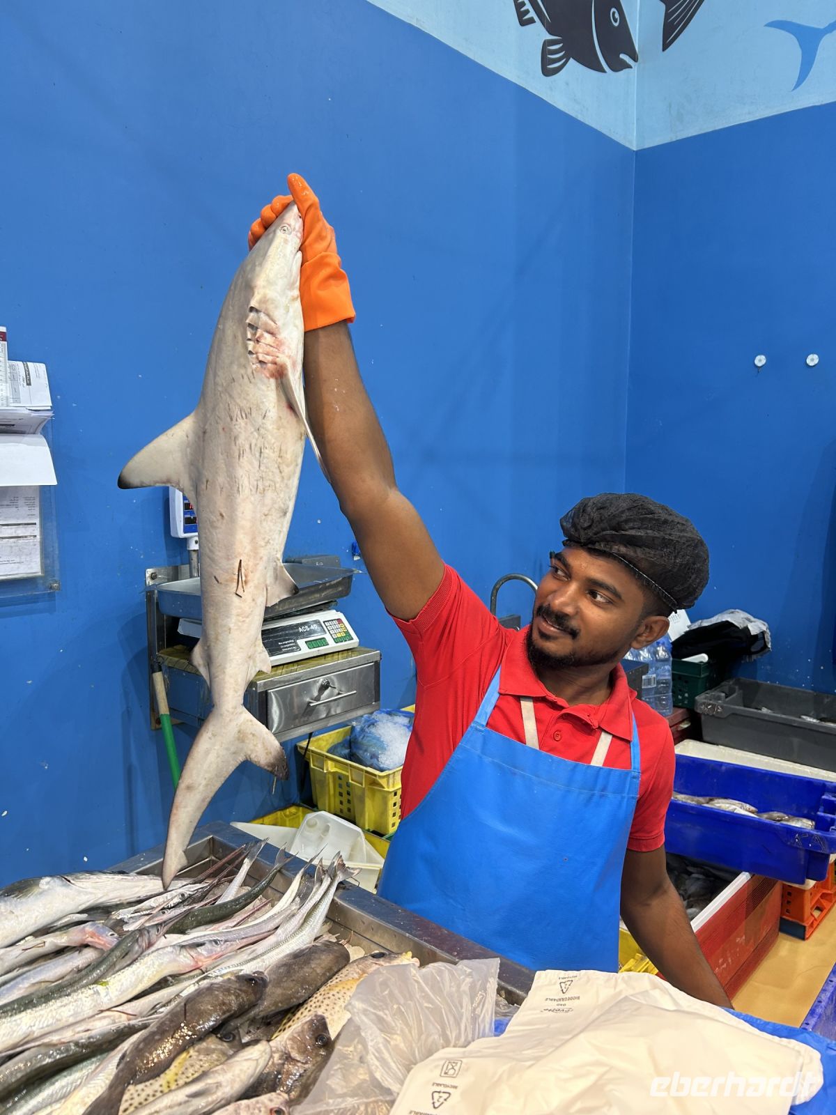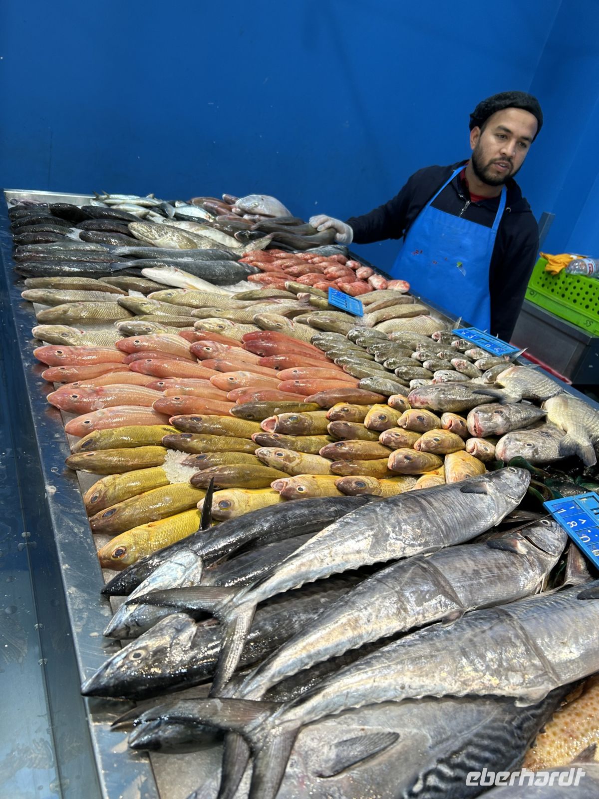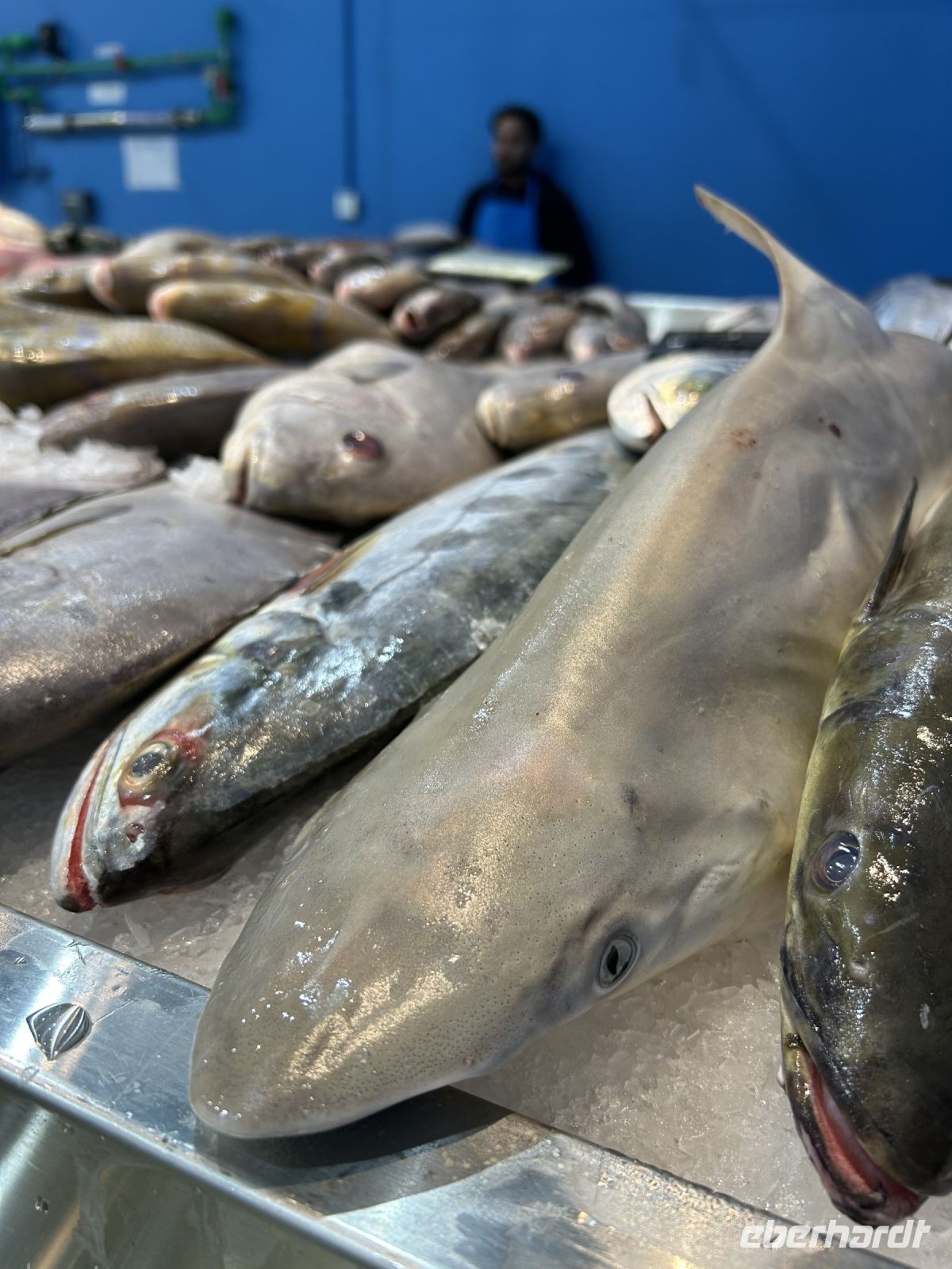 Die kleine Hafenstadt Al Khor ist nicht weit entfernt und so statten wir dem Hafen einen Besuch ab. Hunderte traditionelle Dhau-Boote ankern hier. Die Fischer sind alle schon wieder mit ihrem frischen Fang zurück, den wir in der hiesigen Fischhalle bewundern können. Die Schätze des Meeres liegen akkurat und unter besten hygienischen Voraussetzungen in den Auslagen und werden stolz angepriesen.
