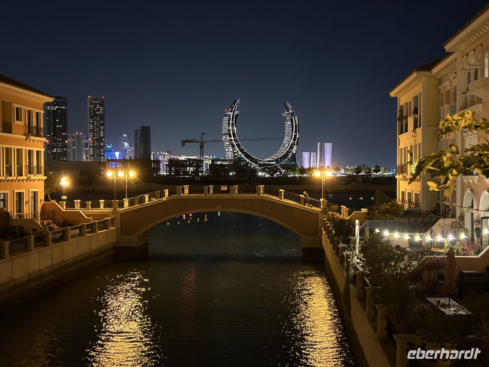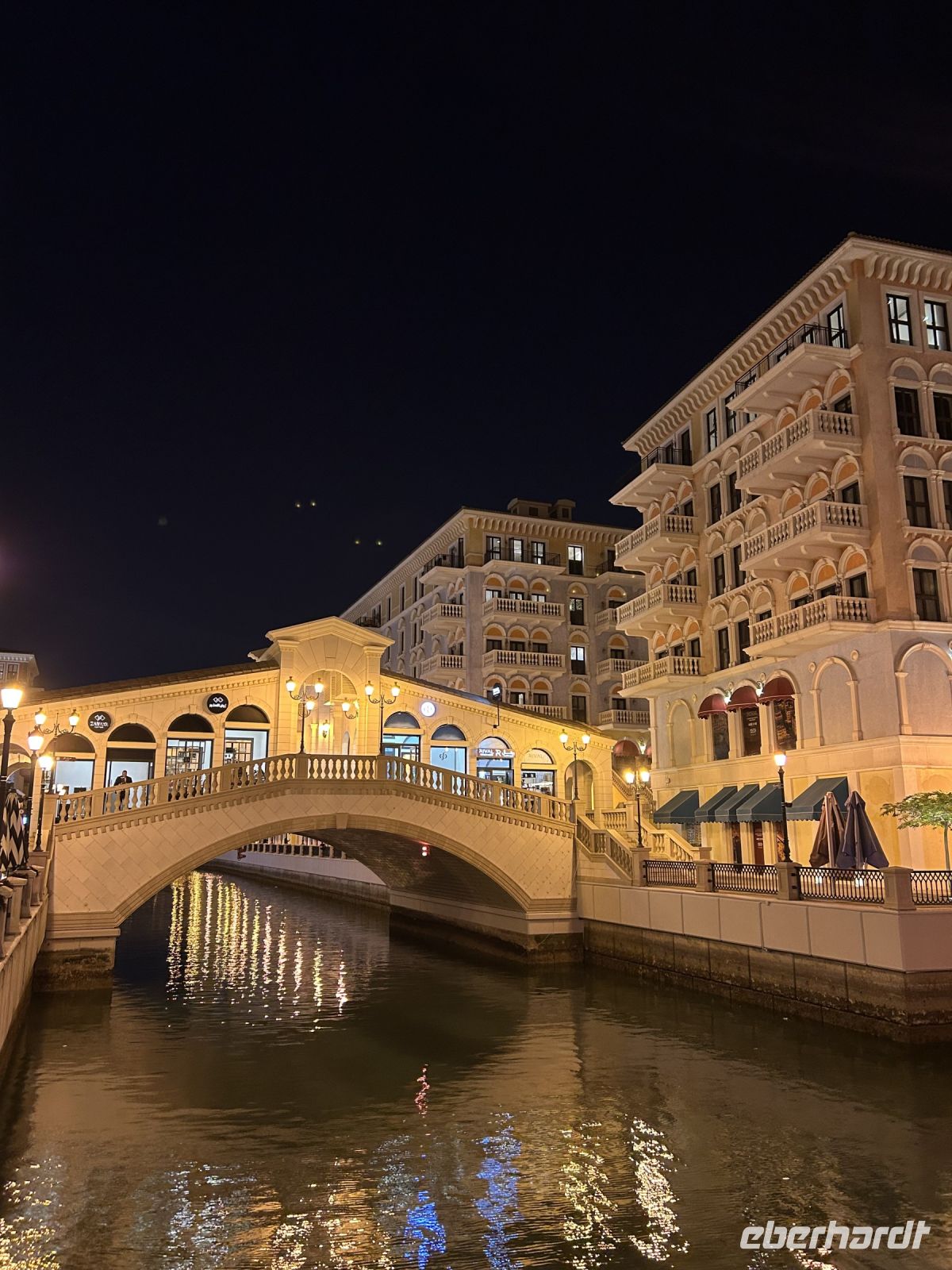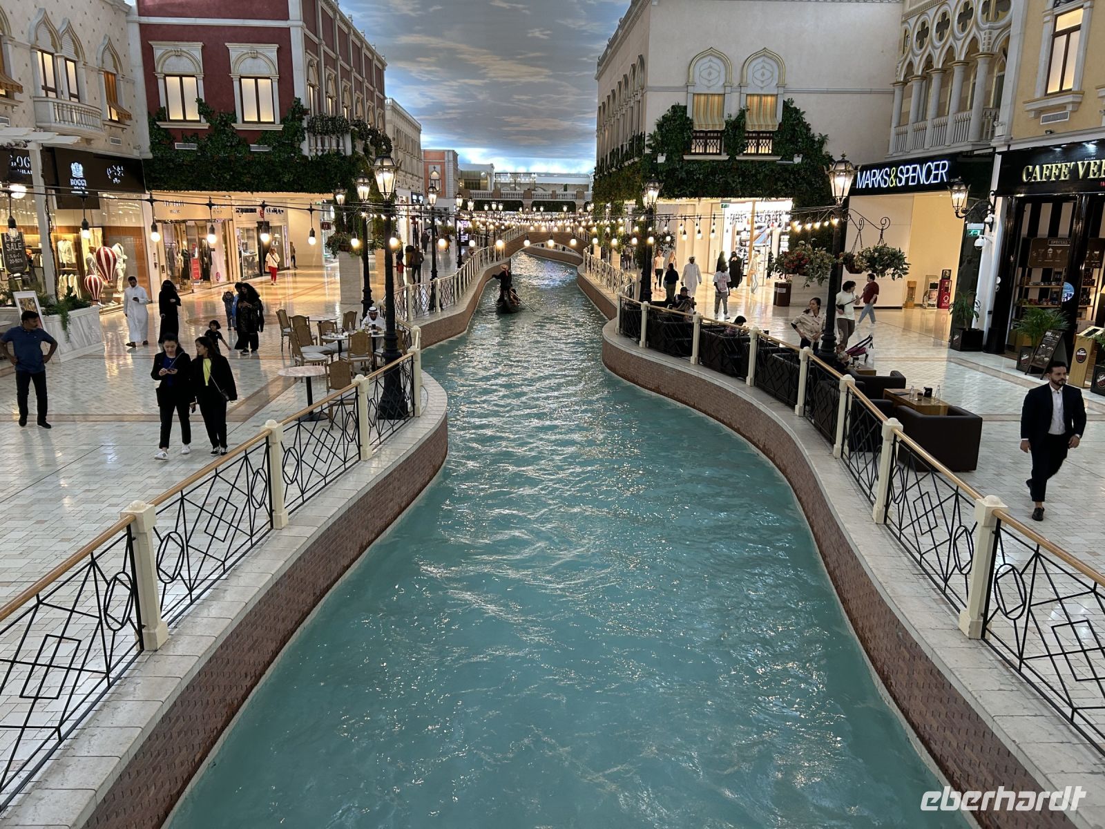 Bevor wir wieder zurück zum Hotel fahren, stoppen wir am Khalifa Int. Stadium mit dem benachbarten Torch Tower und genießen einen Aufenthalt in der Villaggio Mall, die an Venedig erinnert. Luxus-Boutiquen, Indoor-Freizeitpark und ein venezianischer Kanal mit Gondolieren bezaubern vor allem die Einheimischen.