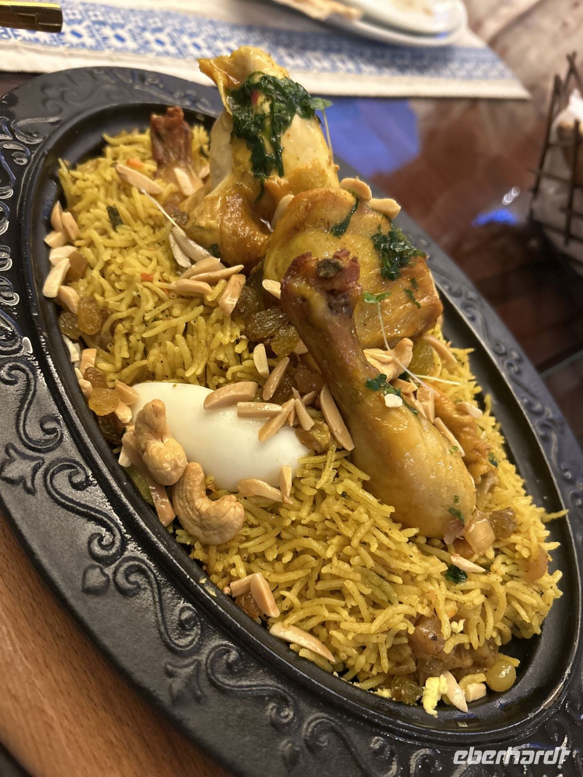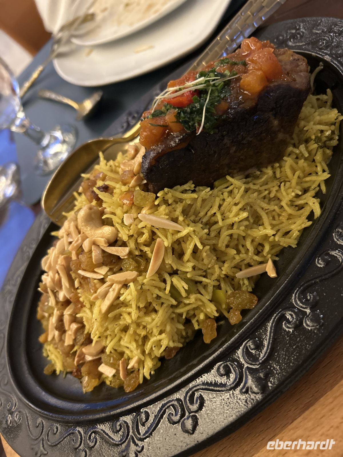 Kulinarisch verabschieden wir uns von diesem faszinierenden Land beim Abendessen im katarischen Restaurant SMAT, in dem wir exquisit speisen und auf hohem Niveau bedient werden - für unsere Verhältnisse schon fast zu viel des Guten :-)