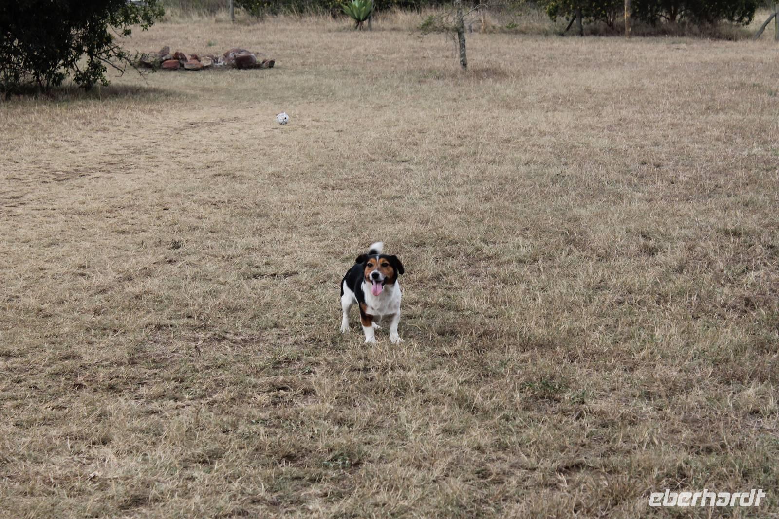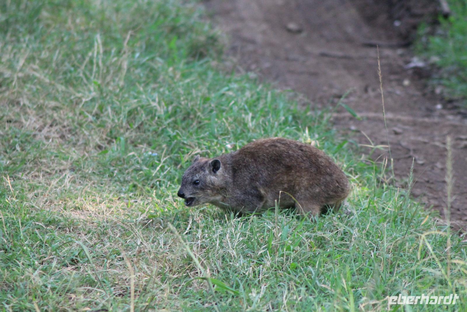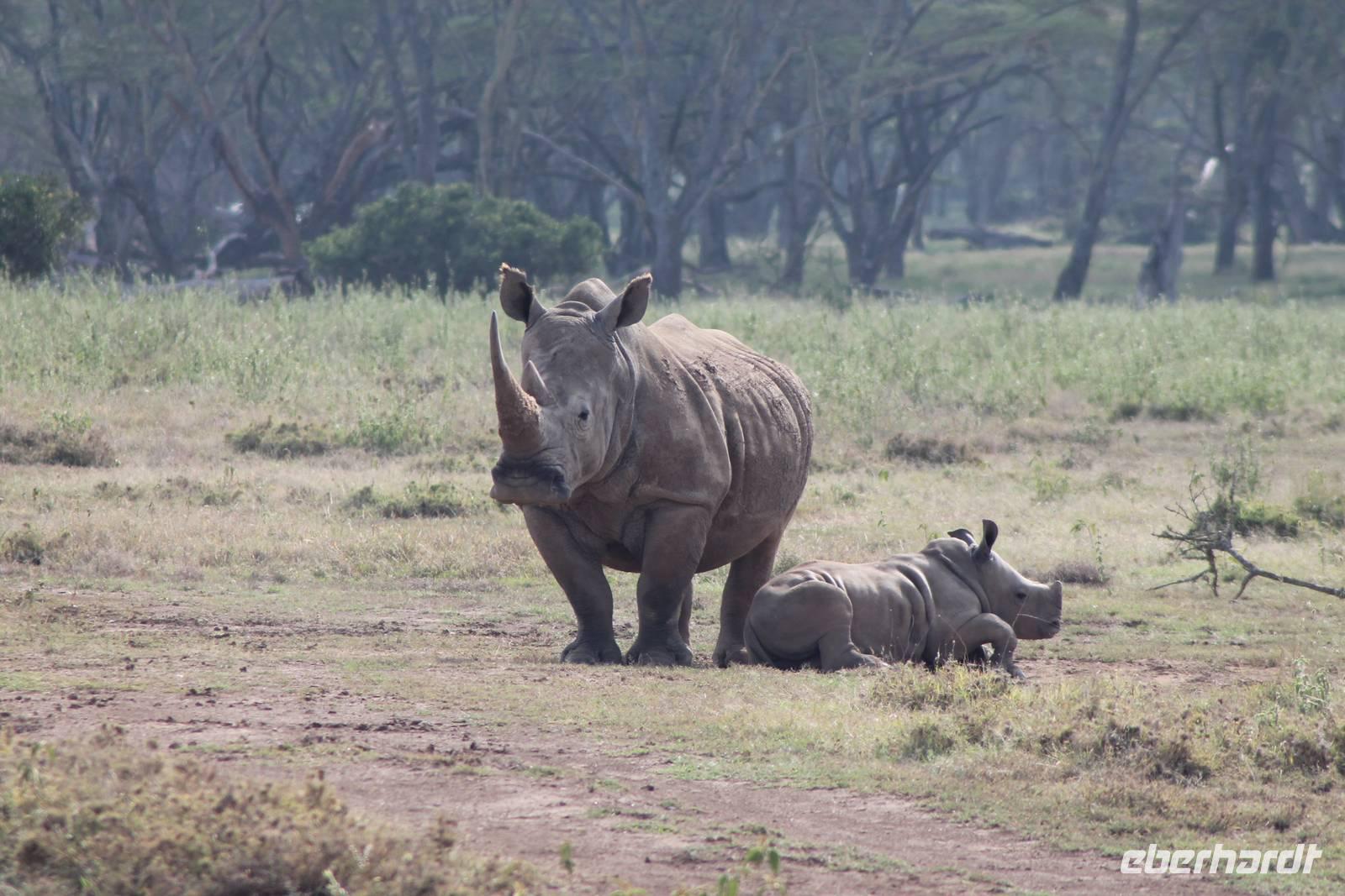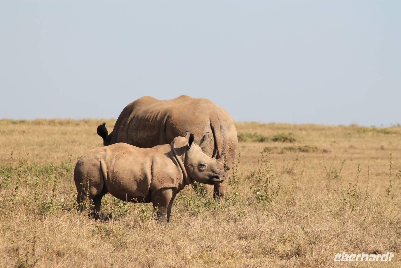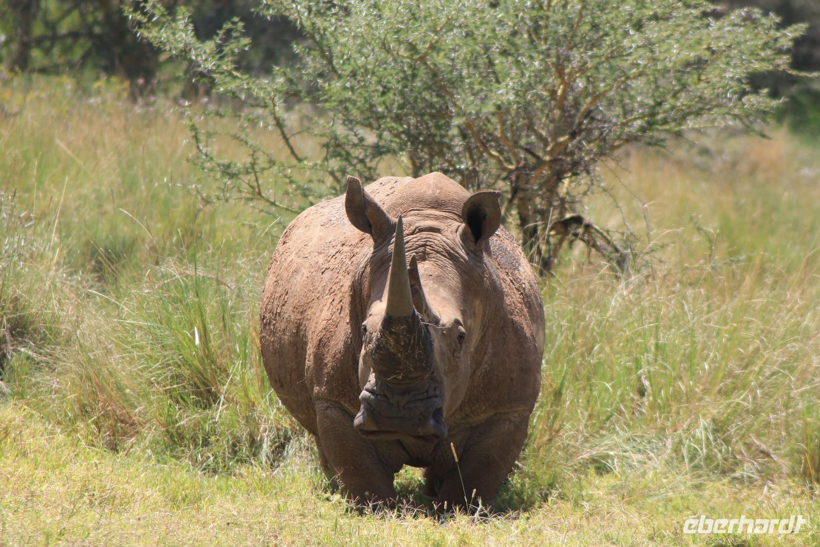 Heute frühstückten wir bereits 6.30 Uhr, denn wir wollten ja früh auf Safari in dem privaten Solio Reservat, um möglichst viele Tiere zu sehen. Und dies gelang uns dann auch - wir sahen Thomsongazellen, Hagedasch, Impalas, Wasserböcke, Breitmaulnashörner, Netzgiraffen, Elanantilopen, Steppenzebras, Kaffernbüffel, Sekretäre, Weißbrauenkuckuck, Mausvogel, Warzenschweine, Spießböcke, Steppenzebras, Grünmeerkatzen, Kronenkiebiz, Glanzstare, Gaukler, Schwarzhalsreiher, Augurbussard, Sperbergeier und Gabelracke. Besonders bekannt ist das Reservat vor allem wegen der zahlreichen Spitz- und Breitmaulnashörner, die wir ganz nah und in allen Lebenssituationen bestaunen konnten. Zurück auf Petras Ranch wurde zum Mittagessen Lasagne, Zucchini und Salat serviert. Dann wurde eine kleine Mittagsruhe eingelegt und um vier trafen wir uns wieder für einen Spaziergang. Zwei von Petras Angestellten begleiteten uns und wir sahen einige Impalas, diverse Pflanzen und vor allem tat es richtig gut, sich zu bewegen. Oskar und seine 2 Begleiter machten einem Hasen kurzzeitig das Leben schwer, aber anscheinend war der Hase doch schneller . Unseren Weg mussten wir dann noch ein Stück verlängern, denn unser Begleiter sah Büffel auf unserem Weg und auf diese nahe Begegnung hatten wir dann doch keine Lust. Zurück auf der Ranch genossen wir wieder die herrliche Ruhe bei einem Getränk auf der Terrasse. Um Moskitos und die damit verbundene Malaria musste man sich auch keine Sorgen machen, dafür liegt Petras Ranch zu hoch. Petra hatte uns noch von ihrem Kinderheim-Projekt erzählt, das viele von uns gern unterstützen und ihr eine Kleinigkeit für die Kinder mitgaben.