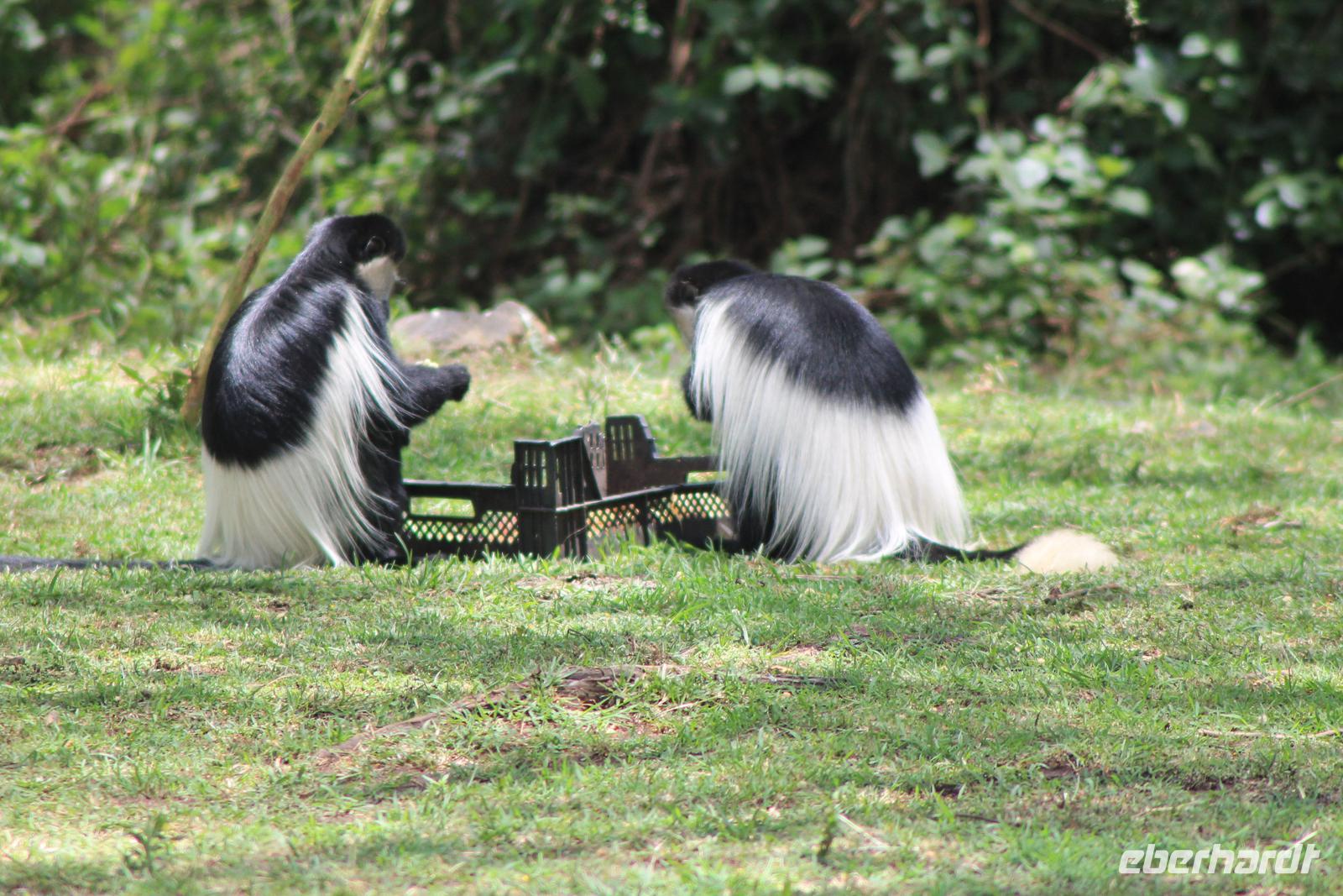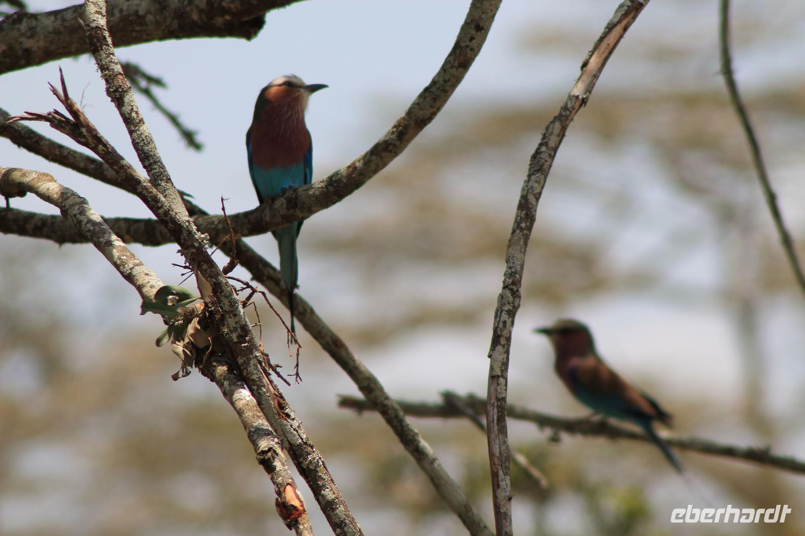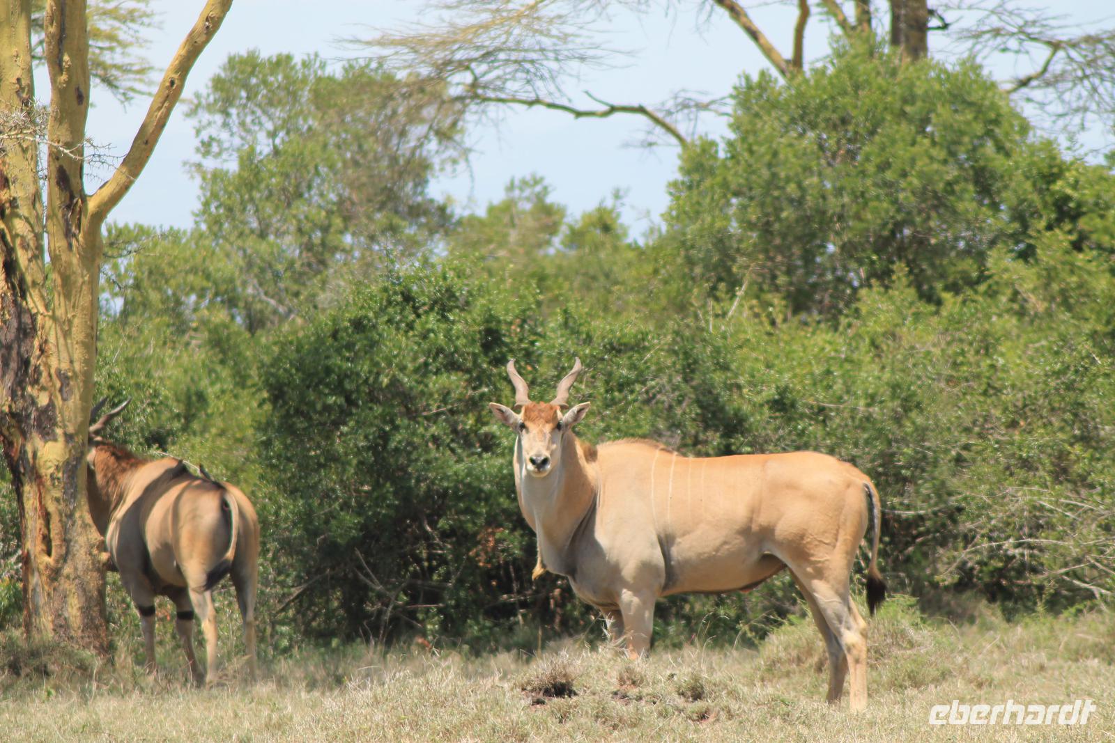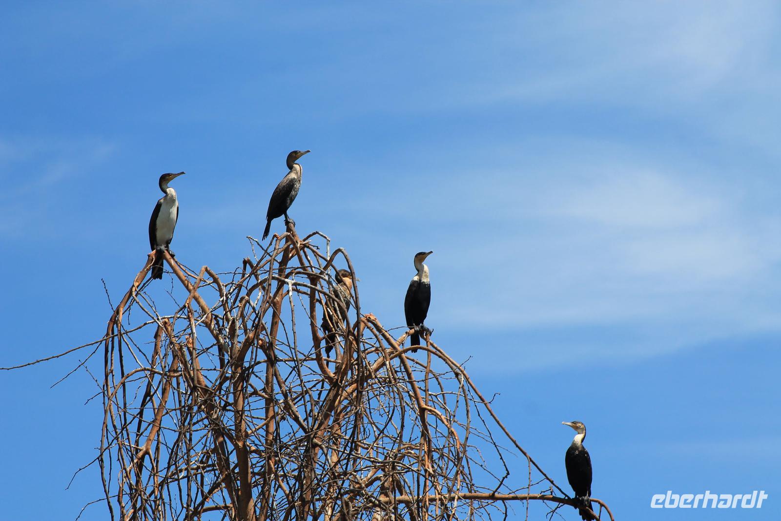 Das Frühstück nahmen wir heute vom reichlichen Buffet ein und verstauten das Gepäck für den Umzug am Mittag in die Bungalows in einen Gepäckraum. Dann fuhren wir mit den Jeeps und unseren „Jungs" zum Bootsableger. Für unsere Gruppe wurden zwei Boote vorbereitet, was von vielen mit Skepsis beobachtet wurde, denn mit den Booten in Deutschland konnte man diese nicht unbedingt vergleichen. Dennoch stiegen alle mit Rettungsweste bekleidet ein und wir fuhren los. Wir sahen unter anderem Kormorane, Pelikane und Reiher und dann versuchten unsere Bootsführer, mit Fisch die hier ansässigen Seeschreiadler bzw. Fischadler anzulocken. Sonderlich hungrig waren diese aber nicht, und so klappte es, für beide Boote sichtbar, nur einmal, dass ein Adler nah ans Boot kam, um sich die „Beute" zu holen. Und dann passierte das Befürchtete: das erste Boot fuhr davon, und unseres blieb liegen - der Motor gab den Geist auf. Sofort telefonierte der Bootsführer mit seinem Chef, aber leider dauerte es eine ganze Weile, bis wir „gerettet" wurden. Unserer guten Stimmung tat dies zum Glück keinen Abbruch. Wir wurden von dem Boot abgeschleppt, in dem der andere Teil der Gruppe zuvor gesessen hatte und trafen uns im Elsamere Conservation Center wieder. Die Gäste im intakten Boot sahen noch einmal den Seeschreiadler ganz nah und konnten auch Flusspferde aus dem Boot beobachten. Das Elsamere Conservation Center ist das ehemalige Wohnhaus von Joy und George Adamson, die mit der Aufzucht der Löwin Elsa sowie vielen weiteren Tierschutzprojekten und den daraus entstandenen Büchern und Filmen berühmt wurden. Wir beobachteten zuerst im wunderschön angelegten Garten die Colobus-Affen und sahen im Anschluss einen tollen Film über das Leben und das Lebenswerk der Familie Adamson. Danach wurde uns Kaffee, Tee und Kuchen angeboten und wir konnten einen Blick in das kleine Museum werfen.