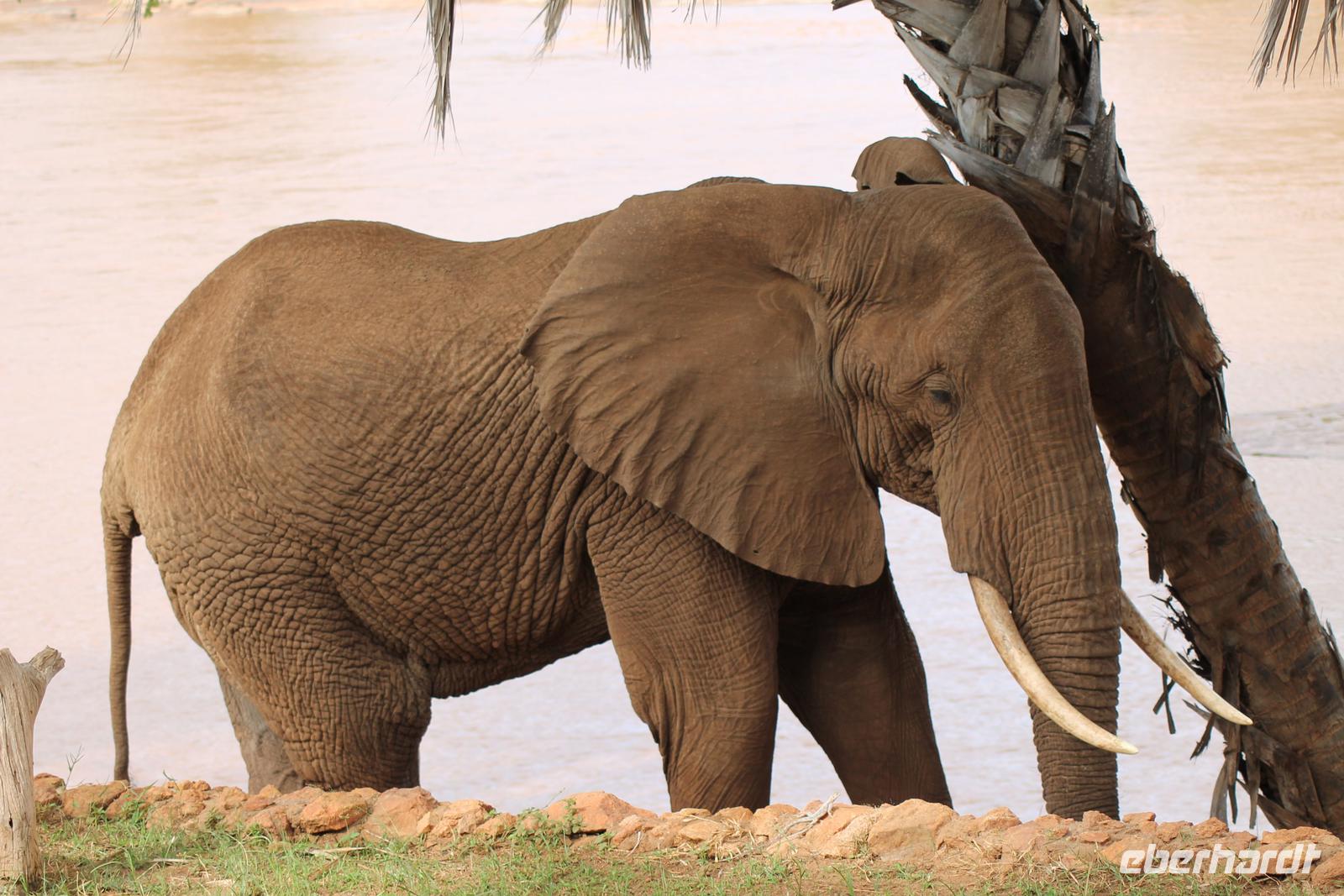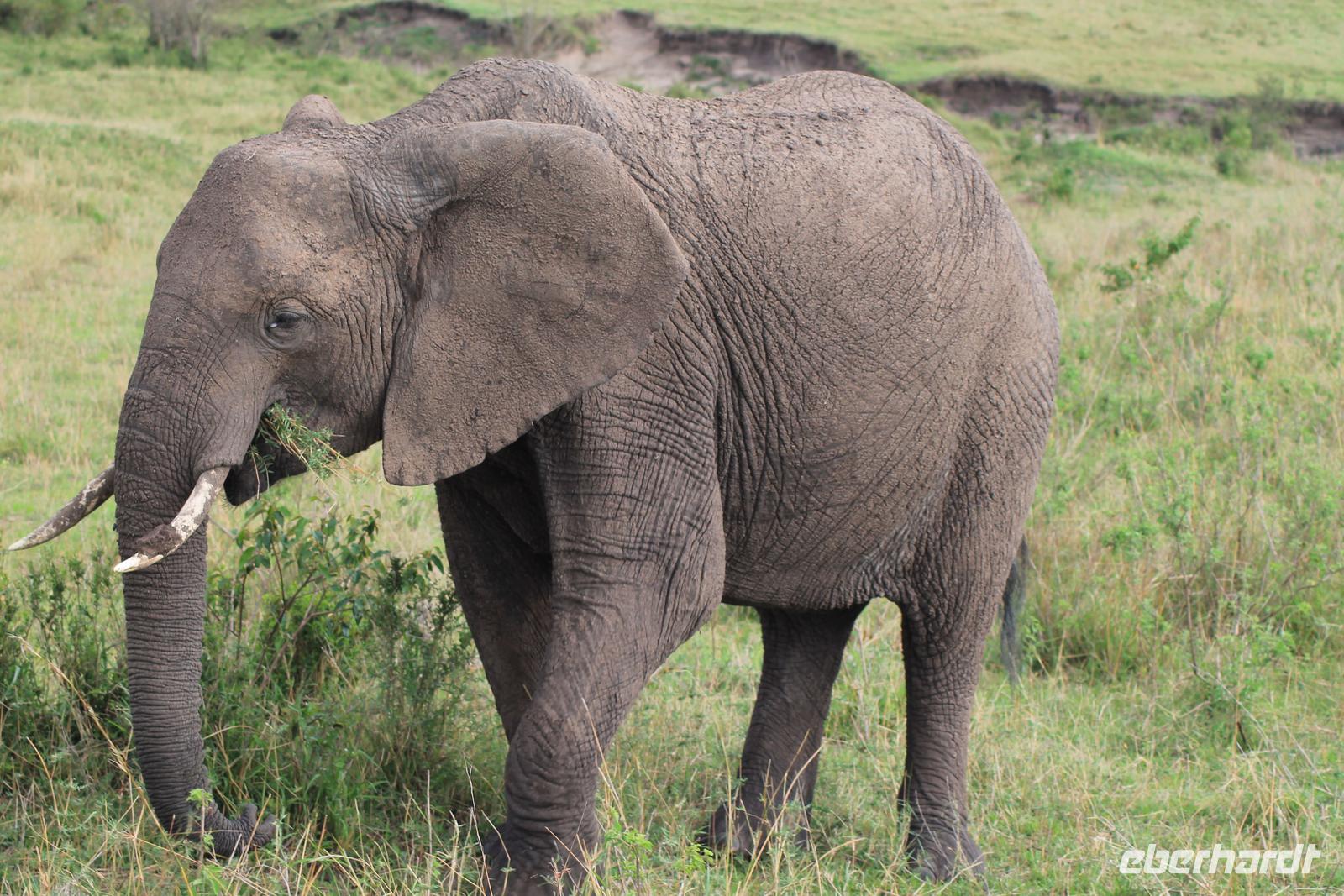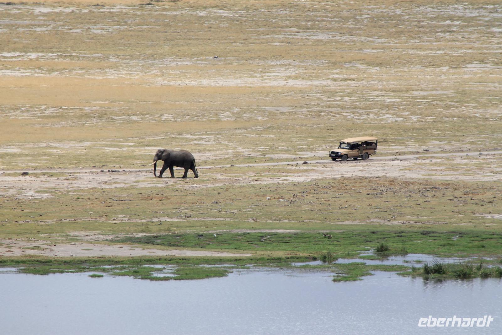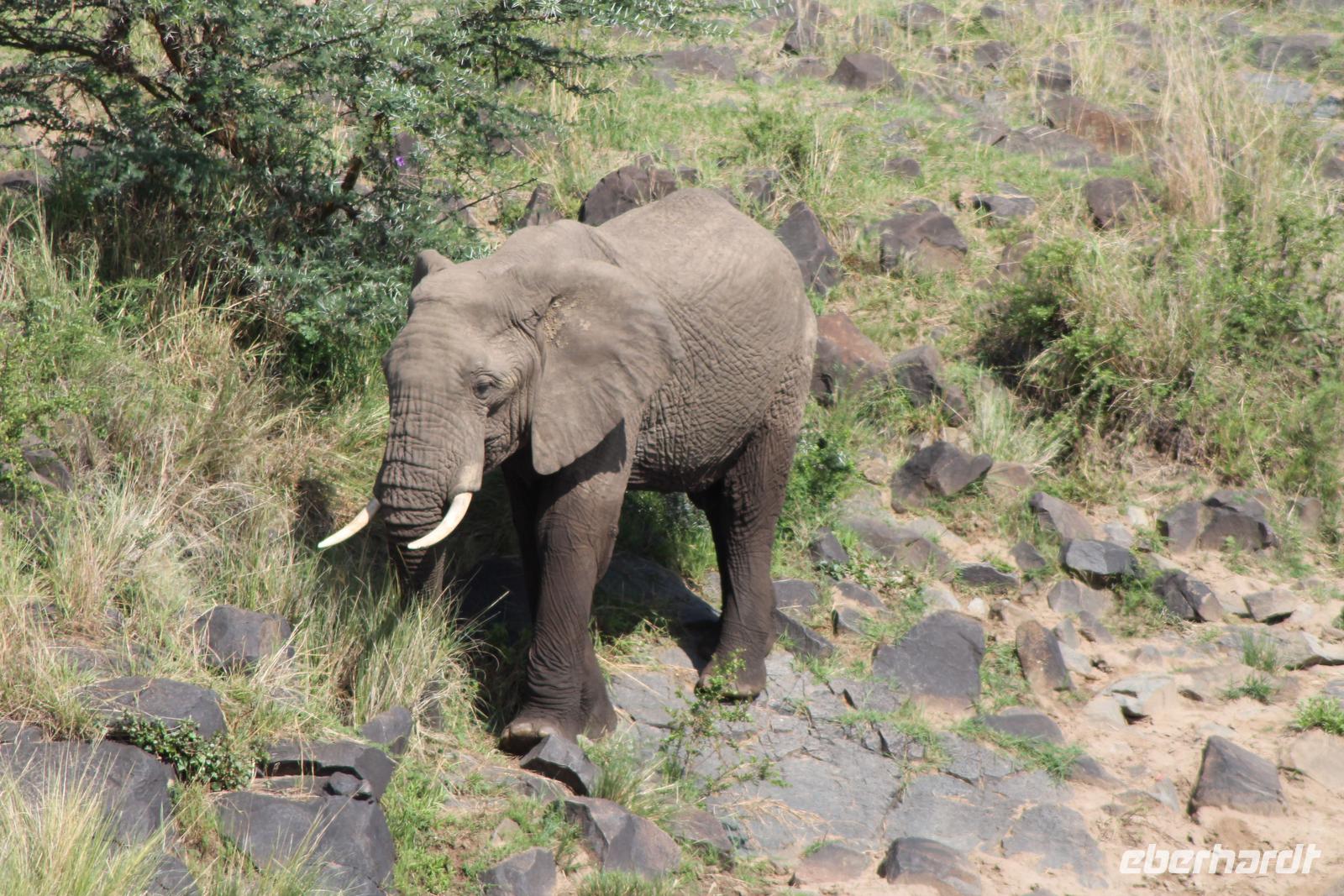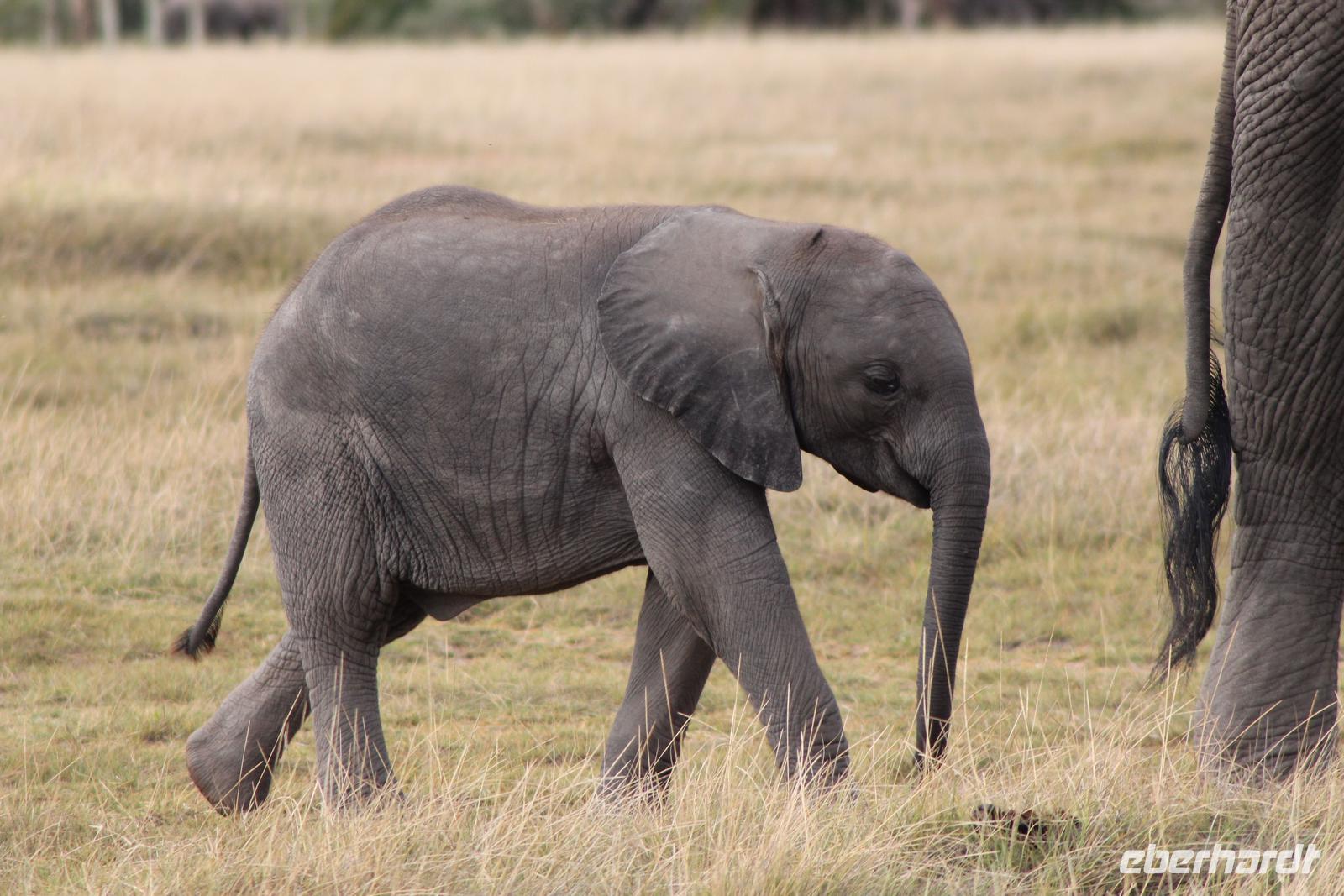 Nach dem Frühstück begaben wir uns Richtung Tsavo-Ost Nationalpark, der sich mit seiner riesigen Ausdehnung von den bisherigen Nationalparks auf unserer Route unterschied. Entlang der Chyulu-Berge, die mit ihren zahlreichen Quellen Wasserlieferant für Machakos und Mombasa sind, sowie mit Blick auf das 300 km lange und somit größte Plateau der Welt, das Yatta Plateau, erreichten wir den Nationalpark. Sofort stach uns die extreme Rotfärbung der Erde ins Auge, die durch Laterit verursacht wird. Auch die Baobab-Bäume, die Affenbrotbäume, hatten wir vorher auf unserer Reise noch nicht gesehen, da sie nur in Höhenlagen unter 1000 Meter vorkommen. Pünktlich zum Mittagessen erreichten wir die luxuriöse Galdessa Lodge. Mit nur 11 festen Zelten, die weitläufig verteilt sind, erfährt hier jeder ein besonderes Afrika-Erlebnis. Die größte Besonderheit ist dabei, dass das Camp nicht eingezäunt ist und jederzeit ein Elefant oder andere Tiere vor einem stehen können. Sylvia, die Managerin des Camps, warnte uns besonders vor dem „einzahnigen" Elefanten, aber ehrlich gesagt blieb uns allen kurzzeitig das Herz stehen, wenn einer der Dickhäuter am Zeltrand auftauchte. Was während der Mittagspause auch passierte. Dabei sind tolle Fotos und Videos entstanden. Auch schon vorab im Restaurant statteten uns die Vierbeiner einen Besuch ab - die ersten Male staunten alle nicht schlecht und zückten schnell den Fotoapparat, den nächsten Tag war dies schon in Fleisch und Blut über gegangen. Bei der Pirschfahrt an diesem Nachmittag sahen wir kurzzeitig einen Leoparden, der sich aber rasch wieder vor uns versteckte. Später konnte Jackson noch einen Artgenossen faul auf dem Baum liegend erspähen - viele Fotos wurden zum Beweis geschossen. Wir sahen Dik-Diks, kleine Kudus, Braunbauchflughühner, Rotschnabel-Tokos - wobei die Vögel an diesem Tag wenig Aufmerksamkeit erhalten sollten - die Schildkröte versteckte sich schnell vor uns, den Schlangenadler konnten wir von Weitem fotografieren und auch die berühmten roten Elefanten bekamen wir nach einigen Versuchen vor die Linse. Zurück im Camp war das warme Wasser für uns vorbereitet, sodass wir eine schöne Dusche nehmen konnten. Das Abendessen war gemächlich, aber sehr lecker. Und kurz nach halb elf wurde der "Saft" abgedreht, denn der Strom erfolgt größtenteils über eine Solaranlage, am Abend aber über einen Generator. Dann erlebte jeder von uns eine besondere Nacht, je nach Tierbesuch und Hörempfindlichkeit . Die Flusspferde und die Elefanten streiften an unseren Zelten vorbei, wobei die Flusspferde dazu noch grunzende Laute von sich geben, und ca. vier Uhr hörte man auch den Löwen in der Ferne brüllen. Afrika pur!