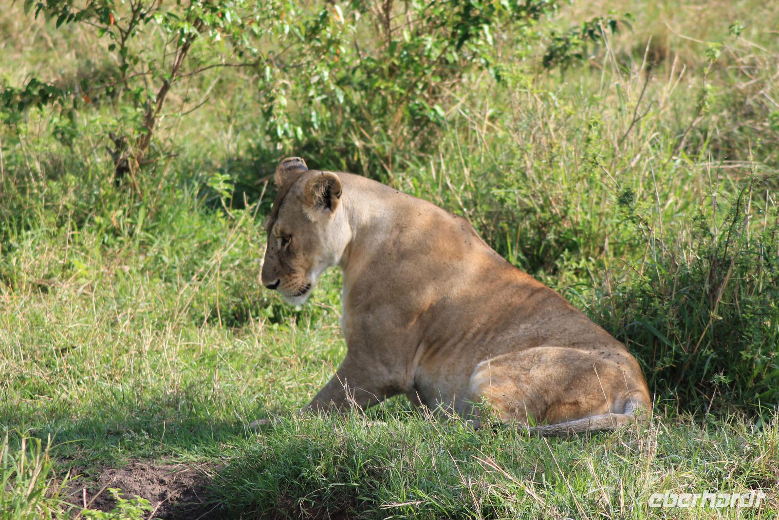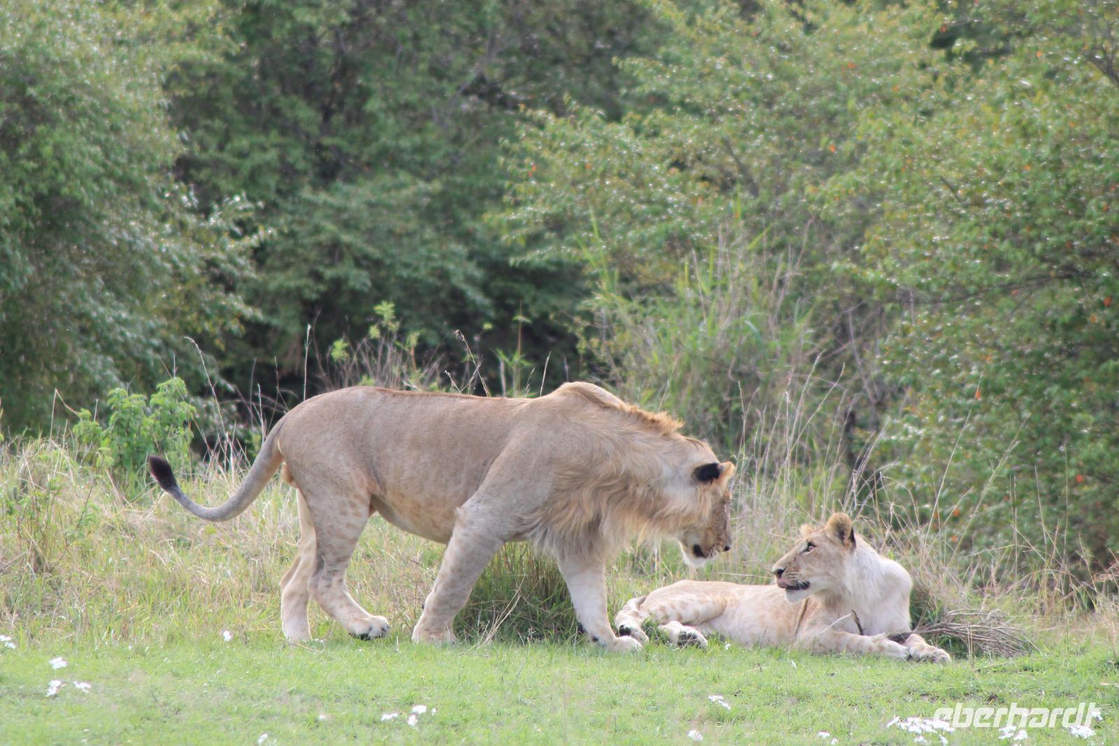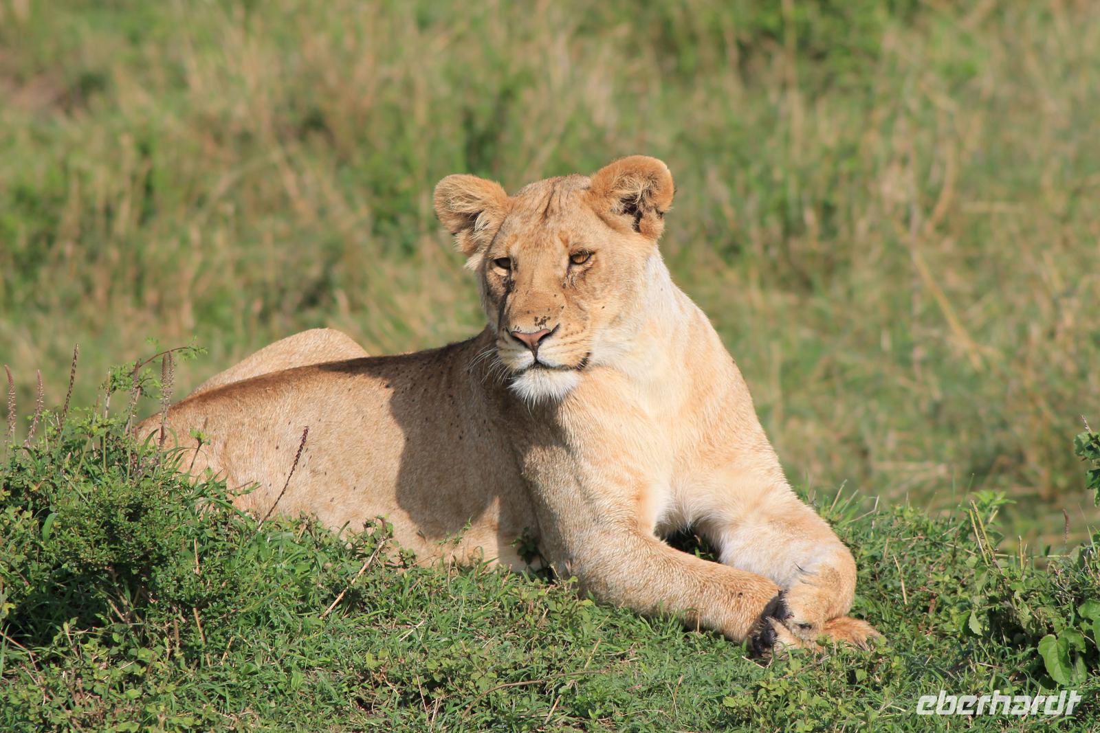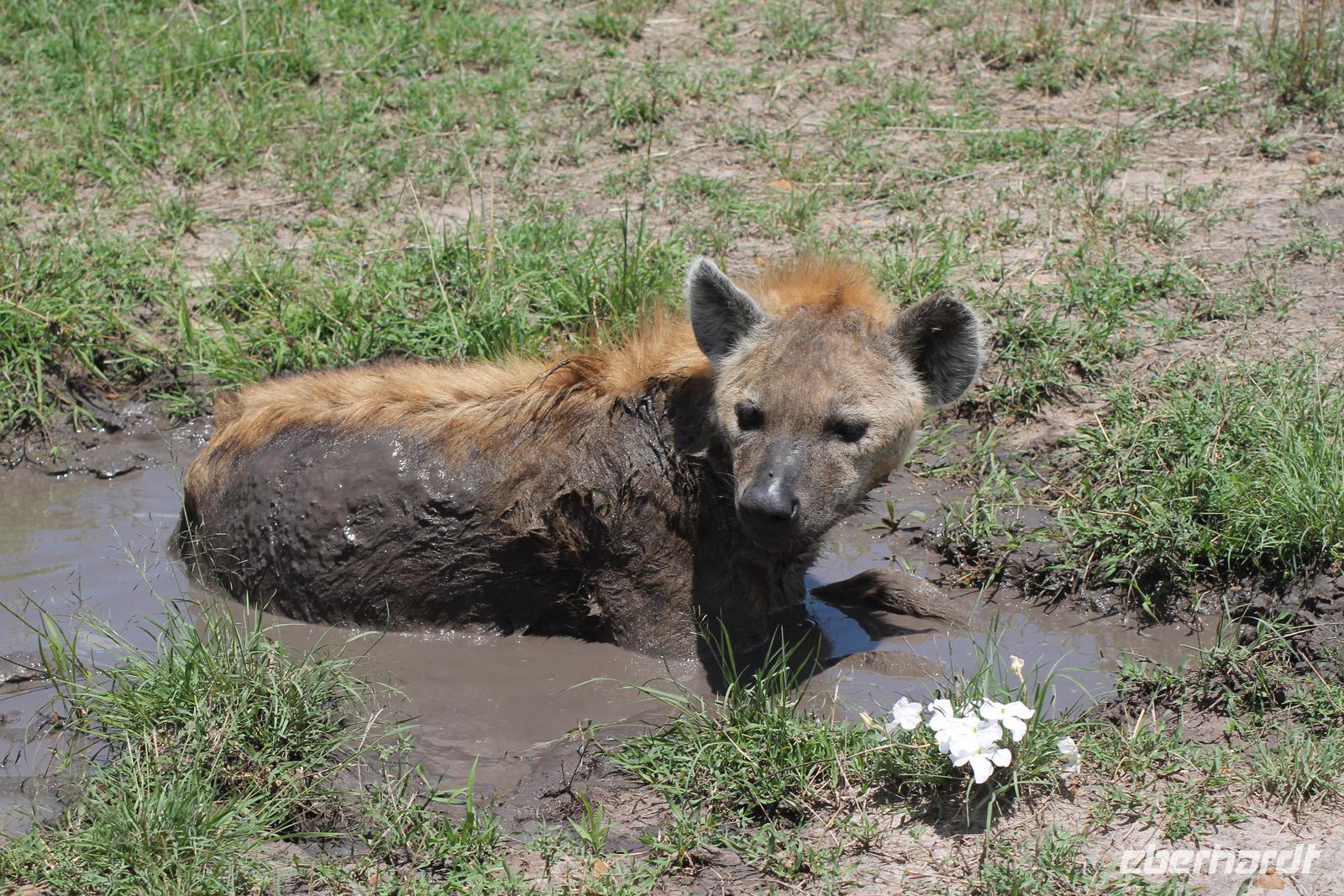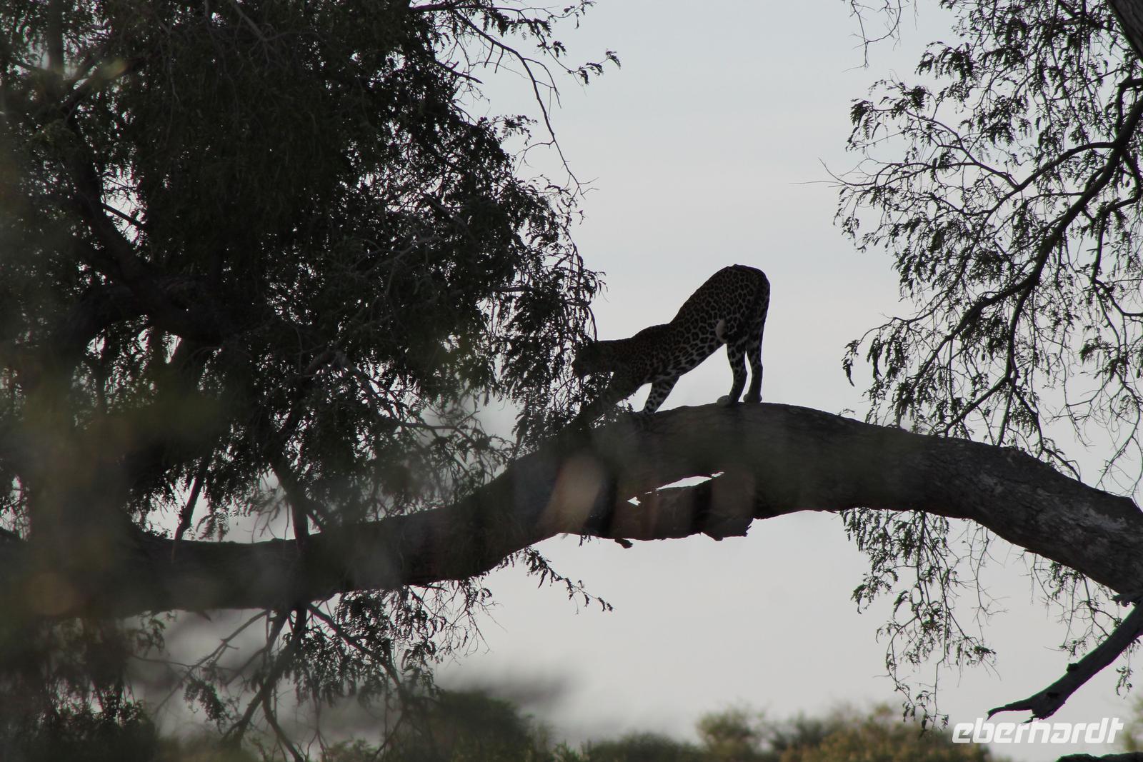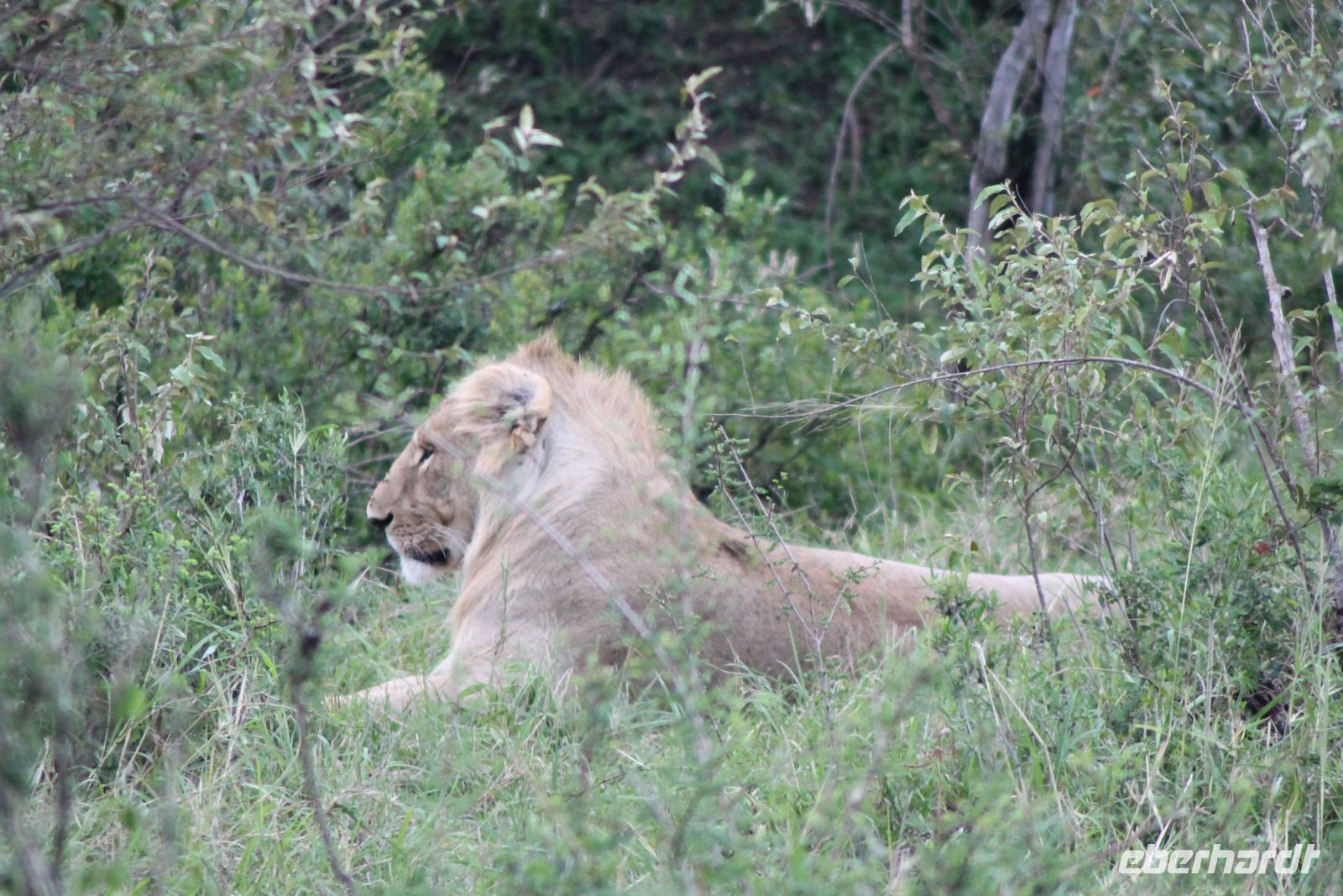 Heute ging es wieder zeitig auf Pirsch, sodass wir nur einen Kaffee/Tee und ein paar Kekse zu uns nahmen. Um 6.30 Uhr ging es auf zur Pirsch: wir sahen viele Tiere wie Topis mit ihren Jungen, Schakale mit ihren Jungen, Warzenschweine mit Nachwuchs, Geier, eine Tüpfelhyäne, einen Adler, einen Frankolin, Wasserböcke, Paviane mit Nachwuchs und vor allem als krönenden Abschluss eine Löwenfamilie, die ein Gnu gerissen hatte und nun faul, satt und zufrieden im Gras lag. Es waren vor allem junge Weibchen, ein junges Männchen von ca. 2 Jahren und ein ganz Junges von ca. 6 Monaten. Bei solch einem Schauspiel störte uns auch der Verwesungsgeruch des Gnus nicht, das wahrscheinlich an diesem Morgen gerissen wurde. Als ein Geier sich an den Überresten zu schaffen machte, ging schnell eine der Löwinnen dazwischen und verteidigte ihren Fang. Auch wenn sie selbst nicht noch einmal etwas vernaschen wollte. Auf dem Weg zum Camp sahen wir dann noch Flusspferde und Krokodile. Ein „hängendes Gnu" war auch dabei - Leoparden verzehren ihre Beute auf dem Baum - sie können Beute mit einem Gewicht bis zu ihrem Eigengewicht auf den Baum schleppen - starke Tiere. Zurück im Camp genossen wir unser Frühstück und im Anschluss unternahmen wir eine geführte Wanderung von ca. 1 Stunde mit einem Ranger des Camps. Er zeigte uns anhand des Kots und der Abdrücke im Boden, welche Tiere hier ihre Spuren hinterlassen hatten. Auch die Pflanzen wurden erläutert und zum Schluss konnte man Speer werfen üben. Beim Mittagessen gab es leckeren Red Snapper-Fisch, gebratenen Reis, gemischtes Gemüse, Linsen, gebratenen Kohl und zum Nachtisch Obst. Nach einer kleinen Mittagspause trafen wir uns 15.30 Uhr wieder zur Pirsch. Neben vielen anderen Tieren sahen wir wieder Löwen, einen Geparden und einen Leoparden. Ein solches Glück wird nur wenigen Safari-Teilnehmern zuteil!