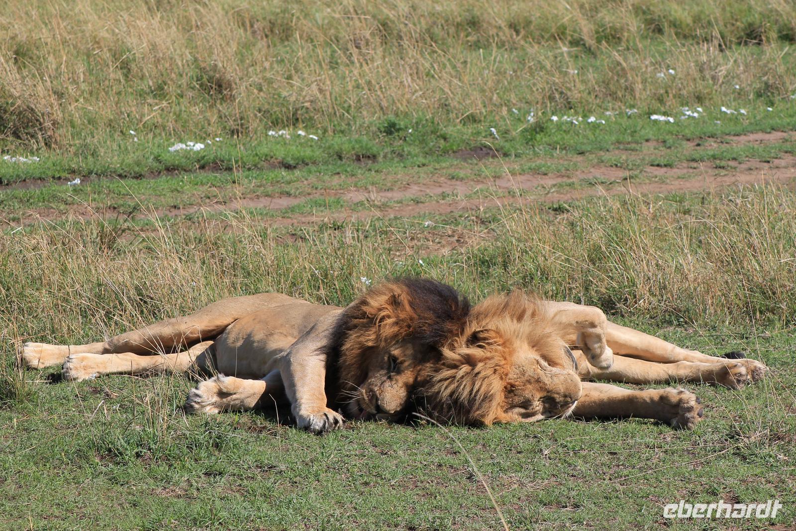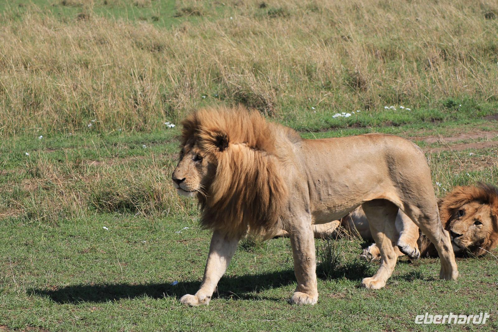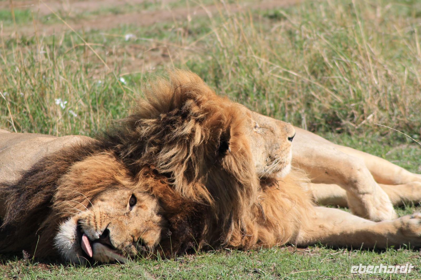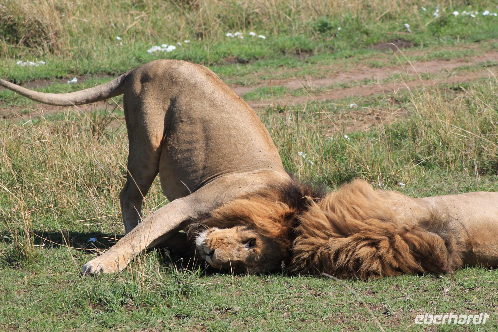 Heute machten wir uns auf den Weg Richtung Naivasha. Auf dem Weg hinaus aus der Masai Mara präsentierten sich uns noch ein Löwenmännchen und ein -weibchen. Eventuell kamen sie gerade von der Paarung. Die Weiterfahrt erfolgte über eine sehr staubige und holprige Straße, sodass wir uns im Anschluss nach einer Dusche sehnten, aber der Weg hatte sich gelohnt, denn uns erwartete mit dem Naivasha Country Club eine wunderschöne Anlage. Wir waren in den luxuriösen Zelten untergebracht mit separiertem Restaurant, in dem uns ein wunderbares Mittagessen mit sehr umsichtigem Service erwartete. Leider haben die Zelte einen Nachteil: die Reißverschlüsse zum Verschließen des Zeltes sind mit Klettverschluss angebracht, welche aber leider nicht mehr richtig schließen. Die umherlaufenden Meerkatzen im Gelände wissen diese zu öffnen, sodass nichts mehr vor ihnen sicher ist. Daher haben wir für den nächsten Tag Bungalows im Gelände gemietet und verließen die Zelte wieder. Da das Gelände direkt an den Naivasha-See grenzt und hier Flusspferde, "Hippos", zu Hause sind, wird man am Abend von Sicherheitspersonal begleitet. Flusspferde halten sich tagsüber im Wasser auf und kommen nachts an Land, um bis zu 50 kg Gras zu fressen. 16 Uhr trafen wir uns für einen Spaziergang im Gelände - zuerst stießen wir aber mit Amarula auf den Feiertag in Deutschland an. Unser lokaler Guide war sehr ambitioniert und erzählte uns viel über die heimischen Pflanzen, Vögel und Tiere. Wir sahen Hagedasch und Wiedehopfe, Spechte und Webervögel, aber auch die hoteleigenen Defassa-Wasserböcke und das Gnu. Alles kann ich aber an dieser Stelle nicht aufzählen - gern kann ich aber danach gefragt werden . Der Naivasha-See stellt eine Besonderheit dar, da er als einziger von den sieben Seen im kenianischen Teil des Afrikanischen Grabenbruchs über Süßwasser verfügt. Das Abendessen war wieder fantastisch und ließ keine Wünsche offen.