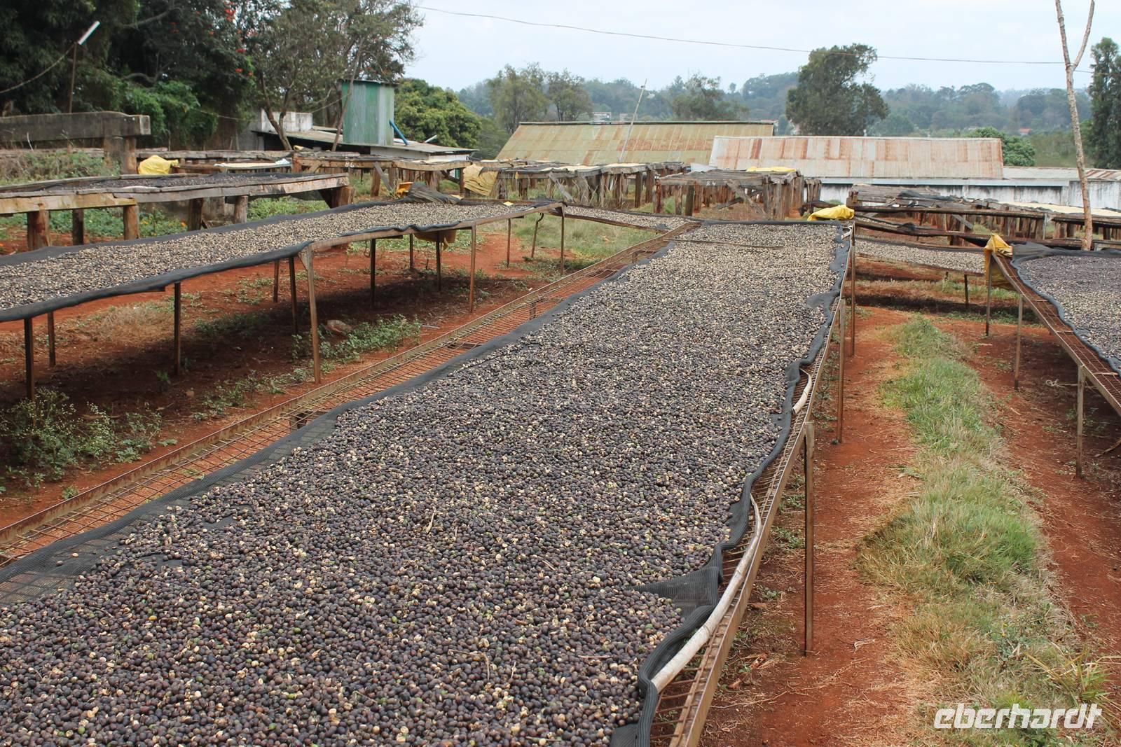 Heute erwachen wir zum ersten Mal unter kenianischem Himmel und genießen ein Frühstück mit allerlei Köstlichkeiten in unserem Hotel. Pünktlich um 07:45 Uhr reisen wir mit unseren Jeeps und unseren sieben Sachen weiter in Richtung des Solio Game Reservats zu unserer Sandai Farm. Unterwegs erreichen wir nach ca. 1 Stunde Fahrzeit eine Kaffeefarm, die wir besuchen. Hier sehen wir, wie der Kaffee reift und hergestellt wird. Eine wirklich mühsame Arbeit, die größtenteils noch mit Hand gemacht wird. Anschließend lassen wir uns es natürlich nicht nehmen, den kenianischen Kaffee auch zu probieren und als Geschenk mit nach Hause zu nehmen.