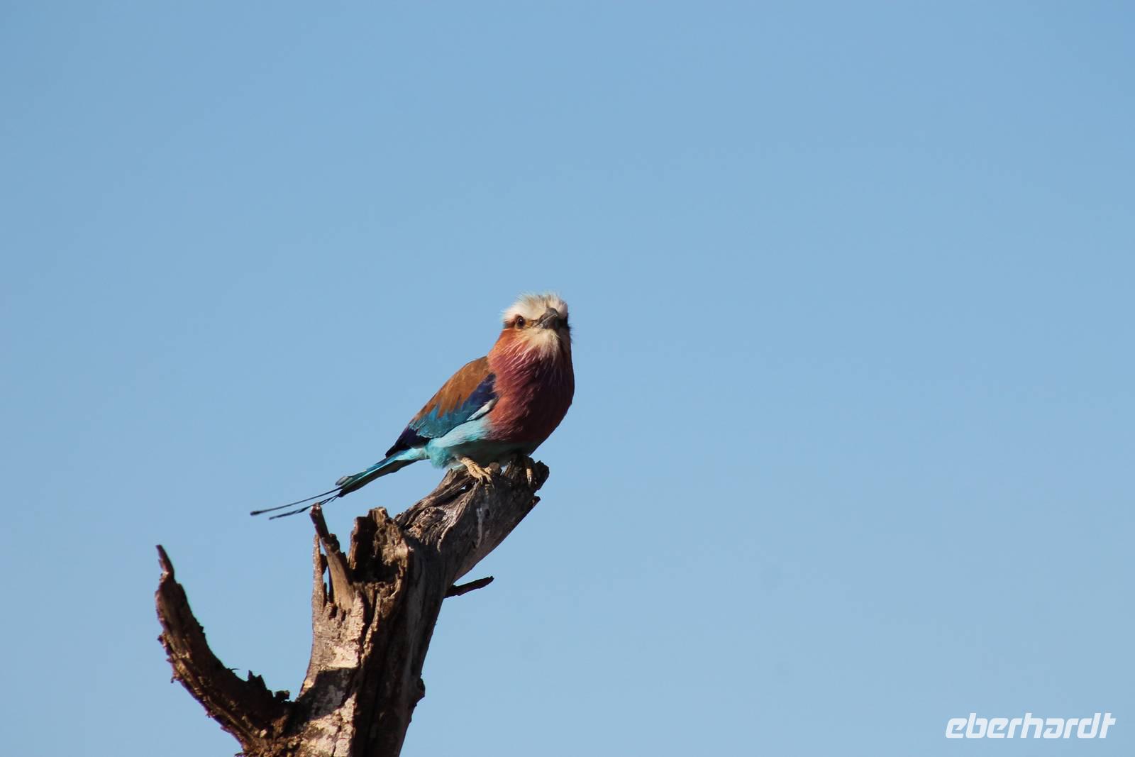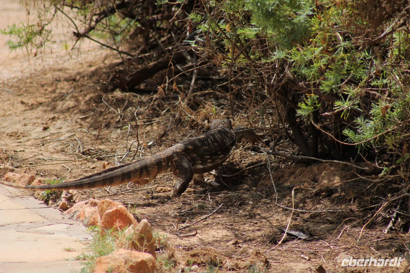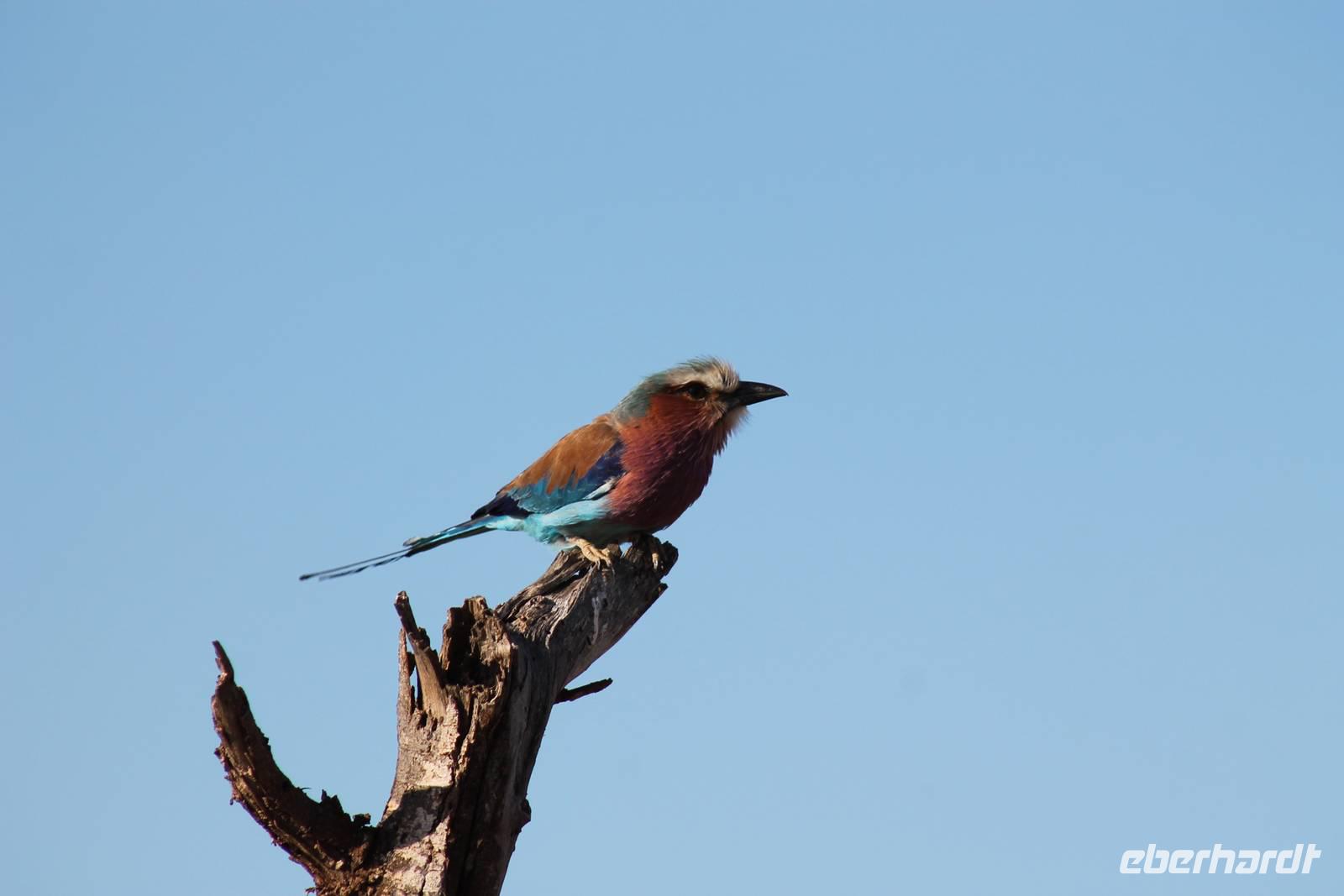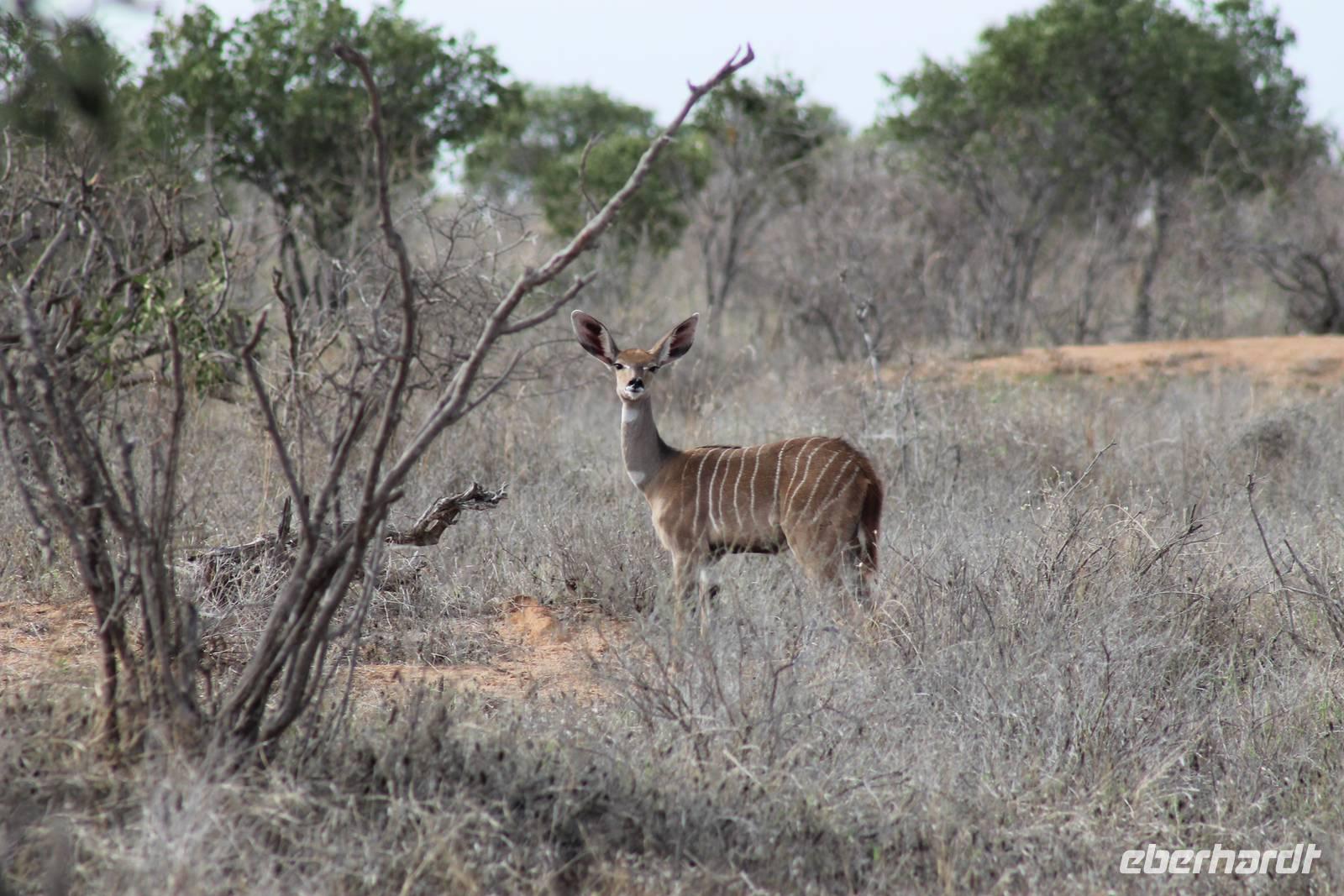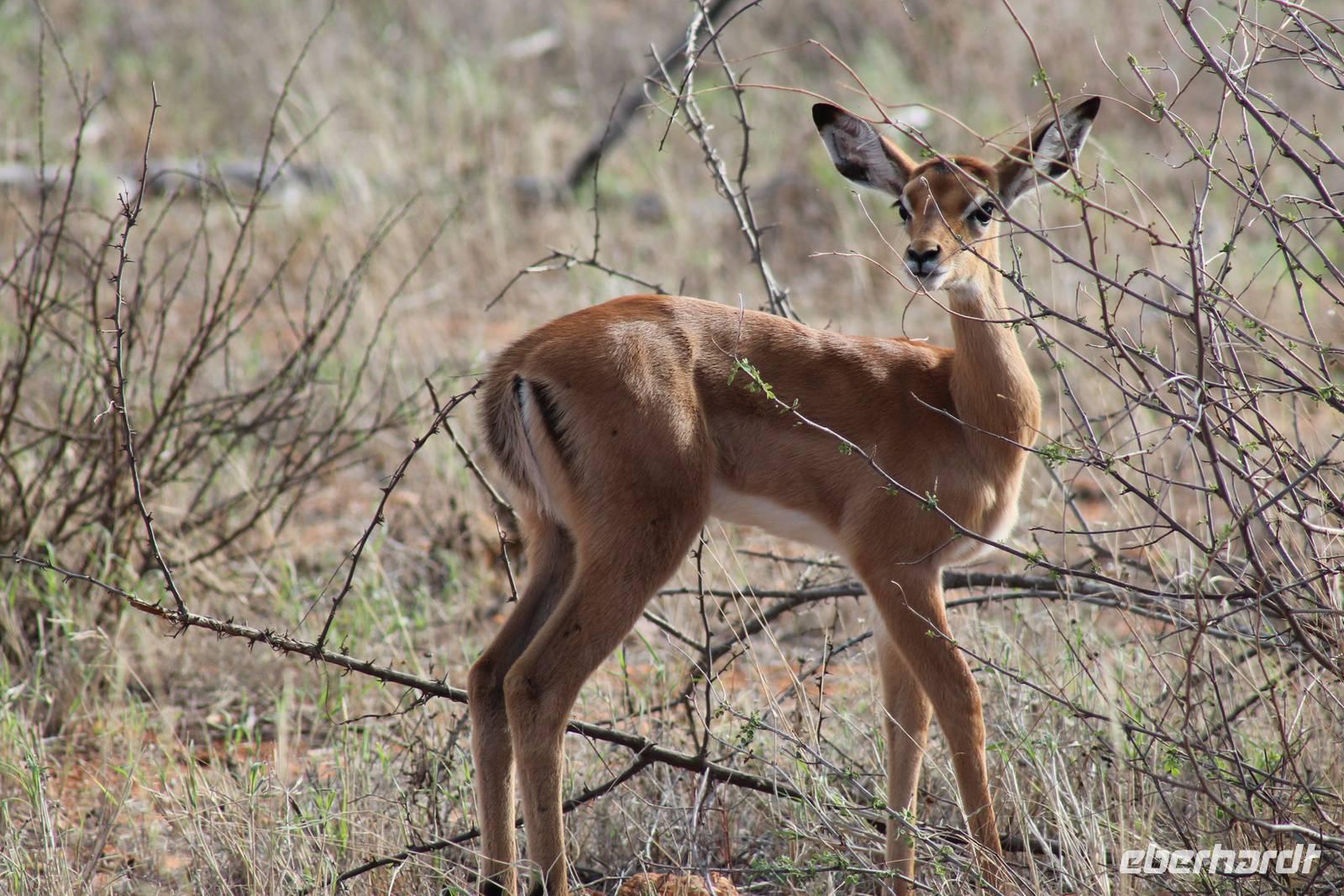 Nach etwa drei Stunden Pirschfahrt am Morgen knurrt allen schon sehr der Magen und so lassen wir heute einige Tiere auf dem Wegesrand aus um schnell zu unserem Aussichtspunkt und damit zu unserem Frühstück zu kommen. Denn ein jeder weiß, wer hungrig ist, wird agressiv. Leider bekommt das auch unser Fahrer Jackson zu spüren (Spaß). So sind wir froh, dass wir unser Frühstück mit einem tollen Ausblick auf den Nationalpark in vollen Zügen genießen können. Satt und zufrieden fahren wir weiter zu einem weiteren Aussichtspunkt, wo wir auch Klippschläfer und einige Vögel beobachten können. Auf dem Weg zurück zu unserer Lodge sehen wir noch einige Impalas, Warzenschweine, die sich mit dem sogenannten „Buschfunk" verständigen und immer so schön mit ihren Schwänzchen wackeln, sowie viele Zebras und auch eine Leopard-Schildkröte. Außerdem einen Kampfadler und eine grüne Meerkatze. So langsam fällt es uns gar nicht mehr so leicht alle Tiere noch aufzählen zu können, die wir gesehen haben.