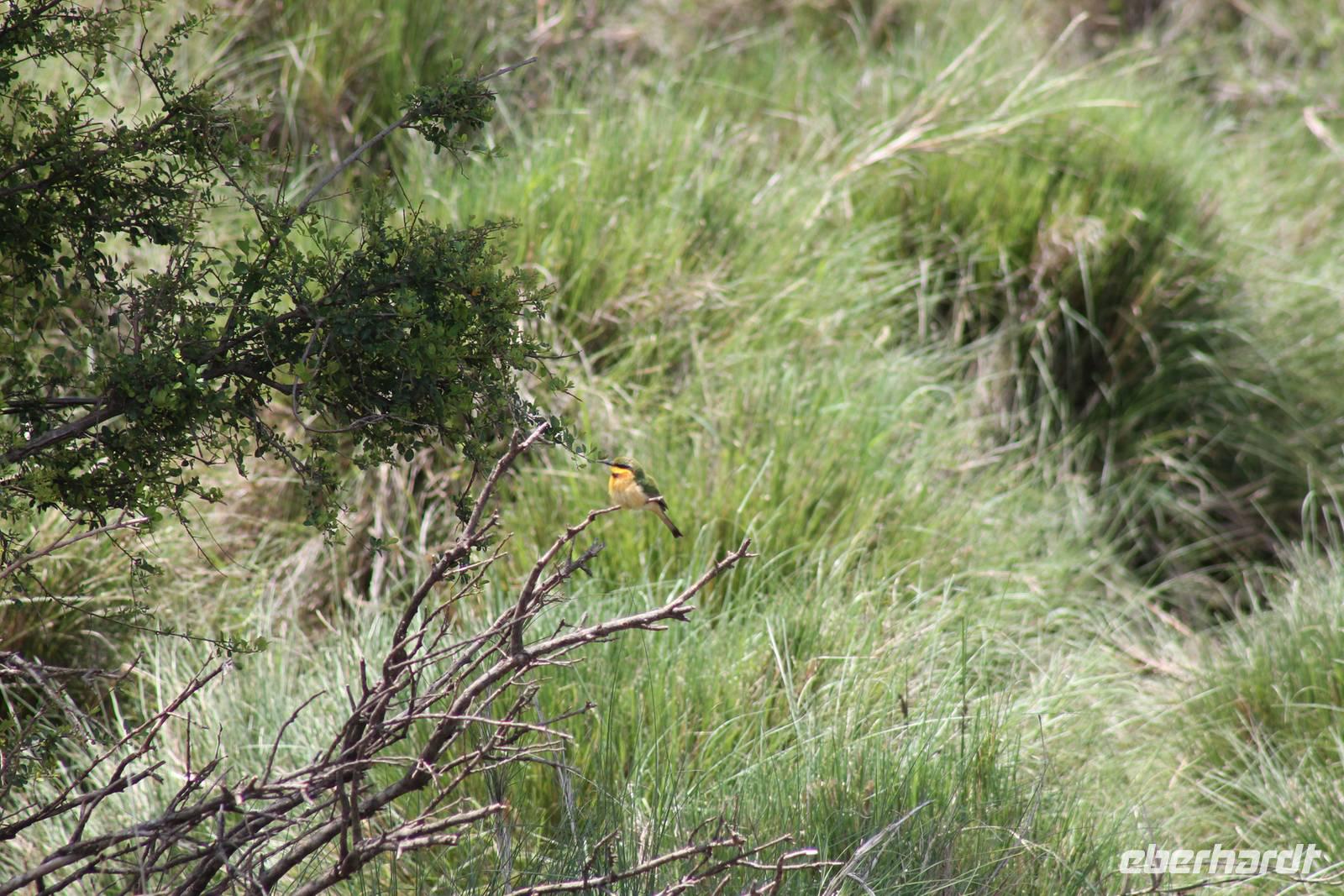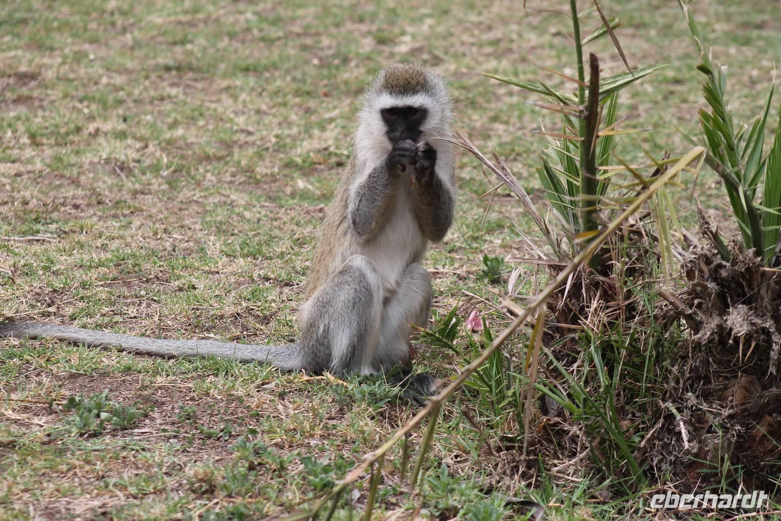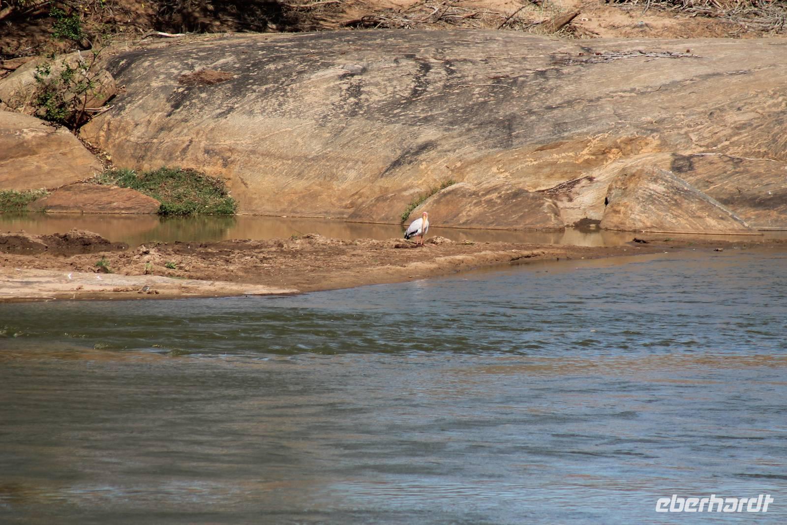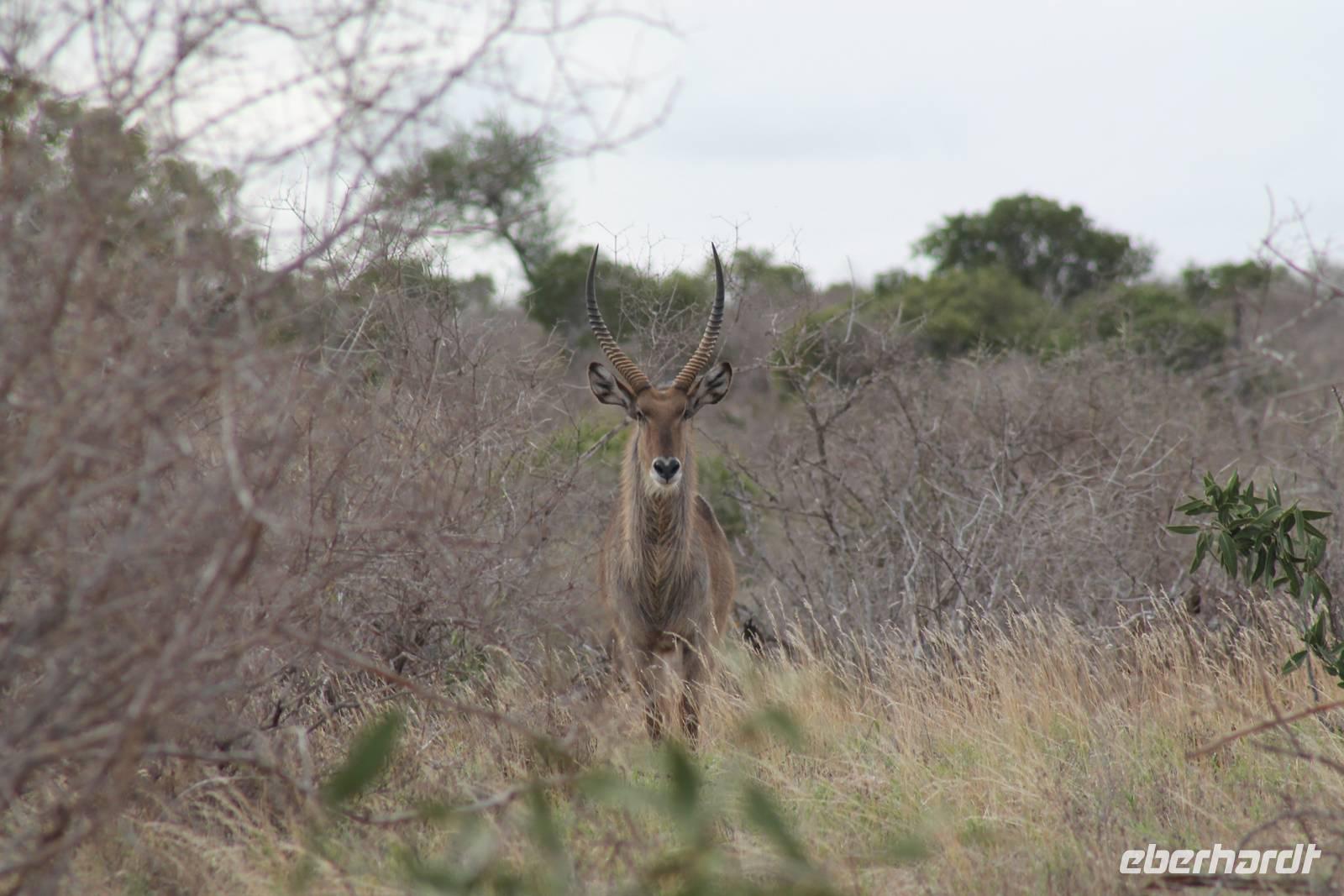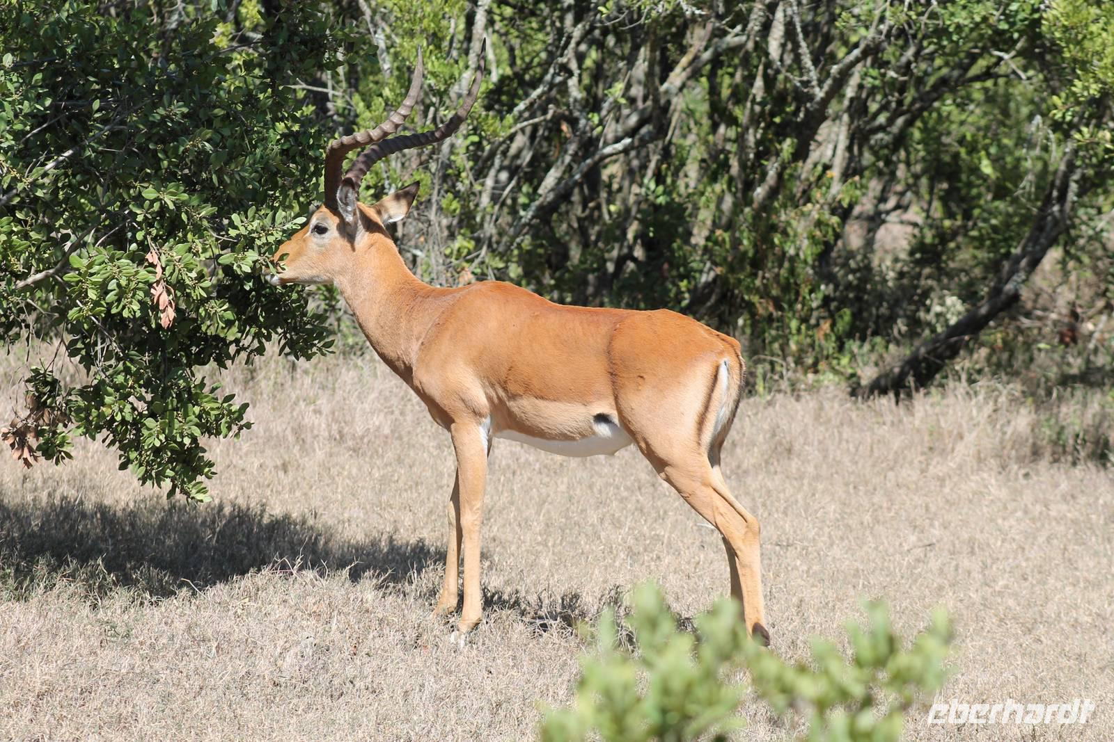 Nach etwa drei Stunden Pirschfahrt am Morgen knurrt allen schon sehr der Magen und so lassen wir heute einige Tiere auf dem Wegesrand aus um schnell zu unserem Aussichtspunkt und damit zu unserem Frühstück zu kommen. Denn ein jeder weiß, wer hungrig ist, wird agressiv. Leider bekommt das auch unser Fahrer Jackson zu spüren (Spaß). So sind wir froh, dass wir unser Frühstück mit einem tollen Ausblick auf den Nationalpark in vollen Zügen genießen können. Satt und zufrieden fahren wir weiter zu einem weiteren Aussichtspunkt, wo wir auch Klippschläfer und einige Vögel beobachten können. Auf dem Weg zurück zu unserer Lodge sehen wir noch einige Impalas, Warzenschweine, die sich mit dem sogenannten „Buschfunk" verständigen und immer so schön mit ihren Schwänzchen wackeln, sowie viele Zebras und auch eine Leopard-Schildkröte. Außerdem einen Kampfadler und eine grüne Meerkatze. So langsam fällt es uns gar nicht mehr so leicht alle Tiere noch aufzählen zu können, die wir gesehen haben.
