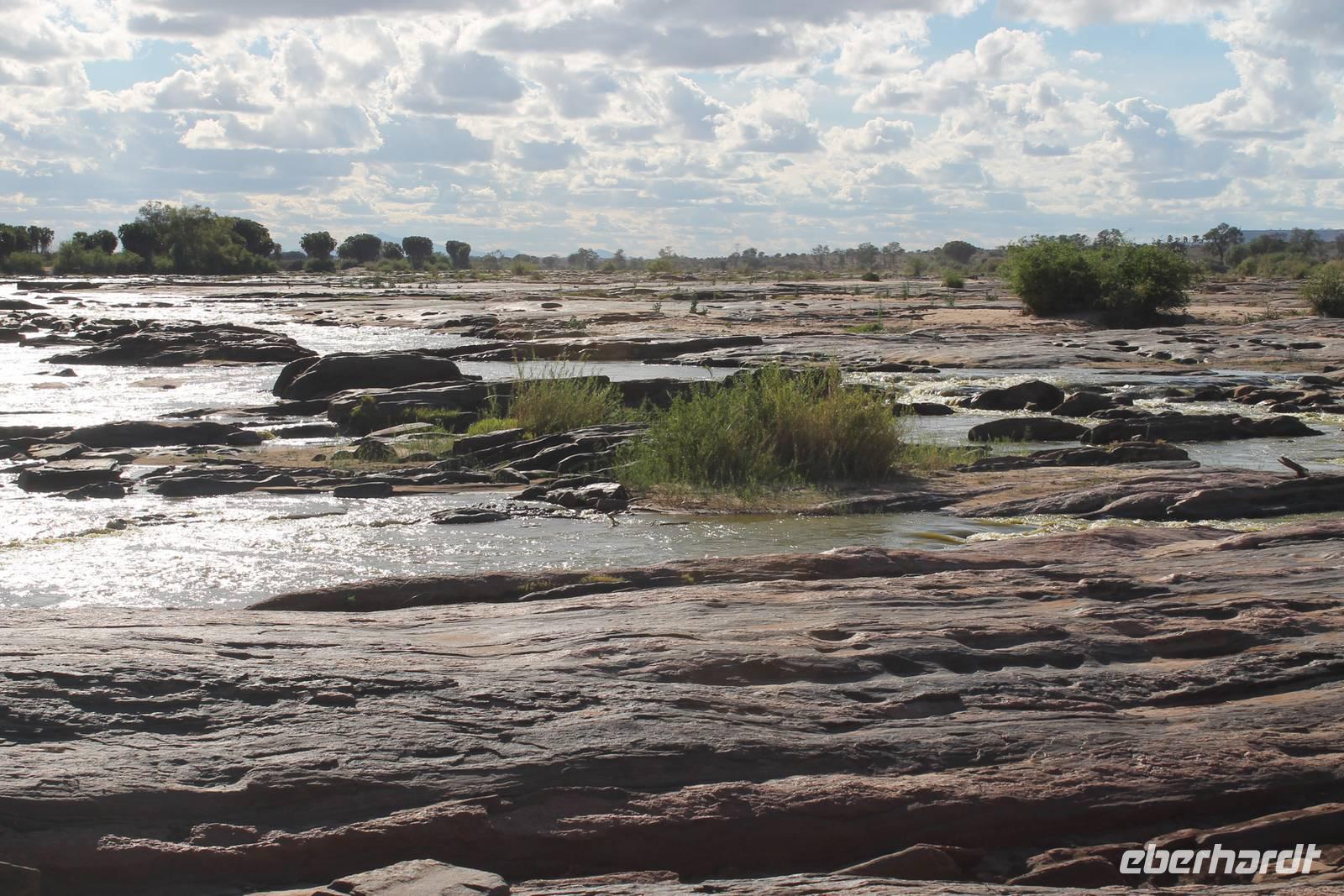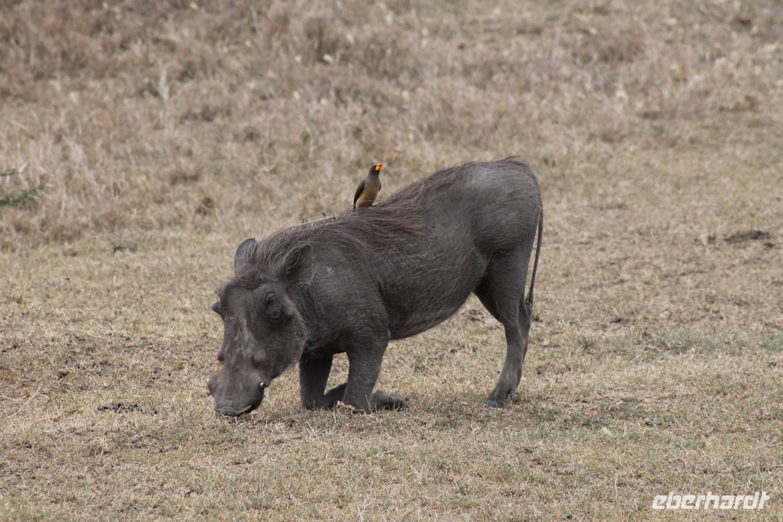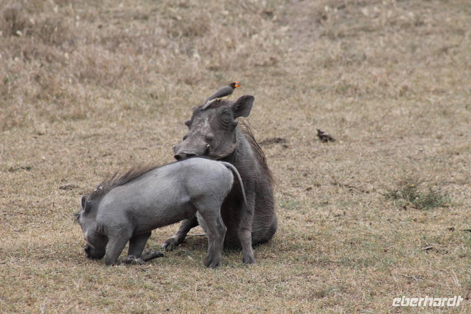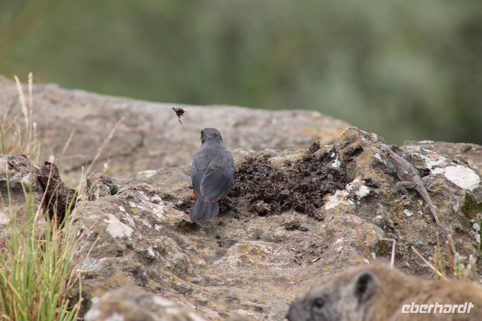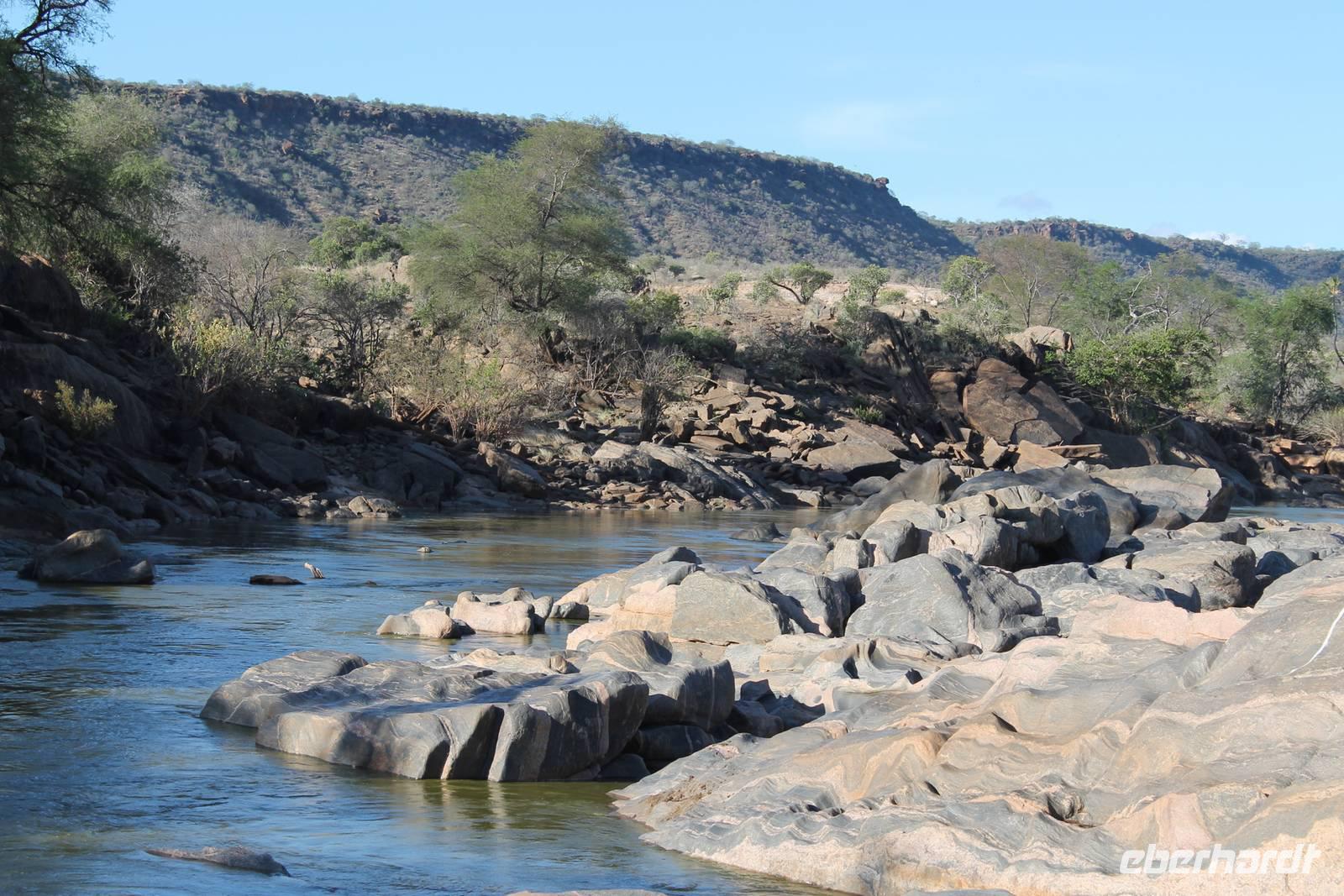Nach etwa drei Stunden Pirschfahrt am Morgen knurrt allen schon sehr der Magen und so lassen wir heute einige Tiere auf dem Wegesrand aus um schnell zu unserem Aussichtspunkt und damit zu unserem Frühstück zu kommen. Denn ein jeder weiß, wer hungrig ist, wird agressiv. Leider bekommt das auch unser Fahrer Jackson zu spüren (Spaß). So sind wir froh, dass wir unser Frühstück mit einem tollen Ausblick auf den Nationalpark in vollen Zügen genießen können. Satt und zufrieden fahren wir weiter zu einem weiteren Aussichtspunkt, wo wir auch Klippschläfer und einige Vögel beobachten können. Auf dem Weg zurück zu unserer Lodge sehen wir noch einige Impalas, Warzenschweine, die sich mit dem sogenannten „Buschfunk" verständigen und immer so schön mit ihren Schwänzchen wackeln, sowie viele Zebras und auch eine Leopard-Schildkröte. Außerdem einen Kampfadler und eine grüne Meerkatze. So langsam fällt es uns gar nicht mehr so leicht alle Tiere noch aufzählen zu können, die wir gesehen haben.