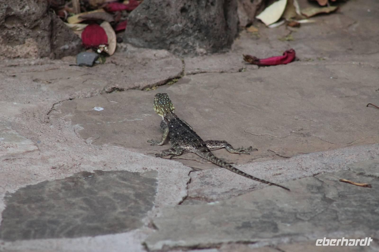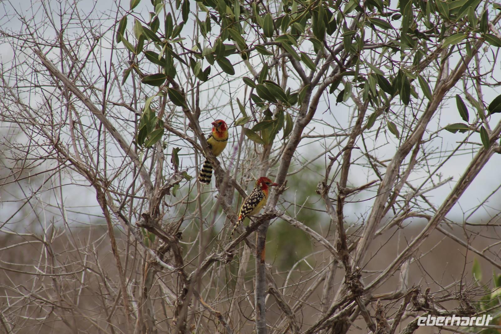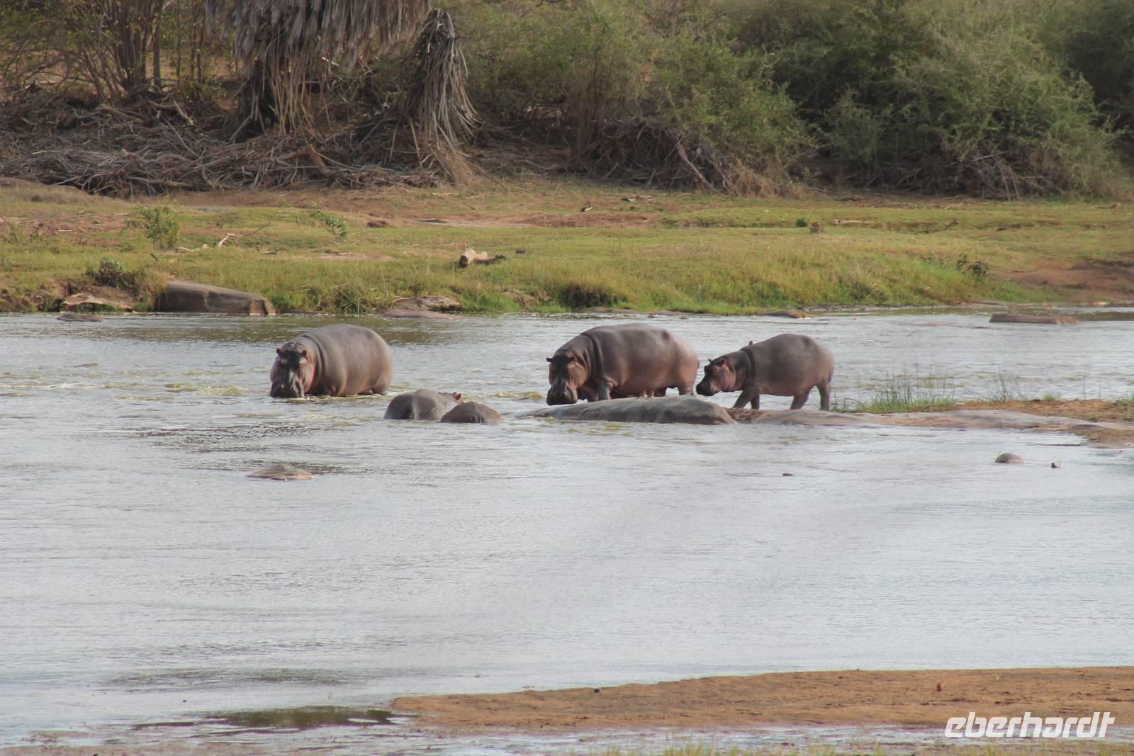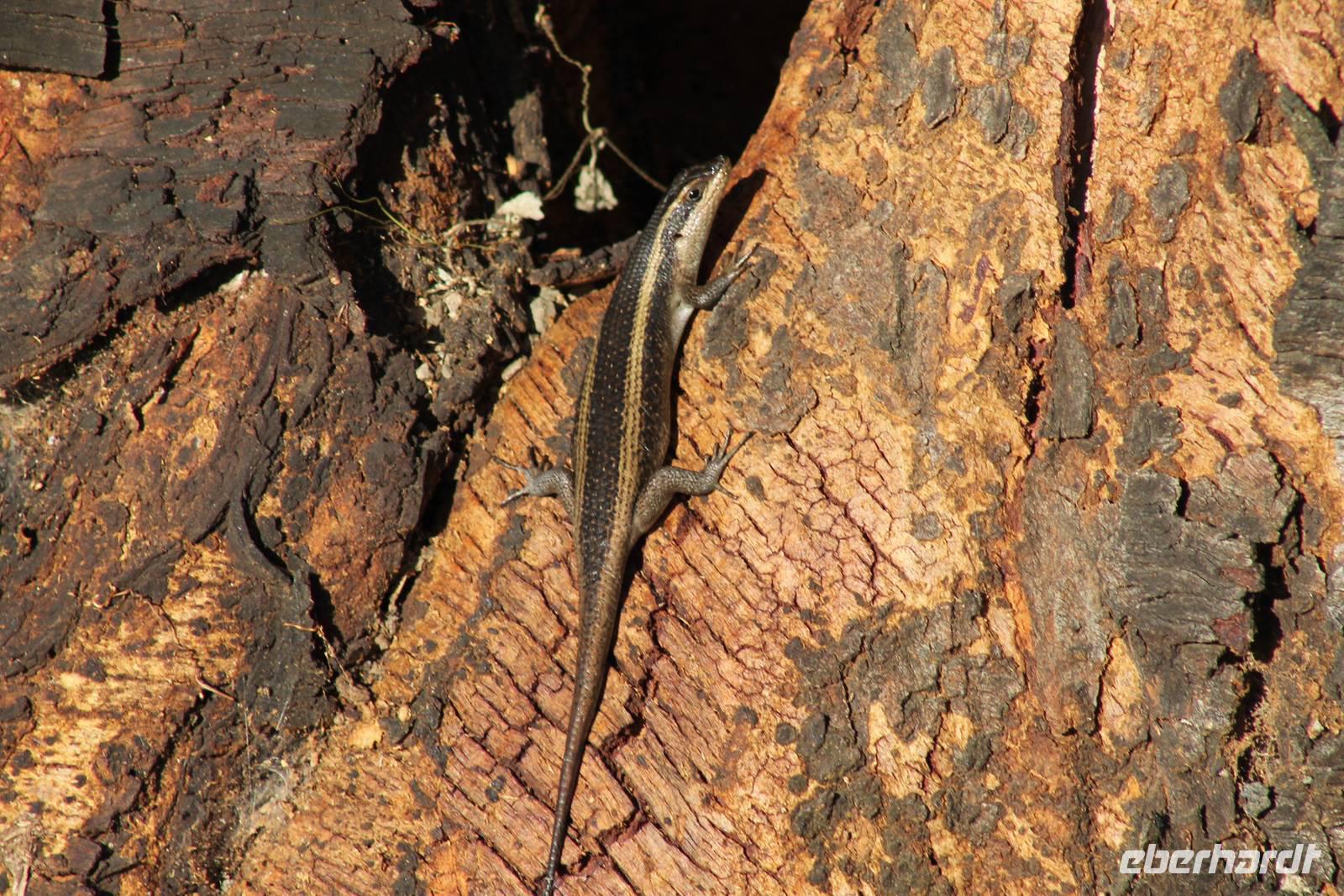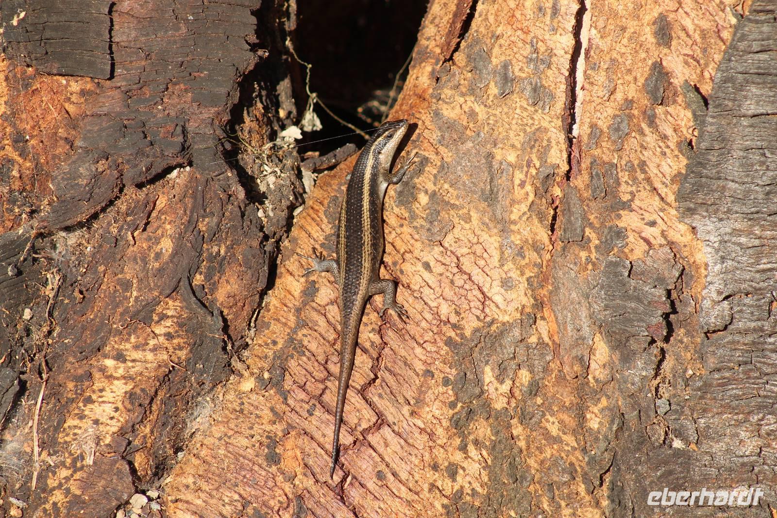Nach etwa drei Stunden Pirschfahrt am Morgen knurrt allen schon sehr der Magen und so lassen wir heute einige Tiere auf dem Wegesrand aus um schnell zu unserem Aussichtspunkt und damit zu unserem Frühstück zu kommen. Denn ein jeder weiß, wer hungrig ist, wird agressiv. Leider bekommt das auch unser Fahrer Jackson zu spüren (Spaß). So sind wir froh, dass wir unser Frühstück mit einem tollen Ausblick auf den Nationalpark in vollen Zügen genießen können. Satt und zufrieden fahren wir weiter zu einem weiteren Aussichtspunkt, wo wir auch Klippschläfer und einige Vögel beobachten können. Auf dem Weg zurück zu unserer Lodge sehen wir noch einige Impalas, Warzenschweine, die sich mit dem sogenannten „Buschfunk" verständigen und immer so schön mit ihren Schwänzchen wackeln, sowie viele Zebras und auch eine Leopard-Schildkröte. Außerdem einen Kampfadler und eine grüne Meerkatze. So langsam fällt es uns gar nicht mehr so leicht alle Tiere noch aufzählen zu können, die wir gesehen haben.
