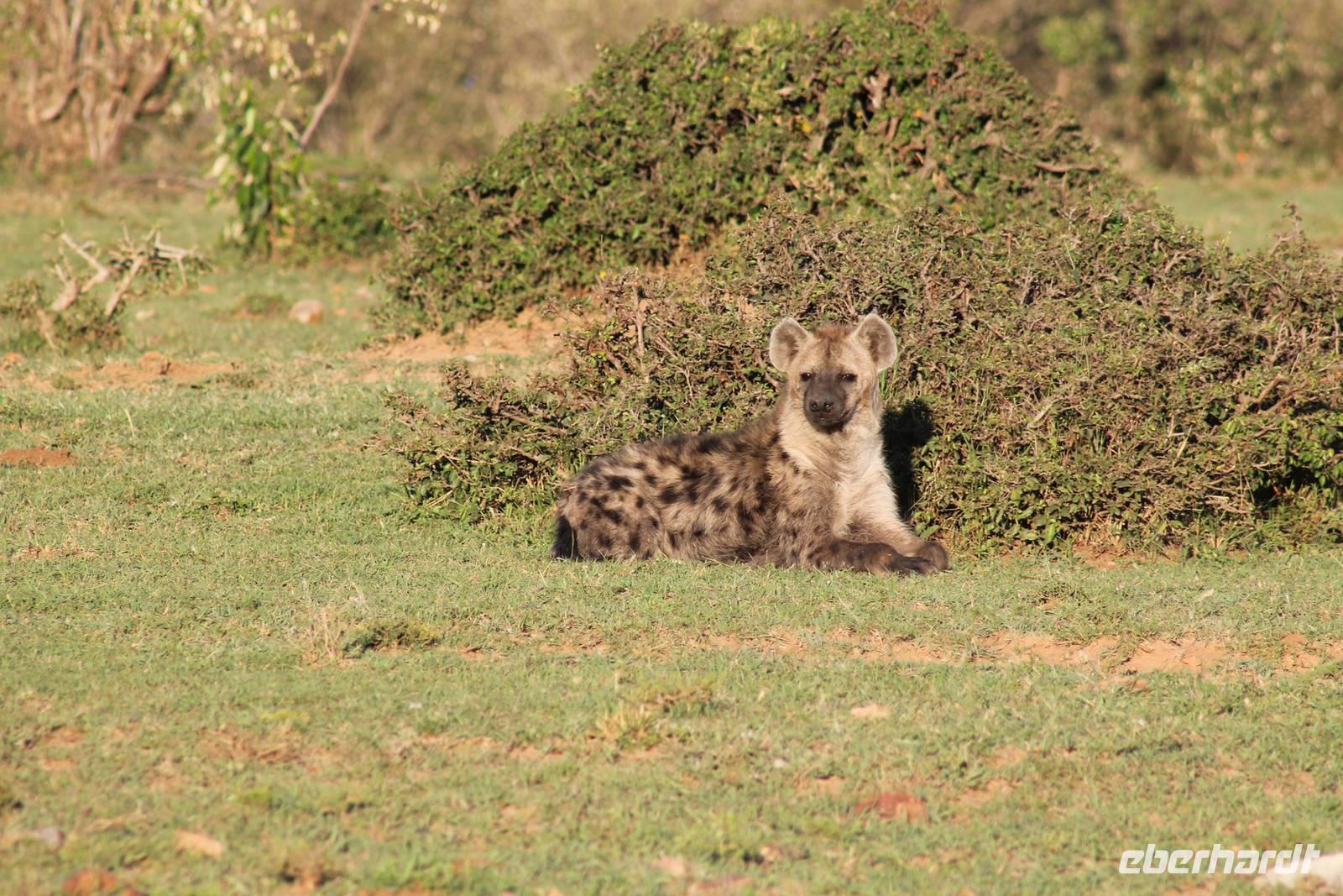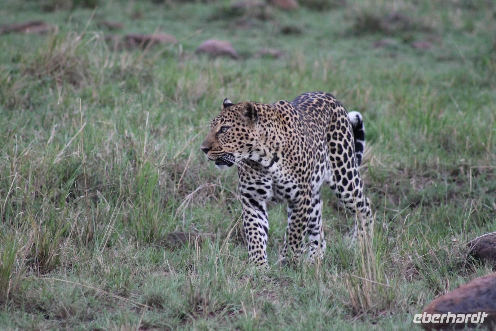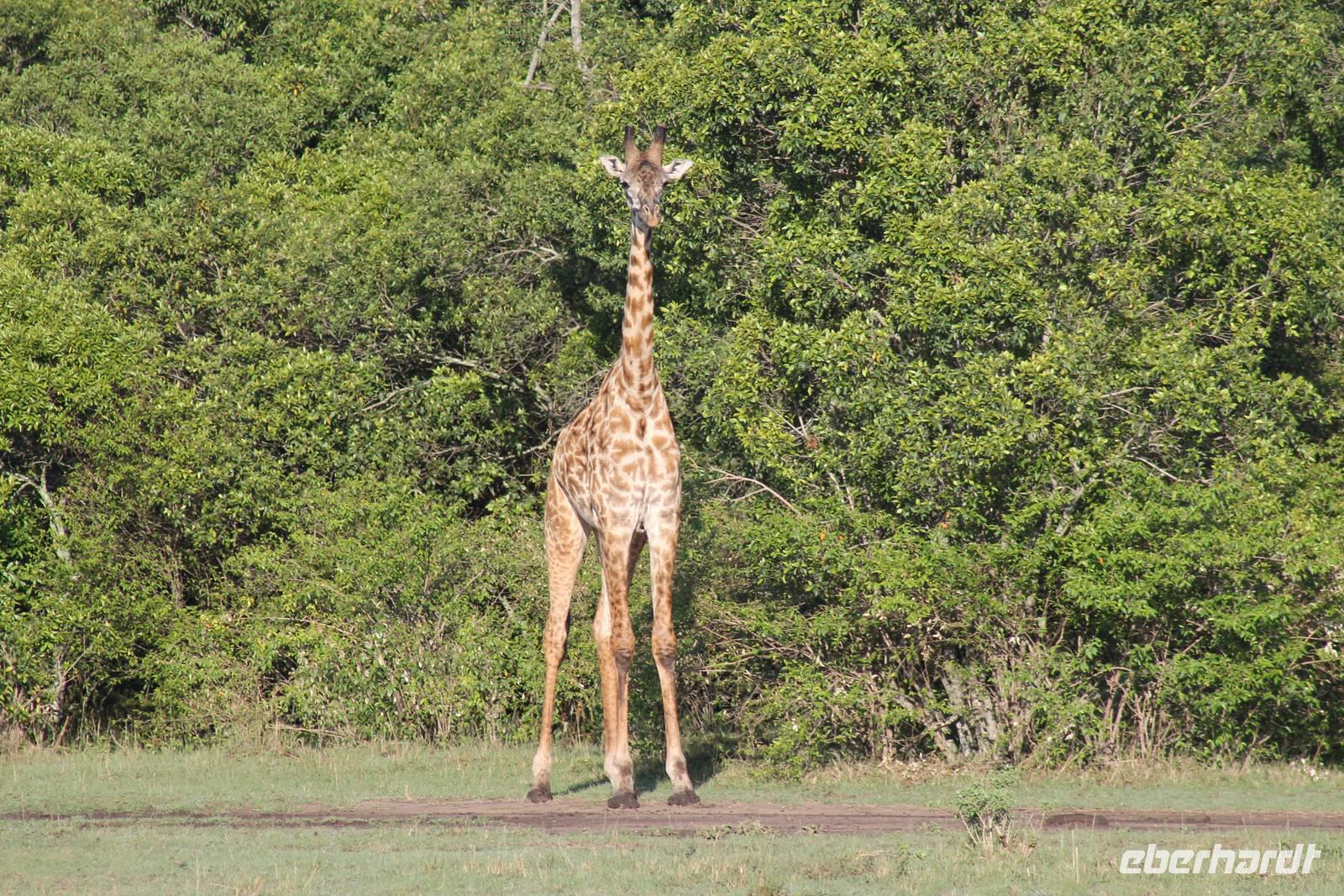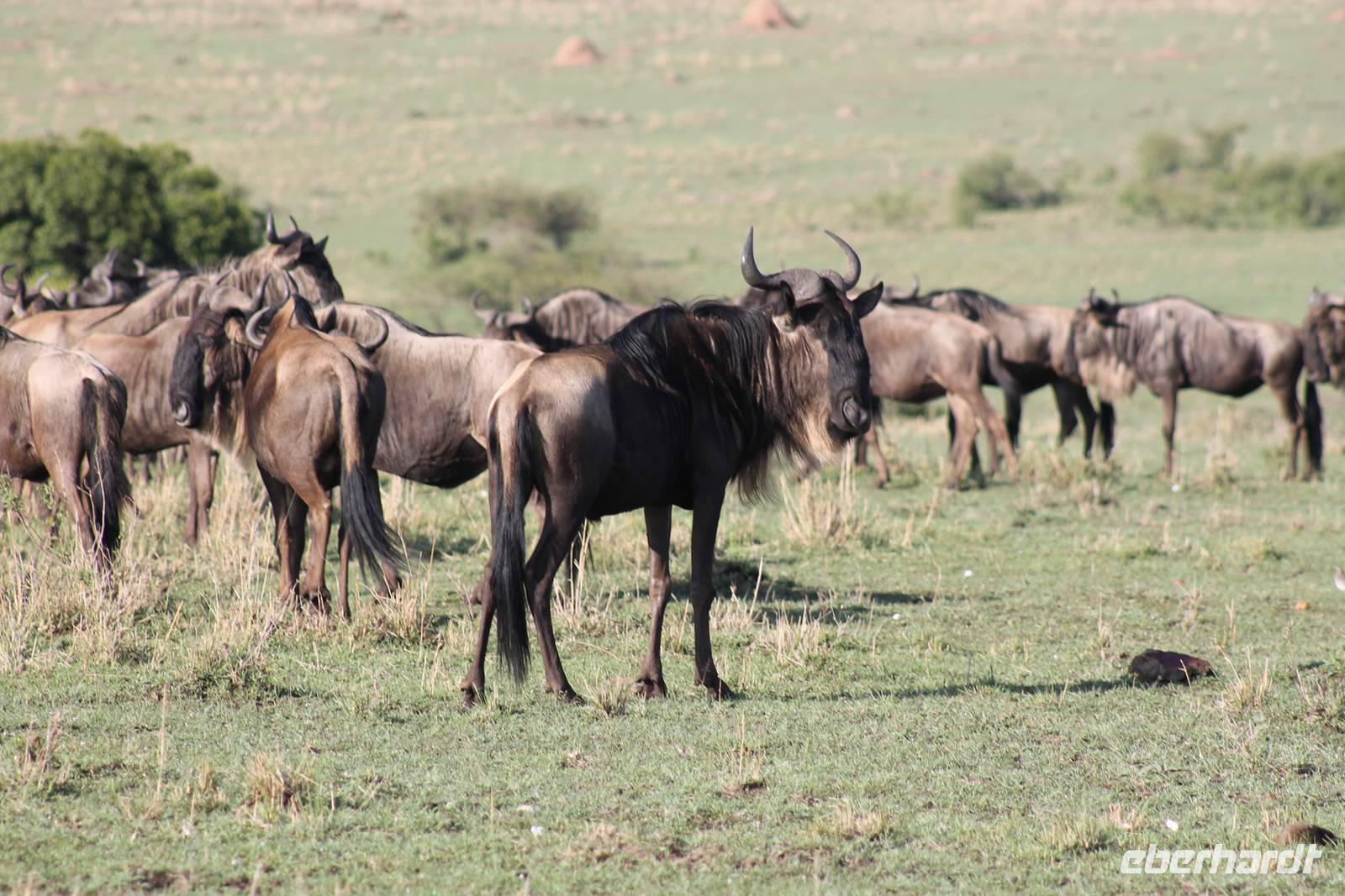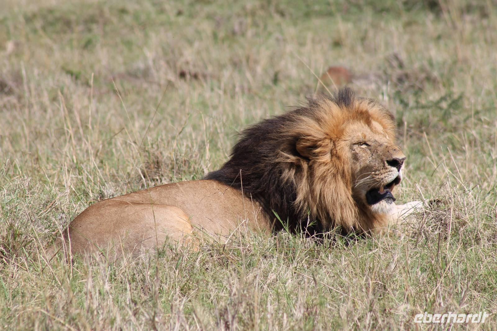 Die nächsten beiden Tage stehen ganz im Zeichen der Masai Mara und viele von uns empfanden diese zweifelsohne als einen Höhepunkt der Reise. Wir stehen natürlich wieder zeitig auf um eine frühe Pirsch in der Masai Mara zu unternehmen. Alle haben mehr oder weniger gut in ihren Zelten geschlafen, denn die Angst vor den Hippos bleibt, zumindest bei Vicky :-). Aber Sie fühlt sich schon etwas sicherer, da Sie ja ihren Askari immer dabei hat. Während unseren heutigen Pirschfahrten sehen wir wieder allerhand Tiere: Viele Gnuherden, einige Geier, kleine und große Warzenschweine und ganz viele Topis mit Jungen, die gerade erst geboren sind. Jackson erklärt uns, dass gerade Paarungszeit ist und so viele Jungen zur Welt kommen. Unglaublich das die kleinen Geschöpfe schon direkt nach der Geburt laufen und stehen können. Natürlich werden Sie von der Mutter sehr umsorgt, weil die Raubkatzen natürlich überall lauern um sich auch ein kleines Topi zu schnappen. Später sehen wir auch noch einen Strauss und mehrere Löwen. Später werden unsere Fahrer informiert, dass sich wohl ein totes Impala auf einem Baum befindet, welches von einem Leoparden gerissen wurde. Leider sehen wir nur das tote Impala aber keinen Leoparden. Ob wir ihn doch noch gesehen haben, erfahren Sie nur wenn Sie weiter lesen. Nach einigen vorbeiziehenden Giraffen und vielen weiteren Kibizen fahren wir mit unseren Jeeps zum Fluss, wo sich aus der Erfahrung heraus immer viele Tiere tummeln und wir sollten Recht behalten. Am Fluss angekommen sehen wir ein riesiges Krokodil, wahrscheinlich das größte Krokodil was wir bisher gesehen haben und auch einige Hippos. Wir sehen auch ein Hippo, was sich im Busch versteckt und viele Wunden hat. Wahrscheinlich hat es einen Machtkampf verloren und muss jetzt einsam und allein leben. Noch vor unserem Mittagessen begegnen wir auch einigen Löwen, die sich über eine Beute hermachen. Viele glauben es wäre ein kleines Warzenschwein, aber genau erkennen können wir es nicht, da es fast vollständig verspeist wurde. Bevor wir heute zu unserem Camp zurückkehren sehen wir auch endlich die ersten Elefanten und sogar mit Jungen. Es ist äußerst niedlich anzusehen, wir der Kleine versucht alles seiner Mutter nachzumachen. So versucht auch er sich Wasser über den Körper zu spritzen aber leider gelingt es nicht so richtig. Aber schön anzusehen war es in jedem Fall. An unserem Camp angekommen genießen wir ein leckeres Mittagessen und genießen dann noch ein wenig die Stille, die uns gibt. Es könnte mehr solche Momente geben aber natürlich wollen wir alle auch etwas erleben. So fahren wir auch am späten Nachmittag noch einmal raus, um weitere Tiere auf unsere Fotos zu bekommen und wir werden nicht enttäuscht. So sehen wir wunderschöne Masai Giraffen, Elandantilopen, Glanzgazellen, eine Riesentrappe, einen Marabu und auch den seltenen Kingfisher, den wir nun endlich auch einmal auf die Linse bekommen. Darüber freuen sich die Ornitologen unter uns natürlich auch sehr. Auch die Dämmerung hat heute noch so einiges zu bieten. So sehen wir noch eine Löwenfamilie mit kleinen Jungen, die gerade erst geboren sind. Ewig könnte man den kleinen zuschauen und man glaubt gar nicht, dass diese kleinen Wesen später mal zu Raubkatzen werden. Auf unserem Rückweg sehen wir noch eine Hyäne im Straßengraben, die sich von uns gar nicht stören lässt. Kurz bevor uns heute noch eine Überraschung erwartet, fahren unsere Jeeps noch einmal zu der Stelle, wo wir heute Morgen schon das tote Impala auf dem Baum gesehen haben und siehe da die Leopardenmama ist wieder da und hat auch ihr Junges im Gepäck. Wir können es kaum glauben, so schön sind diese Tiere und auch das Kleine würden wir am liebsten abknutschen.