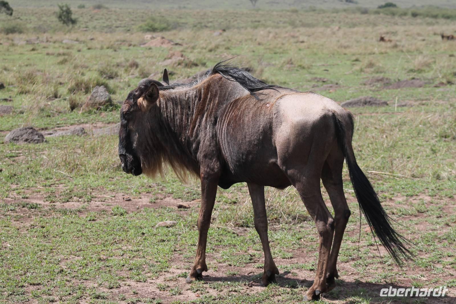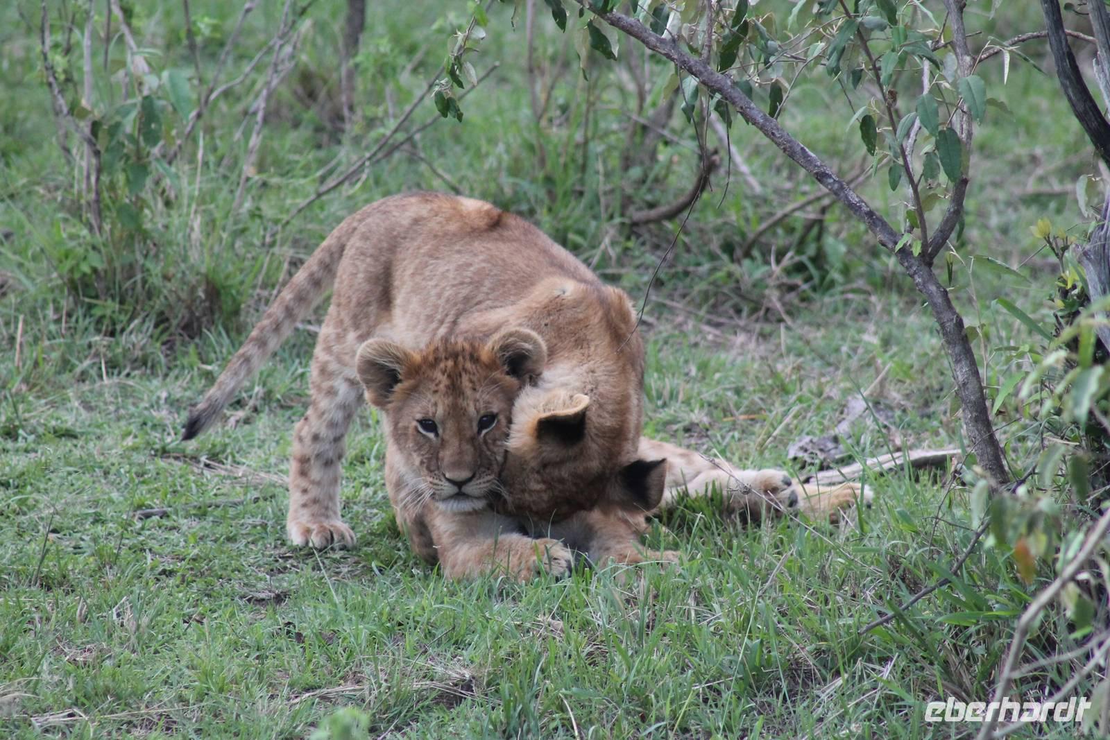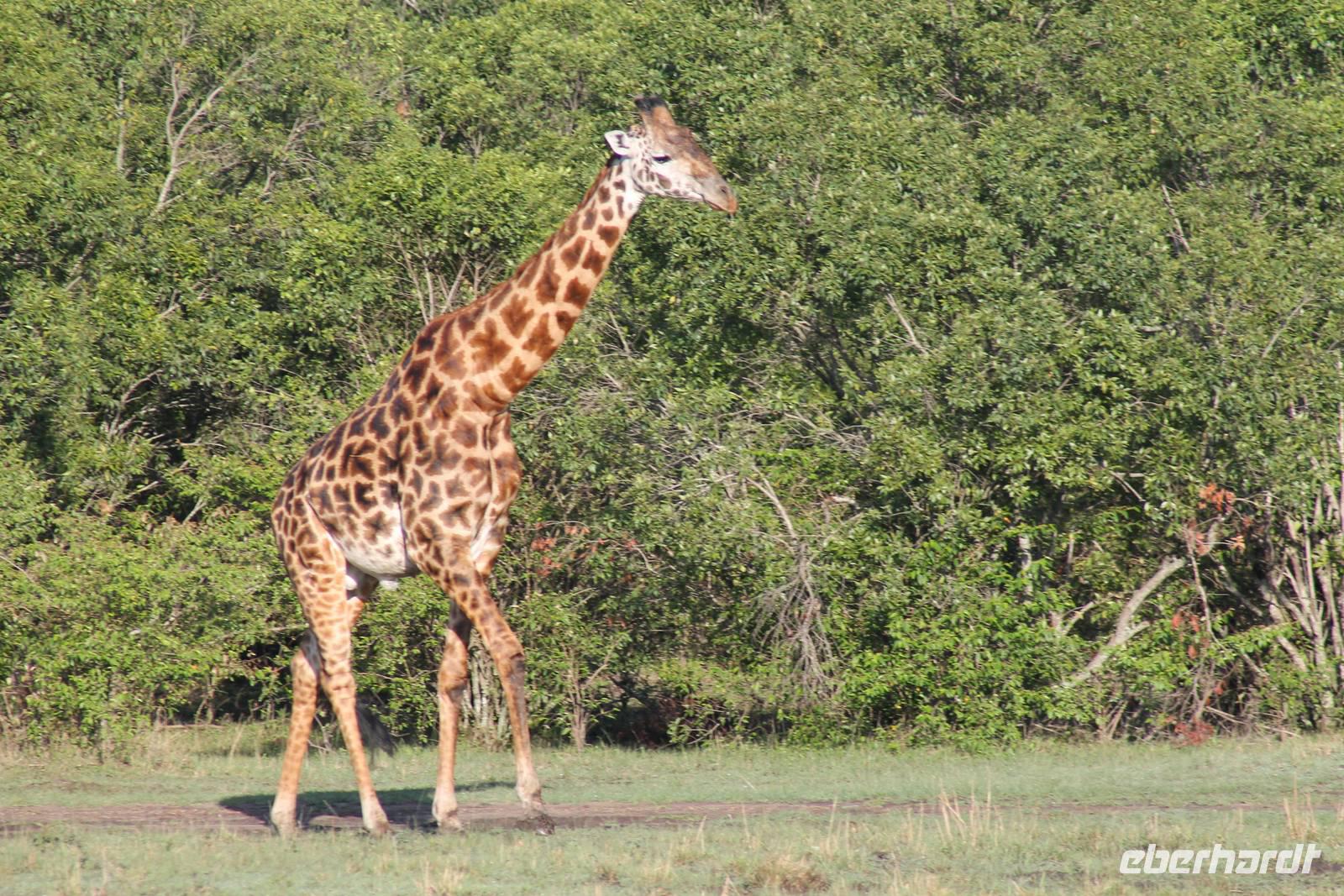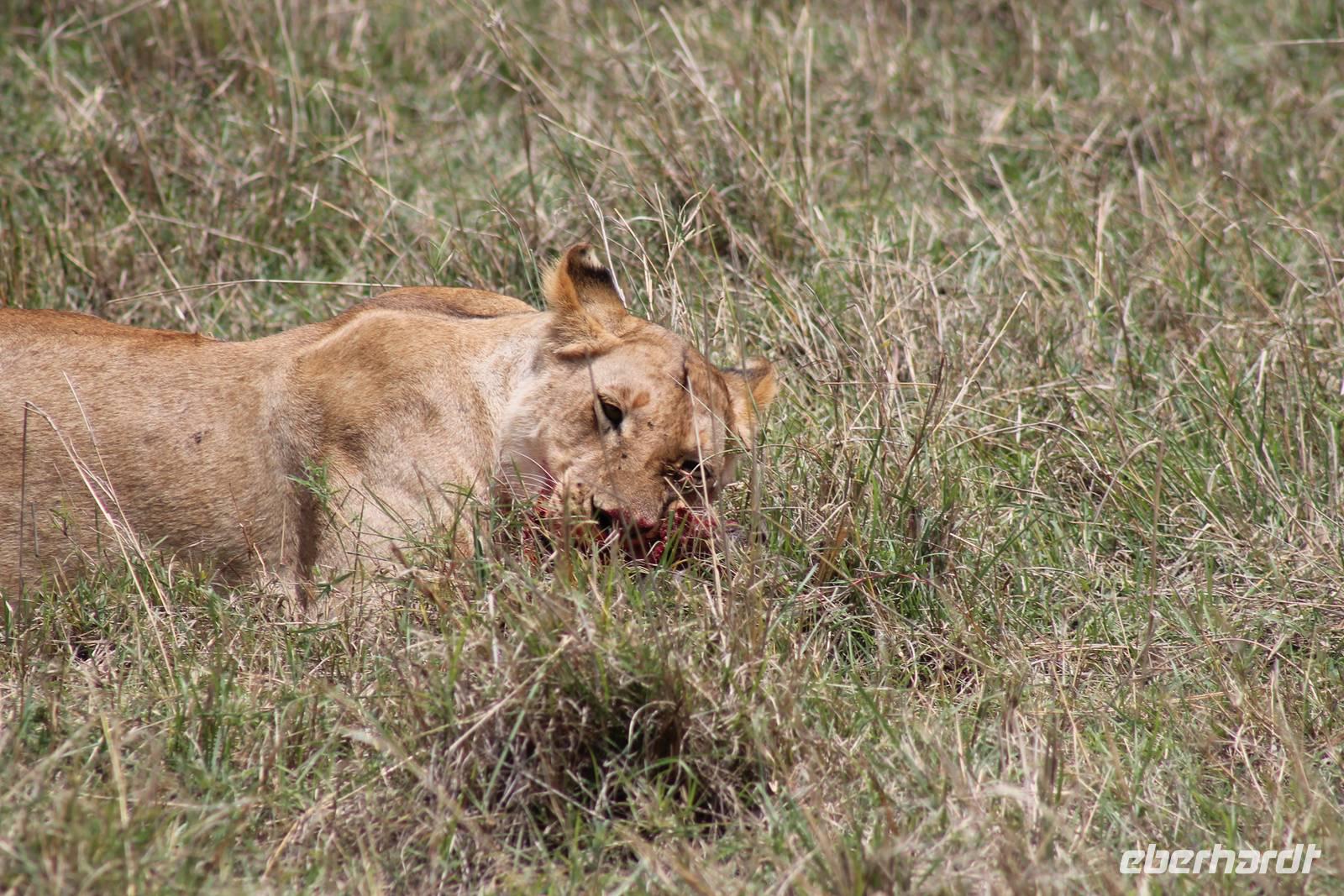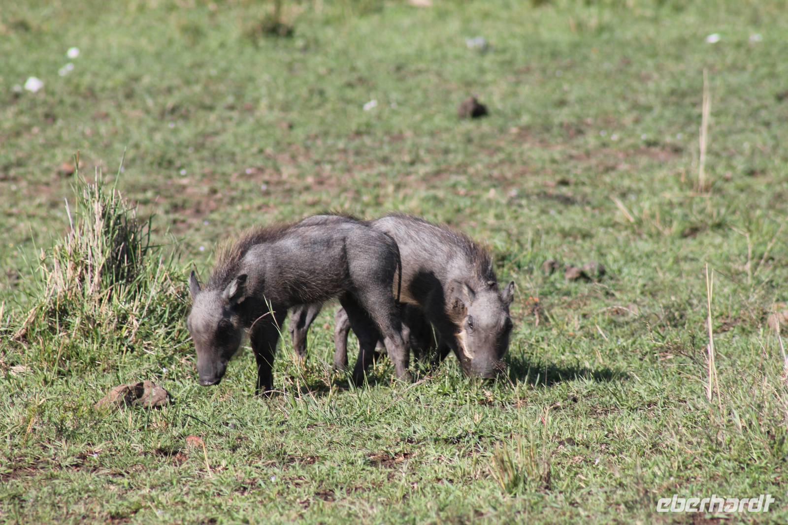 Die nächsten beiden Tage stehen ganz im Zeichen der Masai Mara und viele von uns empfanden diese zweifelsohne als einen Höhepunkt der Reise. Wir stehen natürlich wieder zeitig auf um eine frühe Pirsch in der Masai Mara zu unternehmen. Alle haben mehr oder weniger gut in ihren Zelten geschlafen, denn die Angst vor den Hippos bleibt, zumindest bei Vicky :-). Aber Sie fühlt sich schon etwas sicherer, da Sie ja ihren Askari immer dabei hat. Während unseren heutigen Pirschfahrten sehen wir wieder allerhand Tiere: Viele Gnuherden, einige Geier, kleine und große Warzenschweine und ganz viele Topis mit Jungen, die gerade erst geboren sind. Jackson erklärt uns, dass gerade Paarungszeit ist und so viele Jungen zur Welt kommen. Unglaublich das die kleinen Geschöpfe schon direkt nach der Geburt laufen und stehen können. Natürlich werden Sie von der Mutter sehr umsorgt, weil die Raubkatzen natürlich überall lauern um sich auch ein kleines Topi zu schnappen. Später sehen wir auch noch einen Strauss und mehrere Löwen. Später werden unsere Fahrer informiert, dass sich wohl ein totes Impala auf einem Baum befindet, welches von einem Leoparden gerissen wurde. Leider sehen wir nur das tote Impala aber keinen Leoparden. Ob wir ihn doch noch gesehen haben, erfahren Sie nur wenn Sie weiter lesen. Nach einigen vorbeiziehenden Giraffen und vielen weiteren Kibizen fahren wir mit unseren Jeeps zum Fluss, wo sich aus der Erfahrung heraus immer viele Tiere tummeln und wir sollten Recht behalten. Am Fluss angekommen sehen wir ein riesiges Krokodil, wahrscheinlich das größte Krokodil was wir bisher gesehen haben und auch einige Hippos. Wir sehen auch ein Hippo, was sich im Busch versteckt und viele Wunden hat. Wahrscheinlich hat es einen Machtkampf verloren und muss jetzt einsam und allein leben. Noch vor unserem Mittagessen begegnen wir auch einigen Löwen, die sich über eine Beute hermachen. Viele glauben es wäre ein kleines Warzenschwein, aber genau erkennen können wir es nicht, da es fast vollständig verspeist wurde. Bevor wir heute zu unserem Camp zurückkehren sehen wir auch endlich die ersten Elefanten und sogar mit Jungen. Es ist äußerst niedlich anzusehen, wir der Kleine versucht alles seiner Mutter nachzumachen. So versucht auch er sich Wasser über den Körper zu spritzen aber leider gelingt es nicht so richtig. Aber schön anzusehen war es in jedem Fall. An unserem Camp angekommen genießen wir ein leckeres Mittagessen und genießen dann noch ein wenig die Stille, die uns gibt. Es könnte mehr solche Momente geben aber natürlich wollen wir alle auch etwas erleben. So fahren wir auch am späten Nachmittag noch einmal raus, um weitere Tiere auf unsere Fotos zu bekommen und wir werden nicht enttäuscht. So sehen wir wunderschöne Masai Giraffen, Elandantilopen, Glanzgazellen, eine Riesentrappe, einen Marabu und auch den seltenen Kingfisher, den wir nun endlich auch einmal auf die Linse bekommen. Darüber freuen sich die Ornitologen unter uns natürlich auch sehr. Auch die Dämmerung hat heute noch so einiges zu bieten. So sehen wir noch eine Löwenfamilie mit kleinen Jungen, die gerade erst geboren sind. Ewig könnte man den kleinen zuschauen und man glaubt gar nicht, dass diese kleinen Wesen später mal zu Raubkatzen werden. Auf unserem Rückweg sehen wir noch eine Hyäne im Straßengraben, die sich von uns gar nicht stören lässt. Kurz bevor uns heute noch eine Überraschung erwartet, fahren unsere Jeeps noch einmal zu der Stelle, wo wir heute Morgen schon das tote Impala auf dem Baum gesehen haben und siehe da die Leopardenmama ist wieder da und hat auch ihr Junges im Gepäck. Wir können es kaum glauben, so schön sind diese Tiere und auch das Kleine würden wir am liebsten abknutschen.