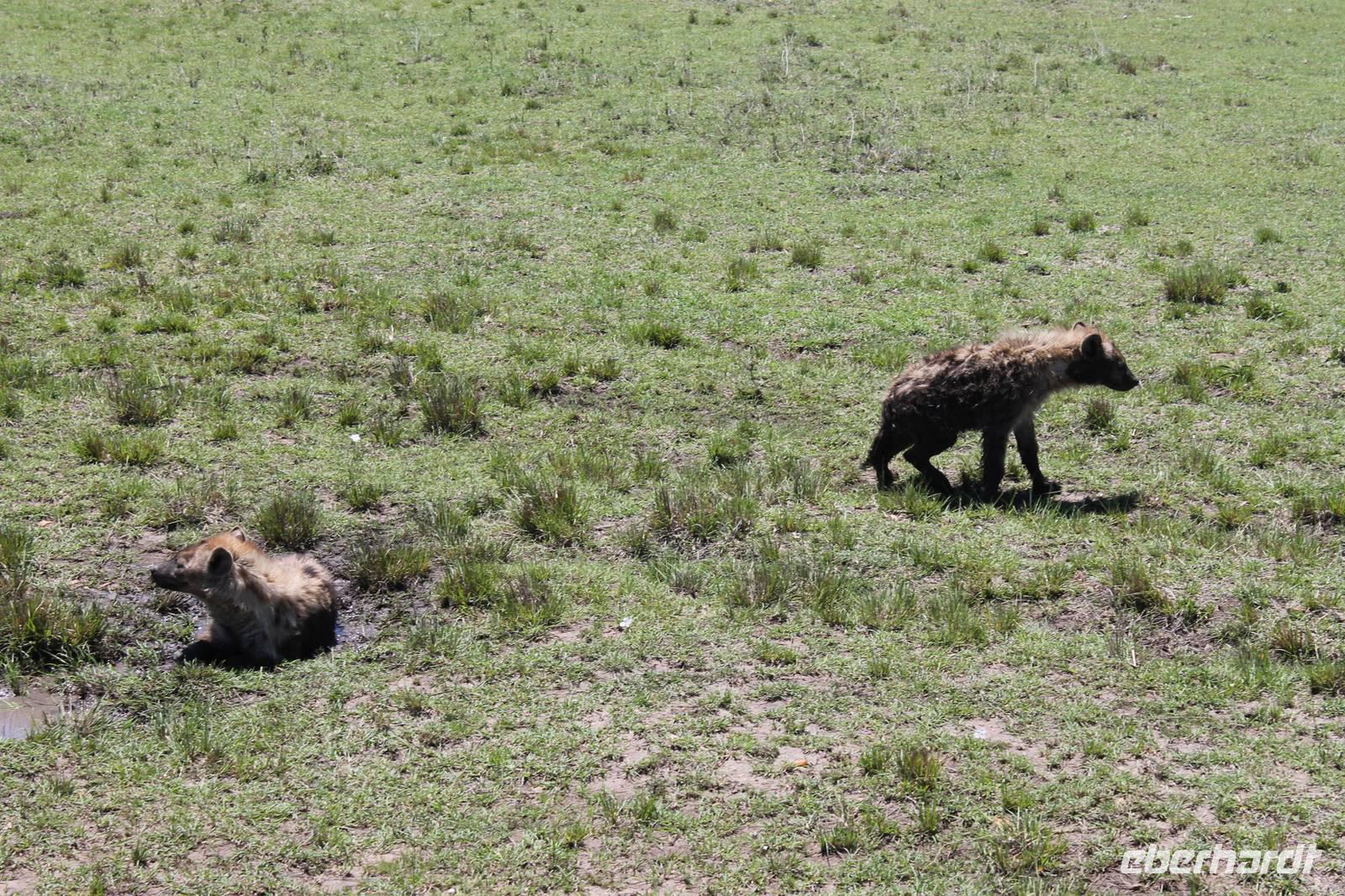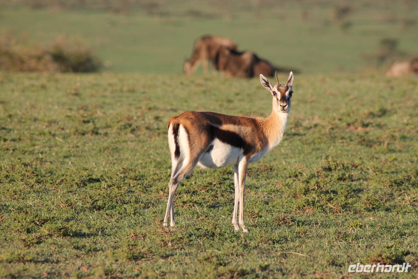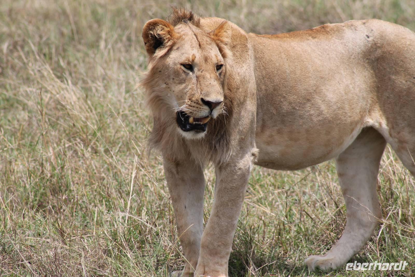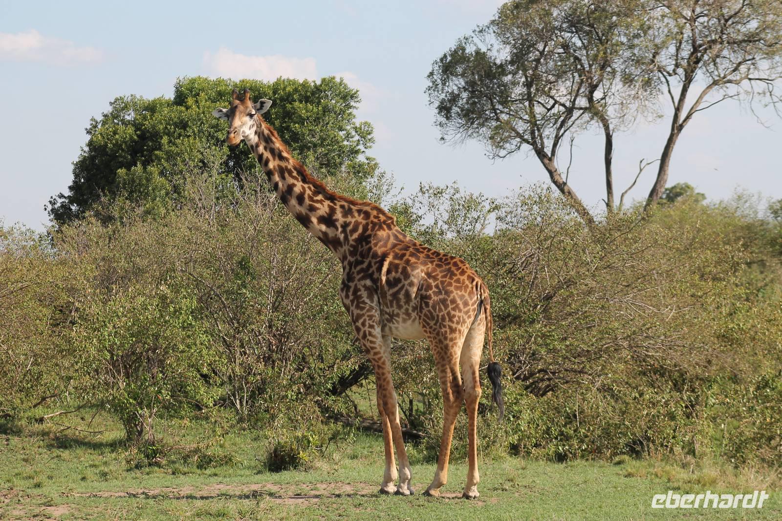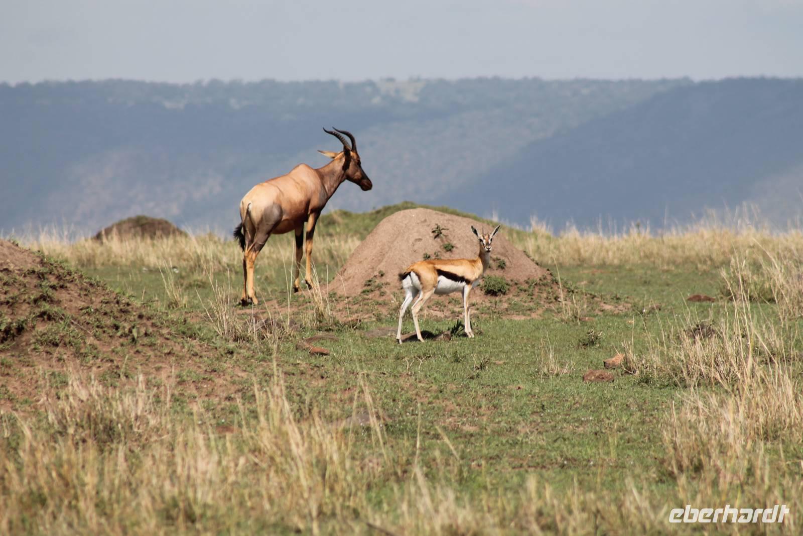 Die nächsten beiden Tage stehen ganz im Zeichen der Masai Mara und viele von uns empfanden diese zweifelsohne als einen Höhepunkt der Reise. Wir stehen natürlich wieder zeitig auf um eine frühe Pirsch in der Masai Mara zu unternehmen. Alle haben mehr oder weniger gut in ihren Zelten geschlafen, denn die Angst vor den Hippos bleibt, zumindest bei Vicky :-). Aber Sie fühlt sich schon etwas sicherer, da Sie ja ihren Askari immer dabei hat. Während unseren heutigen Pirschfahrten sehen wir wieder allerhand Tiere: Viele Gnuherden, einige Geier, kleine und große Warzenschweine und ganz viele Topis mit Jungen, die gerade erst geboren sind. Jackson erklärt uns, dass gerade Paarungszeit ist und so viele Jungen zur Welt kommen. Unglaublich das die kleinen Geschöpfe schon direkt nach der Geburt laufen und stehen können. Natürlich werden Sie von der Mutter sehr umsorgt, weil die Raubkatzen natürlich überall lauern um sich auch ein kleines Topi zu schnappen. Später sehen wir auch noch einen Strauss und mehrere Löwen. Später werden unsere Fahrer informiert, dass sich wohl ein totes Impala auf einem Baum befindet, welches von einem Leoparden gerissen wurde. Leider sehen wir nur das tote Impala aber keinen Leoparden. Ob wir ihn doch noch gesehen haben, erfahren Sie nur wenn Sie weiter lesen. Nach einigen vorbeiziehenden Giraffen und vielen weiteren Kibizen fahren wir mit unseren Jeeps zum Fluss, wo sich aus der Erfahrung heraus immer viele Tiere tummeln und wir sollten Recht behalten. Am Fluss angekommen sehen wir ein riesiges Krokodil, wahrscheinlich das größte Krokodil was wir bisher gesehen haben und auch einige Hippos. Wir sehen auch ein Hippo, was sich im Busch versteckt und viele Wunden hat. Wahrscheinlich hat es einen Machtkampf verloren und muss jetzt einsam und allein leben. Noch vor unserem Mittagessen begegnen wir auch einigen Löwen, die sich über eine Beute hermachen. Viele glauben es wäre ein kleines Warzenschwein, aber genau erkennen können wir es nicht, da es fast vollständig verspeist wurde. Bevor wir heute zu unserem Camp zurückkehren sehen wir auch endlich die ersten Elefanten und sogar mit Jungen. Es ist äußerst niedlich anzusehen, wir der Kleine versucht alles seiner Mutter nachzumachen. So versucht auch er sich Wasser über den Körper zu spritzen aber leider gelingt es nicht so richtig. Aber schön anzusehen war es in jedem Fall. An unserem Camp angekommen genießen wir ein leckeres Mittagessen und genießen dann noch ein wenig die Stille, die uns gibt. Es könnte mehr solche Momente geben aber natürlich wollen wir alle auch etwas erleben. So fahren wir auch am späten Nachmittag noch einmal raus, um weitere Tiere auf unsere Fotos zu bekommen und wir werden nicht enttäuscht. So sehen wir wunderschöne Masai Giraffen, Elandantilopen, Glanzgazellen, eine Riesentrappe, einen Marabu und auch den seltenen Kingfisher, den wir nun endlich auch einmal auf die Linse bekommen. Darüber freuen sich die Ornitologen unter uns natürlich auch sehr. Auch die Dämmerung hat heute noch so einiges zu bieten. So sehen wir noch eine Löwenfamilie mit kleinen Jungen, die gerade erst geboren sind. Ewig könnte man den kleinen zuschauen und man glaubt gar nicht, dass diese kleinen Wesen später mal zu Raubkatzen werden. Auf unserem Rückweg sehen wir noch eine Hyäne im Straßengraben, die sich von uns gar nicht stören lässt. Kurz bevor uns heute noch eine Überraschung erwartet, fahren unsere Jeeps noch einmal zu der Stelle, wo wir heute Morgen schon das tote Impala auf dem Baum gesehen haben und siehe da die Leopardenmama ist wieder da und hat auch ihr Junges im Gepäck. Wir können es kaum glauben, so schön sind diese Tiere und auch das Kleine würden wir am liebsten abknutschen.