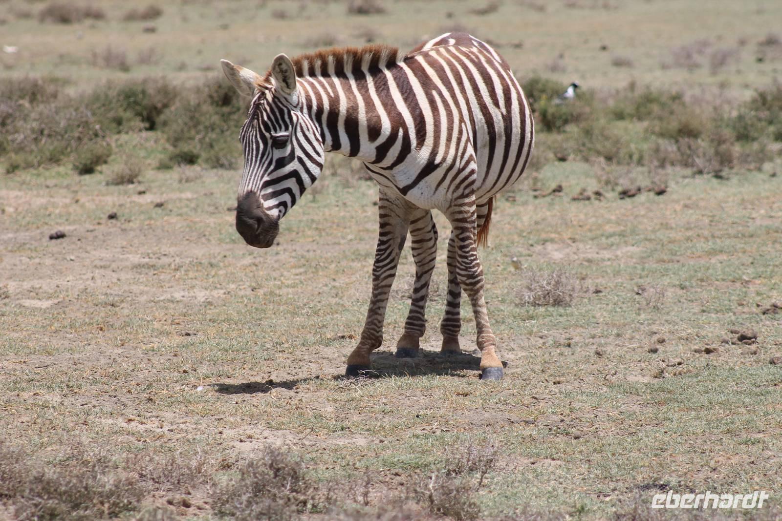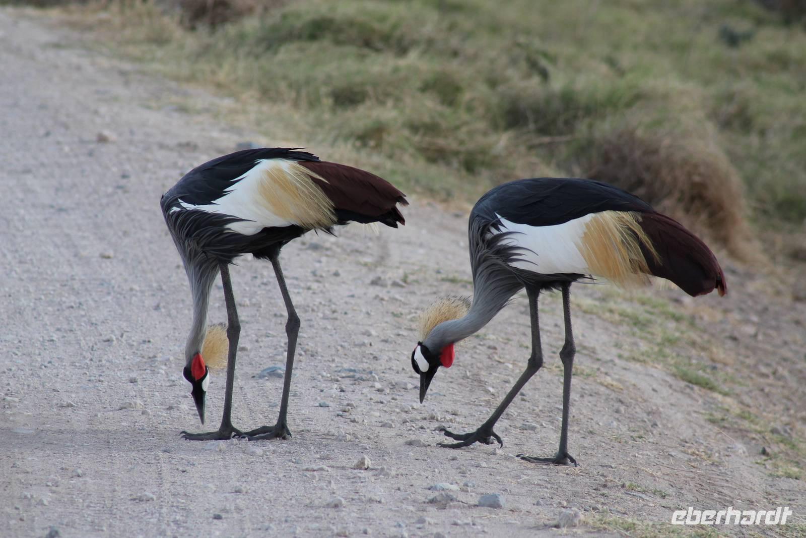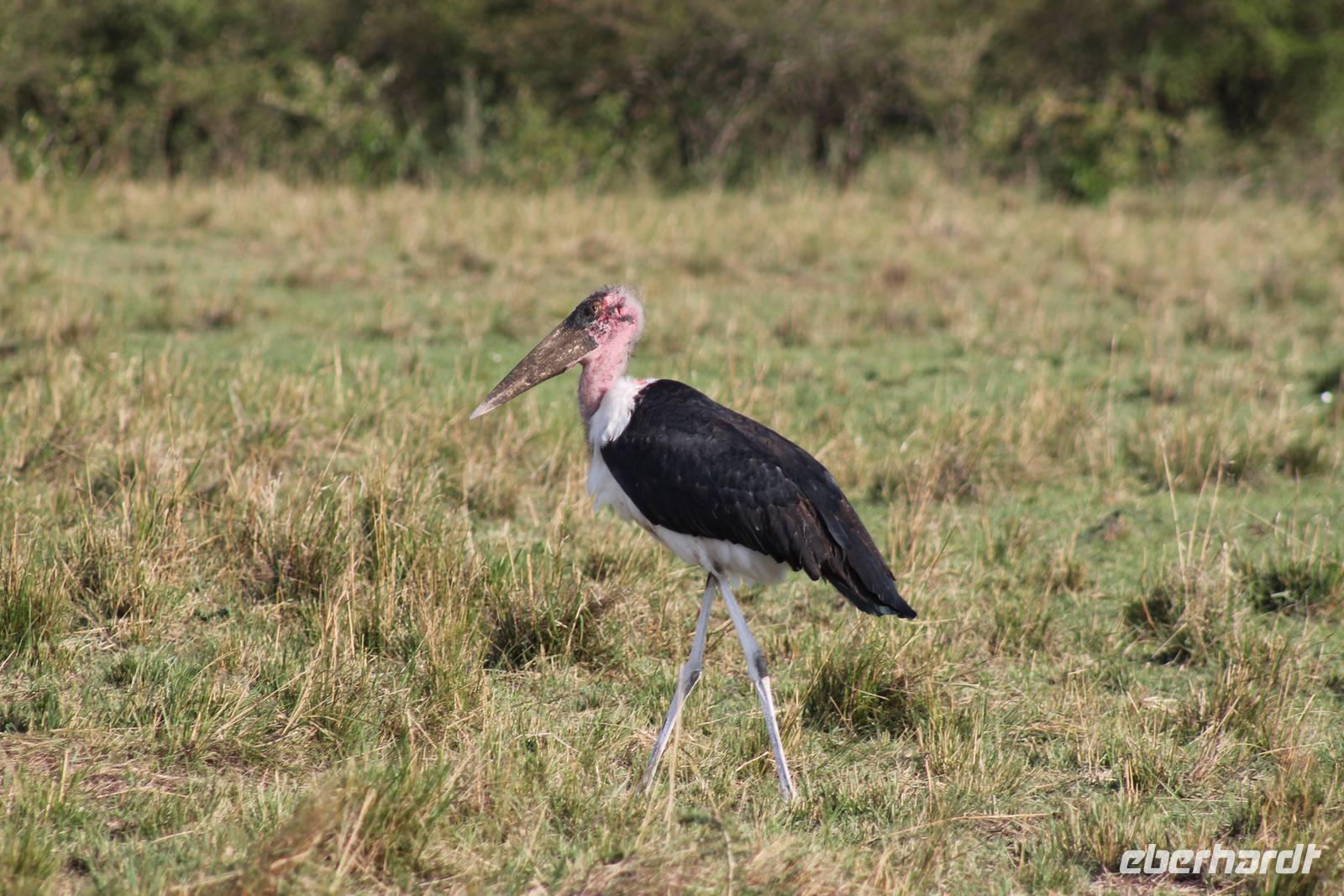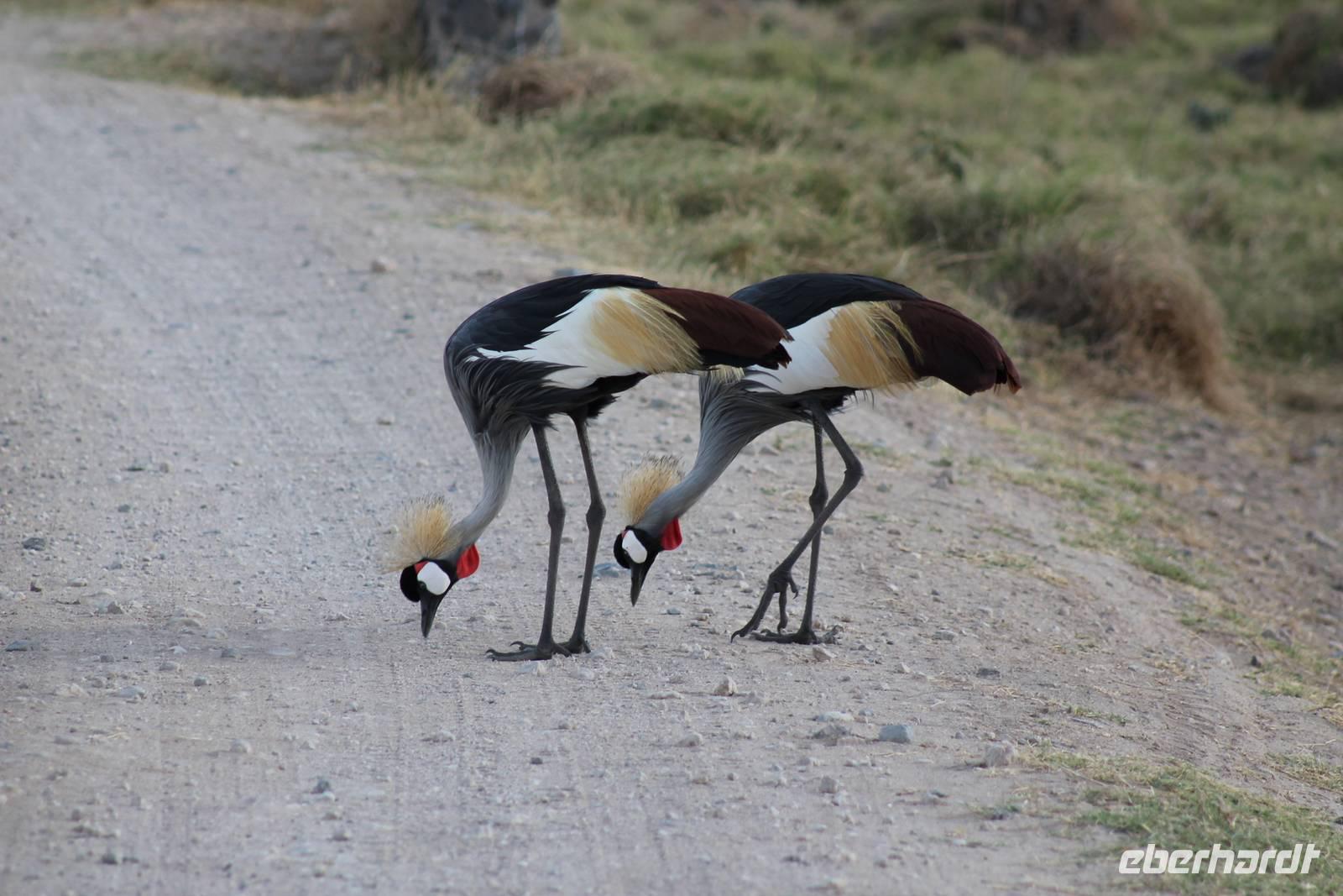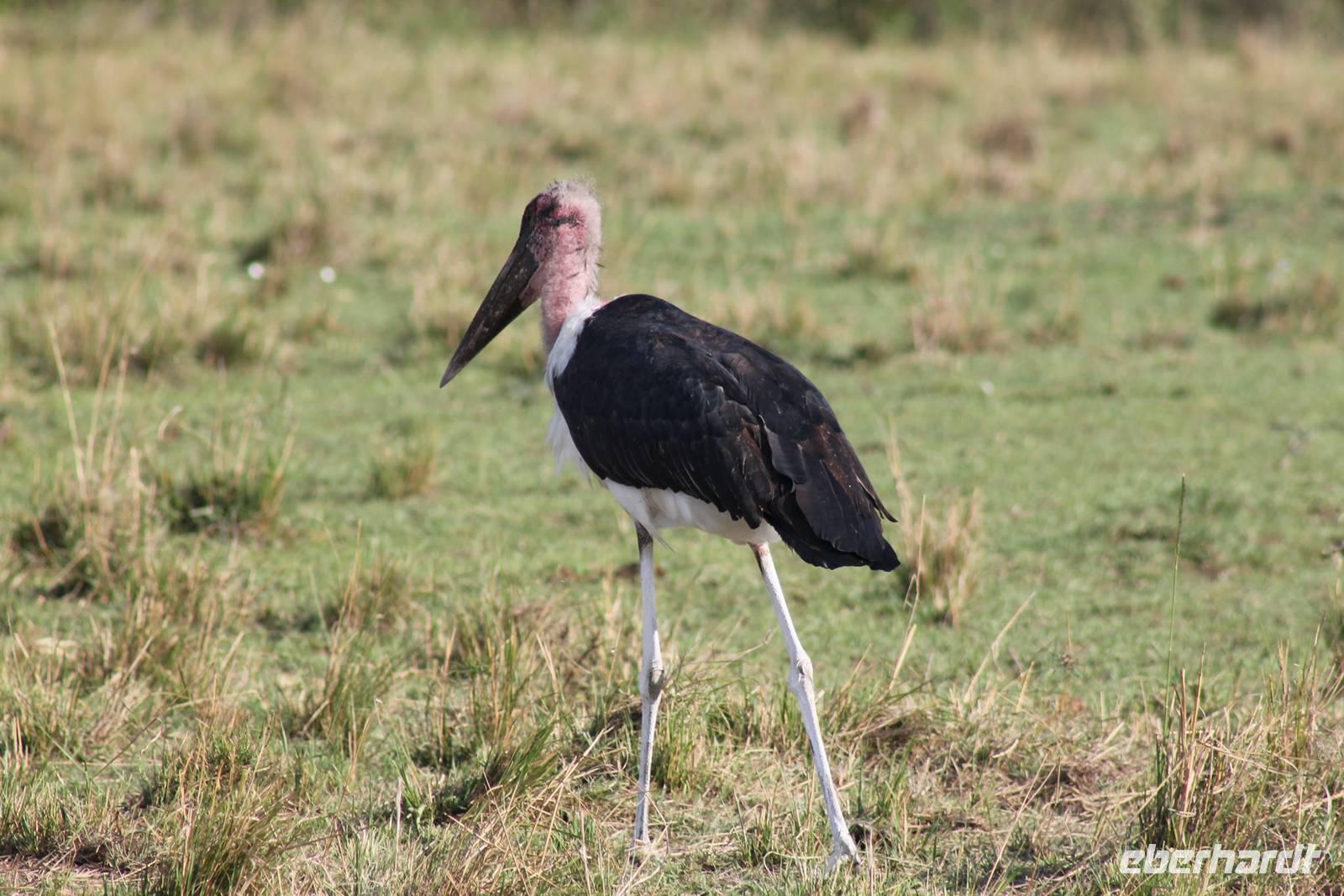 Heute ist in Deutschland Feiertag und so hat der Jeep von Jackson heute schulfrei. An allen anderen Tagen müssen immer schwierige Aufgaben gelöst werden, die am Ende bei einer Prüfung abgefragt werden. So sind wir froh, dass wir heute unsere Safari ohne Aufgaben in Ruhe genießen können. Heute müssen wir schon früh aufstehen, denn wir unternehmen eine Safari noch vor dem Frühstück. Der Lake Nakuru ist weltweit berühmt wegen seinem Vogelreichtum und besonders für die riesigen Flamingoschwärme mit bis zu 1,5 Millionen Tieren. Uns fällt auch heute im guten Licht besonders auf, dass der Nationalpark nicht nur eine unheimliche Tierdichte aufweist, sondern auch landschaftlich sehr abwechslungsreich ist mit Savannen, Wäldern, Felsen und Sumpf - und Seegebieten. Bevor wir aber heute morgen zeitig zum See fahren, sehen wir noch zwei schöne Hyänen sowie viele Büffel, Wasserböcke und Zebras, die sich teilweise auch am Seeufer tummeln. Am See angekommen sehen wir unheimlich viele Flamingos aber auch andere Vögel wie den Nimmersatt, den Kibiz und den Löffler, denen der See ebenfalls ein Zuhause bietet. Wir können uns gar nicht satt sehen an der unglaublichen Vogelschar. Im Hintergrund des Sees sehen wir auch einige Giraffen. Anschließend setzen wir unsere Pirsch fort und sehen noch einen Steppenadler, einige Schwalben, Graureiher und drei schöne Nashörner. Außerdem ein schönes Exemplar der Gabelrake und des Widehopfes.