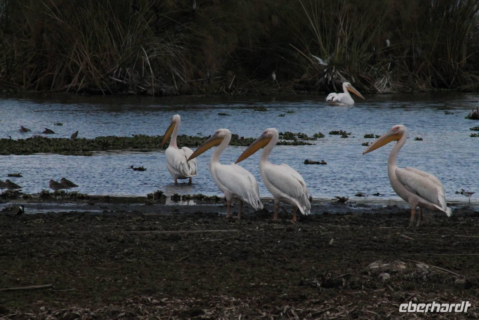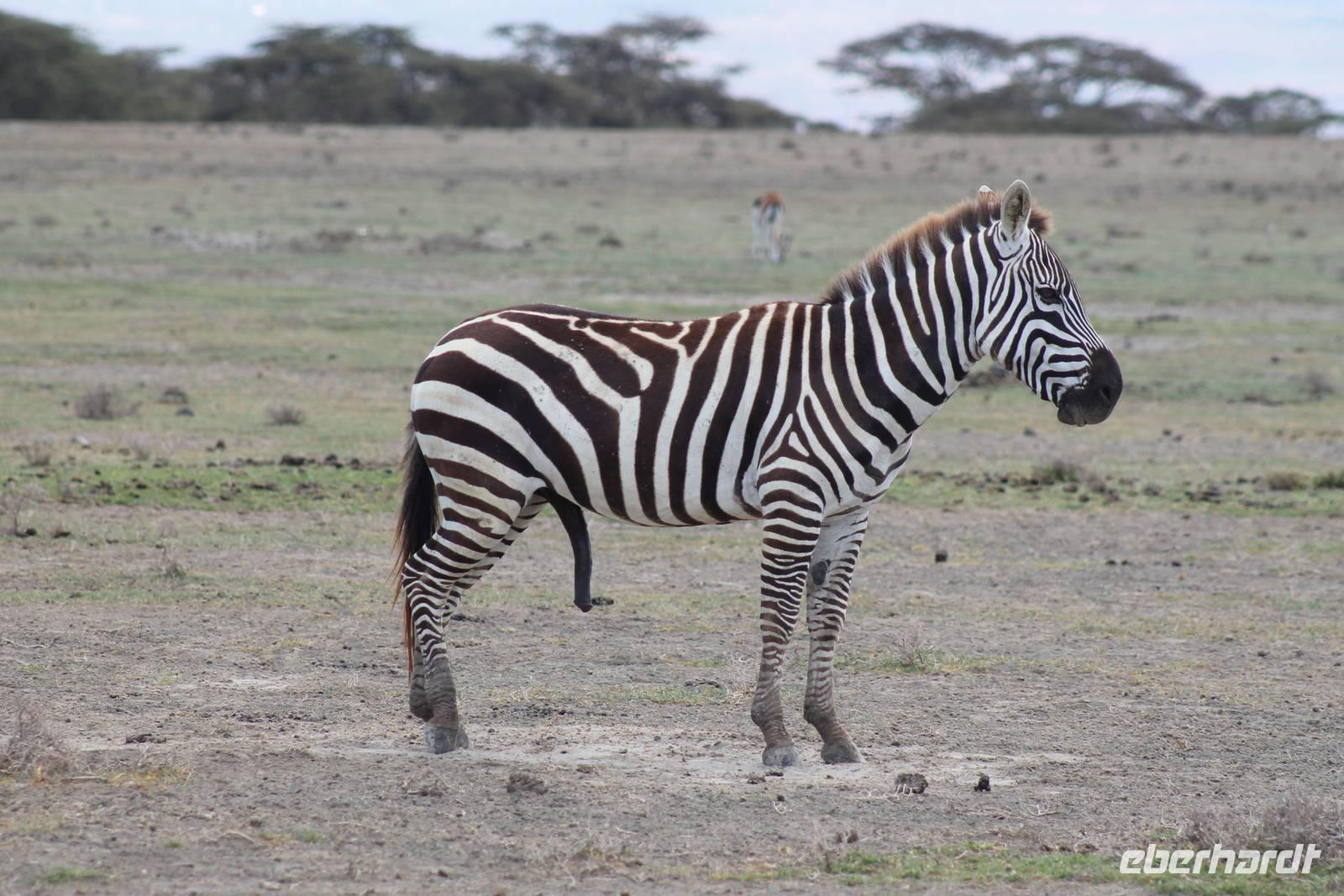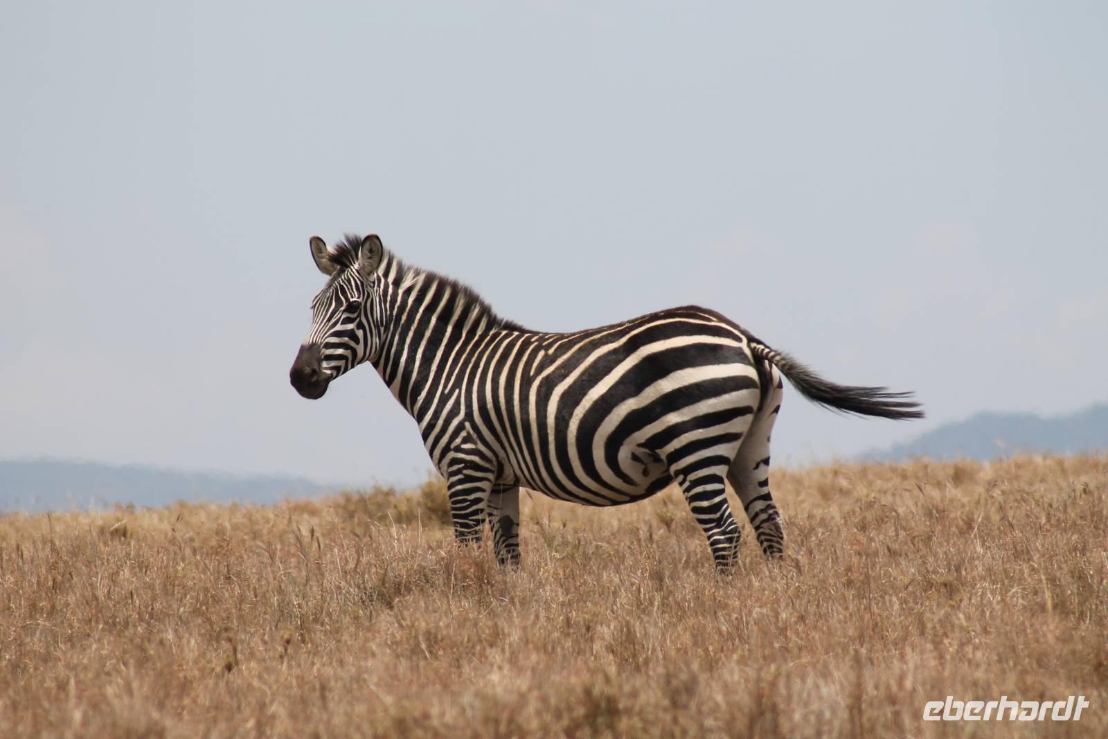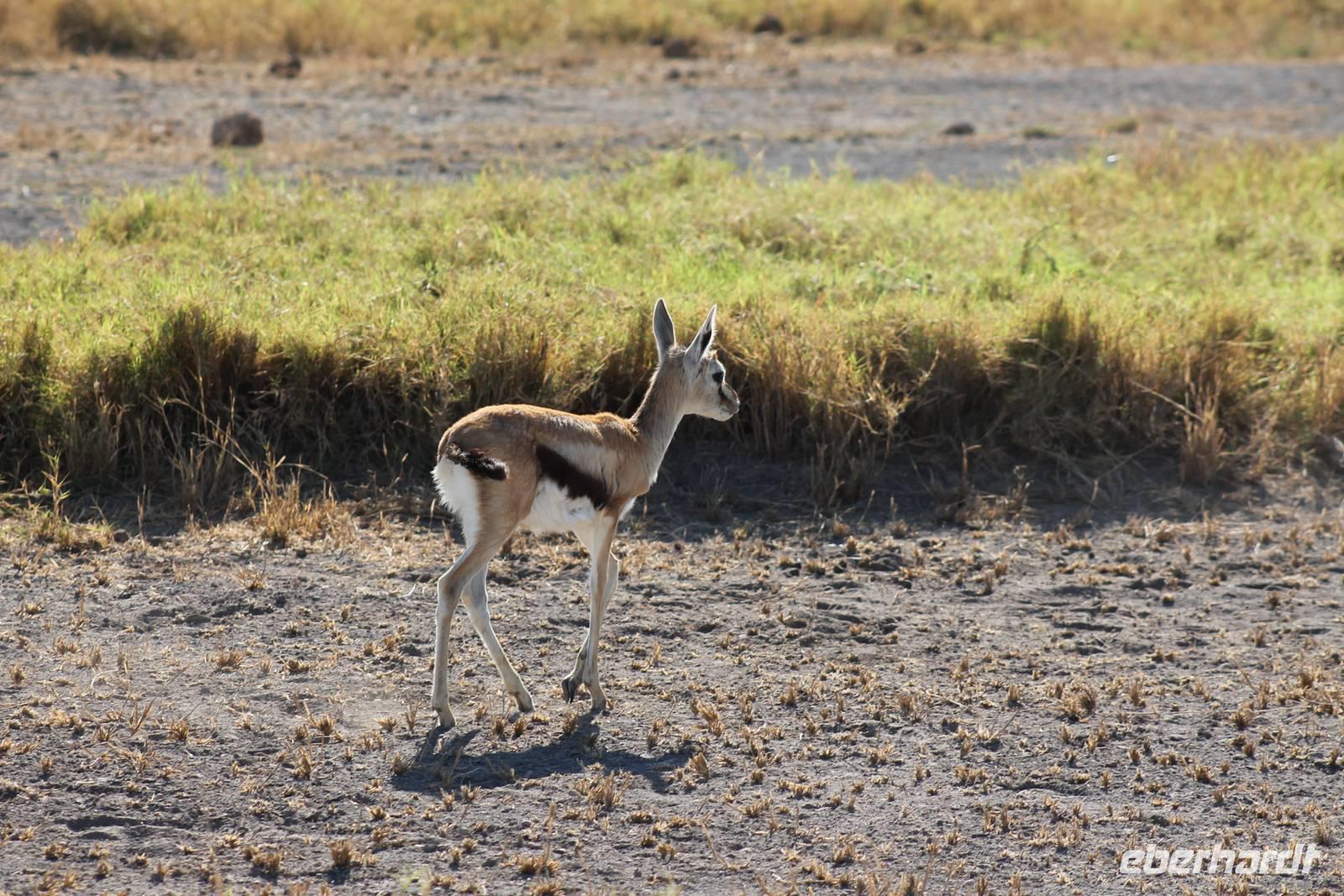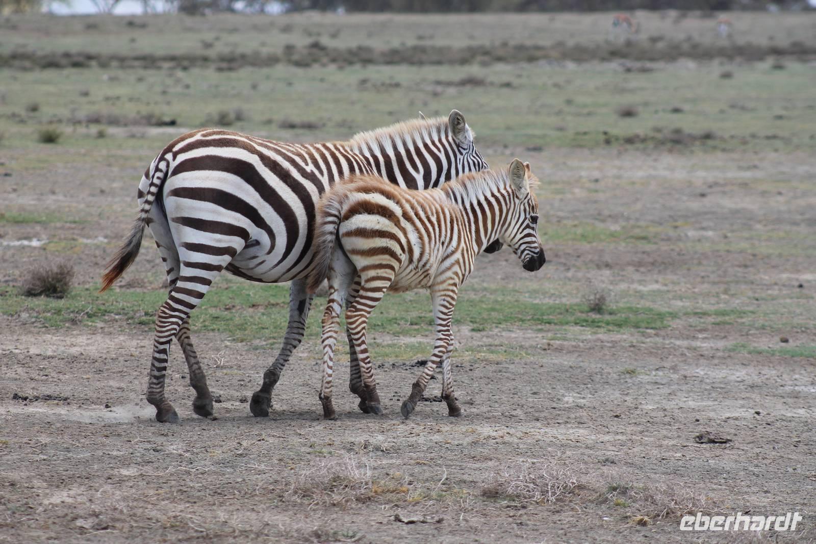 Heute ist in Deutschland Feiertag und so hat der Jeep von Jackson heute schulfrei. An allen anderen Tagen müssen immer schwierige Aufgaben gelöst werden, die am Ende bei einer Prüfung abgefragt werden. So sind wir froh, dass wir heute unsere Safari ohne Aufgaben in Ruhe genießen können. Heute müssen wir schon früh aufstehen, denn wir unternehmen eine Safari noch vor dem Frühstück. Der Lake Nakuru ist weltweit berühmt wegen seinem Vogelreichtum und besonders für die riesigen Flamingoschwärme mit bis zu 1,5 Millionen Tieren. Uns fällt auch heute im guten Licht besonders auf, dass der Nationalpark nicht nur eine unheimliche Tierdichte aufweist, sondern auch landschaftlich sehr abwechslungsreich ist mit Savannen, Wäldern, Felsen und Sumpf - und Seegebieten. Bevor wir aber heute morgen zeitig zum See fahren, sehen wir noch zwei schöne Hyänen sowie viele Büffel, Wasserböcke und Zebras, die sich teilweise auch am Seeufer tummeln. Am See angekommen sehen wir unheimlich viele Flamingos aber auch andere Vögel wie den Nimmersatt, den Kibiz und den Löffler, denen der See ebenfalls ein Zuhause bietet. Wir können uns gar nicht satt sehen an der unglaublichen Vogelschar. Im Hintergrund des Sees sehen wir auch einige Giraffen. Anschließend setzen wir unsere Pirsch fort und sehen noch einen Steppenadler, einige Schwalben, Graureiher und drei schöne Nashörner. Außerdem ein schönes Exemplar der Gabelrake und des Widehopfes.