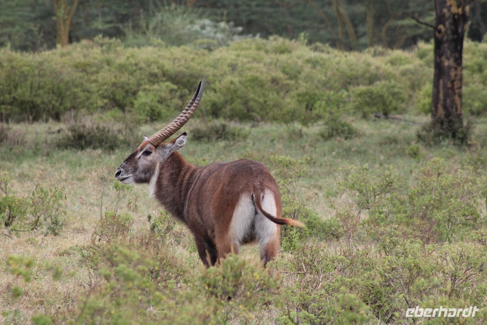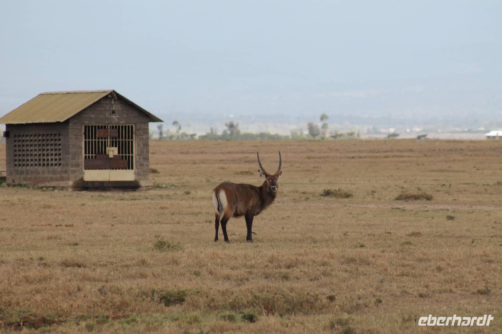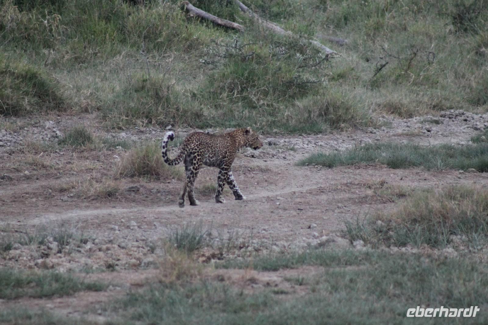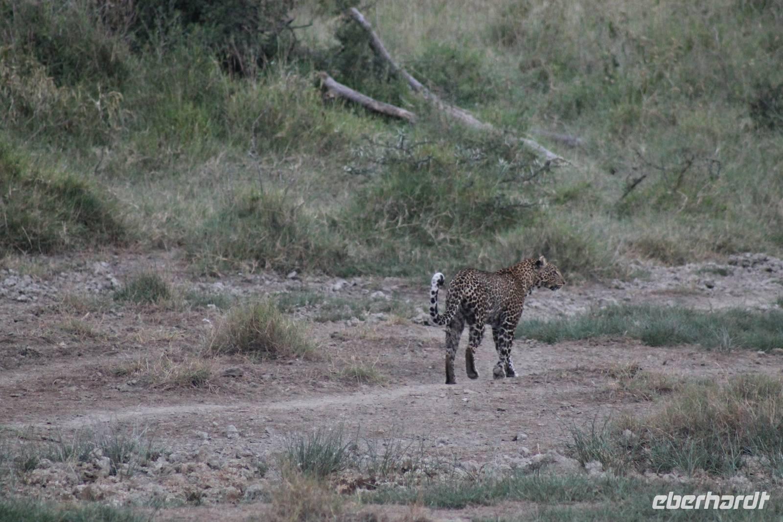 So fahren wir heute weiter in Richtung Nakuru See. Unterwegs erreichen wir nahe der Stadt Nyahururu, die Äquatorgrenze und lassen es uns natürlich nicht nehmen, uns hier zu fotografieren. Außerdem nehmen wir uns diesen Ort als Anlass, um uns am Äquator zu taufen. So erhält ein jeder einen Amarula zum Anstoßen, so wie es sich in Afrika gehört und ein Zertifikat, dass Original hier ausgestellt wurde um zu beweisen, dass wir auch hier waren. Anschließend fahren wir weiter zum Thomson Wasserfall und unternehmen einen kleinen Rundgang. Der Wasserfall stürzt majestätisch 80 Meter in die Tiefe und bietet ein schönes Fotomotiv. Einige Gäste lassen sich noch mit einem Chamäleon fotografieren. Anschließend erreichen wir kurze Zeit später unsere schöne Lake Nakuru Lodge, direkt im Lake Nakuru Nationalpark gelegen. Hier angekommen beziehen wir unsere schönen Bungalows, von denen wir einen direkten Blick auf den Nationalpark genießen können. Nach einem leckeren Mittagessen vom Buffet mit Blick auf allerlei Wasserbüffel und Impalas setzen wir uns ein wenig zur Ruhe und genießen die afrikanische Stille auf unserer Bungalow-Terasse und lassen die vielen Eindrücke Revue passieren. Auf dem Gelände sehen wir auch einige Klippschläfer und Vögel wie den Robin oder den Mausvogel und auch einen seltenene Granatapfelbaum. Am Nachmittag unternehmen wir unsere erste Pirschfahrt durch den Nationalpark. Gleich am Anfang unserer Pirsch sehen wir viele Wasserbüffel in großen Herden sowie einige Bussarde und Paviane. Außerdem wunderschöne Kibize und Hagedachs sowie wunderbare Kronenkraniche. Dann sehen wir erst eine Zeit lang nichts, bis sich direkt neben uns im Graben ein Leopard in seiner ganzen Schönheit zeigt. Später bemerken wir, dass sich vor uns ein regelrechtes Schauspiel abspielt. Neben dem Leopard, der langsam im Wald verschwindet, sehen wir noch einen Schabrakenschakal und eine Hyäne. Der Schakal macht sich lautstark bemerkbar, um die anderen umliegenden Tiere, besonders die Impalas, vor dem Leopard zu warnen. Ein großes Glück für uns dieses Schauspiel mit ansehen zu können und am Abend können wir es kaum glauben, dass wir das live gesehen haben.