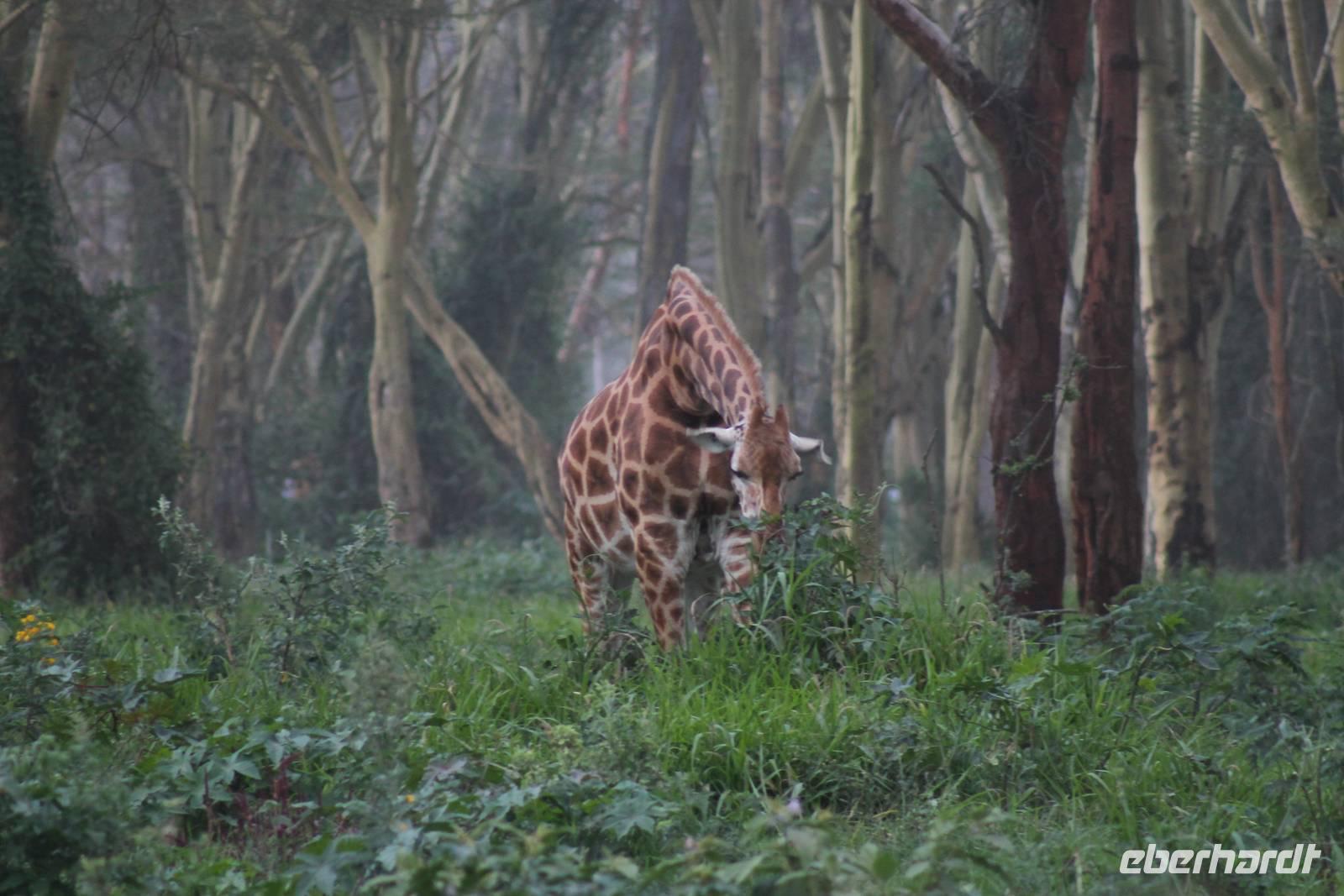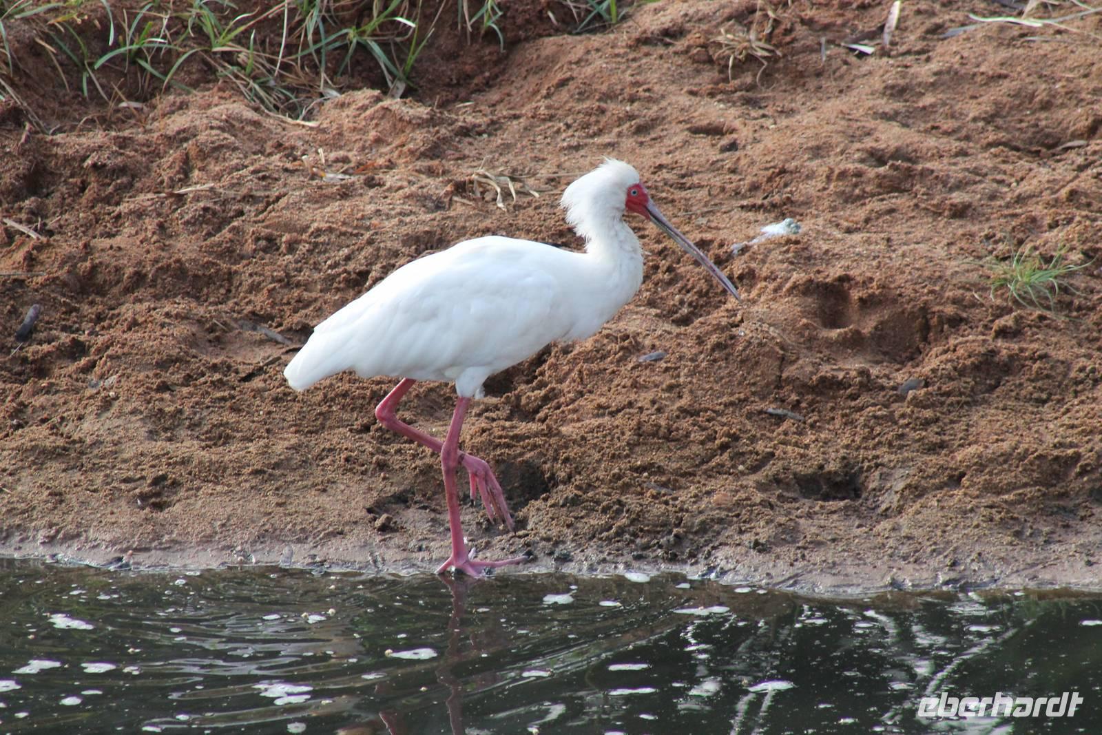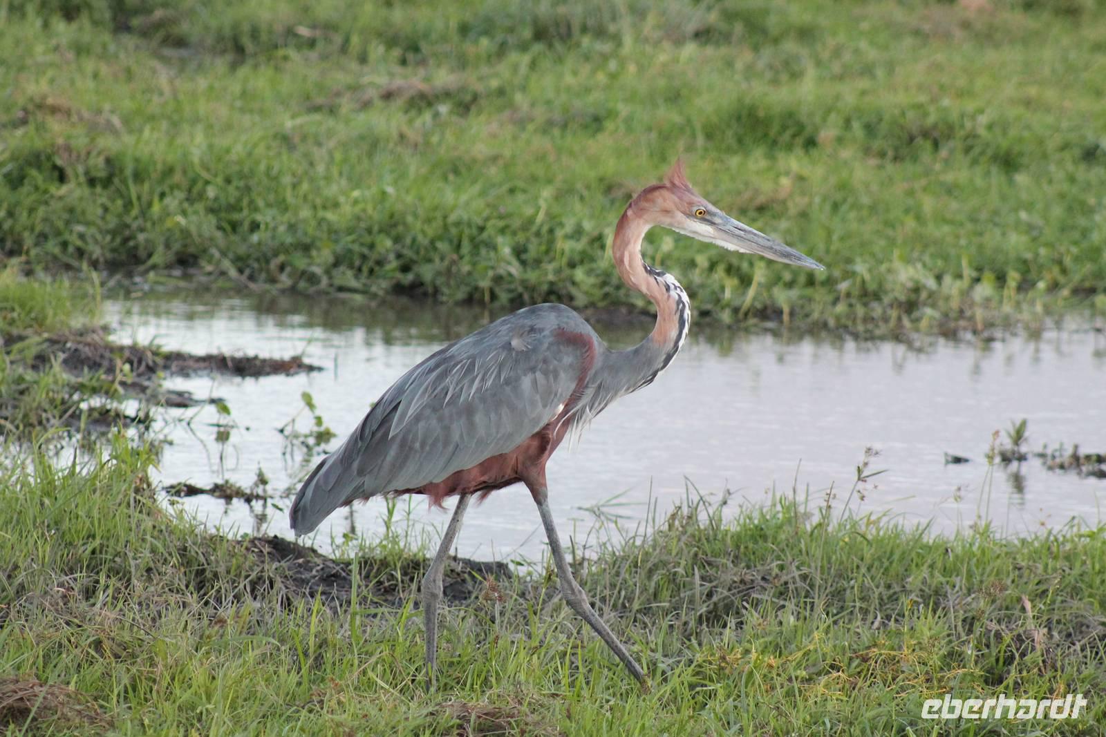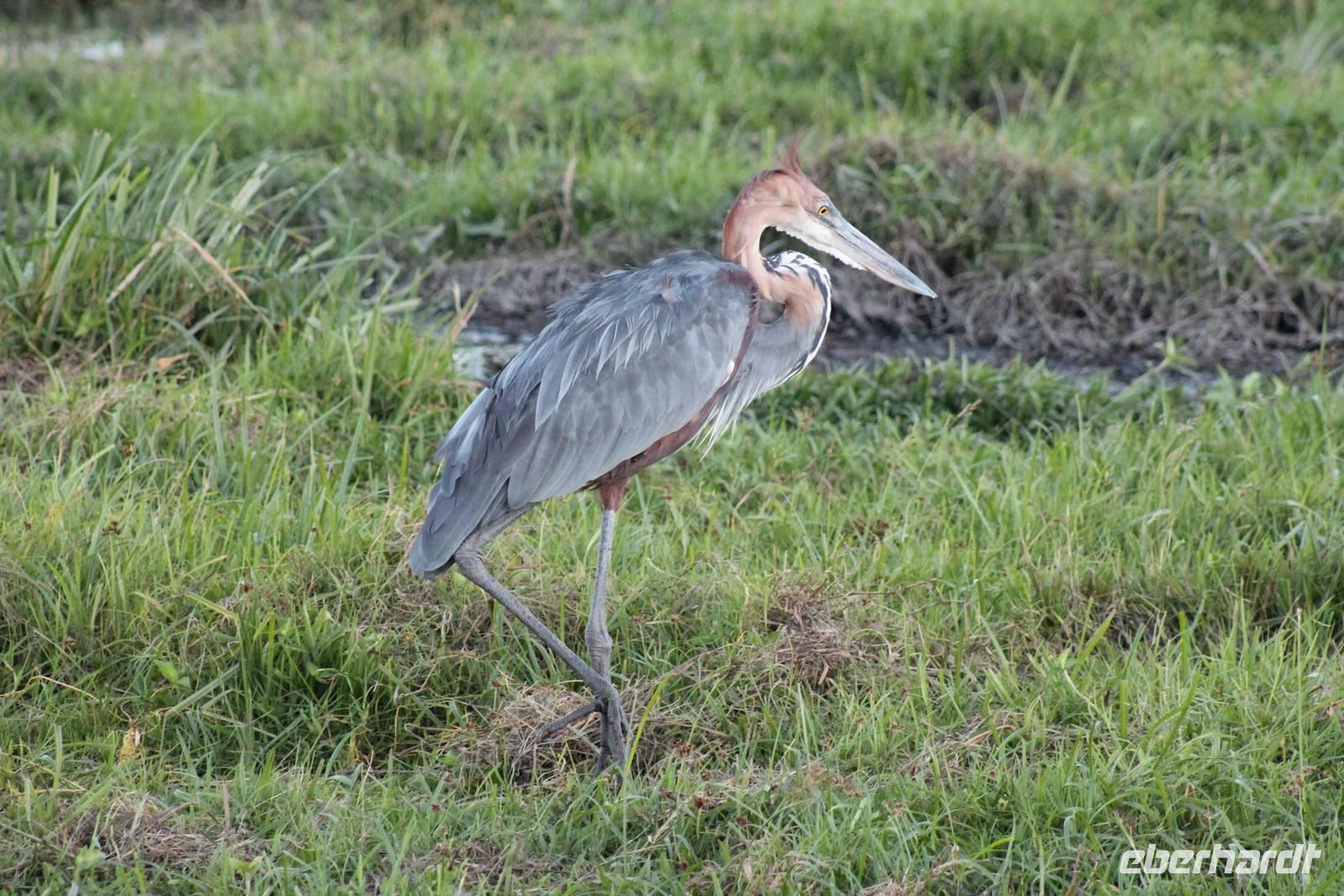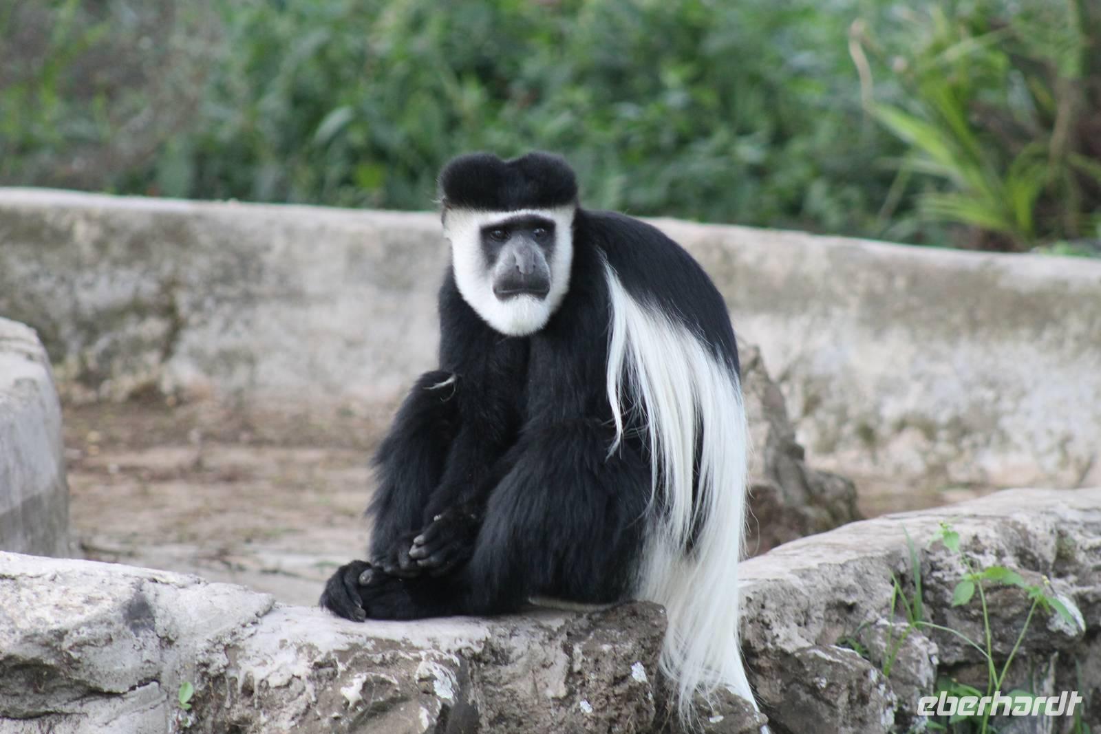 Doch bevor wir dieses heute besuchen, sehen wir schon vorher eine ganze Vielzahl an anderen Tieren wie unzählige Impalas, Wasserböcke, Perlhühner, Glanzstare, Sekretäre, Paviane und Wasserbüffel. Wir hätten nie damit gerechnet, dass wir schon heute so viele verschiedene Arten von Tieren sehen und sind begeistert. Auch das Licht der Sonne lässt uns wunderbare Aufnahmen machen. Nach einer ersten Safari Pirsch durch das Reservat, kommen wir am Schimpansen-Gebiet an. Mittlerweile haben wir schon Temperaturen um die 30 Grad und so erfahren wir, dass sich die Tiere natürlich gern im Schatten und in Büschen aufhalten. Trotzdem sehen wir am Ende noch ein paar schöne Exemplare und erfahren, wie die Schimpansen hier gehalten werden und warum Sie hierher gekommen sind. In jedem Fall eine lobenswerte und wichtige Maßnahme, die hier vollzogen wurde. Wir bedanken uns für den Rundgang und setzen unsere Pirschfahrt im Reservat fort. Wir sehen noch viele weitere Tiere und Vögel wie einen Weißkopfadler, Warzenschweine mit Madenhackern, weitere Sekretäre, Steppenzebras und als Krönung des Tages wunderbare Rothschildgiraffen, die sich vor uns aufstellen als wären Sie Models. Außerdem sehen wir noch wunderschöne Elan Antilopen und ein Spitzmaulnashorn mit Junge sowie Thomson-Gazellen und Glanz-Gazellen. All diese Eindrücke lassen sich kaum in Worte fassen.