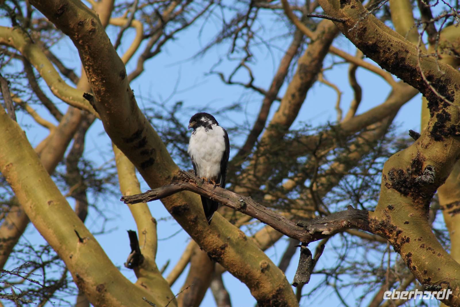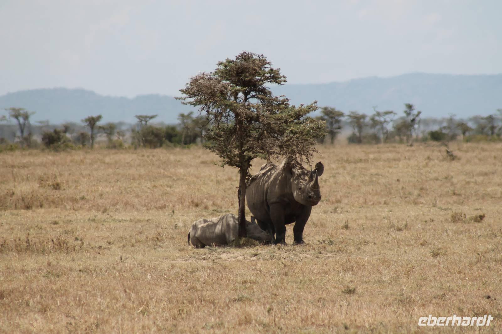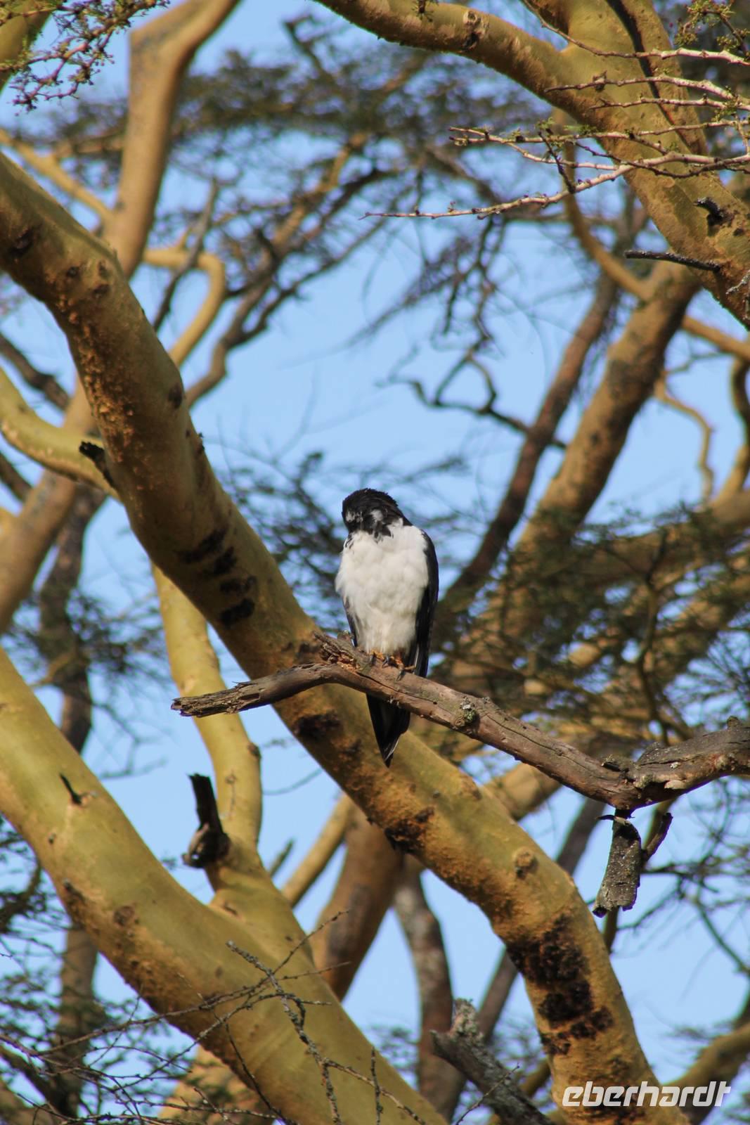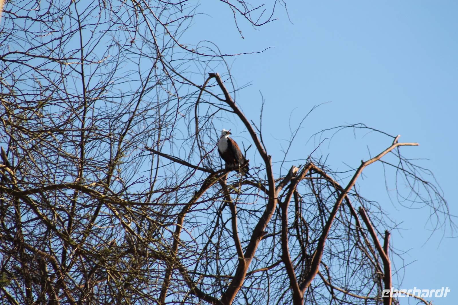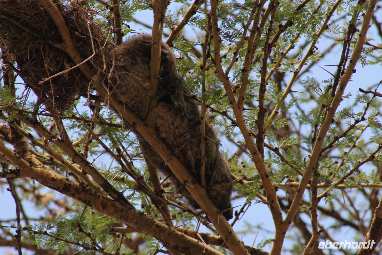 Am Nachmittag erreichen wir unseren Picknickplatz und besuchen vorher noch ein blindes Nashorn, dass hier weiterleben kann und um welches sich gesorgt wird. Hier geht es ihm gut. Anschließend picknicken wir unter afrikanischer Sonne und lassen uns die Köstlichkeiten, die uns Petra mitgegeben kann gut schmecken. Im Baum sehen wir noch einen Klippenschläfer, der seinen wohl verdienten Mittagsschlaf hält. Bevor wir zu unserer Lodge zurückfahren sehen wir noch einige Nilgänse, Sandpiper, Perlhühner, Waffenkibize und einen Schabrakenschakal, der auch unsere besondere Aufmerksamkeit verdient. Alle sind begeistert und so erreichen wir am späten Nachmittag wieder unsere schöne Sandai Farm. Hier genießen wir ein letztes Abendessen und den ein oder anderen Plausch mit Petra und lassen den Abend gemütlich ausklingen.