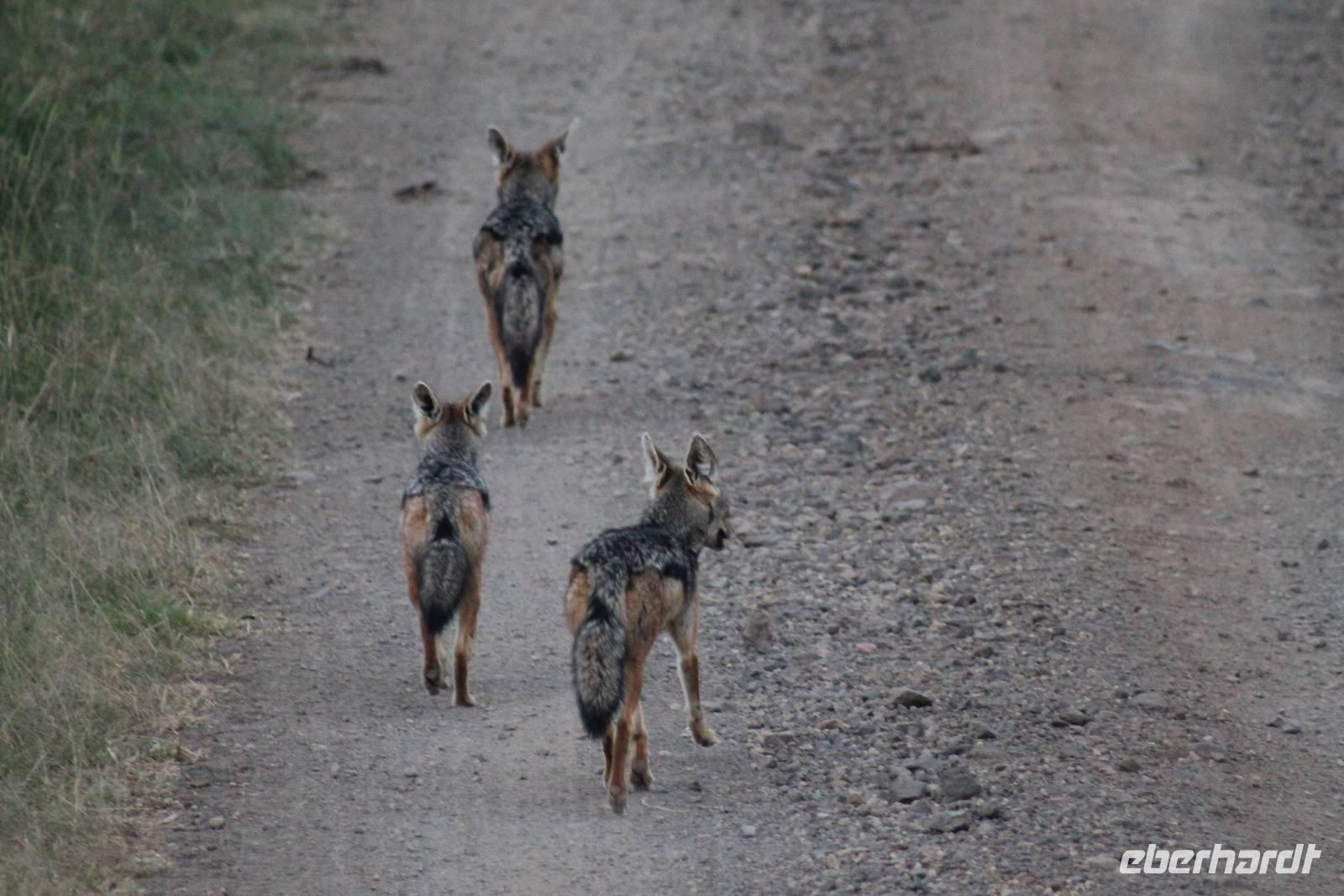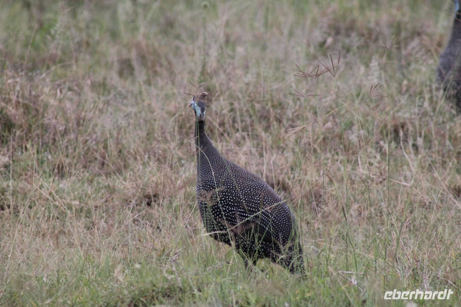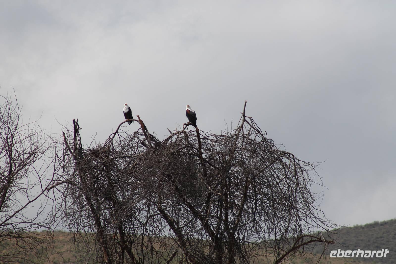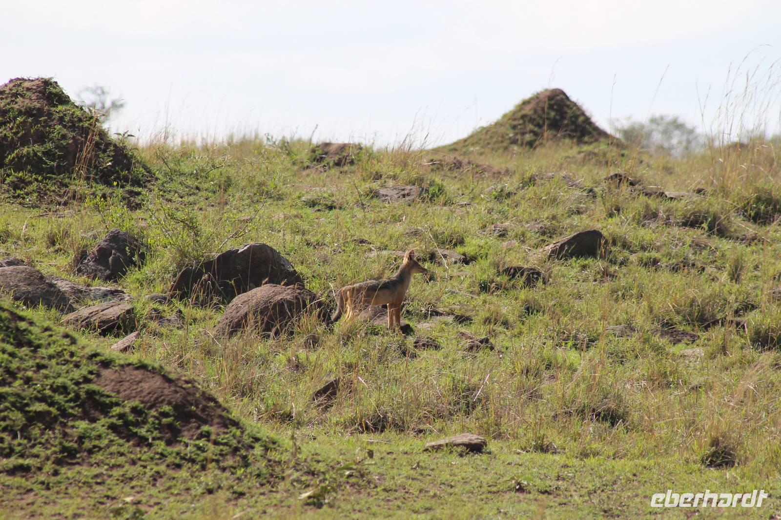 Am Nachmittag erreichen wir unseren Picknickplatz und besuchen vorher noch ein blindes Nashorn, dass hier weiterleben kann und um welches sich gesorgt wird. Hier geht es ihm gut. Anschließend picknicken wir unter afrikanischer Sonne und lassen uns die Köstlichkeiten, die uns Petra mitgegeben kann gut schmecken. Im Baum sehen wir noch einen Klippenschläfer, der seinen wohl verdienten Mittagsschlaf hält. Bevor wir zu unserer Lodge zurückfahren sehen wir noch einige Nilgänse, Sandpiper, Perlhühner, Waffenkibize und einen Schabrakenschakal, der auch unsere besondere Aufmerksamkeit verdient. Alle sind begeistert und so erreichen wir am späten Nachmittag wieder unsere schöne Sandai Farm. Hier genießen wir ein letztes Abendessen und den ein oder anderen Plausch mit Petra und lassen den Abend gemütlich ausklingen.