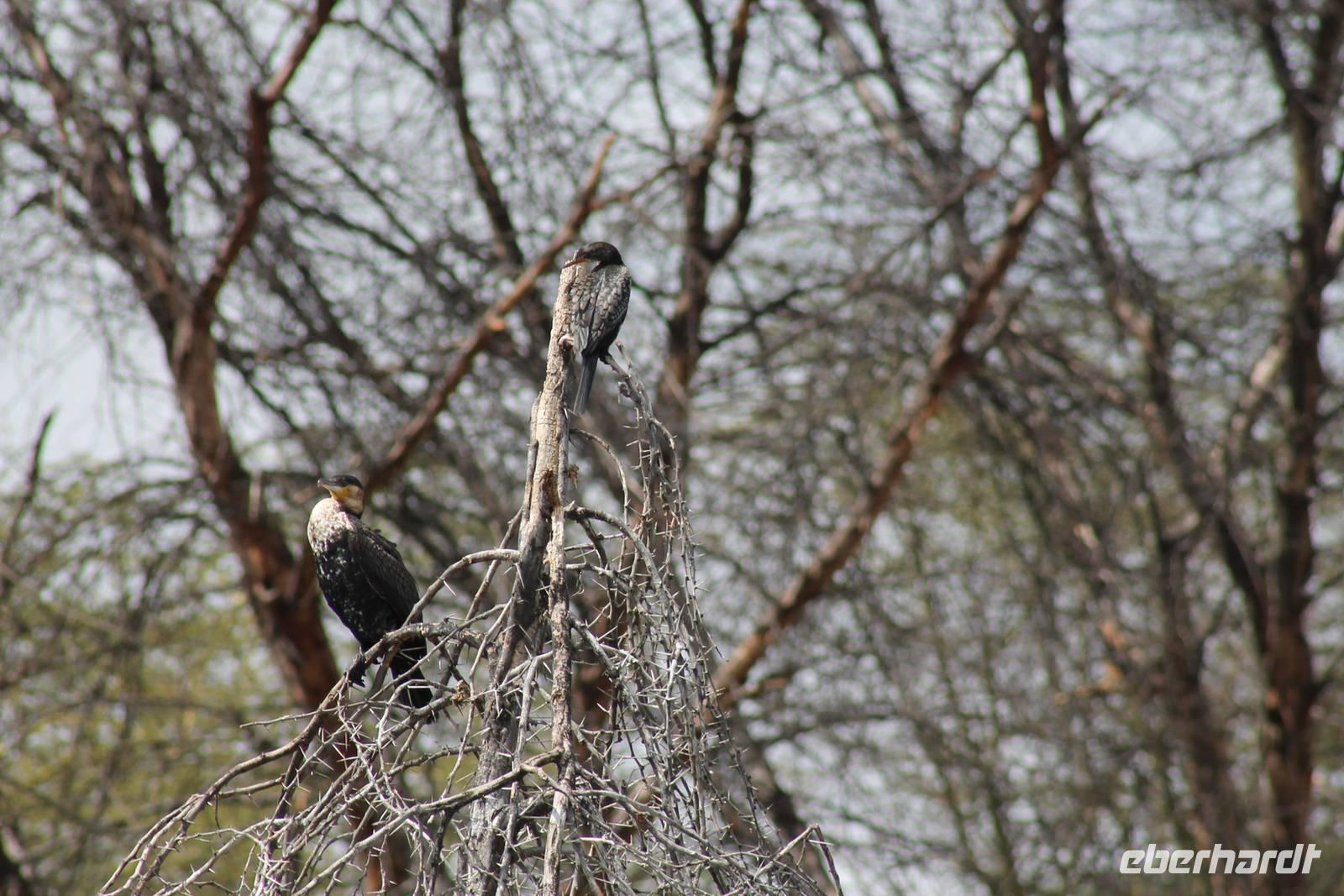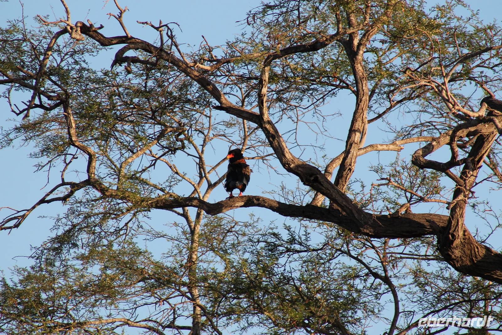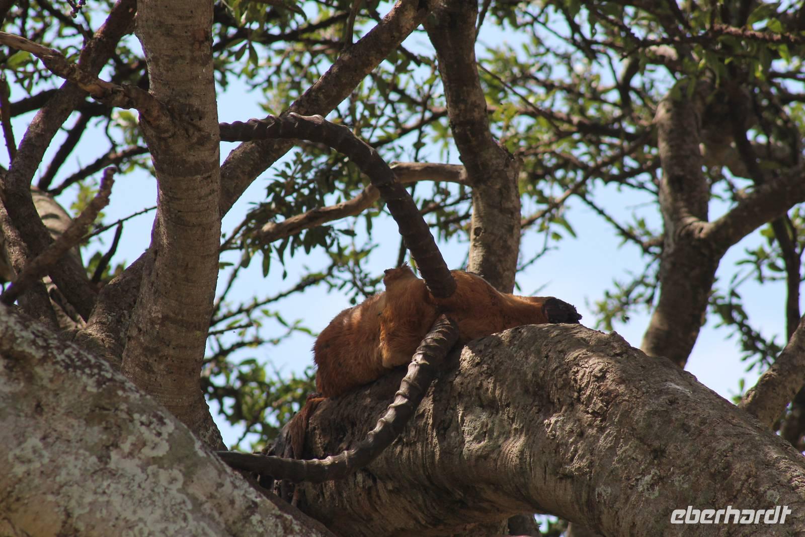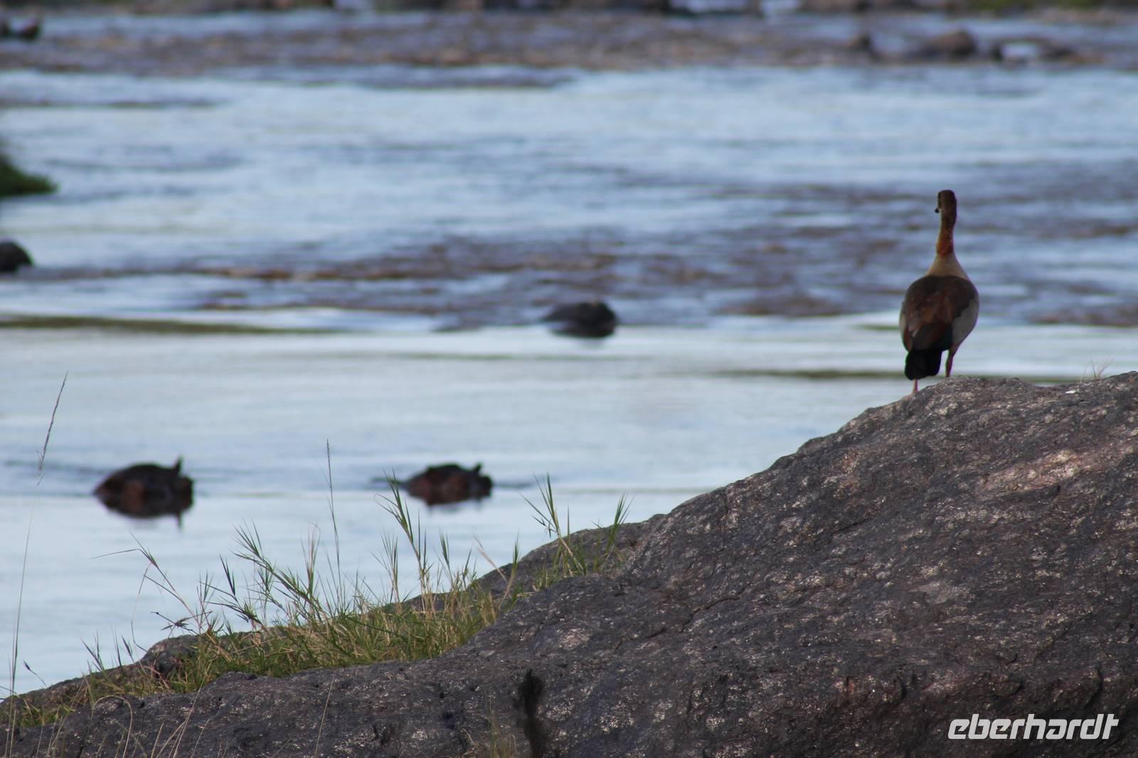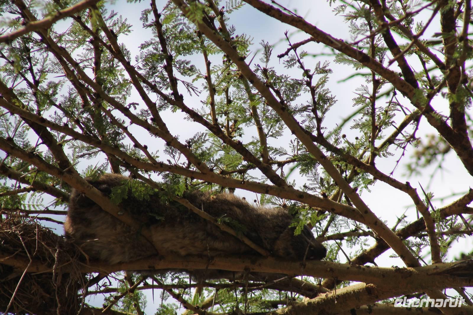 Am Nachmittag erreichen wir unseren Picknickplatz und besuchen vorher noch ein blindes Nashorn, dass hier weiterleben kann und um welches sich gesorgt wird. Hier geht es ihm gut. Anschließend picknicken wir unter afrikanischer Sonne und lassen uns die Köstlichkeiten, die uns Petra mitgegeben kann gut schmecken. Im Baum sehen wir noch einen Klippenschläfer, der seinen wohl verdienten Mittagsschlaf hält. Bevor wir zu unserer Lodge zurückfahren sehen wir noch einige Nilgänse, Sandpiper, Perlhühner, Waffenkibize und einen Schabrakenschakal, der auch unsere besondere Aufmerksamkeit verdient. Alle sind begeistert und so erreichen wir am späten Nachmittag wieder unsere schöne Sandai Farm. Hier genießen wir ein letztes Abendessen und den ein oder anderen Plausch mit Petra und lassen den Abend gemütlich ausklingen.