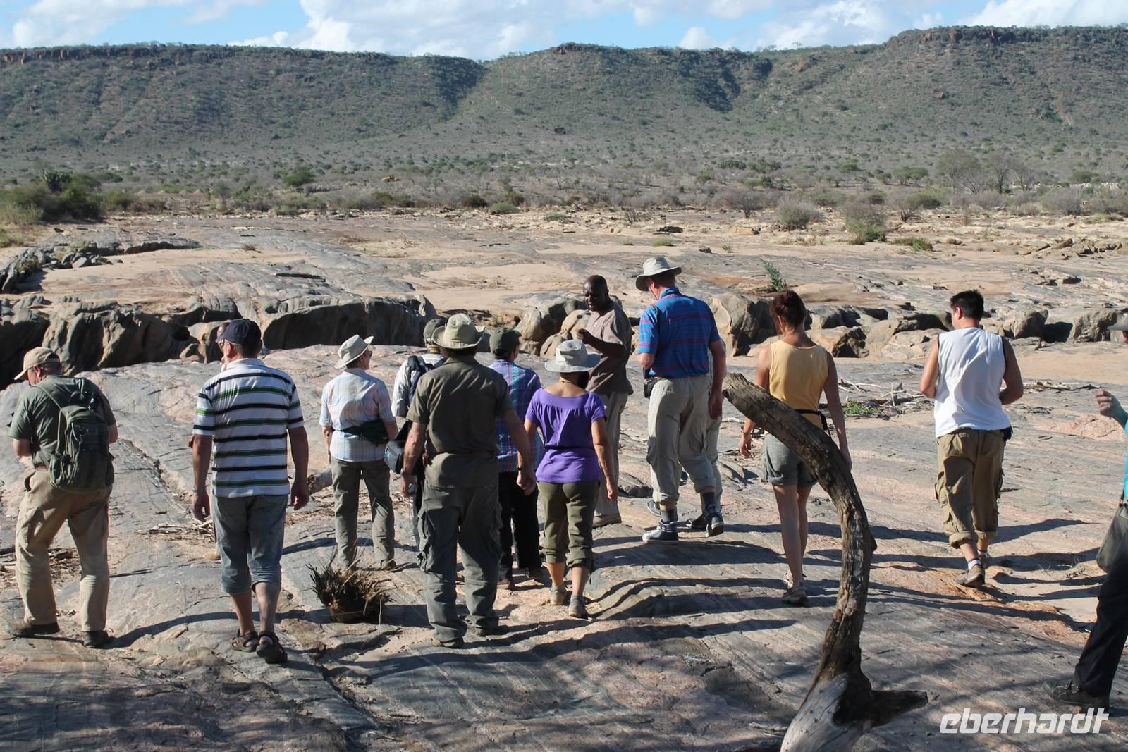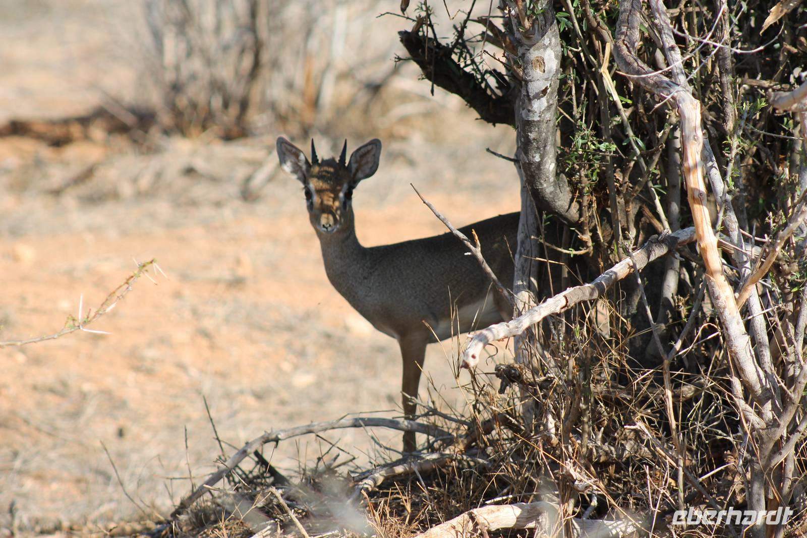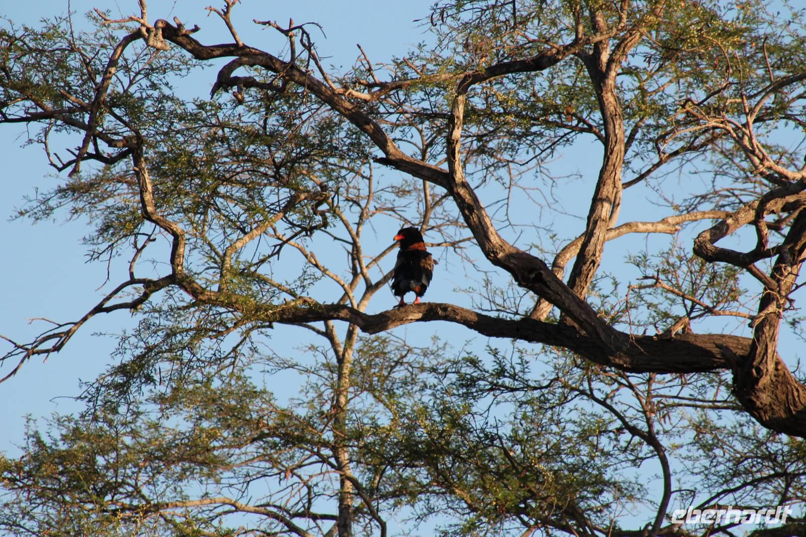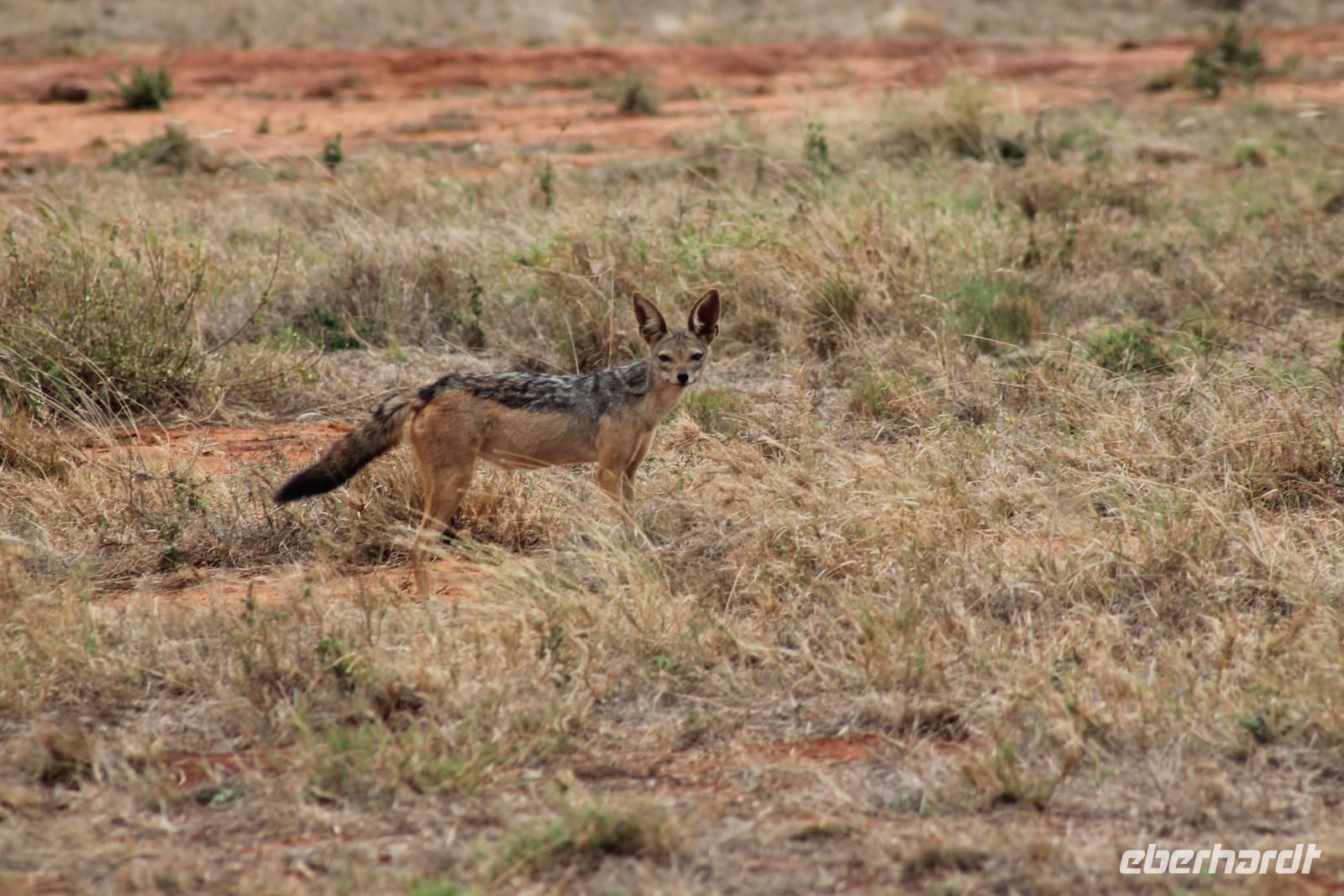 Am Nachmittag erreichen wir unseren Picknickplatz und besuchen vorher noch ein blindes Nashorn, dass hier weiterleben kann und um welches sich gesorgt wird. Hier geht es ihm gut. Anschließend picknicken wir unter afrikanischer Sonne und lassen uns die Köstlichkeiten, die uns Petra mitgegeben kann gut schmecken. Im Baum sehen wir noch einen Klippenschläfer, der seinen wohl verdienten Mittagsschlaf hält. Bevor wir zu unserer Lodge zurückfahren sehen wir noch einige Nilgänse, Sandpiper, Perlhühner, Waffenkibize und einen Schabrakenschakal, der auch unsere besondere Aufmerksamkeit verdient. Alle sind begeistert und so erreichen wir am späten Nachmittag wieder unsere schöne Sandai Farm. Hier genießen wir ein letztes Abendessen und den ein oder anderen Plausch mit Petra und lassen den Abend gemütlich ausklingen.