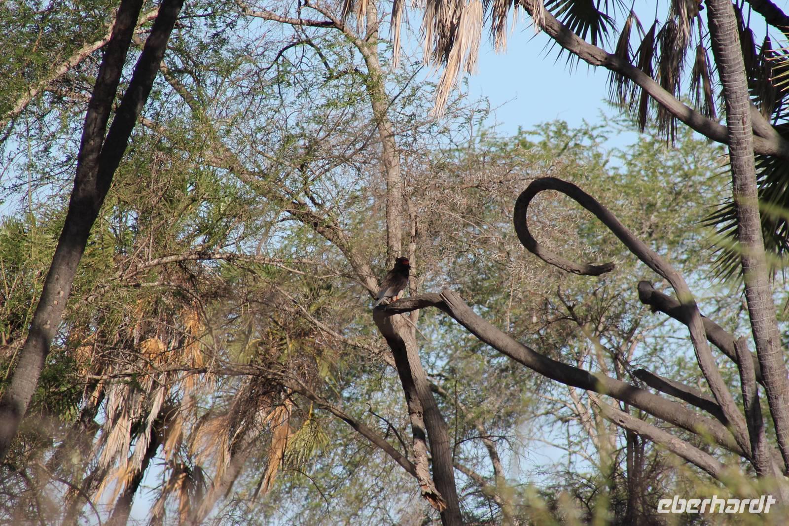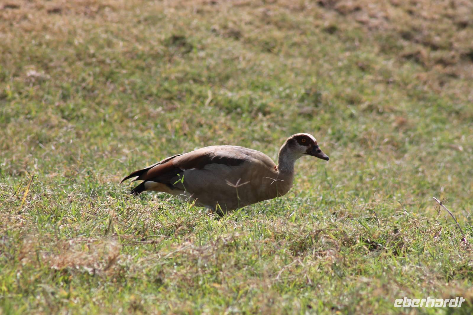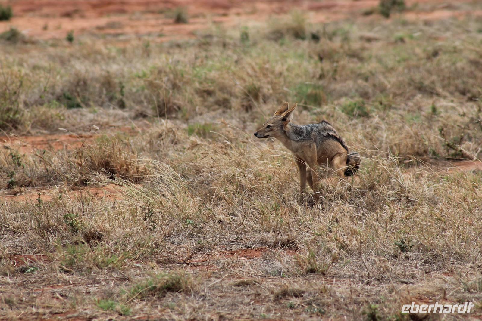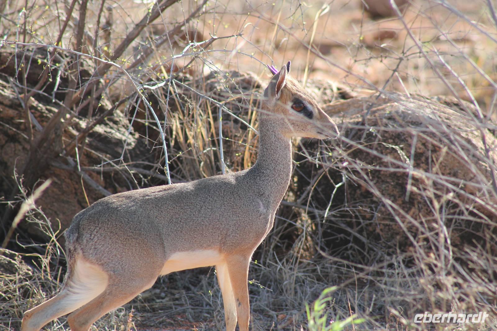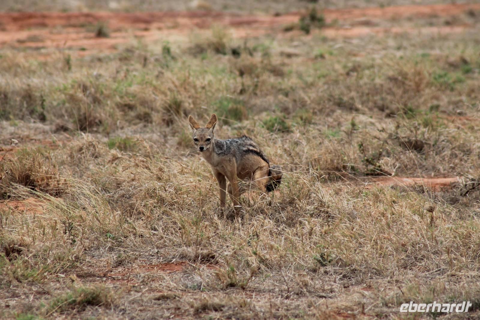 Am Nachmittag erreichen wir unseren Picknickplatz und besuchen vorher noch ein blindes Nashorn, dass hier weiterleben kann und um welches sich gesorgt wird. Hier geht es ihm gut. Anschließend picknicken wir unter afrikanischer Sonne und lassen uns die Köstlichkeiten, die uns Petra mitgegeben kann gut schmecken. Im Baum sehen wir noch einen Klippenschläfer, der seinen wohl verdienten Mittagsschlaf hält. Bevor wir zu unserer Lodge zurückfahren sehen wir noch einige Nilgänse, Sandpiper, Perlhühner, Waffenkibize und einen Schabrakenschakal, der auch unsere besondere Aufmerksamkeit verdient. Alle sind begeistert und so erreichen wir am späten Nachmittag wieder unsere schöne Sandai Farm. Hier genießen wir ein letztes Abendessen und den ein oder anderen Plausch mit Petra und lassen den Abend gemütlich ausklingen.