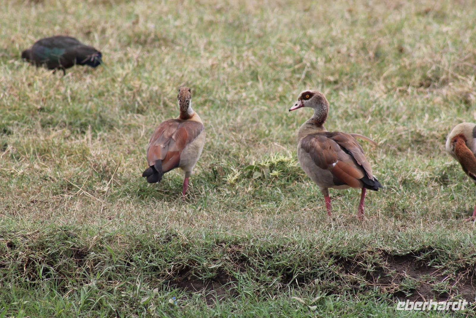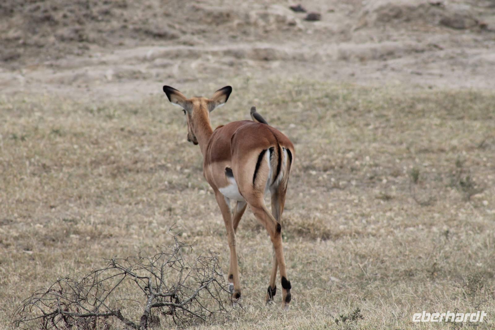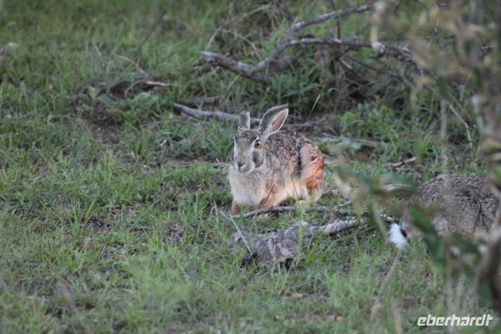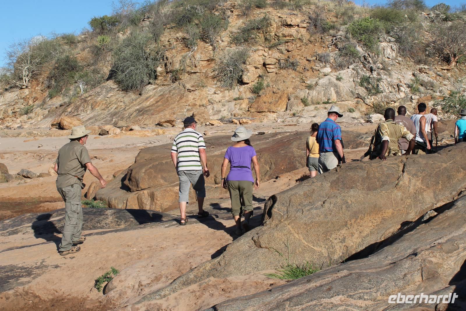 Am Nachmittag erreichen wir unseren Picknickplatz und besuchen vorher noch ein blindes Nashorn, dass hier weiterleben kann und um welches sich gesorgt wird. Hier geht es ihm gut. Anschließend picknicken wir unter afrikanischer Sonne und lassen uns die Köstlichkeiten, die uns Petra mitgegeben kann gut schmecken. Im Baum sehen wir noch einen Klippenschläfer, der seinen wohl verdienten Mittagsschlaf hält. Bevor wir zu unserer Lodge zurückfahren sehen wir noch einige Nilgänse, Sandpiper, Perlhühner, Waffenkibize und einen Schabrakenschakal, der auch unsere besondere Aufmerksamkeit verdient. Alle sind begeistert und so erreichen wir am späten Nachmittag wieder unsere schöne Sandai Farm. Hier genießen wir ein letztes Abendessen und den ein oder anderen Plausch mit Petra und lassen den Abend gemütlich ausklingen.