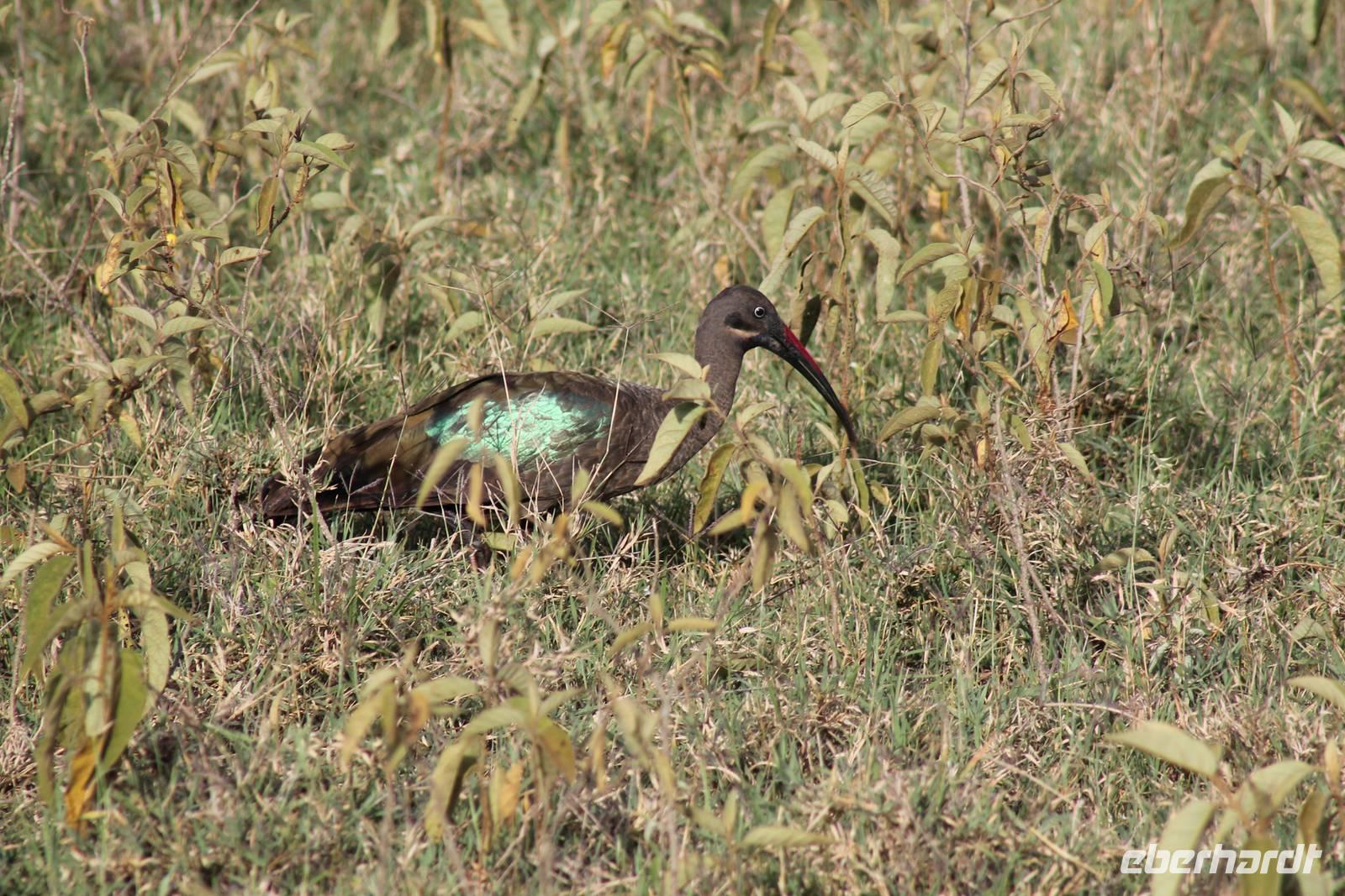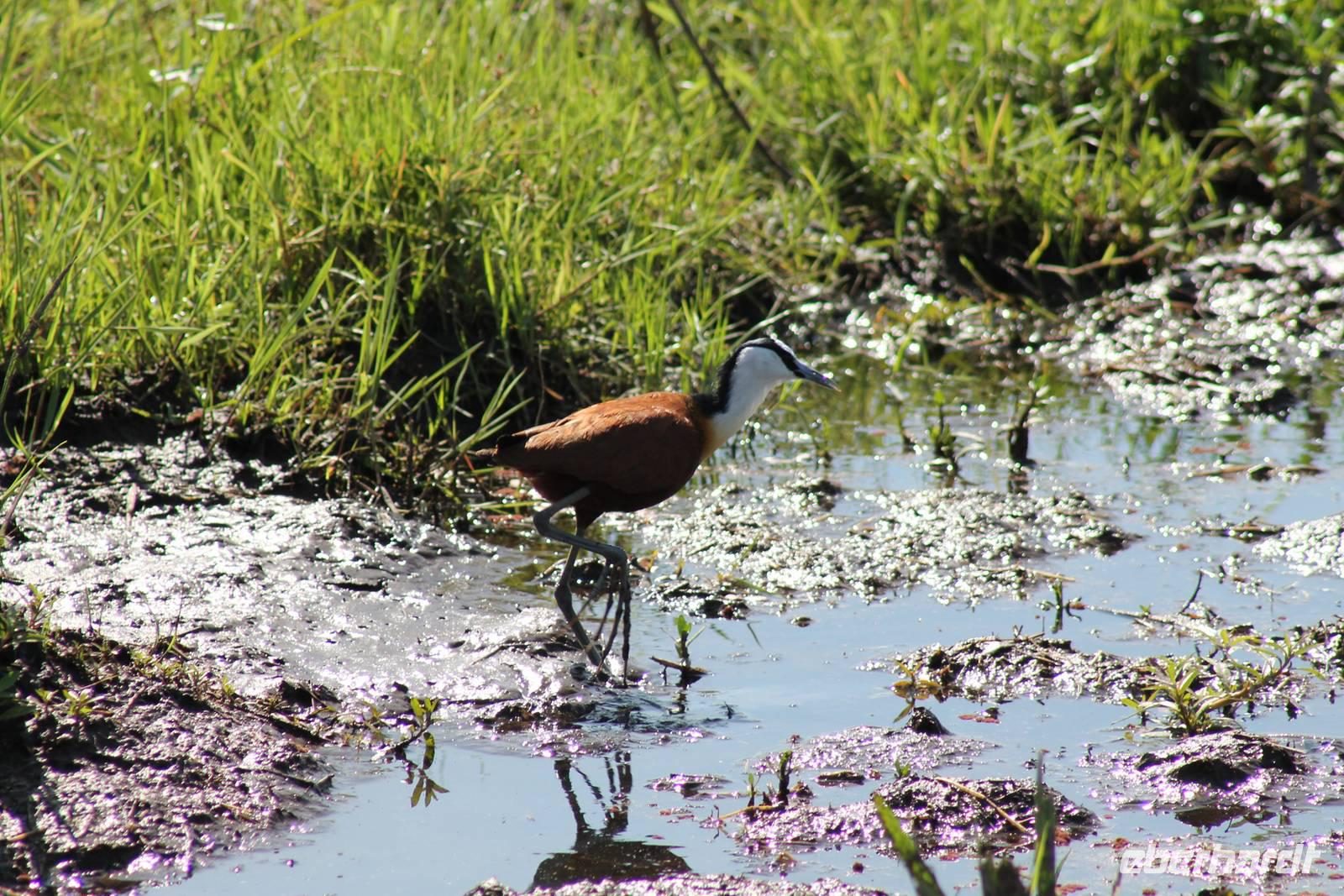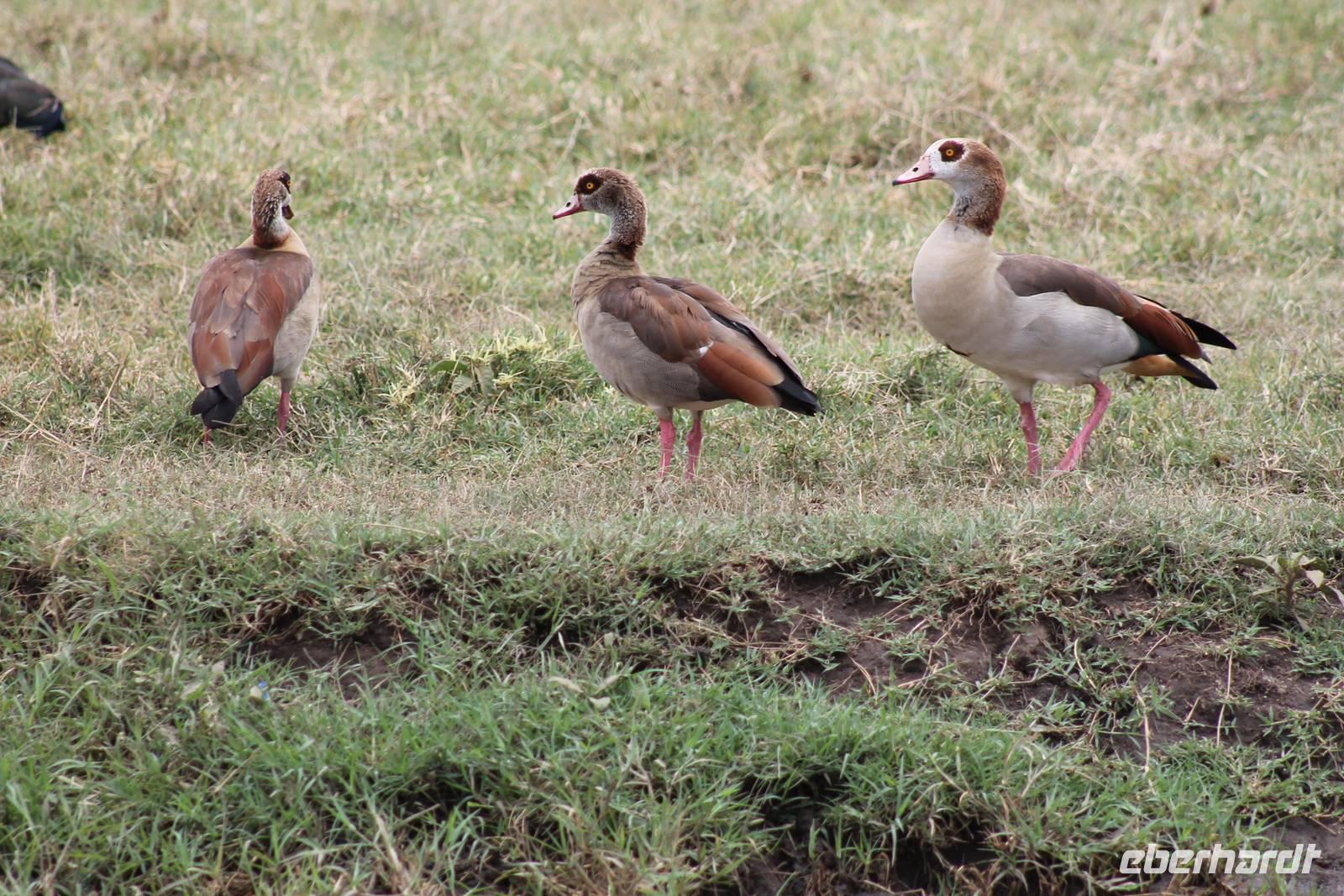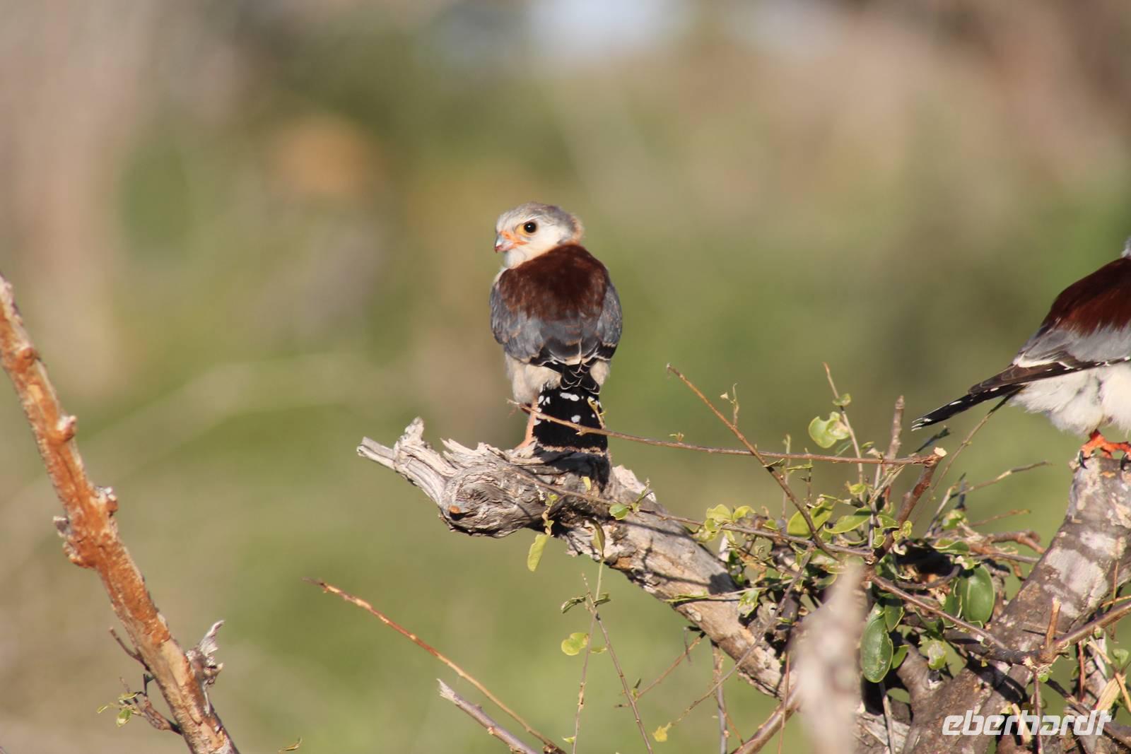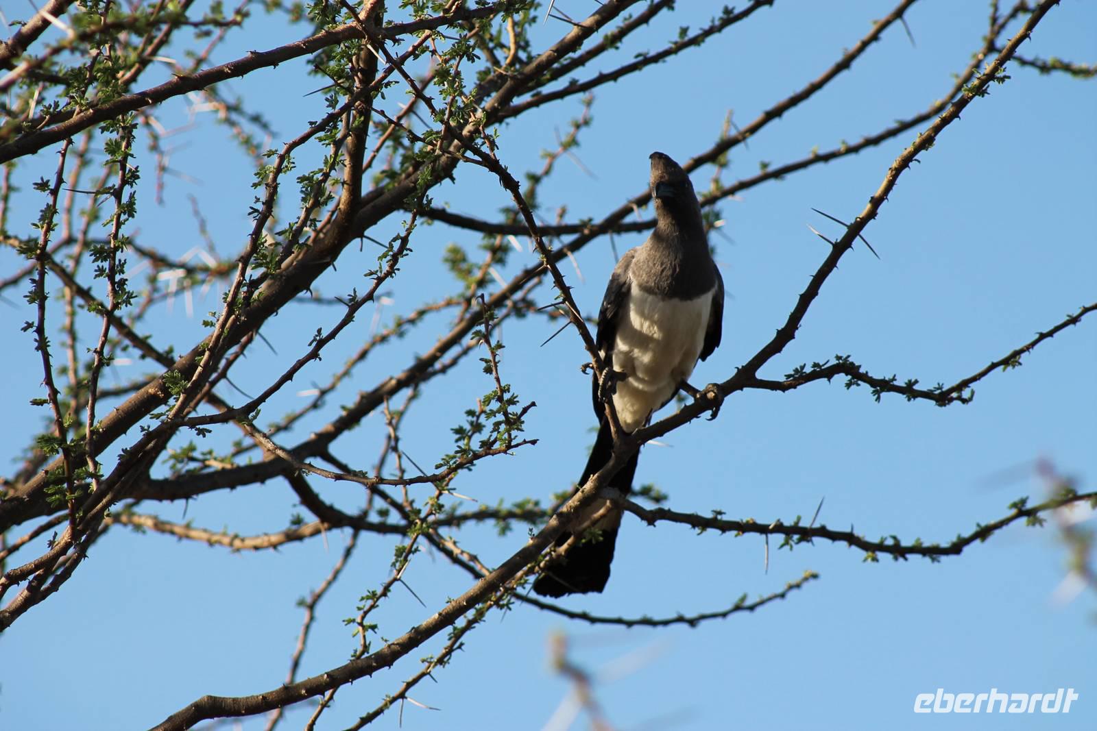 Am Nachmittag erreichen wir unseren Picknickplatz und besuchen vorher noch ein blindes Nashorn, dass hier weiterleben kann und um welches sich gesorgt wird. Hier geht es ihm gut. Anschließend picknicken wir unter afrikanischer Sonne und lassen uns die Köstlichkeiten, die uns Petra mitgegeben kann gut schmecken. Im Baum sehen wir noch einen Klippenschläfer, der seinen wohl verdienten Mittagsschlaf hält. Bevor wir zu unserer Lodge zurückfahren sehen wir noch einige Nilgänse, Sandpiper, Perlhühner, Waffenkibize und einen Schabrakenschakal, der auch unsere besondere Aufmerksamkeit verdient. Alle sind begeistert und so erreichen wir am späten Nachmittag wieder unsere schöne Sandai Farm. Hier genießen wir ein letztes Abendessen und den ein oder anderen Plausch mit Petra und lassen den Abend gemütlich ausklingen.