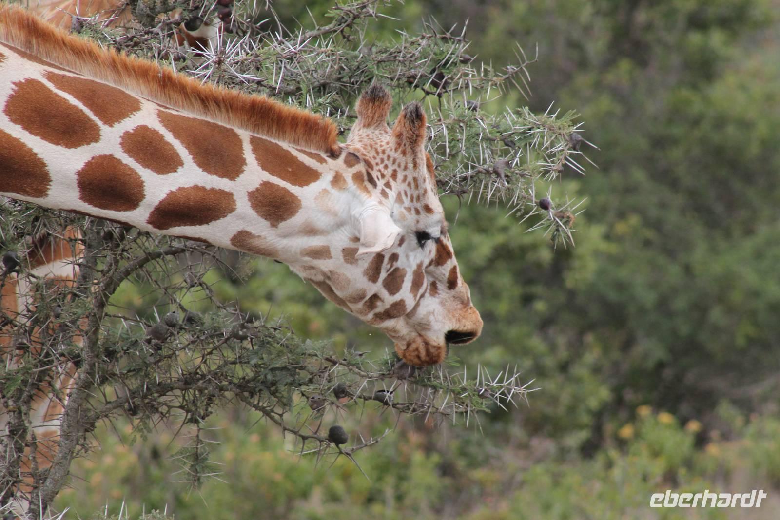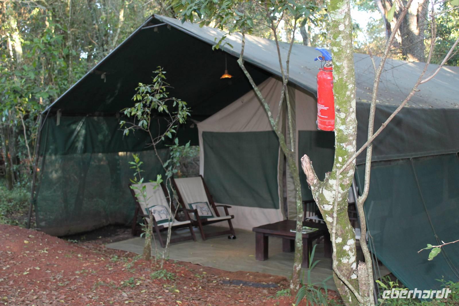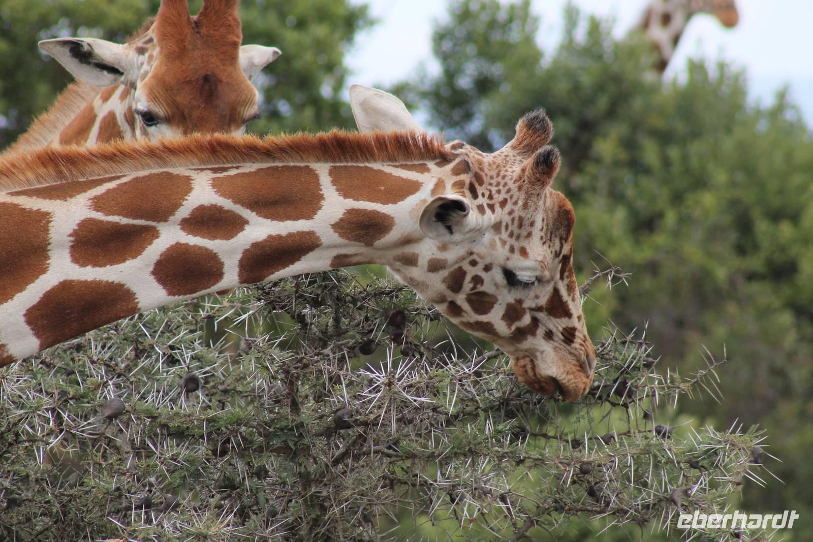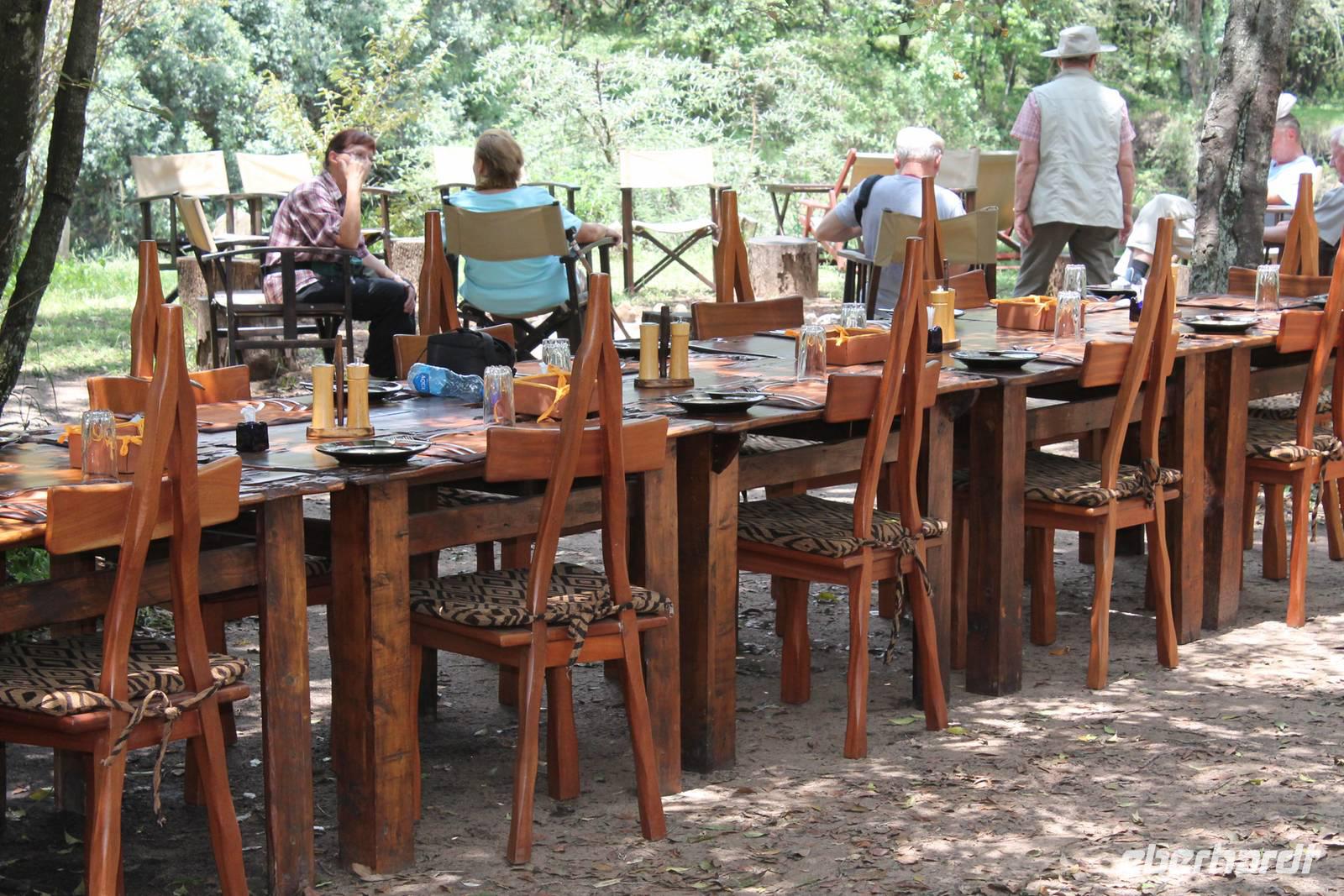 Nach einer erholsamen Nacht haben doch alle überlebt und niemand wurde vom Leoparden gefressen. So werden wir mit einem wunderbar gedeckten Tisch wie zu Hause zum Frühstück empfangen und genießen dieses ausgiebig. Hier müssen wir uns um nichts sorgen. Ein tolles Gefühl. Gestärkt machen wir uns dann auf zu unserer ersten Safari Pirsch im Sweetwaters Game Reservat. Hier angekommen zeigen unsere Fahrer Ihr ganzes Können, denn die Dächer unserer Jeeps können geöffnet werden, so dass wir jederzeit einen freien, unbehinderten Blick auf die schier unglaubliche Tierwelt und Landschaft genießen können und niemand die Chance verpasst, ein Foto zu schießen. Seit 1993 beherbergt das Reservat in Zusammenarbeit mit dem Kenia Wildlife Service ein eingezäuntes Schutzgebiet für ehemals gefangene Schimpansen.