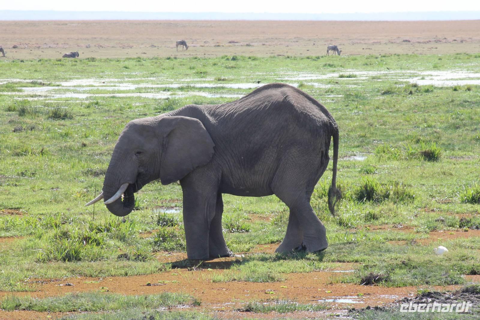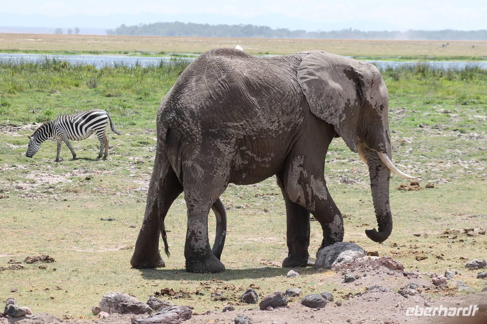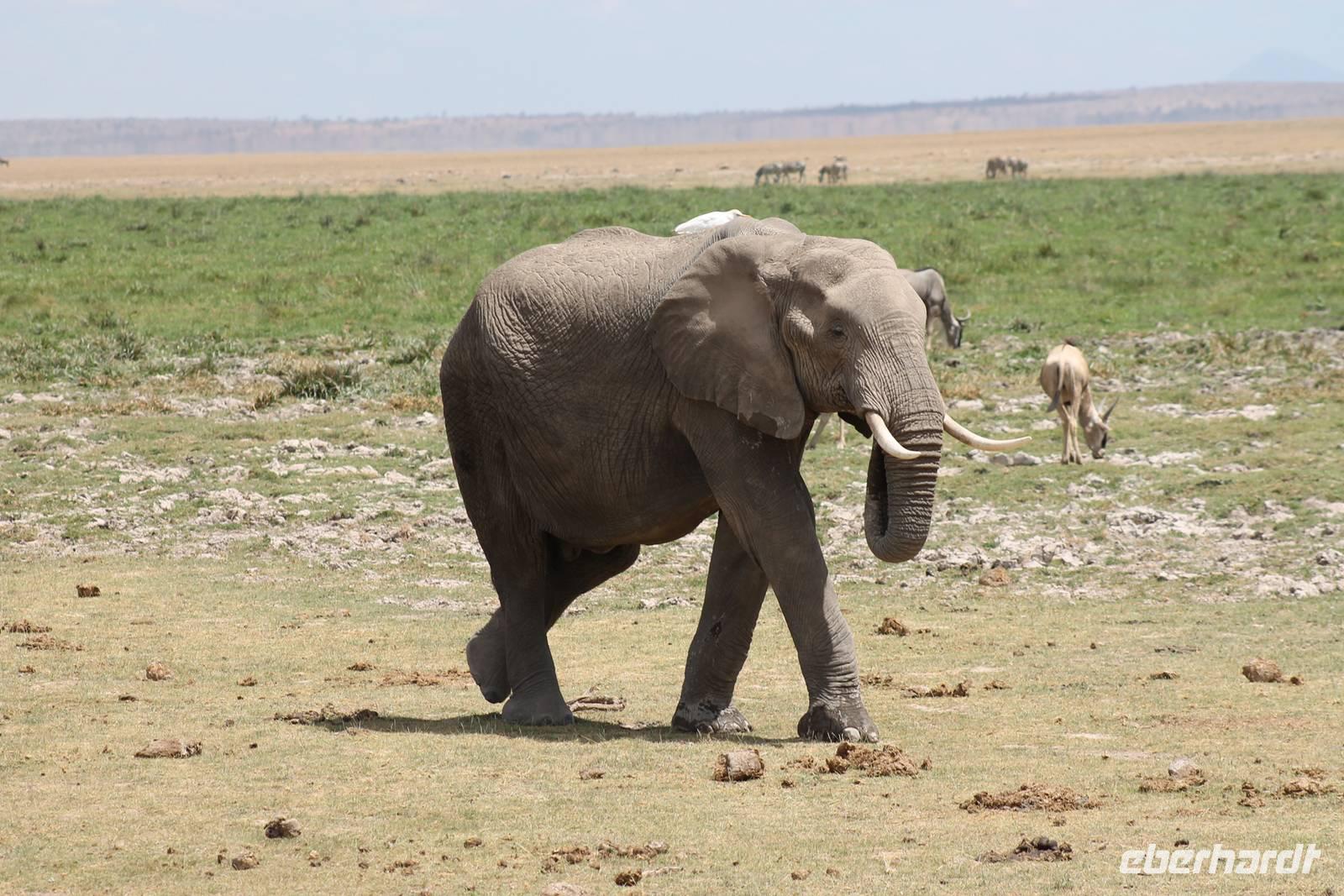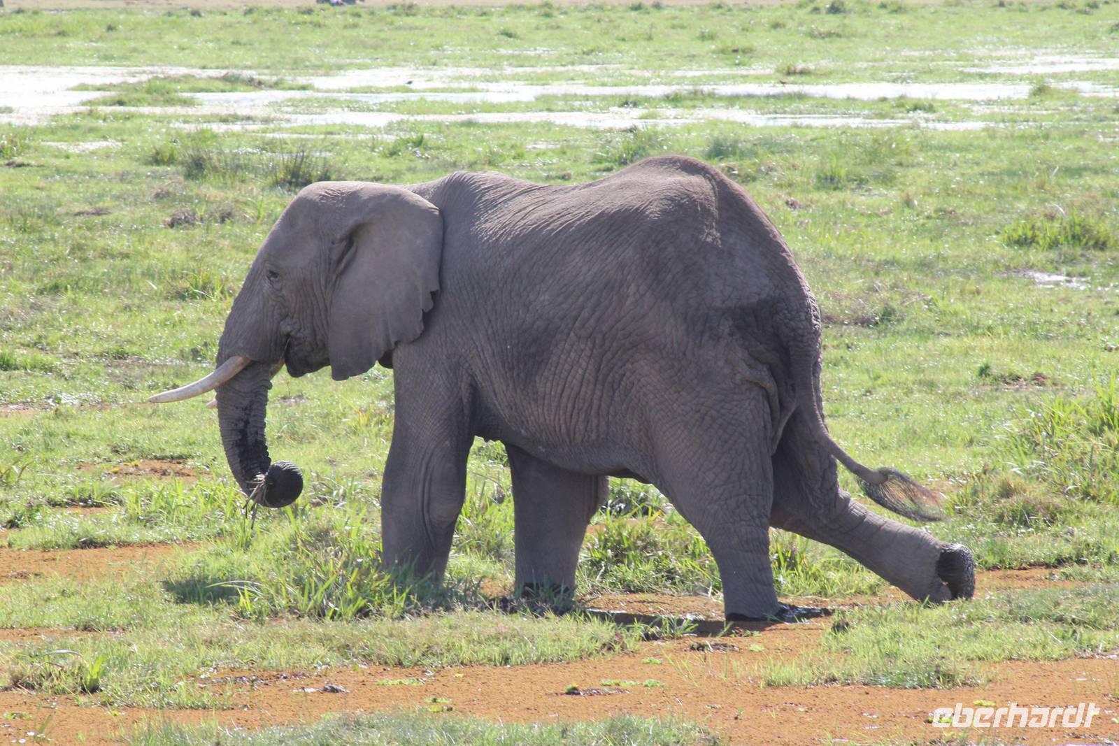 Heute stehen wir wieder zeitig auf, denn wir wollen den Amboseli-Nationalpark in seiner ganzen Schönheit erkunden. Der Amboseli-Nationalpark ist zum einen für seine Großtierwelt berühmt - vor allem für seine großen Elefantenherden - zum anderen für seine abwechslungsreiche Landschaft. In dem 392 km² großen Nationalpark finden sich fünf verschiedene Lebensraumtypen und außerdem ein zumeist ausgetrockneter See, der Lake Amboseli. Zu den verschiedenen Landschaftsformen gehören offene Savannen, lichter Akazienwald, felsiger Dornbusch sowie üppig grünes Sumpfland. Am Westrand des Reservates erhabt sich der Ol Doinyo Orok mit über 2760 Metern Höhe.Über dem ganzen Gebiet thront, jenseits der tansanischen Grenze, der majestätische Kilimanjaro mit seiner schneebedeckten Gipfelkuppe. Auf unserer morgendlichen Pirsch hüllt sich der Kilimanjaro allerdings erstmal in ein Wolkenkleid aber wir sollten später noch belohnt werden. So sehen wir bei unser allmorgendlichen Pirsch zunächst einige Thompson-Gazellen, Gnus und Sekretäre. So langsam wiederholen sich die Tiere natürlich aber trotzdem können wir von Ihnen nie genug bekommen. Später kommen wir an den Amboseli See und am Wasser ist bekanntlich immer etwas los. So sehen wir einige Flamingos, Heilige Ibise und Afrikanische Blatthühnchen. Später auch undendlich viele Elefanten sowie einige Sträuße und wundervolle Kornenkraniche. Am Oservation Hill nutzen wir die Gelegenheit um uns das Treiben von oben anzuschauen. Hier sehen wir auch einige Elefanten aus der Ferne und einige Fledermäuse. Gegen Mittag fahren wir zurück zu unserer Lodge und genießen ein tolles Mittagessen vom Buffet. Nach einer kurzen Ruhepause unternehmen wir am Nachmittag eine weitere Pirsch im Park. Hier konnten wir den Elefanten beim Baden zuschauen und mussten auch erkennen, das Sie nun mal immer nackt sind und man so Ihre Vorzüge natürlich auch entsprechend erkennt :-). Außerdem sahen wir den seltenen Goliath Reiher sowie viele Warzenschweine unbd Zebras. Unsere Augen konnten wir während der Beobachtungen aber kaum von den Dickhäutern lassen. Amboseli und Elefanten gehören eben zusammen wir Bruder und Schwester. Am Abend ließen wir den ererignisreichen Tag bei einem erneut tollen Buffet ausklingen.