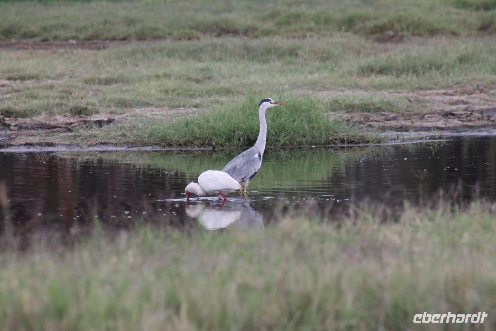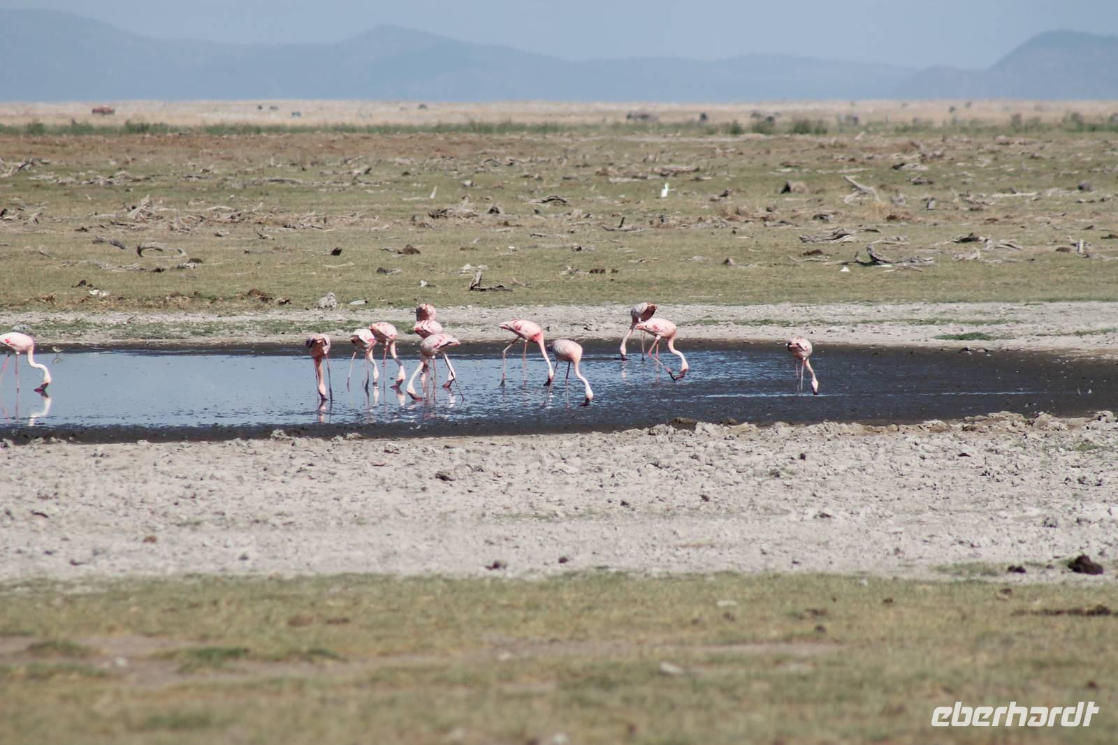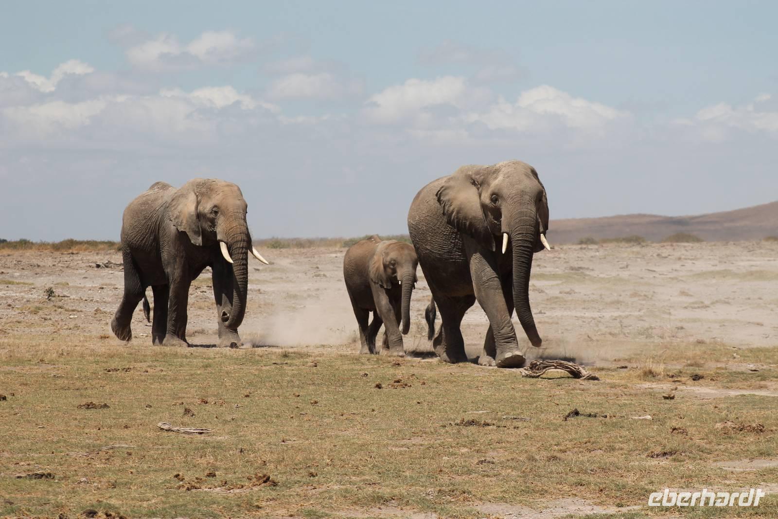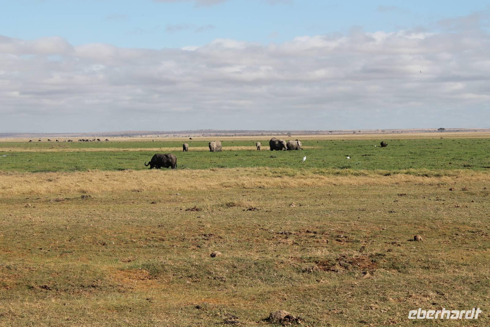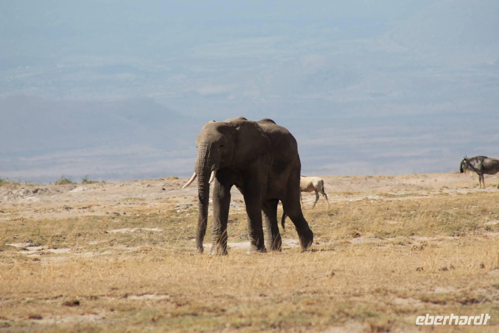 Heute stehen wir wieder zeitig auf, denn wir wollen den Amboseli-Nationalpark in seiner ganzen Schönheit erkunden. Der Amboseli-Nationalpark ist zum einen für seine Großtierwelt berühmt - vor allem für seine großen Elefantenherden - zum anderen für seine abwechslungsreiche Landschaft. In dem 392 km² großen Nationalpark finden sich fünf verschiedene Lebensraumtypen und außerdem ein zumeist ausgetrockneter See, der Lake Amboseli. Zu den verschiedenen Landschaftsformen gehören offene Savannen, lichter Akazienwald, felsiger Dornbusch sowie üppig grünes Sumpfland. Am Westrand des Reservates erhabt sich der Ol Doinyo Orok mit über 2760 Metern Höhe.Über dem ganzen Gebiet thront, jenseits der tansanischen Grenze, der majestätische Kilimanjaro mit seiner schneebedeckten Gipfelkuppe. Auf unserer morgendlichen Pirsch hüllt sich der Kilimanjaro allerdings erstmal in ein Wolkenkleid aber wir sollten später noch belohnt werden. So sehen wir bei unser allmorgendlichen Pirsch zunächst einige Thompson-Gazellen, Gnus und Sekretäre. So langsam wiederholen sich die Tiere natürlich aber trotzdem können wir von Ihnen nie genug bekommen. Später kommen wir an den Amboseli See und am Wasser ist bekanntlich immer etwas los. So sehen wir einige Flamingos, Heilige Ibise und Afrikanische Blatthühnchen. Später auch undendlich viele Elefanten sowie einige Sträuße und wundervolle Kornenkraniche. Am Oservation Hill nutzen wir die Gelegenheit um uns das Treiben von oben anzuschauen. Hier sehen wir auch einige Elefanten aus der Ferne und einige Fledermäuse. Gegen Mittag fahren wir zurück zu unserer Lodge und genießen ein tolles Mittagessen vom Buffet. Nach einer kurzen Ruhepause unternehmen wir am Nachmittag eine weitere Pirsch im Park. Hier konnten wir den Elefanten beim Baden zuschauen und mussten auch erkennen, das Sie nun mal immer nackt sind und man so Ihre Vorzüge natürlich auch entsprechend erkennt :-). Außerdem sahen wir den seltenen Goliath Reiher sowie viele Warzenschweine unbd Zebras. Unsere Augen konnten wir während der Beobachtungen aber kaum von den Dickhäutern lassen. Amboseli und Elefanten gehören eben zusammen wir Bruder und Schwester. Am Abend ließen wir den ererignisreichen Tag bei einem erneut tollen Buffet ausklingen.