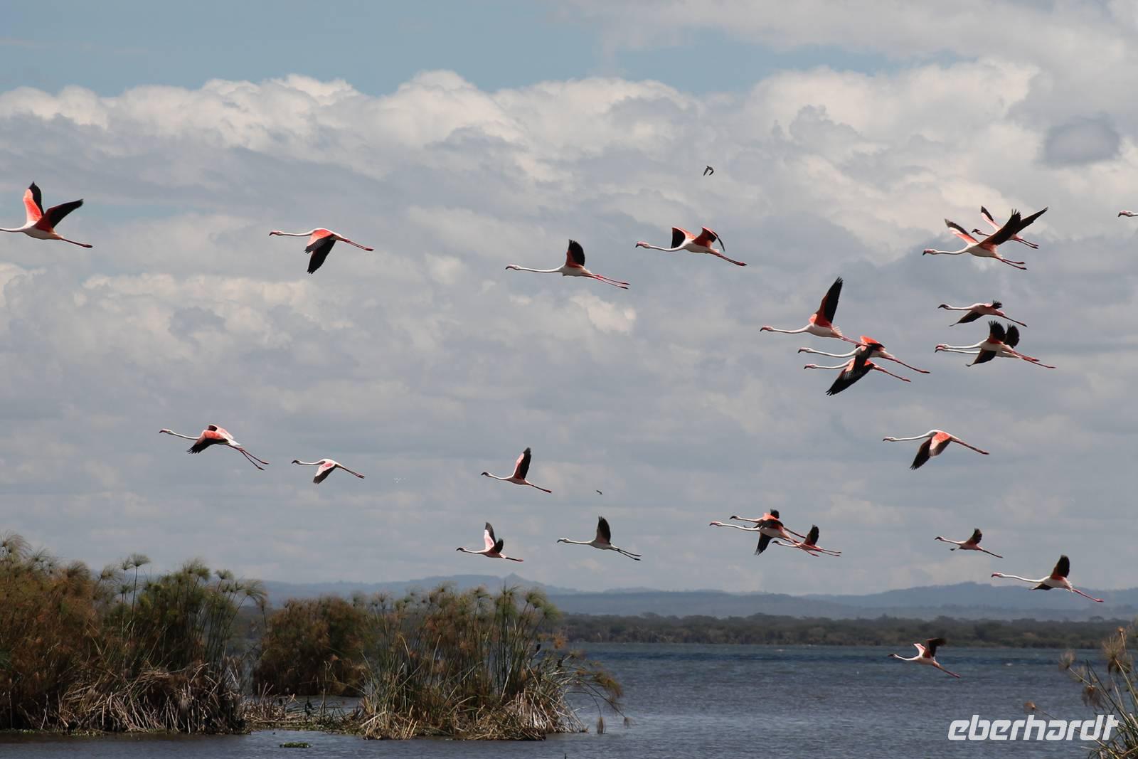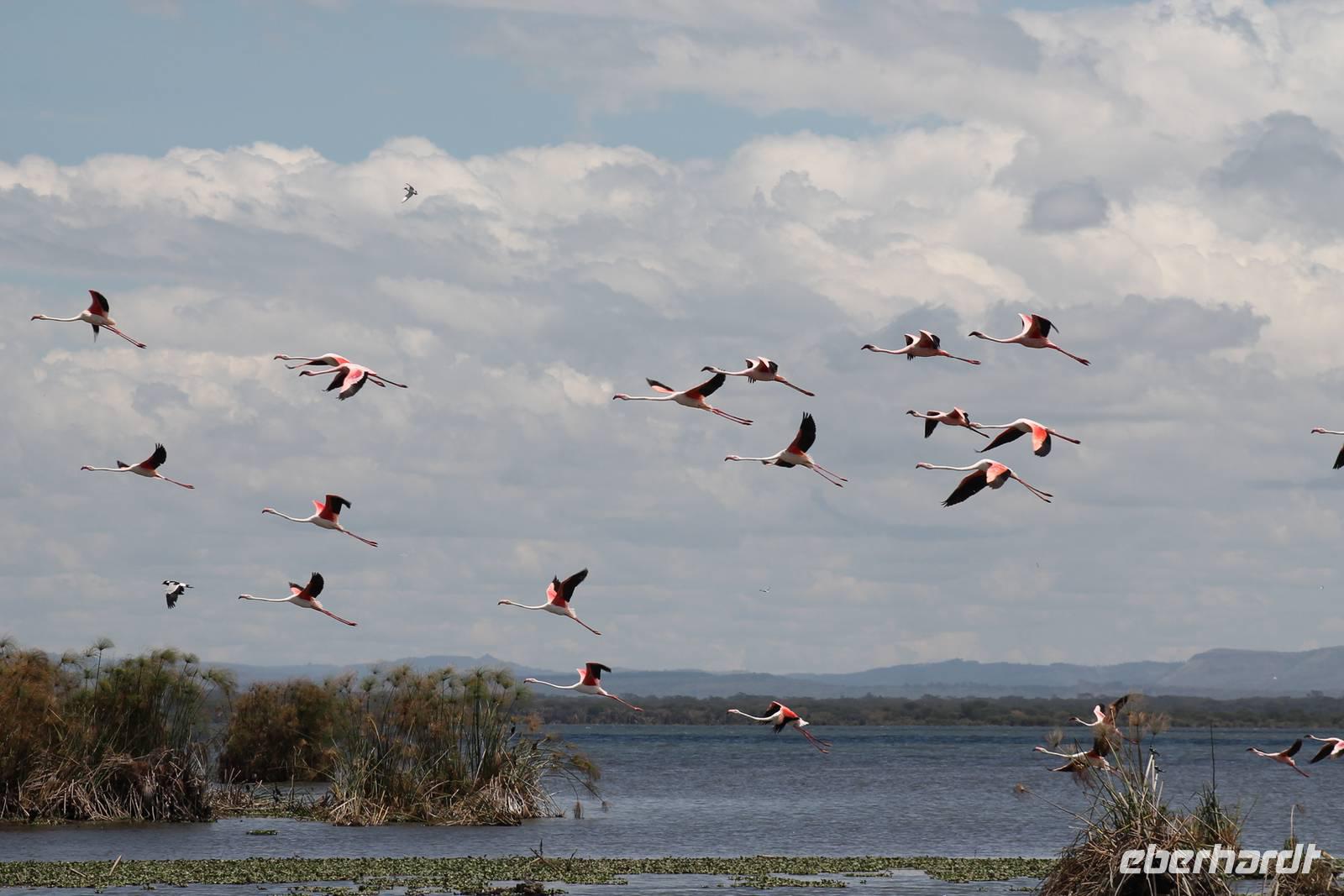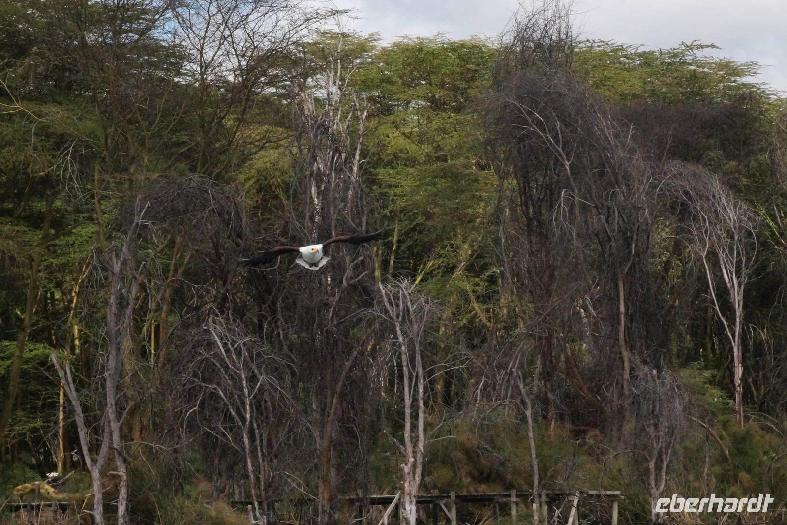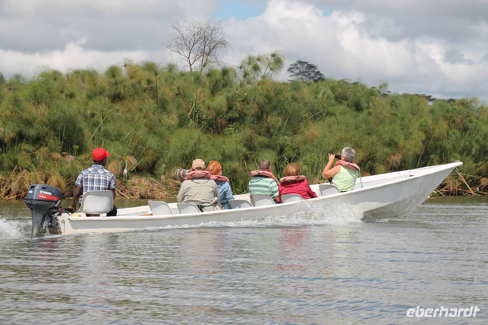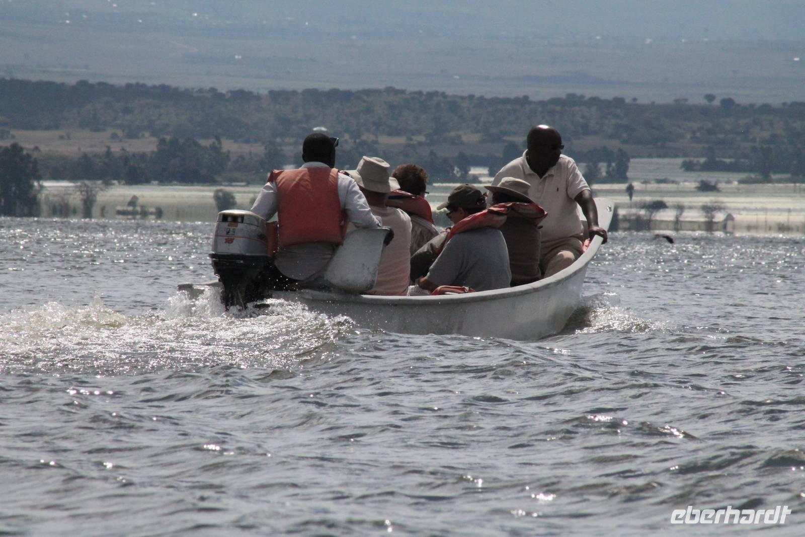 Nach einem ausgiebigen Frühstück machen wir uns heute auf zu unserer Bootsfahrt auf dem Naivasha See. Er ist der höchstgelegene See im östlichen Arm des Ostafrikanischen Grabens und ebenso wie der Baringosee ein Süßwassersee, während alle weiteren Seen im Ostarm des Grabens stark alkalisch sind. An unserer Bootsanlegestelle angekommen staunen wir nicht schlecht über die kleinen Boote, aber natürlich kann man diese auch nicht mit den deutschen Motorbooten vergleichen. So ist es schon gut, dass jeder eine Schwimmweste trägt. In jedem Fall gibt es am Wasser wieder viel zu schauen. So sehen wir gleich zu Beginn einige Pelikane und einen Hammerkopf, den wir auch noch nicht so oft vor der Linse hatten. Später sehen wir auch einige Hippos. Die Bootsführer versuchen außerdem mit einer Beute die Fischadler anzulocken und das klappt auch. So bekommen wir zu all der Vögelei auch noch einen Fischadler im Flug vor die Linse. So ist der Tag für die Ornitologen unter uns schon wieder gelungen. Nach einer einstündigen Bootsfahrt machen wir Halt auf Crecent Island und verabschieden unsere Bootsführer. Auf der Insel können wir die Tiere ganz nah beobachten und unternehmen so eine kleine Wanderung auf der Insel mit einem örtlichen Führer. Hier sehen wir Scharen von Flamingos, Zebras, Wasserböcken und Giraffen mit denen wir uns ganz nah fotografieren können. Für viele von uns auch ein einzigartiges Erlebnis. Zurück an unseren Jeeps fahren wir zurück zu unserer Lodge und genießen hier ein wohlverdientes Mittagessen nach einem ereignisreichen Vormittag. Am Nachmittag fahren wir gemeinsam zum Elsamere Tierschutzzentrum. Das Elsamere Conservation Center ist das ehemalige Wohnhaus von Joy und George Adamson, die mit der Aufzucht der Löwin Elsa sowie vielen weiteren Tierschutzprojekten und den daraus entstandenen Büchern und Filmen berühmt wurden. Wir beobachteten zuerst im wunderschön angelegten Garten die Colobus-Affen und sahen im Anschluss einen tollen Film über das Leben und das Lebenswerk der Familie Adamson. Danach wurde uns Kaffee, Tee und Kuchen angeboten und wir konnten einen Blick in das kleine Museum werfen. Nicht jeder war vor den Affen sicher und so wurde uns auch der ein oder andere Keks zum Verhängnis. Aber wir nahmen es mit Humor, denn Affen gibt man doch gern etwas ab. Zurück in unserer Lodge genossen wir noch ein Abendessen und suchten dann alle die Nachtruhe.