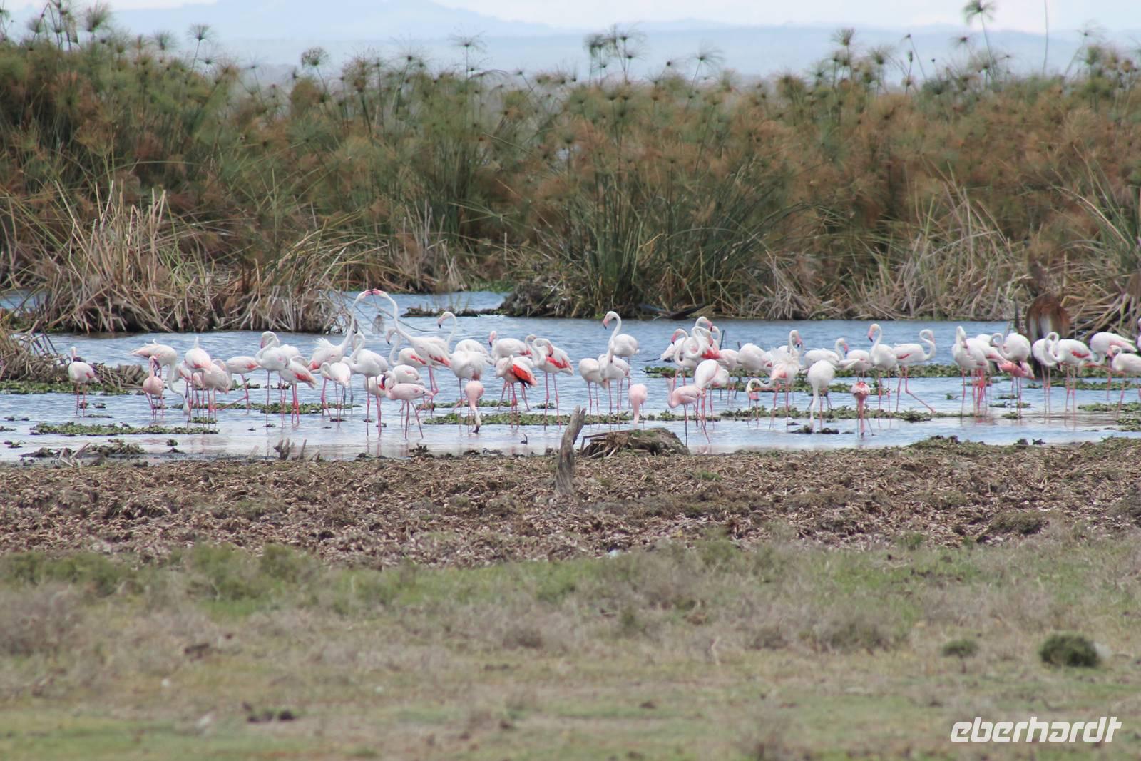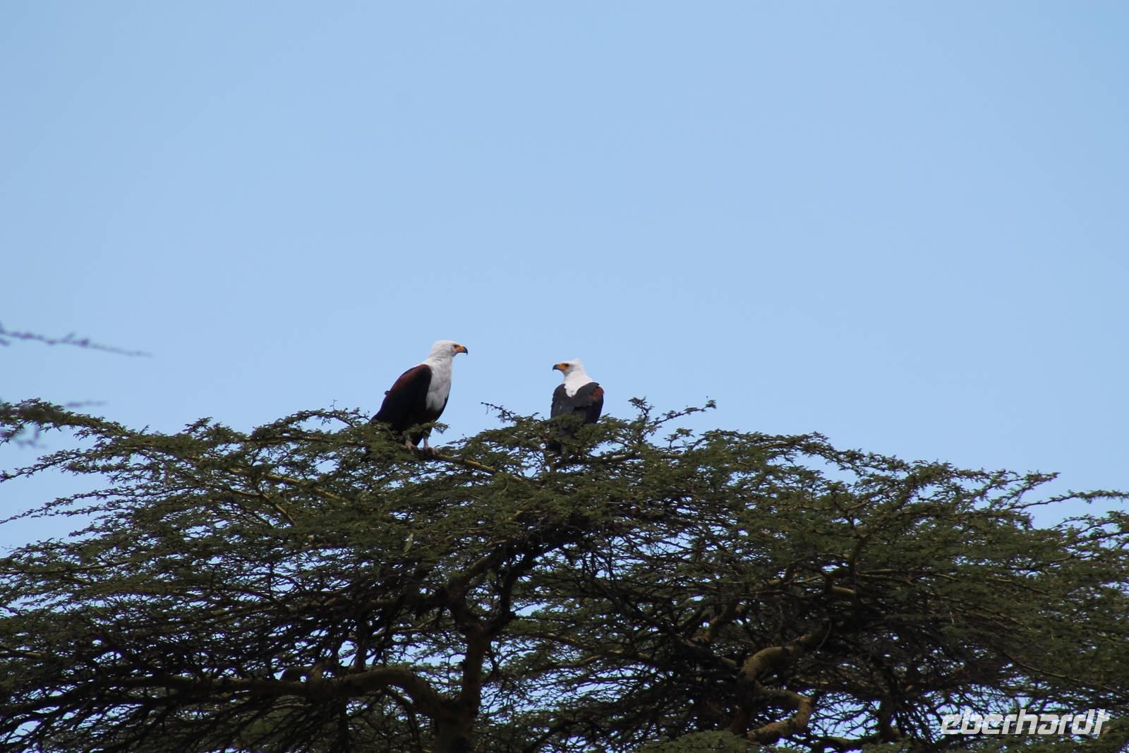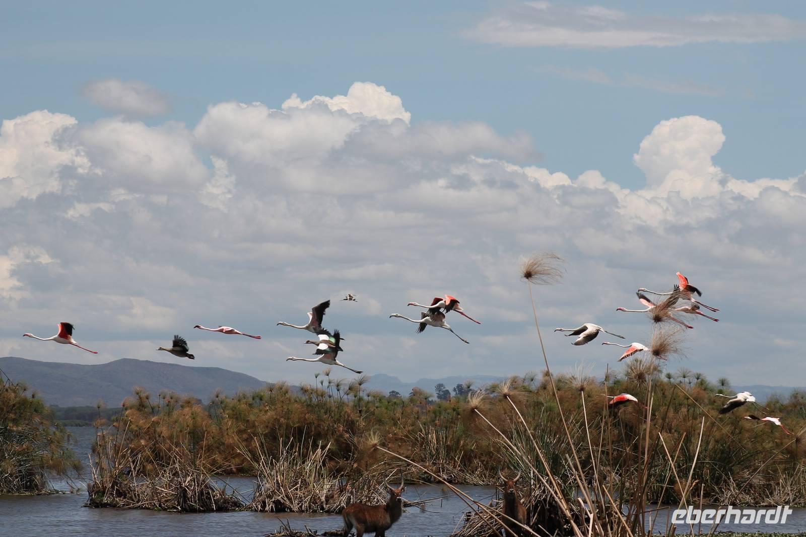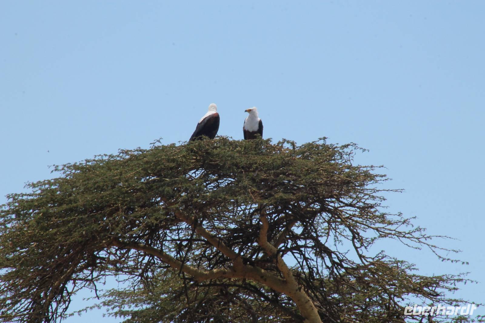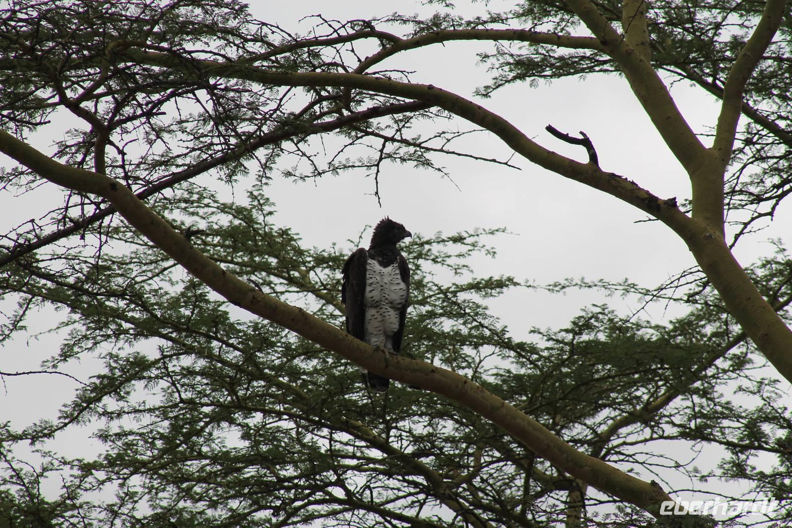 Nach einem ausgiebigen Frühstück machen wir uns heute auf zu unserer Bootsfahrt auf dem Naivasha See. Er ist der höchstgelegene See im östlichen Arm des Ostafrikanischen Grabens und ebenso wie der Baringosee ein Süßwassersee, während alle weiteren Seen im Ostarm des Grabens stark alkalisch sind. An unserer Bootsanlegestelle angekommen staunen wir nicht schlecht über die kleinen Boote, aber natürlich kann man diese auch nicht mit den deutschen Motorbooten vergleichen. So ist es schon gut, dass jeder eine Schwimmweste trägt. In jedem Fall gibt es am Wasser wieder viel zu schauen. So sehen wir gleich zu Beginn einige Pelikane und einen Hammerkopf, den wir auch noch nicht so oft vor der Linse hatten. Später sehen wir auch einige Hippos. Die Bootsführer versuchen außerdem mit einer Beute die Fischadler anzulocken und das klappt auch. So bekommen wir zu all der Vögelei auch noch einen Fischadler im Flug vor die Linse. So ist der Tag für die Ornitologen unter uns schon wieder gelungen. Nach einer einstündigen Bootsfahrt machen wir Halt auf Crecent Island und verabschieden unsere Bootsführer. Auf der Insel können wir die Tiere ganz nah beobachten und unternehmen so eine kleine Wanderung auf der Insel mit einem örtlichen Führer. Hier sehen wir Scharen von Flamingos, Zebras, Wasserböcken und Giraffen mit denen wir uns ganz nah fotografieren können. Für viele von uns auch ein einzigartiges Erlebnis. Zurück an unseren Jeeps fahren wir zurück zu unserer Lodge und genießen hier ein wohlverdientes Mittagessen nach einem ereignisreichen Vormittag. Am Nachmittag fahren wir gemeinsam zum Elsamere Tierschutzzentrum. Das Elsamere Conservation Center ist das ehemalige Wohnhaus von Joy und George Adamson, die mit der Aufzucht der Löwin Elsa sowie vielen weiteren Tierschutzprojekten und den daraus entstandenen Büchern und Filmen berühmt wurden. Wir beobachteten zuerst im wunderschön angelegten Garten die Colobus-Affen und sahen im Anschluss einen tollen Film über das Leben und das Lebenswerk der Familie Adamson. Danach wurde uns Kaffee, Tee und Kuchen angeboten und wir konnten einen Blick in das kleine Museum werfen. Nicht jeder war vor den Affen sicher und so wurde uns auch der ein oder andere Keks zum Verhängnis. Aber wir nahmen es mit Humor, denn Affen gibt man doch gern etwas ab. Zurück in unserer Lodge genossen wir noch ein Abendessen und suchten dann alle die Nachtruhe.
