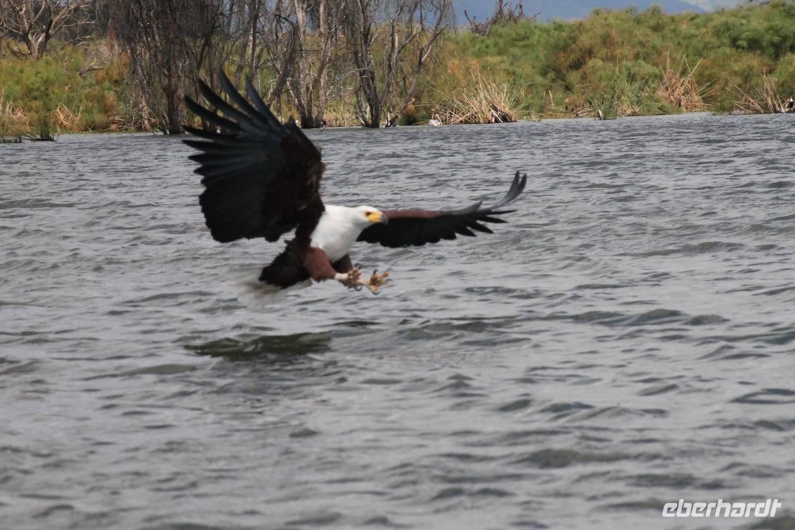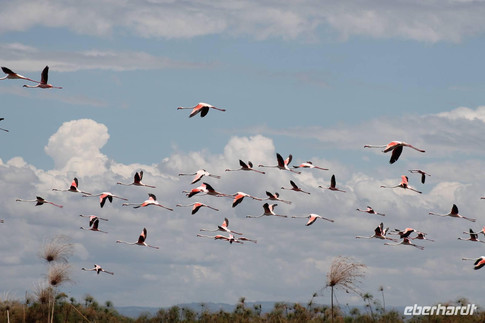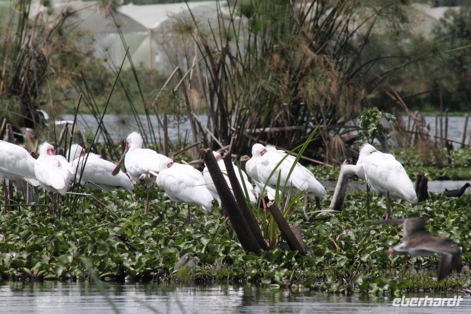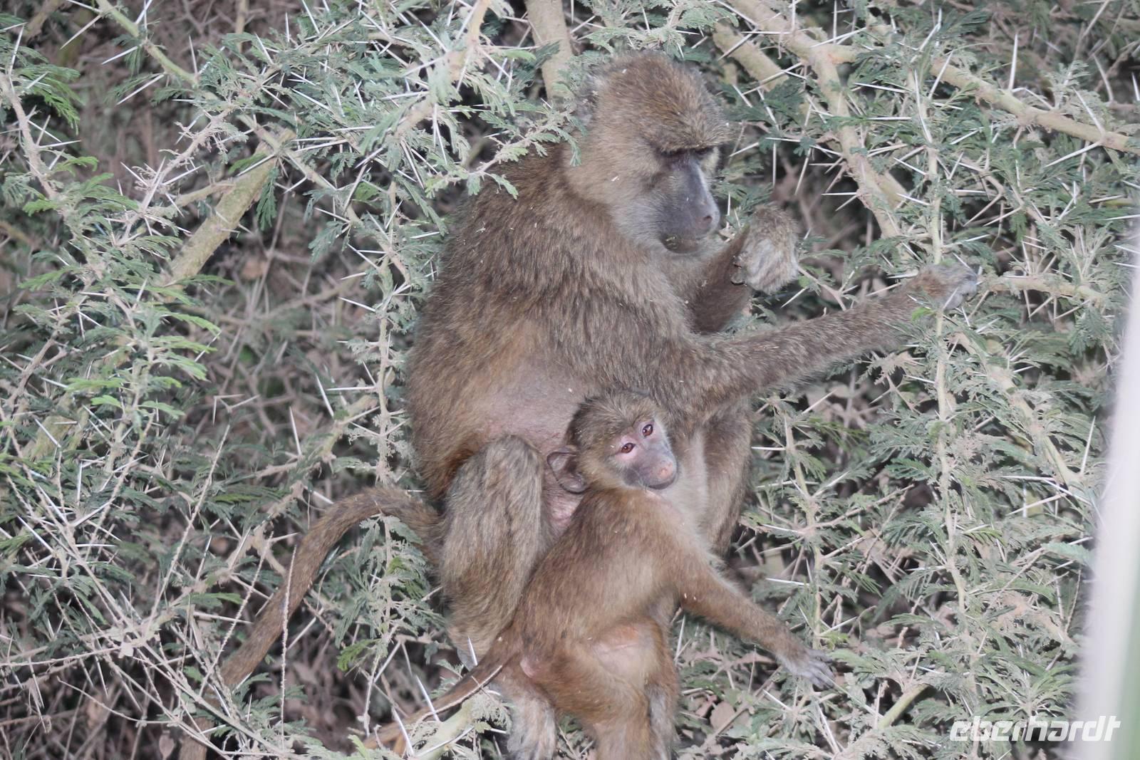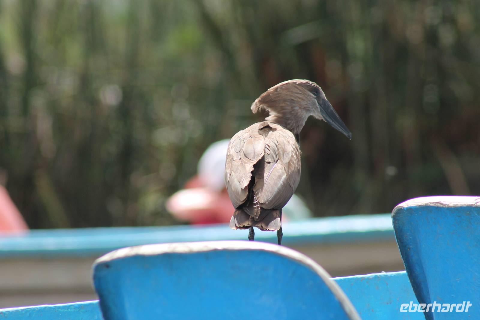 Nach einem ausgiebigen Frühstück machen wir uns heute auf zu unserer Bootsfahrt auf dem Naivasha See. Er ist der höchstgelegene See im östlichen Arm des Ostafrikanischen Grabens und ebenso wie der Baringosee ein Süßwassersee, während alle weiteren Seen im Ostarm des Grabens stark alkalisch sind. An unserer Bootsanlegestelle angekommen staunen wir nicht schlecht über die kleinen Boote, aber natürlich kann man diese auch nicht mit den deutschen Motorbooten vergleichen. So ist es schon gut, dass jeder eine Schwimmweste trägt. In jedem Fall gibt es am Wasser wieder viel zu schauen. So sehen wir gleich zu Beginn einige Pelikane und einen Hammerkopf, den wir auch noch nicht so oft vor der Linse hatten. Später sehen wir auch einige Hippos. Die Bootsführer versuchen außerdem mit einer Beute die Fischadler anzulocken und das klappt auch. So bekommen wir zu all der Vögelei auch noch einen Fischadler im Flug vor die Linse. So ist der Tag für die Ornitologen unter uns schon wieder gelungen. Nach einer einstündigen Bootsfahrt machen wir Halt auf Crecent Island und verabschieden unsere Bootsführer. Auf der Insel können wir die Tiere ganz nah beobachten und unternehmen so eine kleine Wanderung auf der Insel mit einem örtlichen Führer. Hier sehen wir Scharen von Flamingos, Zebras, Wasserböcken und Giraffen mit denen wir uns ganz nah fotografieren können. Für viele von uns auch ein einzigartiges Erlebnis. Zurück an unseren Jeeps fahren wir zurück zu unserer Lodge und genießen hier ein wohlverdientes Mittagessen nach einem ereignisreichen Vormittag. Am Nachmittag fahren wir gemeinsam zum Elsamere Tierschutzzentrum. Das Elsamere Conservation Center ist das ehemalige Wohnhaus von Joy und George Adamson, die mit der Aufzucht der Löwin Elsa sowie vielen weiteren Tierschutzprojekten und den daraus entstandenen Büchern und Filmen berühmt wurden. Wir beobachteten zuerst im wunderschön angelegten Garten die Colobus-Affen und sahen im Anschluss einen tollen Film über das Leben und das Lebenswerk der Familie Adamson. Danach wurde uns Kaffee, Tee und Kuchen angeboten und wir konnten einen Blick in das kleine Museum werfen. Nicht jeder war vor den Affen sicher und so wurde uns auch der ein oder andere Keks zum Verhängnis. Aber wir nahmen es mit Humor, denn Affen gibt man doch gern etwas ab. Zurück in unserer Lodge genossen wir noch ein Abendessen und suchten dann alle die Nachtruhe.